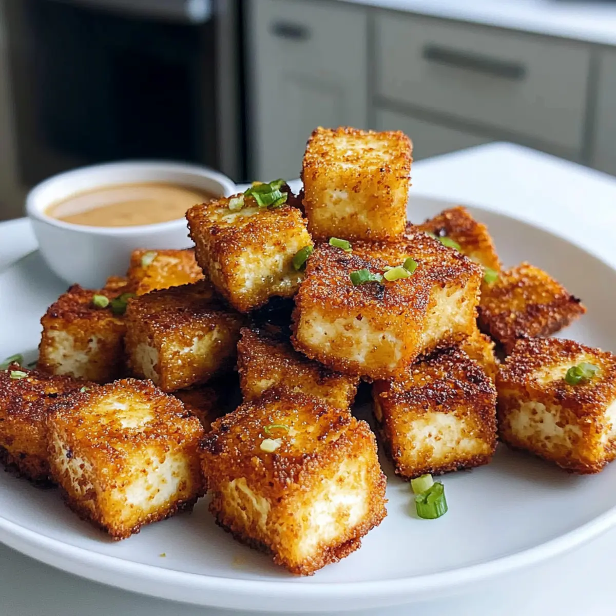 Stell dir vor, du kommst nach einem langen Tag nach Hause und der köstliche Duft von frisch zubereitetem Essen erfüllt die Luft. Mit meinem Rezept für 20-Minuten Luftfritteuse knuspriger Tofu zauberst du im Handumdrehen ein Gericht, das deinen Gaumen verwöhnt und dabei auch noch gesund ist. Diese knusprigen Tofu-Würfel sind eine perfekte, fettarme Alternative zu herkömmlich frittierten Snacks und bestenfalls äußerst schnell in der Zubereitung. Egal, ob sie in einem bunten Salat landen, Wickel oder einfach nur als Snack genossen werden, sie bringen Vielfalt in deine Küche und machen jede Mahlzeit zum Highlight. Neugierig darauf, wie einfach du dieses leckere Gericht zaubern kannst? Lass uns direkt loslegen! Warum ist knuspriger Tofu ein Must-Food? Schnell zubereitet: In nur 20 Minuten erhältst du eine köstliche Mahlzeit, die perfekt in deinen hektischen Alltag passt. Vielseitig einsetzbar: Ob als Snack, in Salaten oder als Toppings für Reisgerichte – dieser Tofu lässt sich mit vielen Aromen kombinieren. Gesunde Wahl: Mit minimalem Öl zubereitet, ist er eine leichtere Alternative zu traditionellen frittierten Snacks. Einfach köstlich: Der knusprige Außenmantel und die zarte Innenschicht sorgen für ein unvergessliches Geschmackserlebnis. Perfekt für alle: Ob Vegetarier oder einfach nur Feinschmecker, jeder wird von diesem Rezept begeistert sein! Wenn du mehr über die Erstellung einer ausgewogenen Mahlzeit erfahren möchtest, schau dir auch unsere Tipps zur zubereitungsfreundlichen Küche an. 20-Minuten Luftfritteuse knuspriger Tofu Zutaten Für den Tofu • Tofu – sorgt für die Grundlage des Proteins; unbedingt pressen, um überschüssige Feuchtigkeit für optimale Knusprigkeit zu entfernen. • Sojasauce – fügt einen umami-Geschmack hinzu; für eine natriumarme Option nutze natriumarme Sojasauce. • Maisstärke – schafft die knusprige Beschichtung; kann durch Pfeilwurzpulver ersetzt werden. • Knoblauchpulver – verbessert den Geschmack; frisch gehackter Knoblauch sorgt für einen intensiveren Geschmack. • Paprika – verleiht Farbe und milde Schärfe; durch Chilipulver kann das Gericht schärfer gemacht werden. • Olivenöl – hilft, eine knusprige Textur zu erreichen; kann auch durch ein neutrales Öl ersetzt werden. Schritt-für-Schritt-Anleitung für 20-Minuten Luftfritteuse knuspriger Tofu Step 1: Tofu pressen Wickle den Tofu in ein sauberes Küchentuch und lege ihn auf einen Teller. Drücke ihn mit einem schweren Gegenstand, wie einer Pfanne, für etwa 15 Minuten, um überschüssige Feuchtigkeit zu entfernen. Dieser Schritt ist entscheidend für die optimale Knusprigkeit des 20-Minuten Luftfritteuse knuspriger Tofu. Step 2: Tofu schneiden Nach dem Pressen schneide den Tofu in gleichmäßige Würfel von etwa 2,5 cm. Achte darauf, dass die Stücke gleich groß sind, damit sie in der Luftfritteuse gleichmäßig garen. Diese Vorbereitung sorgt für eine perfekte Textur und einen köstlichen Geschmack. Step 3: Tofu würzen Gib die gewürfelten Tofu-Stücke in eine große Schüssel. Füge Sojasauce, Maisstärke, Knoblauchpulver, Paprika und Olivenöl hinzu. Mische alles gut durch, bis der Tofu gleichmäßig und gründlich beschichtet ist. Diese Würzmischung sorgt für den köstlichen, knusprigen Geschmack, den du in deinem 20-Minuten Luftfritteuse knuspriger Tofu suchst. Step 4: Luftfritteuse vorheizen Heize die Luftfritteuse auf 200 °C vor, indem du sie für etwa 3 Minuten laufen lässt. Ein gut vorgeheiztes Gerät gewährleistet eine gleichmäßige und schnelle Garung des Tofus und trägt dazu bei, dass er schön knusprig wird. Step 5: Tofu frittieren Lege die gewürzten Tofu-Würfel in einem einzigen Layer in den Korb der Luftfritteuse. Gare den Tofu für 12 bis 15 Minuten, wobei du ihn nach der Hälfte der Zeit einmal durchschüttelst. Achte darauf, dass die Würfel goldbraun und knusprig sind; diese Textur ist der Schlüssel zu deinem gelungenen 20-Minuten Luftfritteuse knuspriger Tofu. Step 6: Servieren Nimm den knusprigen Tofu aus der Luftfritteuse und lasse ihn kurz abkühlen. Serviere ihn sofort für die beste Textur oder bewahre ihn in einem luftdichten Behälter für später auf. Egal wie du ihn genießt, dieser Tofu ist ein echter Genuss! Vorbereitung für 20-Minuten Luftfritteuse knuspriger Tofu Die 20-Minuten Luftfritteuse knuspriger Tofu ist nicht nur schnell zubereitet, sondern auch ideal für die Vorbereitung im Voraus! Du kannst den Tofu bis zu 24 Stunden vorher pressen und würzen, damit die Aromen gut durchziehen. Lagere die gewürzten Würfel in einem luftdichten Behälter im Kühlschrank. Bei Bedarf einfach die Luftfritteuse auf 200 °C vorheizen und die vorgefertigten Tofu-Stücke für 12-15 Minuten knusprig frittieren. Um die Qualität zu bewahren, achte darauf, dass die Tofu-Würfel beim Frittieren nicht überfüllt sind, da dies die Knusprigkeit beeinträchtigen kann. So hast du an stressigen Tagen im Handumdrehen ein schmackhaftes Gericht zur Hand! Lagerungstipps für 20-Minuten Luftfritteuse knuspriger Tofu Kühlschrank: Bewahre den abgekühlten, übrig gebliebenen Tofu in einem luftdichten Behälter auf, um ihn bis zu 3 Tage frisch zu halten. Gefrierschrank: Zu den gefrorenen Tofu-Würfeln halten sich bis zu 2 Monate. Stelle sicher, dass du sie in einem gefriergeeigneten Behälter oder einem Gefrierbeutel verpackst, um Gefrierbrand zu vermeiden. Wiedererwärmen: Um den Tofu wieder knusprig zu machen, erhitze ihn in der Luftfritteuse bei 190°C für 2-3 Minuten. So bleibt er schön kross, genau wie bei der ersten Zubereitung. Vorbereitung: Bereite den Tofu sofort nach dem Kochen für die besten Ergebnisse vor. Das Lagern von Tofu ist zwar möglich, aber frisch zubereitet ist der 20-Minuten Luftfritteuse knuspriger Tofu immer am besten! Tipps für den besten Luftfritteuse knuspriger Tofu Tofu richtig pressen: Drücke den Tofu mindestens 15 Minuten lang, um überschüssige Feuchtigkeit zu entfernen. Das verhindert, dass der 20