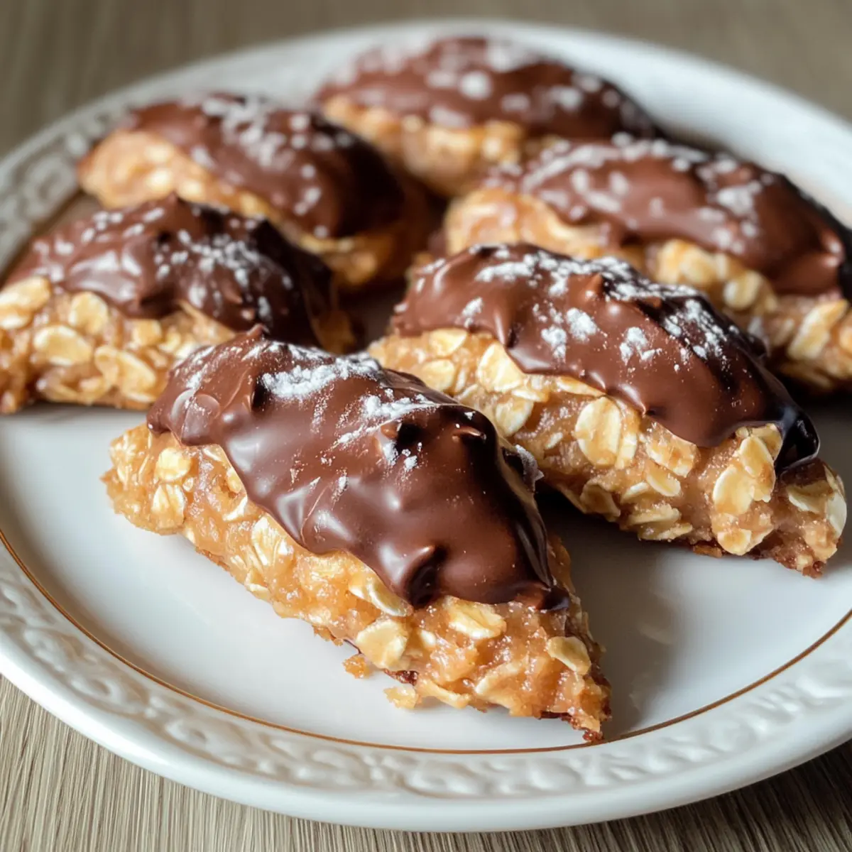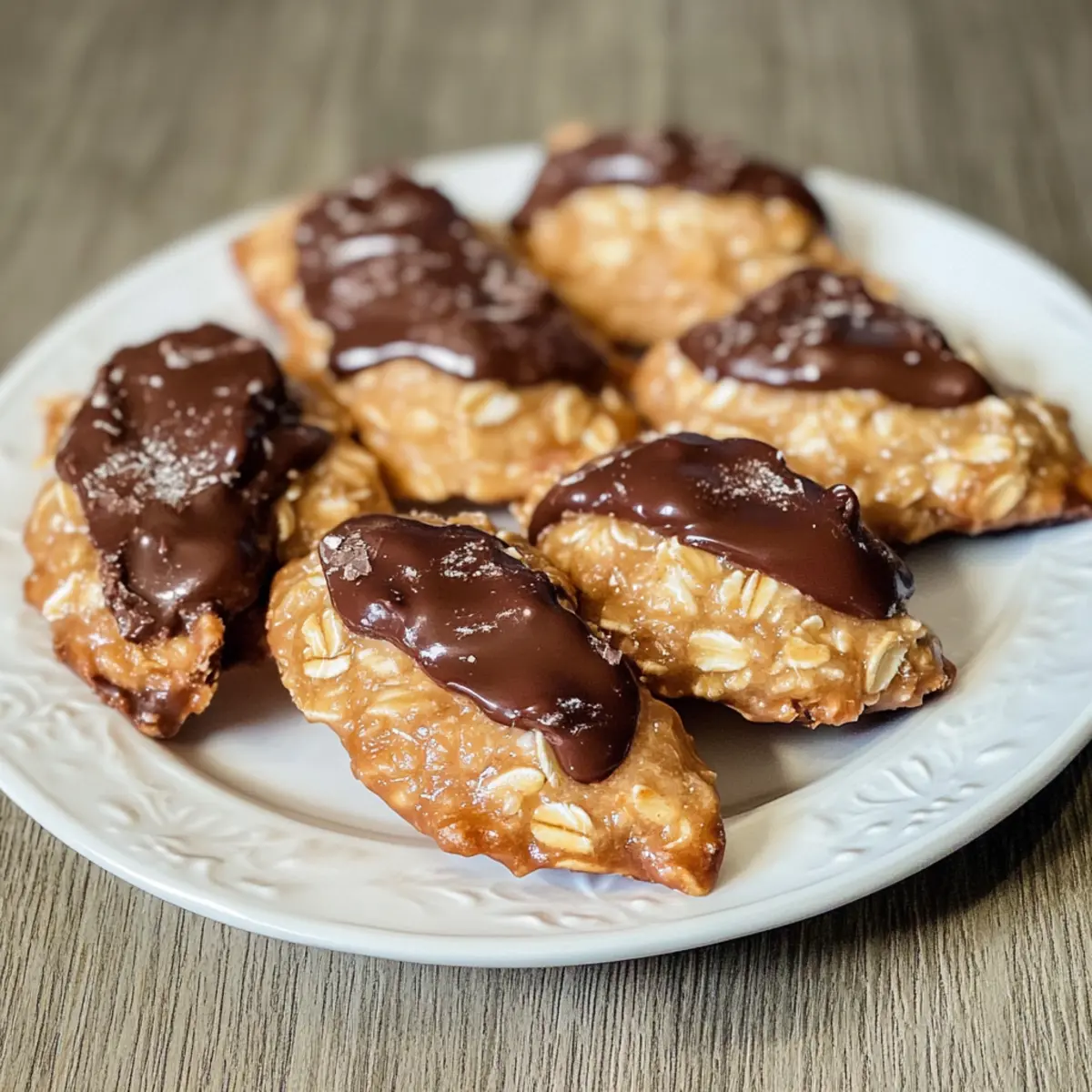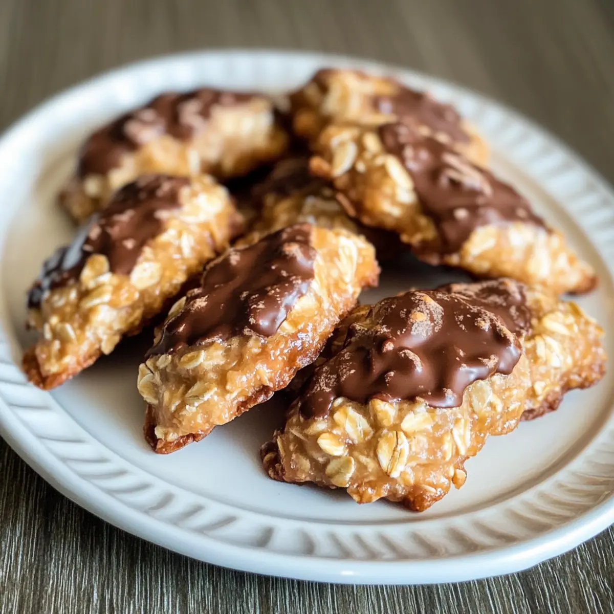 Es gibt Momente in der Küche, die einfach unvergesslich sind – wie der erste Biss in diese köstlichen 4-Zutaten No-Bake Schokoladen-Haferkekse. Während ich die Mischung zubereite, verströmt der Raum einen unwiderstehlichen Schokoladenduft, der selbst die größten Naschkatzen anzieht. Diese Kekse sind ideale kleine Snacks für stressige Tage, da sie in wenigen Minuten zuzubereiten sind und aus nur vier einfachen Zutaten bestehen. Außerdem sind sie glutenfrei und bieten eine gesunde ABwechslung zu herkömmlichen Süßigkeiten – perfekt, um das Verlangen nach etwas Süßem zu stillen! Seid ihr bereit, in die Welt dieser einfachen, aber köstlichen Kekse einzutauchen? Lasst uns gemeinsam diese süße Reise antreten! Warum wirst du diese Kekse lieben? Einfachheit: Die Zubereitung könnte nicht einfacher sein – nur vier Zutaten und keine Backzeit erforderlich! Schokoladengenuss: Die Kombination aus Hafer und Kakao sorgt für einen vollen, schokoladigen Geschmack, der deine Geschmacksknospen begeistern wird. Gesunde Alternative: Diese Kekse sind nicht nur lecker, sondern auch nahrhaft und eignen sich hervorragend für eine glutenfreie Ernährung. Vielseitig: Du kannst Zutaten ganz nach deinem Geschmack anpassen, z.B. Nussbutter gegen Sonnenblumenkernbutter eintauschen oder mit Trockenfrüchten verfeinern. Schnell und einfach: Ideal für einen Eilige, diese Kekse sind in nur wenigen Minuten fertig, was sie zu einem perfekten Snack für zwischendurch macht. Zutaten für die Schokoladen-Haferkekse • Diese einfachen No-Bake Kekse sind mit nur vier Zutaten lecker und glutenfrei! Für die Kekse Haferflocken – Für eine gute Textur und Fülle, verwende glutenfreie Haferflocken für die beste Glutenfreiheit. Erdnussbutter – Bringt Cremigkeit und gesunde Fette, optional mit Mandelbutter für eine nussfreie Variante. Honig oder Ahornsirup – Diese natürlichen Süßungsmittel sorgen für Bindung der Zutaten, benutze Ahornsirup für eine vegane Alternative. Kakaopulver – Für den reichen Schokoladengeschmack, ersetze mit Carobpulver für eine koffeinfreie Option. Mit diesen köstlichen Zutaten bereitest du im Handumdrehen die perfekten Schokoladen-Haferkekse zu! Schritt-für-Schritt-Anleitung für die 4-Zutaten No-Bake Schokoladen-Haferkekse Schritt 1: Trockene Zutaten mischen In einer großen Schüssel die Haferflocken und das Kakaopulver gut vermengen. Verwende einen Schneebesen, um Klumpen zu vermeiden und die Zutaten gleichmäßig zu verteilen. Achte darauf, dass die Mischung ein gleichmäßiges, schokoladiges Aroma entfaltet. Dies dauert nur etwa 2 Minuten. Schritt 2: Nasse Zutaten erhitzen In einer mikrowellengeeigneten Schüssel die Erdnussbutter und den Honig oder Ahornsirup kombinieren. Erwärme die Mischung in der Mikrowelle für etwa 30 Sekunden, bis die Erdnussbutter weich und gut vermischbar ist. Rühre alles um, bis eine cremige Konsistenz erreicht ist und keine Klumpen mehr vorhanden sind. Schritt 3: Alle Zutaten vermengen Gieße die geschmolzene Mischung über die trockenen Zutaten in der großen Schüssel. Verwende einen Holzlöffel oder einen Spatel, um alles gut zu vermengen, bis alle Haferflocken gleichmäßig mit der Schokoladenmischung überzogen sind. Achte darauf, dass die gesamte Mischung gut zusammenhält und eine feuchte, klumpige Konsistenz hat. Schritt 4: Kekse formen Lege ein Backblech mit Backpapier aus. Verwende einen Esslöffel oder einen Eisportionierer, um portionsweise die Mischung auf das Backpapier zu setzen. Forme die Portionen mit den Händen zu runden Keksen und drücke sie leicht flach. Achte darauf, dass sie gleichmäßig geformt sind, damit sie später gut zusammenhalten. Schritt 5: Kekse kühlen Stelle das Backblech mit den geformten Keksen für mindestens 30 Minuten in den Kühlschrank, damit sie fest werden. Diese Kühlzeit hilft, die Kekse stabil zu machen und den köstlichen schokoladigen Geschmack zu intensivieren. Nach 30 Minuten sollten die Kekse fest und bereit zum Servieren sein. Was servierst du zu den Schokoladen-Haferkeksen? Diese köstlichen Kekse laden geradezu dazu ein, bei einem entspannten Snack genossen zu werden und harmonisieren perfekt mit vielen leckeren Begleitern. Glas Milch: Ein klassischer Begleiter, der die Schokoladennote der Kekse ergänzt und ein beruhigendes Gefühl vermittelt. Frische Beeren: Himbeeren oder Erdbeeren bringen eine fruchtige Frische, die den süßen Geschmack der Kekse ausgleicht. Joghurt mit Honig: Ein cremiger, süßer Kontrast, der zusätzliche Protein liefert und deine Naschkatzen zufriedenstellt. Nussmischung: Eine crunchy Komponente, die das Chewy der Kekse ergänzt und gleichzeitig gesunde Fette bietet. Kaffee oder Tee: Ein warmer Drink, der die Schokoladennote wunderschön zur Geltung bringt und für eine entspannte Auszeit sorgt. Dunkle Schokolade: Für die Schokoladenliebhaber eine gönnerhafte Note, die die Lust auf Süßes perfekt befriedigt. Kokosnussflocken: Eine exotische Ergänzung, die das Aroma der Kekse bereichert und für eine zusätzliche Textur sorgt. Tipps für die besten Schokoladen-Haferkekse Creamy Peanut Butter: Verwende cremige Erdnussbutter für eine gleichmäßige Mischung. Chunky Erdnussbutter kann das Mischen erschweren und die Konsistenz beeinflussen. Fest Andrucken: Drücke die Kekse fest zusammen, damit sie beim Kühlen nicht auseinanderfallen. Eine gut geformte Mischung ist der Schlüssel zu stabilen Keksen. Kühlzeit Einhalten: Lass die Kekse mindestens 30 Minuten im Kühlschrank stehen, damit sie fest werden. Dies verstärkt den schokoladigen Geschmack erheblich. Luftdicht Lagern: Bewahre die Kekse in einem luftdichten Behälter im Kühlschrank auf, damit sie frisch und köstlich bleiben. Nicht Übermixen: Vermeide es, die feuchten und trockenen Zutaten zu lange zu mischen. Das Übermixen kann die Kekse zäh machen, statt sie schön chewy zu erhalten. Lagerungstipps für Schokoladen-Haferkekse Zimmertemperatur: Bewahre die Kekse in einem luftdichten Behält
