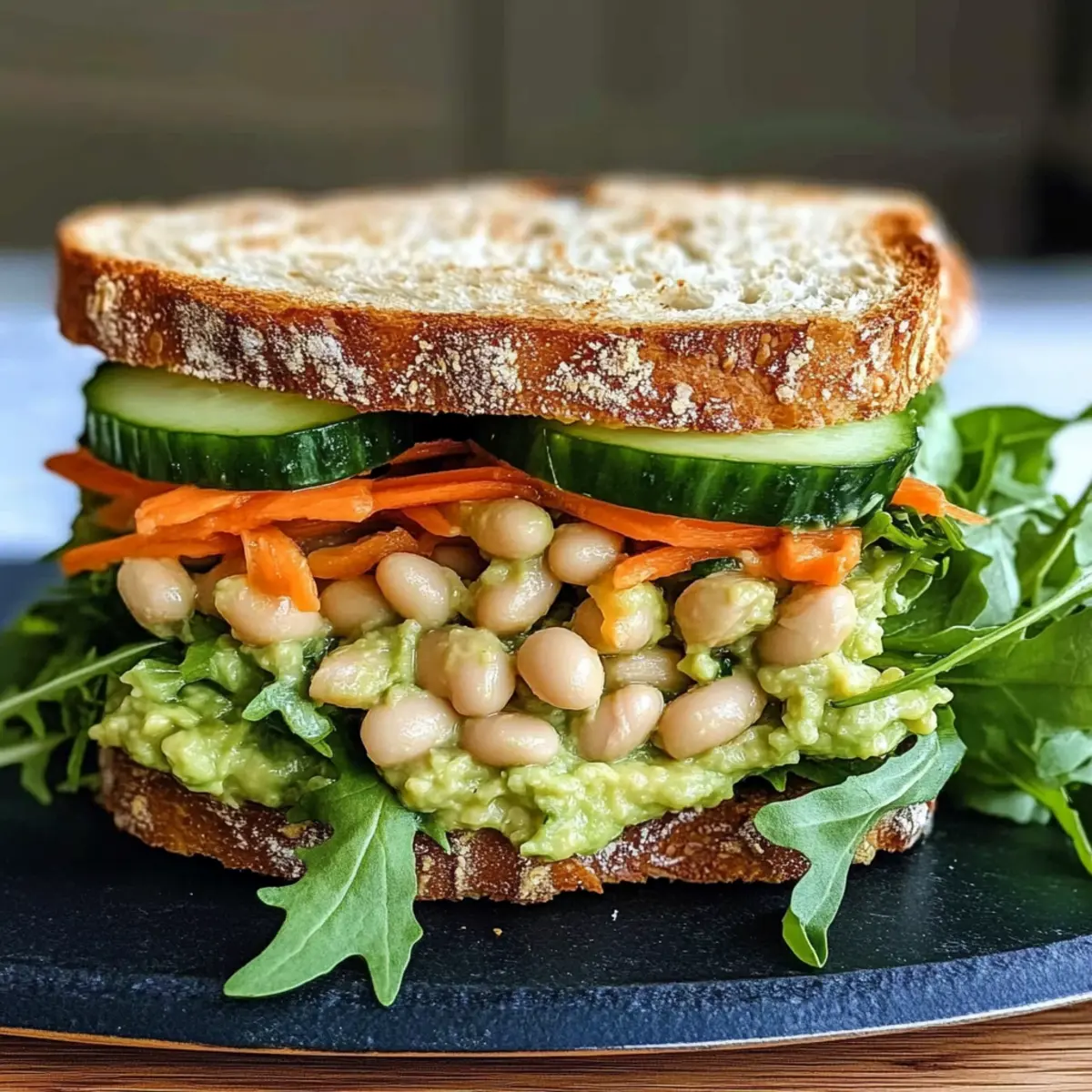 Das Avocado-Weiße-Bohnen-Sandwich ist lecker, nahrhaft und perfekt für die pflanzliche Ernährung.
