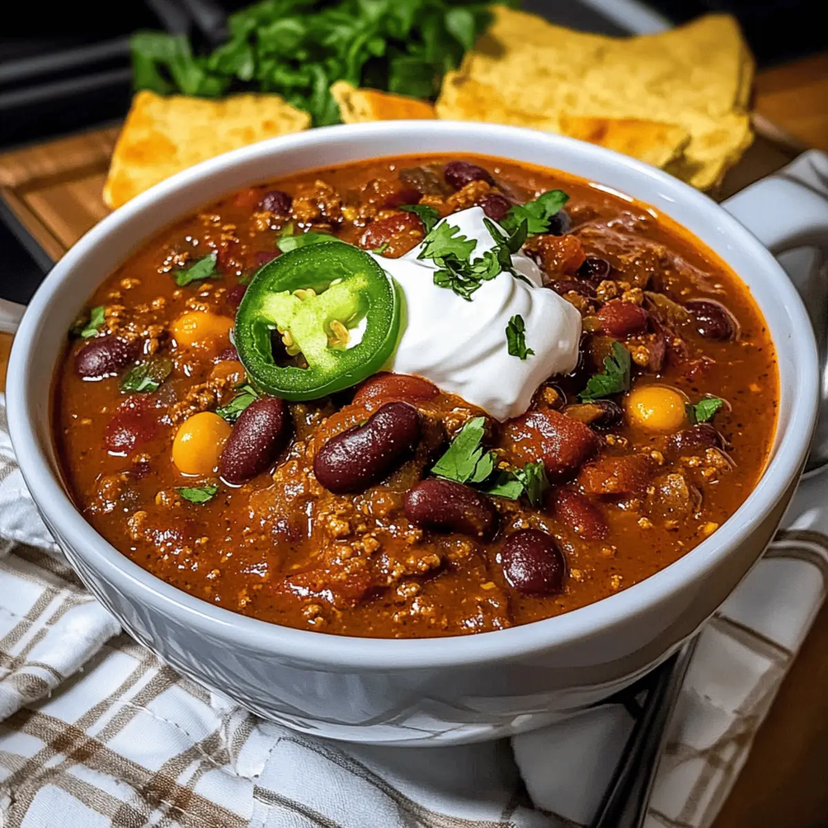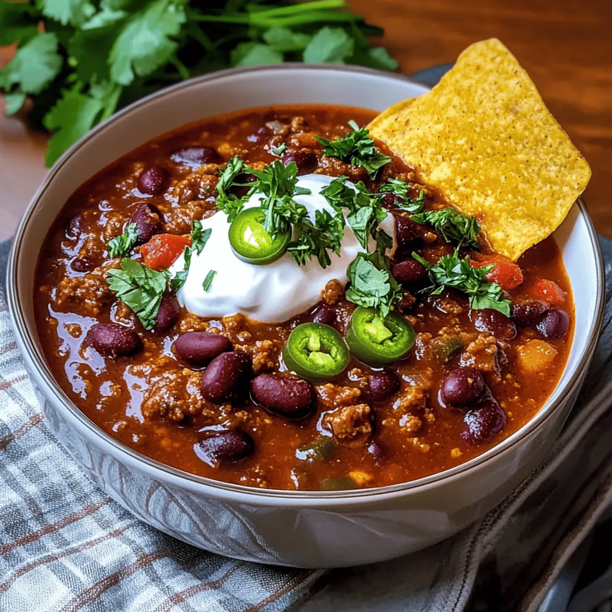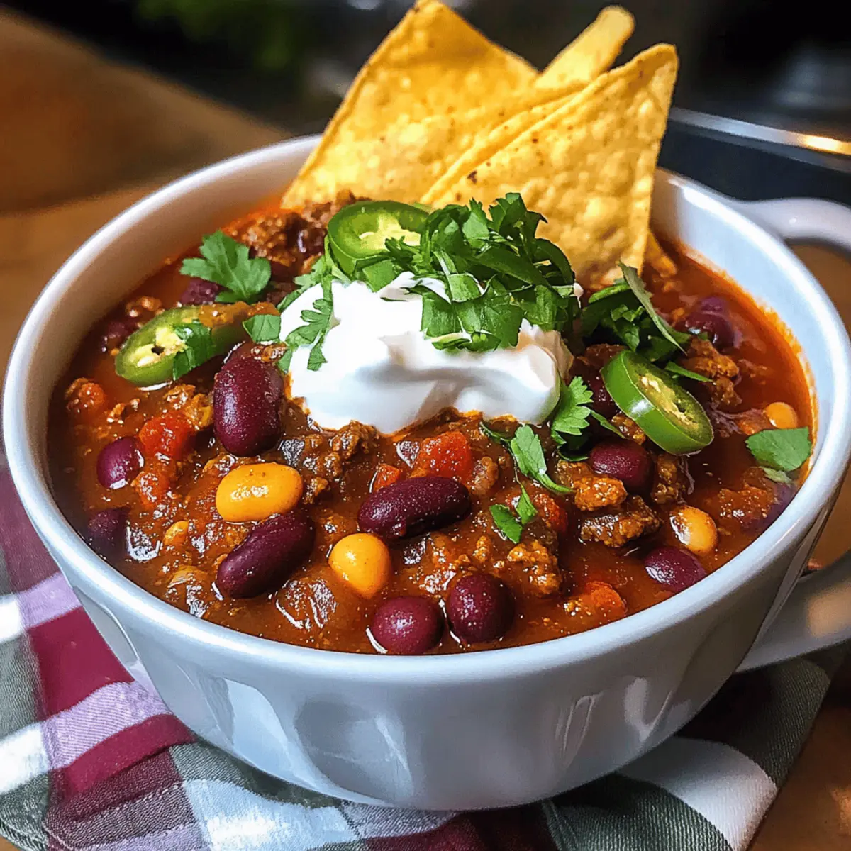 Wenn der Duft von würzigem Chili durch die Küche zieht, meint man, die Seele des Südens durch die Luft zu schnuppern. Mein Award-Winning Southern Soul Chili verbreitet sofort eine wohlige Atmosphäre – perfekt für gesellige Abende mit Freunden oder die nächste Familienfeier. Die Kombination aus zartem Rinderhack und scharfer Wurst, begleitet von einer harmonischen Mischung aus Bohnen und Gewürzen, macht dieses Gericht nicht nur zu einer wahren Gaumenfreude, sondern auch zu einem beliebten Komfortessen. Es kann je nach Vorliebe milder oder würziger zubereitet werden, sodass für jeden Geschmack etwas dabei ist. Bist du bereit, deine Küche mit einem herzhaften Klassiker zu bereichern? Lass uns gemeinsam eintauchen! Warum wirst du dieses Chili lieben? Pure Genuss: Dieses Award-Winning Southern Soul Chili vereint Wärme und herzhaften Geschmack in jedem Bissen. Einfach anpassbar: Perfekt für jeden Geschmack, du kannst die Schärfe und Bohnenarten ganz nach deinen Vorlieben wählen. Gesellig und einladend: Ideal für Partys oder Familientreffen – es bringt alle zusammen und zaubert ein Lächeln auf die Gesichter. Zeitersparnis: Mit einer großzügigen Portion kannst du eine große Menge zubereiten und sogar Reste für die nächste Woche einfrieren. Probiere es mit Karamellisierten Rosenkohl Mit oder einer Cremigen Hühnchen Wurst Orzo Pfanne für eine abwechslungsreiche Menüplanung! Klassischer Komfort: Dieses Chili ist mehr als nur ein Gericht; es ist ein Gefühl von Zuhause und Wärme! Hausgemachtes Southern Soul Chili Zutaten • Um die Neugier zu wecken: Hier sind die Zutaten für das köstliche Hausgemachte Southern Soul Chili, das alle begeistern wird. Für die Basis Rinderhackfleisch – sorgt für eine proteinreiche und geschmackvolle Grundlage; du kannst auch mageres Rinderhack verwenden, um den Fettgehalt zu reduzieren. Scharfe Wurst – verleiht dem Chili eine bösartige Würze und Tiefe; ersetze sie durch milde Wurst für eine sanftere Variante. Chiliflocken – die Hauptwürze, die für die Schärfe sorgt; verwende mehr für ein feurigeres Chili. Poblano-Paprika – für zusätzlichen Geschmack und milde Schärfe; ersetze sie durch Paprika für eine mildere Version. Zwiebel – bringt Süße und Tiefe; verwende nach Vorliebe gelbe oder weiße Zwiebeln. Knoblauch – verstärkt das gesamte Aroma; frischer Knoblauch wird empfohlen, kann aber durch Knoblauchpulver ersetzt werden. Koscheres Salz – unverzichtbar für die Würze; passe die Menge nach Geschmack an. Pfeffer – für zusätzliche Würze; frisch gemahlener Pfeffer ist vorzuziehen. Für die Tomatensauce Tomatenmark – verdickt das Chili und fügt konzentrierten Tomatengeschmack hinzu; eine natriumarme Variante kann verwendet werden. Hautenge Tomaten – sorgt für eine sämige Konsistenz und eine angenehme Säure; ersetze sie durch gewürfelte Tomaten, wenn gewünscht. BBQ-Sauce – verleiht dem Chili Süße und einen rauchigen Geschmack; verwende deine Lieblingsmarke für einen persönlichen Touch. Lagerbier – fügt eine geschmackliche Tiefe hinzu; ersetze es durch mehr Rinderbrühe für eine alkoholfreie Version. Rinderbrühe – sorgt für Feuchtigkeit und Tiefe; du kannst auch Gemüsebrühe für eine leichtere Variante verwenden. Worcestersauce – bringt Umami-Geschmack; kann weggelassen oder durch Sojasauce ersetzt werden. Balsamico-Essig – balanciert die Aromen mit einer angenehmen Säure; Rotweinessig ist ebenfalls eine gute Alternative. Honig oder Zucker – bringt Süße ins Spiel, um die Säure auszugleichen; Kokoszucker oder Agavensirup können verwendet werden. Für die Bohnen Dunkle Rote Kidneybohnen – bieten Textur und Protein; du kannst sie durch Pinto-Bohnen ersetzen. Schwarze Bohnen – sorgen für Cremigkeit; optional und können weggelassen oder durch mehr Kidneybohnen ersetzt werden. Die Liste der Zutaten für dein hausgemachtes Southern Soul Chili steht bereit, um dir ein köstliches Gericht zu zaubern, das einfach unwiderstehlich ist! Schritt-für-Schritt-Anleitung für Hausgemachtes Award-Winning Southern Soul Chili Step 1: Fleisch anbraten Erhitze einen großen Kochtopf oder eine gusseiserne Pfanne bei mittlerer Hitze. Brate das Rinderhackfleisch und die scharfe Wurst für etwa 7-10 Minuten an, bis sie gut gebräunt sind. Dabei ständig umrühren, bis das Fleisch vollständig durchgegart ist und keine rosafarbenen Stellen mehr sichtbar sind. Step 2: Gemüse hinzufügen Füge nun die gewürfelte Zwiebel, Poblano-Paprika und Sellerie hinzu. Koche die Mischung für etwa 5-7 Minuten weiter, bis das Gemüse weich und die Zwiebel glasig ist. Rühre während des Kochens regelmäßig um, damit nichts ansetzt. Step 3: Gewürze und Tomaten einrühren Reduziere die Hitze auf mittlere Stufe und füge das Chiliflocken, das Tomatenmark, die gehackten Tomaten sowie die BBQ-Sauce hinzu. Lass alles für ungefähr 15 Minuten sanft köcheln, damit sich die Aromen wunderbar vermischen. Rühre ab und zu um, damit die Mischung nicht anbrennt. Step 4: Flüssigkeiten hinzufügen Gieße nun das Lagerbier, die Rinderbrühe, den gewürfelten Knoblauch, die Worcestersauce, den Balsamico-Essig und den Honig hinzu. Vermische alles gut und bringe die Mischung zum Kochen. Reduziere die Hitze erneut und lasse das Chili 1,5 Stunden bei niedriger Temperatur sanft köcheln, während du gelegentlich umrührst. Step 5: Bohnen hinzufügen Nach der Garzeit sind die Aromen gut verschmolzen. Jetzt fügst du die dunklen roten Kidneybohnen und die schwarzen Bohnen hinzu. Lass das Chili weitere 30 Minuten bei mittlerer Hitze köcheln, während du weiterhin häufig umrührst, um sicherzustellen, dass sich alle Zutaten gut vermischen und warm werden. Step 6: Abschmecken und servieren Probieren Sie das Chili nach 30 Minuten und passe die Gewürze nach Bedarf an. Es ist nun bereit, serviert zu werden. Gib das Chili in Schüsseln und garniere es nach Belieben mit saurer Sahne, frischen Jalapeños und geriebenem Käse. Variant
