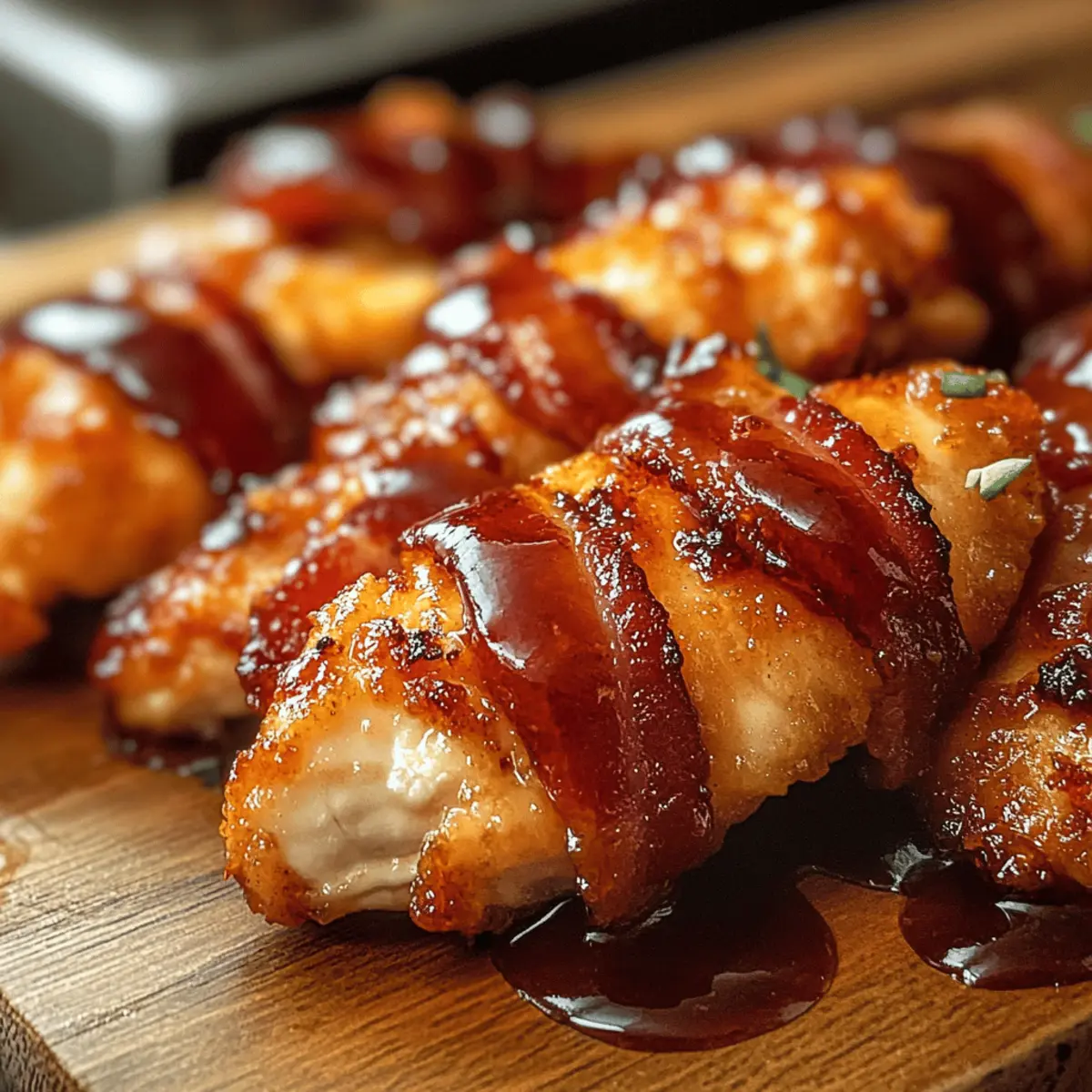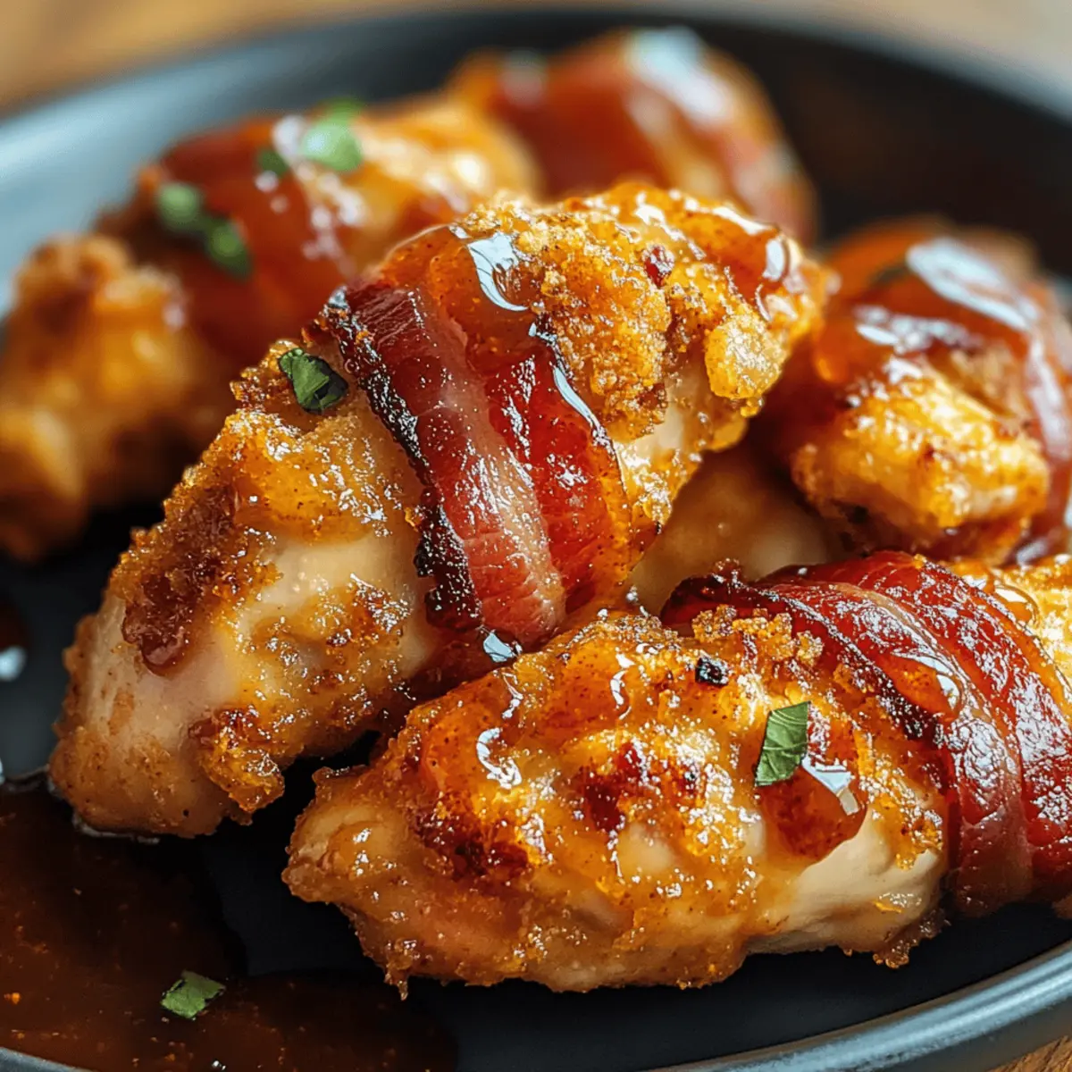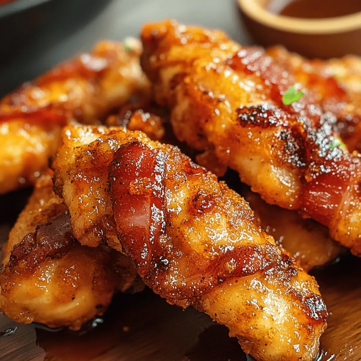 Kürzlich saß ich in meiner Küche, als der verführerische Duft von gebratenem Bacon durch den Raum zog. Es war der perfekte Moment, um eine meiner Lieblingsspezialitäten zu kreieren: die Bacon Brown Sugar Chicken Tenders. Diese köstlichen Happen kombinieren die süße Karamellisierung von braunem Zucker mit der knusprigen Textur von Bacon und verwandeln simples Hühnchen in ein unvergessliches Geschmackserlebnis. In nur 40 Minuten ist dieses einfache Rezept nicht nur ein schnelles Gericht für deinen Alltag, sondern auch der Hit auf jeder Party oder dem nächsten Spieltag. Mit einer optionalen Würze durch Cayennepfeffer kannst du es ganz nach deinem Geschmack anpassen. Bist du bereit, deinen nächsten Snack zu veredeln? Warum wirst du dieses Rezept lieben? Einfachheit: Die Zubereitung ist kinderleicht und benötigt nur wenige Zutaten – perfekt für jeden, der schnell ein köstliches Gericht zaubern möchte. Reicher Geschmack: Die süße Karamellisierung des braunen Zuckers in Kombination mit dem rauchigen Aroma des Bacons macht jeden Bissen zu einem Geschmackserlebnis. Vielseitigkeit: Ob mit scharfem Cayennepfeffer oder einer leichteren Variante mit Truthahnbacon – du kannst die Aromen ganz nach deinem Geschmack anpassen und experimentieren. Familienfreundlich: Diese Hähnchenstreifen sind ideale Snacks für die ganze Familie und perfekt geeignet für gesellige Abende oder das nächste Spiel. Weniger Zeitaufwand: In nur 40 Minuten bekommst du ein Gericht, das auch ohne viel Aufwand zum Mittelpunkt deines Abendessens werden kann. Die Kombination dieser Vorteile macht die Knuspriger Haehnchen Bacon ein Muss in deiner Rezeptesammlung. Und falls du nach weiteren süßen Leckereien suchst, probiere die Schokoladenmousse Brownies Rezept! Zutaten für knusprige Hähnchenstreifen Für das Hühnchen • Boneless, Skinless Chicken Breasts – Hauptproteinquelle; zart und saftig, wenn sie richtig gekocht werden. Für die Umhüllung • Thick-Cut Bacon – Verleiht eine knusprige Textur und einen rauchigen Geschmack; dünner Bacon kann für mehr Knusprigkeit verwendet werden. • Brown Sugar – Sorgt für Süße und Karamellisierung; probiere auch andere Zuckerarten wie Kokosblütenzucker aus. • Paprika – Fügt Wärme und Farbe hinzu; optional für unterschiedliche Geschmäcker. • Garlic Powder – Verbessert die herzhaften Noten; frischer Knoblauch kann ebenfalls verwendet werden. • Cayenne Pepper – Optionale Schärfe; je nach Vorliebe anpassen oder für ein milderes Gericht weglassen. • Salt & Black Pepper – Grundgewürze zur Geschmacksverstärkung. Mit dieser Zutatenliste für die Knusprigen Hähnchenstreifen klaarst du dir eine leckere und kinderleichte Mahlzeit! Step-by-Step Instructions for Knusprige Hähnchenstreifen mit Bacon und Zucker Step 1: Ofen vorheizen Heize den Ofen auf 190 °C (375 °F) vor. Dies sorgt dafür, dass die Knusprigen Hähnchenstreifen gleichmäßig und perfekt gebacken werden. Während der Ofen aufheizt, kannst du mit den nächsten Vorbereitungen beginnen, damit alles bereit ist, wenn du das Hühnchen in den Ofen schiebst. Step 2: Gewürzmischung vorbereiten Mische in einer Schüssel den braunen Zucker, Paprika, Knoblauchpulver, Salz und schwarzen Pfeffer gut miteinander. Diese Mischung wird als köstliche Umhüllung für die Hähnchenstreifen dienen und sorgt für den perfekten Geschmack. Achte darauf, die Zutaten gleichmäßig zu verteilen, damit jeder Bissen voller Aromen ist. Step 3: Hähnchen in Bacon wickeln Nehme die entbeinten, hautlosen Hähnchenbruststücke und wickle jedes Stück mit einer Scheibe Bacon ein. Stelle sicher, dass der Bacon gut am Hühnchen haftet; du kannst Zahnstocker verwenden, um alles zusammenzuhalten, falls nötig. Diese schmackhafte Kombination wird dazu beitragen, die Hähnchenstreifen knusprig und saftig zu machen. Step 4: Hähnchenstäbchen panieren Tauche die eingewickelten Hähnchenstreifen in die vorbereitete Gewürzmischung und stelle sicher, dass sie gleichmäßig bedeckt sind. Dies sorgt für eine köstliche Karamellisierung während des Backens. Achte darauf, überschüssiges Gewürz abzuklopfen, damit das Gericht nicht zu süß wird und andere Aromen durchscheinen. Step 5: Hähnchen auf das Backblech legen Lege die gewickelten und panierten Hähnchenstreifen auf ein mit Backpapier ausgelegtes Backblech. Achte darauf, dass zwischen den Streifen genügend Platz bleibt, damit sie knusprig werden können. Diese Anordnung ist entscheidend für eine gleichmäßige Garung und damit die Hähnchenstreifen schön goldbraun werden. Step 6: Backen Backe die Knusprigen Hähnchenstreifen für 20-25 Minuten im vorgeheizten Ofen. Überprüfe zwischendurch den Gargrad, indem du sicherstellst, dass das Hühnchen durchgegart ist und der Bacon eine knusprige Textur hat. Die äußere Schicht sollte goldbraun sein, das Zeichen dafür, dass du auf dem richtigen Weg bist. Step 7: Ruhezeit einhalten Lass die Hähnchenstreifen nach dem Backen für etwa 5 Minuten ruhen. Diese Ruhezeit erlaubt es den Säften, sich im Fleisch zu verteilen, was zu einem saftigeren Biss führt. Die Karamellisierung wird durch die Hitze des Hühnchens am besten zur Geltung kommen und macht den Genuss noch besser. Step 8: Servieren und genießen Serviere die Knusprigen Hähnchenstreifen mit einer Auswahl an Dips wie Honig-Senf, BBQ-Sauce oder Ranch-Dressing. Diese Vielfalt an Begleitern wird das Geschmackserlebnis abrunden und ist perfekt für gesellige Abende oder als leckere Vorspeise bei deinem nächsten Spieltag. Expert Tips für knusprige Hähnchenstreifen Bacon richtig wählen: Verwende dicken Bacon für mehr Knusprigkeit. Dünner Bacon kann zwar auch funktionieren, ist aber weniger geschmackvoll und könnte schneller verbrennen. Karamellisierung optimieren: Achte darauf, dass die Gewürzmischung gleichmäßig auf den Hähnchenstreifen verteilt ist, um eine optimale Karamellisierung während des Backens zu gewährleisten. Teigruhe beachten: Lass 