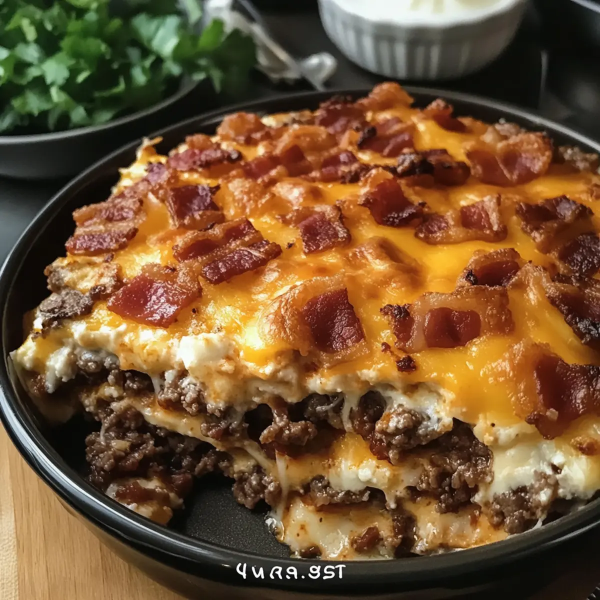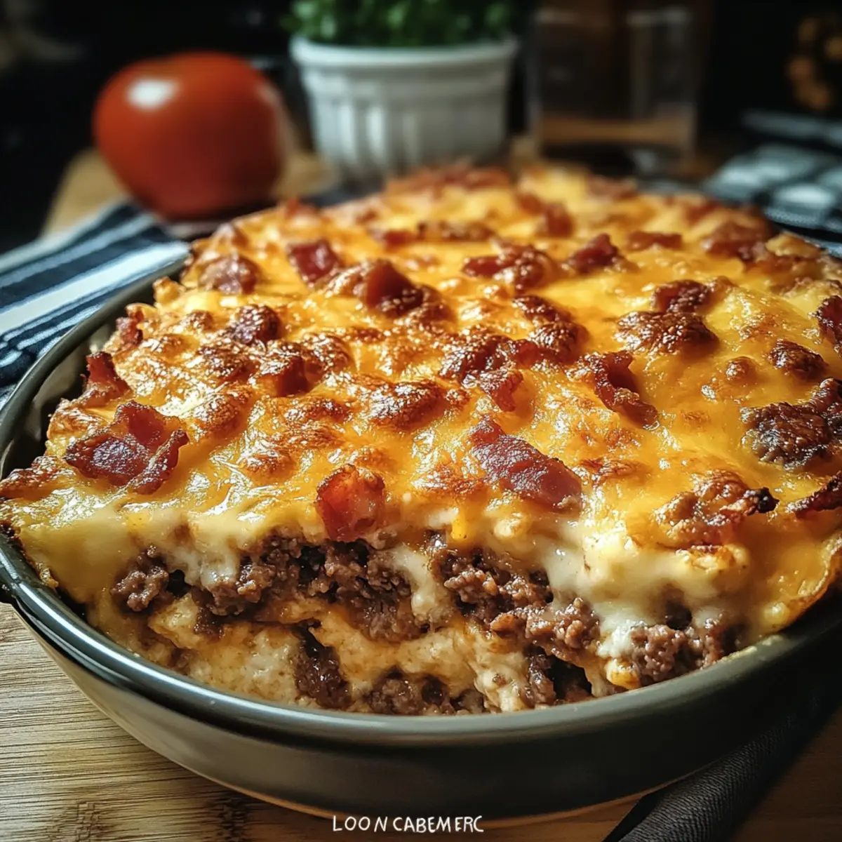 Es war ein dieser Tage, an denen ich mit nach Hause geschleppten Einkaufstüten in der Küche stand und die Gedanken um die Frage kreisten: Was koche ich heute? In diesem Moment kam mir der Gedanke an den köstlichen Bacon Cheeseburger Auflauf, der nicht nur vor Aromen strotzt, sondern auch im Handumdrehen zubereitet ist. Diese Rezeptur vereint saftiges, gewürztes Rinderhackfleisch, knusprigen Speck und eine cremige Eimischung, die perfekt mit schmelzendem Cheddar-Käse gekrönt wird. Das Beste daran? Es ist eine gesunde, kohlenhydratarme Alternative, die fantastischen Komfortfood-Genuss bietet – ideal für stressige Wochentage oder Meal Prep über die Woche hinweg. Neugierig, wie man dieses köstliche Gericht zubereitet? Dann bleibt dran! Warum ist dieser Auflauf ein Muss? Köstlicher Komfort: Der Bacon Cheeseburger Auflauf vereint alle klassischen Aromen eines Cheeseburgers in einer herzhaften, leicht verständlichen Form. Einfachheit: Auch Anfänger können dieses Rezept ohne Probleme meistern, da es keine komplizierten Techniken erfordert. Vielseitig: Du kannst ihn leicht abändern, indem du zusätzliche Gemüse wie Paprika oder Spinat hinzufügst – das macht ihn noch nahrhafter! Schnell: In weniger als 30 Minuten im Ofen bereit für die ganze Familie. Mahlzeit für das ganze Wochenende: Perfekt zum Vorbereiten und Aufbewahren, sodass du immer eine gesunde Option griffbereit hast. Von allen geliebt: Diese Mischung aus Käse, Speck und Rindfleisch wird sicher die Herzen deiner Gäste erobern! Zutaten für den Bacon Cheeseburger Auflauf • Entdecke die unwiderstehlichen Zutaten für deinen nächsten Familienabend! Für die Füllung • Rinderhackfleisch – bildet die herzhafte, proteinreiche Basis mit herzhaften Aromen. Substitution: Verwende mageres Puten- oder Hähnchenhack für eine leichtere Option. • Speck – sorgt für einen rauchigen Crunch und intensiviert das Gesamtgeschmackserlebnis. Substitution: Nutze Puten-Speck für eine fettärmere Variante. • Zwiebel – fügt Süße und aromatische Tiefe hinzu. Vorbereitungshinweis: Fein hacken für gleichmäßiges Garen. • Knoblauch – verleiht eine duftende Würze, die das Rinderhack und den Speck perfekt ergänzt. Frisch gehackt gibt es das beste Aroma. Für die cremige Mischung • Cheddar-Käse – sorgt für geschmolzenen Genuss und Reichhaltigkeit; die Hälfte wird unter und die andere Hälfte oben aufgeschichtet für eine goldbraune Kruste. Substitution: Verwende laktosefreien Käse für eine milchfreie Variante. • Eier – bilden die cremige Custard, die den Auflauf bindet. Frische Eier sorgen für die besten Ergebnisse. • Schlagsahne – verleiht der Custard eine seidige Textur. Substitution: Pflanzenmilch wie Mandel- oder Kokosmilch für eine milchfreie Option. • Gelbe Senf & Worcestershire-Sauce – bringen Würze und Tiefe in den Geschmack. Diese Zutaten bereichern das Erlebnis des Bacon Cheeseburger Auflaufs. • Salz und schwarzer Pfeffer – essentielle Gewürze, die alle Aromen hervorheben. Optionales Topping • Frisch gehackte Frühlingszwiebeln und gewürfelte Tomaten – bringen Frische und Farbe als Garnitur. Schritt-für-Schritt-Anleitung für den Bacon Cheeseburger Auflauf Step 1: Ofen vorheizen Heize deinen Ofen auf 190 °C vor. Diese Temperatur sorgt dafür, dass der Bacon Cheeseburger Auflauf gleichmäßig gart und eine schöne goldbraune Kruste erhält. Während der Ofen sich aufheizt, kannst du die vorbereitenden Schritte für die Füllung erledigen, um Zeit zu sparen. Step 2: Speck anbraten Erhitze eine große Pfanne bei mittlerer Hitze und brate den gewürfelten Speck an, bis er knusprig ist – das dauert etwa 5 bis 7 Minuten. Achte darauf, den Speck regelmäßig umzudrehen, damit er gleichmäßig bräunt. Wenn er fertig ist, nimm den Speck aus der Pfanne und lasse das Fett in der Pfanne zurück. Step 3: Zwiebel und Knoblauch anbraten In derselben Pfanne, in der der Speck gebraten wurde, die fein gehackte Zwiebel und den frischen Knoblauch hinzufügen und etwa 3 bis 4 Minuten lang braten, bis die Zwiebel glasig ist. Dieses Aroma verstärkt den Geschmack deines Bacon Cheeseburger Auflaufs und gibt ihm eine herzhafte Basis. Step 4: Rinderhackfleisch braten Füge das Rinderhackfleisch in die Pfanne hinzu und brate es für etwa 6 bis 8 Minuten, bis es rundum gebräunt ist. Während dieser Zeit kannst du das Fleisch mit einem Holzlöffel zerkleinern, um Klumpen zu vermeiden. Wenn das Fleisch gut gar ist, lasse das überschüssige Fett abtropfen. Step 5: Speck und Abkühlen Rühre den gebratenen Speck unter das Rinderhackfleisch und lasse die Mischung für 5 Minuten abkühlen. Dies ist wichtig, damit die Eimischung beim Hinzufügen nicht stockt. Während die Mischung abkühlt, kannst du die nächste Schritt vorbereiten. Step 6: Eimischung zubereiten In einer Schüssel die Eier, die Schlagsahne, den Senf und die Worcestershire-Sauce verquirlen. Diese Mischung sollte schön glatt und gleichmäßig sein. Füge Salz und Pfeffer nach Geschmack hinzu, um die Aromen des Bacon Cheeseburger Auflaufs zu intensivieren. Step 7: Auflauf zusammensetzen Fette eine 20×20 cm große Auflaufform leicht ein und verteile die Rinderhackfleisch-Mischung gleichmäßig darin. Streue dann 1 Tasse Cheddar-Käse darauf. Dies schafft eine köstliche, cremige Schicht, die perfekt mit der Eimischung harmoniert. Step 8: Eimischung eingießen Gieße die vorbereitete Eimischung gleichmäßig über das Fleisch und den Käse in der Auflaufform. Die Eimischung sorgt dafür, dass alle Zutaten zusammenkommen und der Auflauf beim Backen zusammenhält. Achte darauf, dass die Eimischung gut verteilt ist. Step 9: Käse darüber streuen Bestreue den Bacon Cheeseburger Auflauf mit dem restlichen Cheddar-Käse. Das gibt deinem Auflauf eine köstliche, goldene Kruste, die beim Backen schmilzt. Der Käse wird schön Blasen bilden und die Aromen vereinen. Step 10: Backen Backe den Auflauf für 25 bis 30 Minuten im vorgeheizten Ofen, bis