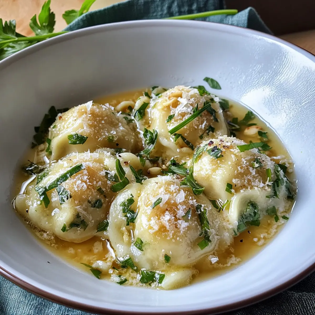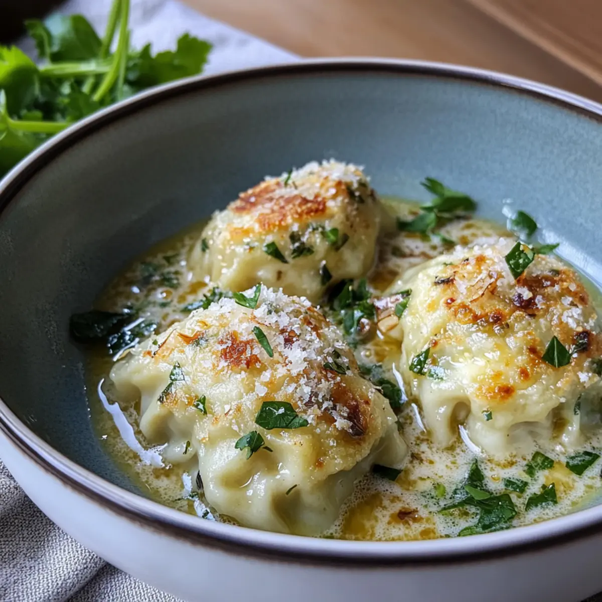 Frischer Bärlauch sprießt in den Wäldern und kündigt den Frühling an – und ich kann einfach nicht widerstehen, ihn in einem Rezept zu verwenden! Heute dreht sich alles um Bärlauch-Parmesan-Knödel mit Nussbutter, eine vegetarische Köstlichkeit, die nicht nur den Gaumen erfreut, sondern auch unglaublich einfach zuzubereiten ist. Diese zarten, aromatischen Knödel sind perfekt, um sich von der Fast-Food-Routine zu verabschieden und die Seele mit heimischem Komfort zu nähern. Sie sind eine wunderbare Option für ein schnelles Abendessen unter der Woche oder als herzhaftes Hauptgericht bei einem Familienessen. Möchtest du wissen, wie diese faszinierenden Knödel entstehen? Lass uns gemeinsam in die Zubereitung eintauchen! Warum sind Bärlauch-Parmesan-Knödel unwiderstehlich? Lecker & würzig: Die Kombination aus frischem Bärlauch und Parmesan sorgt für einen einzigartigen Geschmack, der jedes Gericht bereichert. Einfache Zubereitung: Sie benötigen nur grundlegende Kochkenntnisse, um diese köstlichen Knödel selbst zu machen. Vielseitig: Ob als Hauptgericht oder als Beilage zu Ihrem Lieblingsfleisch – diese Knödel passen perfekt! Saisonale Frische: Nutzen Sie die frischen Aromen des Frühlings und verabschieden Sie sich von der Fast-Food-Routine! Perfekte Textur: Friedliche, leichte Knödel mit einem Hauch von Knusprigkeit durch die gebratenen Zwiebeln – ein Genuss für die Sinne. Zubereitungszeit: In weniger als einer Stunde können Sie diese Köstlichkeit auf den Tisch bringen! Für eine weitere Inspiration, wie Sie Bärlauch verwenden können, schauen Sie sich auch unser Rezept für Wuerziges Rinderfleisch Mit an! Bärlauch-Parmesan-Knödel Zutaten Für die Knödel: Bärlauch – Verleiht den Knödeln ein frisches Knoblaucharoma; bei Bedarf können Sie ihn durch Schnittlauch ersetzen. Baguette oder Brötchen – Stellt die Basis dar und sorgt für die perfekte Textur; frisches Brot kann in der Oven getrocknet werden. Zwiebeln – Fügen Süße und Tiefe hinzu; verwenden Sie Schalotten für einen milderen Geschmack, wenn gewünscht. Knoblauch – Verstärkt den Geschmack; die Menge kann nach Belieben angepasst werden. Butter – Zum Anbraten von Zwiebeln und Knoblauch sowie für die Nussbutter; für eine milchfreie Option kann Olivenöl verwendet werden. Eier – Binden die Zutaten zusammen; für eine vegane Variante können Sie Leinsamen-Eier nutzen (1 EL Leinsamenmehl + 3 EL Wasser = 1 Ei). Parmesan – Sorgt für Umami und eine cremige Textur; alternativ kann auch Hefeflocken verwendet werden. Weizenmehl – Fügt zusätzliche Bindung hinzu; kann durch glutenfreies Mehl ersetzt werden, jedoch kann sich die Textur ändern. Lauwarm Milch – Befeuchtet den Teig; pflanzliche Milch eignet sich ebenfalls gut für eine milchfreie Version. Salz, Pfeffer, Muskatnuss – Gewürze zur Geschmacksverfeinerung; die Menge kann je nach persönlichem Geschmack angepasst werden. Für die Nussbutter: Butter für Nussbutter – Bietet eine reiche, nussige Geschmacksnote; verwenden Sie am besten Butter mit hohem Fettanteil für optimale Ergebnisse. Für die Garnitur: Frischer Bärlauch – Verbessert das Aussehen und den Geschmack der Knödel. Genießen Sie diese herzhaften Bärlauch-Parmesan-Knödel mit Nussbutter und bringen Sie frühlingshafte Aromen auf den Tisch! Schritt-für-Schritt-Anleitung für Bärlauch-Parmesan-Knödel mit Nussbutter Step 1: Brot vorbereiten Schneide das altbackene Baguette oder die Brötchen in kleine Würfel von etwa 1 cm. Ein schönes, gleichmäßiges Schneiden sorgt dafür, dass die Würfel beim Kochen gleichmäßig garen. Stelle die Brotwürfel beiseite, während du die Zwiebeln und den Knoblauch anbrätst. Step 2: Zwiebeln und Knoblauch anbraten Erhitze in einer Pfanne bei mittlerer Hitze 2 Esslöffel Butter. Wenn die Butter schäumt, füge die fein gehackten Zwiebeln und den Knoblauch hinzu und brate sie etwa 5-7 Minuten, bis sie weich und leicht goldbraun sind. Diese aromatische Mischung wird den Bärlauch-Parmesan-Knödeln eine wunderbare Tiefe verleihen. Step 3: Teig mischen In einer großen Schüssel kombinierst du die Brotwürfel, die Eier, den gehackten Bärlauch, geriebenen Parmesan, Mehl sowie die sautierten Zwiebeln und den Knoblauch. Füge lauwarme Milch, Salz, Pfeffer und Muskatnuss hinzu und knete alles gut durch, bis der Teig gut verbunden ist. Achte darauf, nicht zu lange zu kneten, um eine zarte Konsistenz zu erhalten. Step 4: Teig ruhen lassen Decke die Schüssel mit einem sauberen Küchentuch ab und lasse den Teig für etwa 60 Minuten ruhen. Dies gibt dem Bärlauch-Parmesan-Knödel-Teig Zeit, um zu quellen und eine bessere Textur zu entwickeln. In der Zwischenzeit kannst du die Nussbutter vorbereiten. Step 5: Nussbutter zubereiten In einem kleinen Topf erhitzt du 100 g Butter bei mittlerer Hitze, bis sie goldbraun wird und nussig riecht. Achte darauf, die Butter ständig zu rühren, um ein Anbrennen zu vermeiden. Wenn sie die gewünschte Farbe erreicht hat, nimm sie vom Herd und stelle sie beiseite. Step 6: Knödel formen Befeuchte deine Hände leicht mit Wasser und forme aus dem Teig gleichmäßige Knödel, etwa so groß wie Tischtennisbälle. Lege sie auf ein Schneidebrett und achte darauf, dass sie nicht aneinander kleben, während du sie vorbereitest. Step 7: Knödel kochen Bring in einem großen Topf ausreichend gesalzenes Wasser zum Sieden. Gib die Knödel vorsichtig hinein und decke den Topf locker ab. Koche die Knödel für etwa 8-12 Minuten, bis sie an die Oberfläche steigen. Dies ist ein hervorragendes Zeichen dafür, dass sie fertig sind. Step 8: Servieren Entferne die Knödel mit einem Schöpflöffel und lasse sie gut abtropfen. Serviere die Bärlauch-Parmesan-Knödel heiß auf einem Teller und übergieße sie großzügig mit der vorbereiteten Nussbutter. Garnieren kannst du sie mit frischem Bärlauch und etwas extra Parmesan. Guten Appetit! Lagerungstipps für Bärlauch-Parmesan-Knödel Raumtemperatur:: Die Knödel sollte
