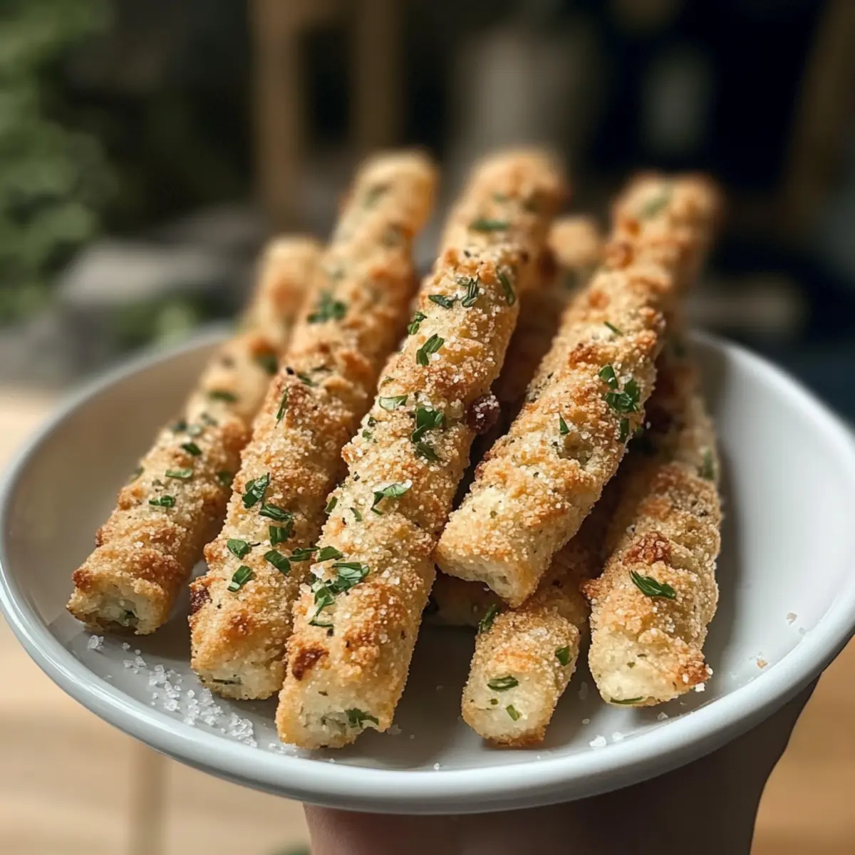 „Hast du schon einmal den köstlichen Duft von frischem Bärlauch in der Luft wahrgenommen?“ Diese aromatischen Noten begleiten mich immer, wenn ich die ersten Bärlauchstangerl zubereite. Diese einfachen, aber unglaublich schmackhaften Wild Garlic Sticks sind nicht nur ein Hit auf jedem Frühstückstisch, sondern auch ein echter Geheimtipp für spontane Snack-Momente. Die Kombination aus fluffigem Hefeteig und nussigem Kürbiskernmehl sorgt für eine verführerische, goldbraune Kruste und ein luftiges Inneres. Perfekt zuzubereiten, ganz gleich, ob du ein erfahrener Bäcker oder ein Neuling in der Küche bist. Und das Beste: Sie sind nicht nur vegetarisch, sondern auch eine gesunde, schnelle Option für dein nächstes Frühlingsbrunch! Neugierig, wie du diese delikaten Sticks genießen kannst? Lass uns gemeinsam in die Zubereitung eintauchen! Warum sind Bärlauchstangerl ein Muss? Einfachheit, die begeistert: Diese Bärlauchstangerl sind schnell und unkompliziert zubereitet, perfekt für jeden Kochlevel. Aromatischer Genuss: Der frische Bärlauch bringt eine unverwechselbare Geschmacksexplosion, die deine Sinne verführt. Vielfältige Variationen: Ob mit Käse, Chili oder mediterranen Zutaten – du kannst sie ganz nach deinem Geschmack anpassen! Köstliche Begleiter: Ideal zu Suppen oder Salaten, werden sie zum Star deines nächsten Brunchs oder Abendessens. Gesund und leicht: Mit nur 210 Kalorien pro Stück sind sie der perfekte Snack ohne schlechtes Gewissen. Vorbereitung leicht gemacht: Bereite sie im Voraus zu und genieße sie frisch aus dem Ofen für ein unvergleichliches Geschmackserlebnis. Wenn du Lust auf etwas Herzhaftes hast, schau dir auch unser Rezept für Wuerziges Rinderfleisch Mit an! Bärlauchstangerl Zutaten Hinweis: Bereite dich auf den köstlichen Duft und Geschmack dieser Bärlauchstangerl vor! Für den Teig Dinkelmehl (Spelt Flour) – Sorgt für eine leichte, luftige Textur im Teig; kann auch durch Weizenmehl ersetzt werden. Kürbiskernmehl (Pumpkin Seed Flour) – Verleiht einen nussigen Geschmack und erhöht den Proteingehalt; ersetzbar durch mehr Dinkel- oder normales Mehl. Hefe (Yeast) – Lässt den Teig aufgehen und sorgt für die fluffige Konsistenz; darauf achten, dass sie nicht mit zu heißem Wasser in Kontakt kommt. Wasser (Water) – Aktiviert die Hefe, wobei lauwarmes Wasser am besten geeignet ist. Olivenöl (Olive Oil) – Verbessert den Geschmack und die Teigstruktur; kann durch ein neutrales Öl ersetzt werden. Salz (Salt) – Unverzichtbar für die Geschmacksverstärkung. Für die Füllung Bärlauch (Wild Garlic) – Gibt den Sticks ihren milden Knoblauchgeschmack, unverzichtbar für dieses Rezept; kann auch in Olivenöl eingelegt werden. Optionales Topping: Käse – Optional hinzufügen für extra Cremigkeit und Geschmack. Samen – Für zusätzlichen Crunch und Nährstoffe auf die Oberseite streuen. Grobkörniges Salz – Für einen herzhaften Finish, das den Geschmack verstärkt. Diese Bärlauchstangerl sind nicht nur einfach zuzubereiten, sondern auch perfekt anpassbar; experimentiere mit verschiedenen Zutaten, um deine eigenen geschmacklichen Highlights zu setzen! Schritt-für-Schritt-Anleitung für Bärlauchstangerl Step 1: Teig vorbereiten Vermische in einer großen Schüssel Dinkelmehl, Kürbiskernmehl, Hefe, lauwarmes Wasser, Olivenöl und Salz. Rühre die Zutaten gründlich mit einem Holzlöffel, bis ein klebriger Teig entsteht. Achte darauf, die Hefe nicht mit Wasser über 40 °C in Kontakt zu bringen, um die Aktivierung zu gewährleisten. Step 2: Kneten Knete den Teig auf einer leicht bemehlten Arbeitsfläche für etwa 5-7 Minuten. Drücke und faltet den Teig kräftig, um das Gluten zu entwickeln und eine luftige Textur zu erreichen. Der Teig sollte geschmeidig und elastisch sein, wenn du ihn fertig geknetet hast. Step 3: Teig ruhen lassen Bedecke die Schüssel mit einem sauberen Küchentuch und stelle sie an einen warmen Ort. Lass den Teig für 1-1,5 Stunden ruhen, bis er sich in der Größe verdoppelt hat. Achte darauf, dass der Teig schön aufgeht und luftig wird. Step 4: Sticks formen Nachdem der Teig aufgegangen ist, rolle ihn auf einer bemehlten Fläche etwa 1-2 cm dick aus. Schneide den Teig in gleichmäßige Streifen oder Sticks. Optional kannst du den gehackten Bärlauch mit etwas Olivenöl vermischen, bevor du ihn gleichmäßig auf den Teig verteilst. Step 5: Backen Heize den Ofen auf 200 °C vor und stelle ein Backblech mit Wasser auf den Boden des Ofens, um Dampf zu erzeugen. Lege die geformten Bärlauchstangerl auf ein mit Backpapier belegtes Blech. Backe sie 15-20 Minuten, bis sie goldbraun und knusprig sind. Step 6: Abkühlen und Servieren Lass die Bärlauchstangerl nach dem Backen einige Minuten auf einem Kuchengitter abkühlen. Serviere sie warm oder bei Zimmertemperatur, als köstlichen Snack oder Beilage. Diese Sticks sind am besten frisch, können aber auch für später aufbewahrt werden. Expert Tips für Bärlauchstangerl Teig richtig kneten: Knete den Teig unbedingt gut, um eine luftige und lockere Textur zu erreichen. Skimp nicht auf diesem Schritt, um perfekte Bärlauchstangerl zu erzielen. Hefe aktivieren: Achte darauf, dass das Wasser lauwarm ist, damit die Hefe aktivieren kann. Zu heißes Wasser kann die Hefe abtöten und den Teig daran hindern, aufzugehen. Kreative Toppings: Experimentiere mit grobem Salz oder öffne den Teig für mehr Geschmack durch die Zugabe von Samen oder Käse vor dem Backen. Das bringt zusätzliche Textur in deine Bärlauchstangerl. Vorbereiten und Aufbewahren: Bereite die Sticks im Voraus zu und backe sie frisch, wenn du sie servieren möchtest. So kannst du jederzeit warme, köstliche Snacks genießen. Einarbeiten von Füllungen: Du kannst auch andere Zutaten wie Käse oder getrocknete Tomaten hinzufügen, um den Geschmack weiter zu variieren. Vorbereitung der Bärlauchstangerl für stressfreies Kochen Diese Bärlauchstangerl sind ideal für die Meal-Prep! Du kannst den Teig bis 