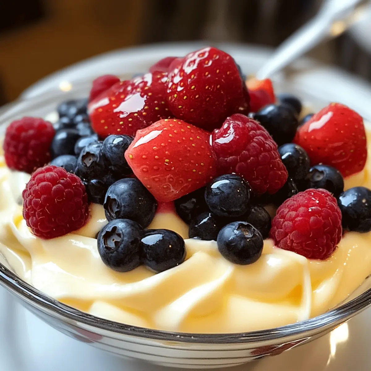 Ein satter Schimmer in der Glasvitrine kündigt das an, was gleich auf unseren Tellern landen wird: Bayerische Creme und Beeren. Bei jedem Löffel nimmt uns die cremige, samtige Textur der Bavarian Cream mit auf eine sinnliche Reise, während die frischen Beeren mit ihrem spritzigen Geschmack für aufregende Akzente sorgen. Diese elegante Nachspeise ist nicht nur ein echter Hingucker, sondern auch erstaunlich einfach zuzubereiten. Mit wenigen Zutaten und ohne großen Aufwand zauberst du ein Gericht, das ideal für besondere Anlässe oder gemütliche Familienabende ist. Und das Beste daran? Du kannst sie schon im Voraus zubereiten und so mehr Zeit mit deinen Gästen verbringen. Frag dich, welche saisonalen Beeren du verwenden wirst, um dein ganz persönliches Meisterwerk zu kreieren! Warum wirst du diese Nachspeise lieben? Eleganz und Einfachheit: Die Bayerische Creme ist nicht nur glamourös, sondern auch unkompliziert in der Zubereitung. Mit nur wenigen Zutaten verwandelst du eine einfache Grundmasse in ein luxuriöses Dessert. Vielfältige Variationen: Ob mit fruchtiger Erdbeer- oder erfrischender Himbeer-Note – die Möglichkeiten sind grenzenlos! Jedes Mal erhältst du ein neues Geschmackserlebnis. Perfekt für jede Gelegenheit: Sei es ein festliches Dinner oder ein BBQ mit Freunden, diese Nachspeise zieht alle in ihren Bann und sorgt für strahlende Gesichter. Zeit für deine Gäste: Du kannst die Creme bereits einen Tag vorher zubereiten, damit du während des Essens mehr Zeit für deine Liebsten hast. Frische Aromen: Kombiniere sie mit saisonalen Beeren für ein noch intensiveres Geschmackserlebnis. Überlege, ob du nicht auch ein leckeres Zucchini Spinat Feta Auflauf Rezept dazu servierst! Bayerische Creme und Beeren Zutaten • Diese Zutatenliste sorgt dafür, dass deine Bayerische Creme und Beeren ein voller Erfolg werden! Für die Creme: Schlagsahne – sorgt für die cremige, reichhaltige Textur. Alternativ: Verwende Kokosnusscreme für eine milchfreie Variante. Milch – liefert Feuchtigkeit und balanciert die Reichhaltigkeit. Substitution: Mandelmilch für einen nussigen Geschmack. Zucker – süßt die Creme. Du kannst Agavendicksaft oder Honig für eine natürliche Süße verwenden. Eigelb – gibt der Creme die charakteristische Puddingkonsistenz. Vegane Alternative: Verwende eine Verdickungsmittel wie Maisstärke. Gelatine – sorgt dafür, dass die Creme eine glatte Textur erhält. Agar-Agar als pflanzliche Alternative. Vanilleextrakt – verleiht der Creme eine wunderbare Aromatik. Für einen anderen Duft kannst du auch Mandelextrakt verwenden. Für die Beeren: Frische Beeren (z.B. Erdbeeren, Himbeeren) – bringen Frische und visuelle Attraktivität. Du kannst jede Saisonbeere verwenden, um dein individuelles Dessert zu gestalten. Verwandle deine nächste Feier mit dieser eleganten Bayerischen Creme und Beeren in ein unvergessliches Erlebnis! Schritt-für-Schritt-Anleitung für Bayerische Creme und Beeren Step 1: Die Creme-Basis zubereiten In einem Topf die Schlagsahne, Milch, Zucker und den Vanilleextrakt bei mittlerer Hitze erwärmen, bis die Mischung leicht dampft, aber nicht kocht. Dies dauert etwa 5 Minuten. Rühre gelegentlich um, damit nichts anbrennt. Achte darauf, dass die Mischung heiß genug ist, um den Zucker aufzulösen, aber nicht kochen. Step 2: Eigelb vermischen In einer separaten Schüssel die Eigelbe mit einem Schneebesen gut verquirlen, bis sie hell und cremig sind, etwa 2 Minuten. Um die Eigelbe nicht zu gerinnen, gib langsam einen Schöpflöffel der warmen Sahnemischung dazu und rühre ständig. Dies wird als Temperieren bezeichnet und verhindert, dass die Eier kochen. Step 3: Gelatine hinzufügen Die Gelatine gemäß den Anweisungen auf der Verpackung in etwas warmem Wasser auflösen, was etwa 5 Minuten dauert. Mische die aufgelöste Gelatine dann vorsichtig unter die Eigelb-Sahne-Mischung, bis alles gut vermischt ist. Dies verleiht der Bayerischen Creme eine glatte und stützende Textur. Step 4: Abkühlen und Sahne unterheben Lass die Creme-Mischung etwa 15 Minuten abkühlen, bis sie lauwarm ist. Sobald sie etwas abgekühlt ist, hebe vorsichtig die steif geschlagene Sahne unter die Mischung, bis alles gut vermischt und cremig ist. Achte darauf, die Luftigkeit der Sahne zu bewahren, um eine zarte Textur zu garantieren. Step 5: Kühlen Gieße die fertige Mischung gleichmäßig in Dessertschalen oder Gläser und achte darauf, sie nicht zu überfüllen. Stelle die Schalen dann mindestens 4 Stunden in den Kühlschrank, damit die Bayerische Creme fest wird. Du kannst auch über Nacht kühlen, sodass sie perfekt fest ist. Step 6: Mit Beeren servieren Vor dem Servieren die frischen Beeren deiner Wahl waschen und auf die gekühlte Bayerische Creme legen. Verwende je nach Saison Erdbeeren, Himbeeren oder andere Beeren, um deinem Gericht Farbe und Frische zu verleihen. Dekoriere nach Belieben mit Minzblättern für einen zusätzlichen visuellen Akzent. Bayerische Creme und Beeren Variationen Lass deiner Kreativität freien Lauf und personalisiere dieses herrliche Dessert nach deinem Geschmack! Milchfreies Experiment: Verwende Kokosnusscreme statt Schlagsahne für eine milchfreie, exotische Variante. Der zarte Kokosgeschmack wird deine Sinne begeistern! Nussige Note: Ersetze die Milch durch Mandelmilch, um eine subtile nussige Tiefe zu erreichen. Dieser leichte Twist sorgt für ein besonderes Mundgefühl. Natürliche Süße: Tausche den Zucker gegen Honig oder Agavendicksaft aus, um einen gesünderen, natürlichen Zuckergeschmack zu erzielen. Geschmack und Gesundheit in perfekter Harmonie! Vegane Version: Nutze Maisstärke als Verdickungsmittel anstelle von Eigelb. Du wirst überrascht sein, wie cremig und befriedigend die vegane Variante ist. Fruchtige Fülle: Experimentiere mit verschiedenen saisonalen Beeren oder füge eine Schicht fruchtiger Kompott zwischen Creme und Beeren hinzu. So machst du jeden Bissen zu einem aufregenden Erlebnis. Zitroniger Ki