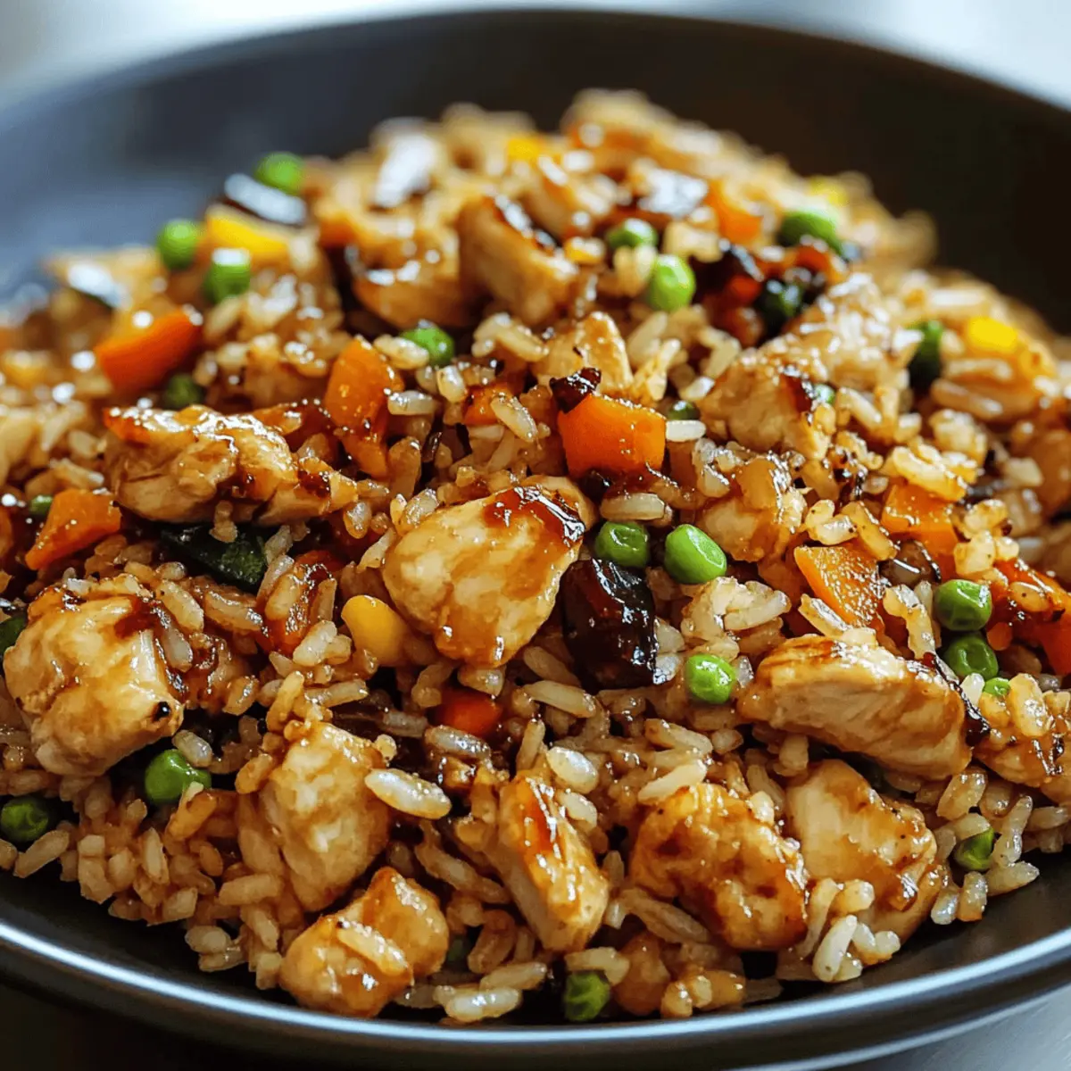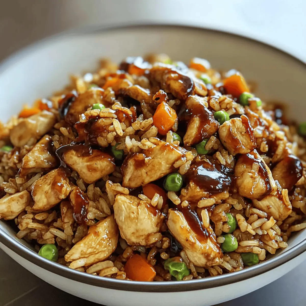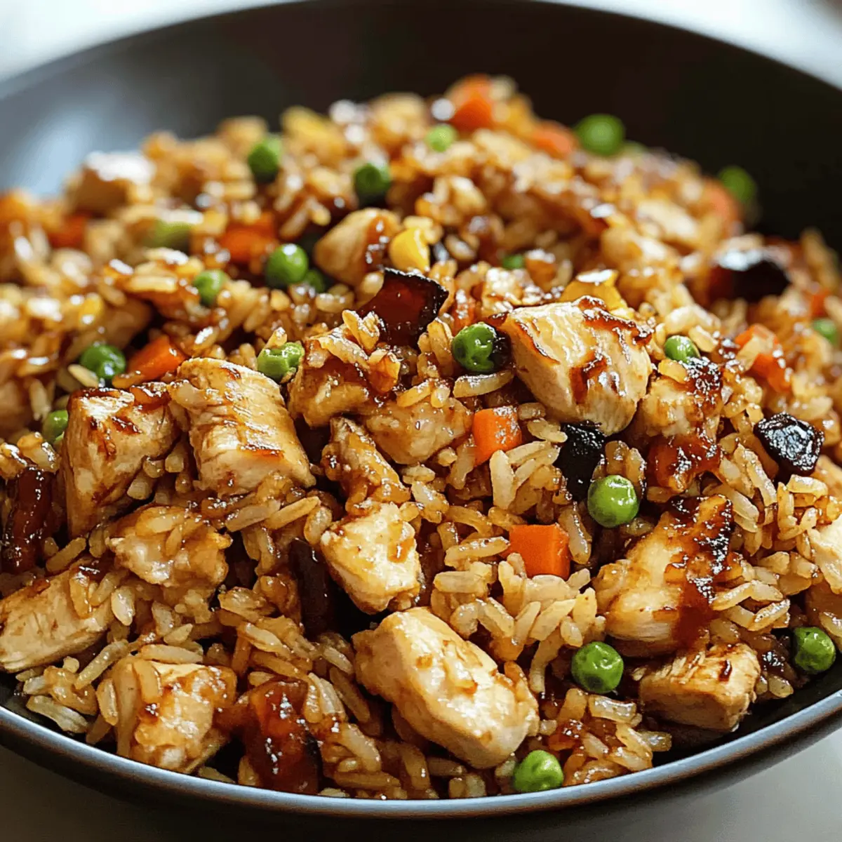 Als ich das erste Mal den Duft von gebratenem Reis mit BBQ-Hähnchen in der Luft wahrnahm, war es, als ob ich in eine gastronomische Entdeckungsreise eintauchte. Dieses Rezept für Easy Japanese BBQ Chicken Fried Rice verbindet nicht nur das Aroma zarter marinierten Hähnchenbrust mit buntem Gemüse, sondern bringt auch die Leichtigkeit eines schnellen Abendessens auf den Tisch. In nur 30 Minuten zubereitet, eignet sich dieses Gericht nicht nur perfekt für geschäftige Wochentage, sondern auch für gesellige Zusammenkünfte mit Freunden. Und das Beste daran? Es lässt sich ganz nach deinem Geschmack anpassen! Ob du zusätzliche Gemüse magst oder die BBQ-Sauce variieren möchtest, dieser schnelle Klassiker ist ideal für die Essensplanung. Bist du bereit, deine Küche mit diesem köstlichen Fusionselement aufzufrischen? Warum lieben alle dieses Rezept? Einfachheit pur: Die Zubereitung ist schnell und unkompliziert und erfordert nur grundlegende Kochkenntnisse. Anpassungsfähig: Du kannst Gemüse und BBQ-Sauce nach deinem Geschmack variieren, was für ständige Abwechslung sorgt. Schnelle Zubereitungszeit: In nur 30 Minuten auf dem Tisch – perfekt für hektische Abende! Eine Fusion der Aromen: Mit der Kombination aus asiatischen und BBQ-Geschmäckern wird jede Mahlzeit zum Erlebnis. Ideal für Meal Prep: Bereite eine große Portion vor, damit du in der kommenden Woche köstliche Reste hast. Probiere auch Butter Honig BBQ dazu für einen zusätzlichen Geschmacksfaktor! BBQ Chicken Fried Rice Zutaten • Entdecke die geschmackliche Vielfalt dieses Gerichts mit diesen einfachen Zutaten! Für das Hähnchen Hähnchenbrustfilets ohne Haut – Liefert gesunde Proteine; kann durch übrig gebliebenes gegrilltes Hähnchen ersetzt werden. BBQ-Sauce – Fügt die charakteristische rauchige Süße hinzu; verwende deine Lieblingsmarke, um den Geschmack zu variieren. Für den Reis Jasminreis (gekocht, am besten vom Vortag) – Der ideale Grundbaustein für diese Speise; sorgt für die fluffige Textur. Für das Gemüse Gemischtes Gemüse (Erbsen, Karotten, Mais) – Erhöht den Nährwert und die Farbe; saisonal anpassbar mit Brokkoli oder Paprika. Frühlingszwiebeln – Bringt Frische und ein mildes Zwiebelaroma; kann bei Bedarf durch Schnittlauch ersetzt werden. Für die Würze Sojasauce (low-sodium) – Fügt Umami und Salzigkeit hinzu; je nach Vorliebe anpassen. Step-by-Step Instructions für Easy Japanese BBQ Chicken Fried Rice Step 1: Hähnchen marinieren Schneide die Hähnchenbrustfilets in kleine Würfel und lege sie in eine Schüssel. Füge die Hälfte der BBQ-Sauce hinzu und mariniere das Hähnchen für mindestens 15 Minuten. Stelle sicher, dass das Hähnchen gleichmäßig von der Sauce umhüllt ist, damit es beim Kochen die Aromen aufnimmt. Step 2: Hähnchen braten Erhitze eine große Pfanne oder Wok bei mittelhoher Temperatur und gib etwas Öl hinein. Sobald das Öl heiß ist, füge das marinierte Hähnchen hinzu und brate es etwa 6-8 Minuten lang, bis es goldbraun und durchgegart ist. Achte darauf, das Hähnchen regelmäßig umzurühren, um eine gleichmäßige Bräunung zu erzielen. Step 3: Gemüse hinzufügen Gib das gemischte Gemüse (Erbsen, Karotten und Mais) in die Pfanne zu dem Hähnchen. Sauté das Gemüse zusammen mit dem Hähnchen für 3-4 Minuten, bis es erhitzt ist und leicht weich wird. Dies verleiht deinem Easy Japanese BBQ Chicken Fried Rice nicht nur Farbe, sondern auch wichtige Nährstoffe. Step 4: Reis einarbeiten Füge den gekochten Jasminreis, die restliche BBQ-Sauce und die Sojasauce in die Pfanne dazu. Mische alles gut durch und brate es für etwa 2 Minuten weiter, bis alles gleichmäßig erhitzt ist. Der Reis sollte von der Sauce gut überzogen werden und die Aromen gut aufnehmen. Step 5: Gericht vollenden Kurz bevor du das Easy Japanese BBQ Chicken Fried Rice servierst, rühre die gehackten Frühlingszwiebeln unter. Stelle sicher, dass alles gut durchgewärmt ist, und serviere es heiß. Wenn gewünscht, kannst du zusätzlich einen Klecks BBQ-Sauce an den Tellerrand geben, um das Gericht noch schmackhafter zu machen. Was passt zum Easy Japanese BBQ Chicken Fried Rice? Gönn dir eine kulinarische Reise und erweitere dein Geschmackserlebnis mit diesen köstlichen Beilagen, die das Herzstück deines Essens bilden. Gegrilltes Gemüse: Zucchini und Paprika, leicht gewürzt und geröstet, bringen frische und knackige Texturen ins Spiel. Sie ergänzen die Rauchigkeit des Fried Rice. Frischer Gurkensalat: Mit Reisessig und Sesamöl angemacht; bietet eine erfrischende Note, die das reichhaltige Hähnchen ausgleicht. Ein leichter Biss, der perfekt harmoniert. Miso-Suppe: Diese warme, herzhafte Suppe rundet dein Essen ab und bringt eine zusätzliche Tiefe an umami Geschmäckern mit sich. Schnell zubereitet und einfach köstlich. Krosse Frühlingsrollen: Dienen als knackige Vorspeise, die mit ihrer Füllung aus Gemüse und/oder Fleisch einen harmonischen Kontrast zu den Aromen des Fried Rice bietet. Eiscreme: Eine süße Erleichterung nach dem herzhaften Hauptgericht. Wähle z. B. Matcha oder Sesam für eine fusionsasiatische Note und ein cooles Ende deiner Mahlzeit. Lagerungstipps für BBQ Chicken Fried Rice Zimmertemperatur: Halte das Gericht nicht länger als 2 Stunden bei Raumtemperatur, um das Wachstum von Bakterien zu vermeiden. Kühlschrank: Bewahre das Easy Japanese BBQ Chicken Fried Rice in einem luftdichten Behälter auf; es bleibt bis zu 4 Tage frisch. Gefrierschrank: Friere die Portionen in gefrierfreundlichen Behältern ein, um sie bis zu 3 Monate zu konservieren. Achte darauf, das Gericht gut abzudecken, um Gefrierbrand zu verhindern. Aufwärmen: Erwärme die Reste auf dem Herd oder in der Mikrowelle, bis sie vollständig durchgeheizt sind. Füge eventuell einen Spritzer Wasser hinzu, um den Reis wieder aufzulockern. Meal Prep für Easy Japanese BBQ Chicken Fried Rice Das Rezept für Easy Japanese BBQ Chicken Fried Rice ist eine wunderbare Möglichkeit, Zeit in dein