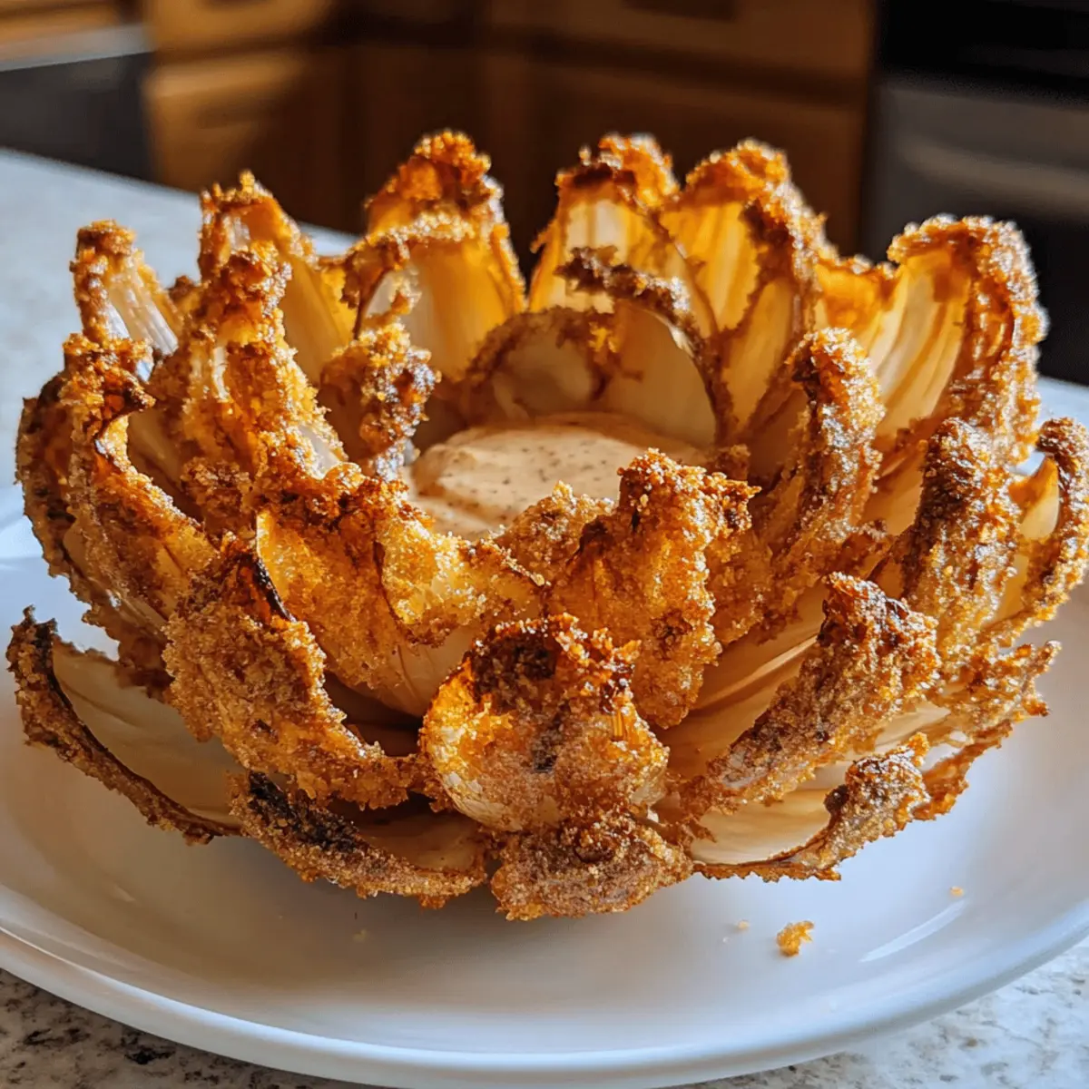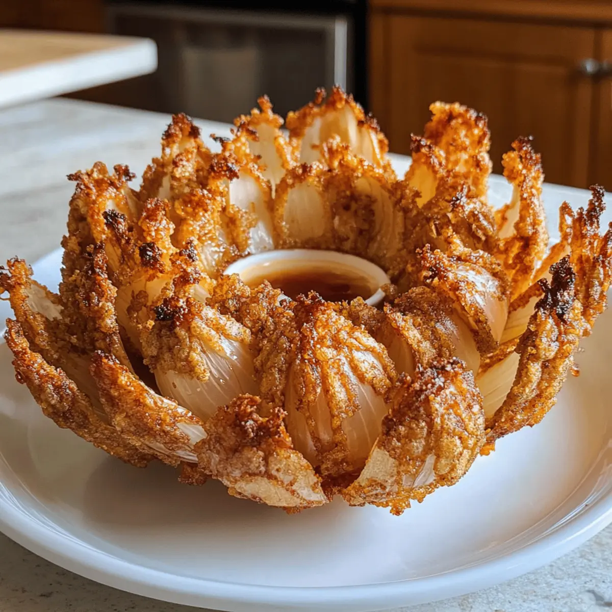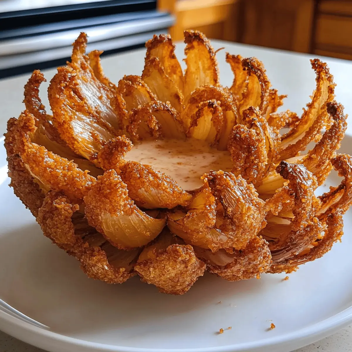 Wenn ich an einen gemütlichen Abend mit Freunden denke, kommt mir sofort der Gedanke an knusprige Snacks, die man einfach teilen kann. Die Air Fryer Blooming Onion ist nicht nur ein echter Hingucker, sondern auch eine gesunde Alternative zu traditionellen frittieren Snacks. Dieses einfache Rezept bietet ein unverwechselbares Erlebnis, indem es das Beste aus unseren Lieblings-Aperitif kombiniert: knackig, salzig und voller Geschmack. Die Zubereitung ist schnell und mühelos, ideal für den nächsten Spieltag oder eine gesellige Runde. Und das Beste? Ihr könnt ohne schlechtes Gewissen schlemmen, denn dieses Gericht ist eine leichtere Variante und versorgt euch trotzdem mit dem gewohnten Genuss. Seid ihr bereit, eure Gäste mit dieser verblüffenden Köstlichkeit zu beeindrucken? Warum ist dieses Rezept ein Hit? Einfachheit: Die Zubereitung dieser Air Fryer Blooming Onion ist kinderleicht und erfordert nur grundlegende Kochkenntnisse. Gesunder Genuss: Mit weniger Öl zur Zubereitung bietet dieses Rezept eine gesunde Alternative zu herkömmlich frittierten Snacks. Vielseitigkeit: Ihr könnt die Gewürze nach eurem Geschmack anpassen und die Dips variieren, um euer eigenes, individuelles Erlebnis zu schaffen. Probiert vielleicht unsere leckeren Dip-Rezepte für eine besondere Note. Zeitsparend: In weniger als 30 Minuten steht diese köstliche Vorspeise auf dem Tisch – ideal für unerwartete Gäste! Visuelles Erlebnis: Diese aufblühende Zwiebel sieht nicht nur beeindruckend aus, sie ist auch ein perfektes Gesprächsthema für eure Zusammenkünfte! Crowd-Pleaser: Dieses Rezept wird sicherlich bei allen gut ankommen und die Herzen eurer Gäste im Sturm erobern! Blooming Onion Zutaten Für die Zwiebel • Weiße Zwiebel – Die Basis des Rezepts, idealerweise groß für einen markanten Blüteffekt; Vidalia-Zwiebeln können einen süßeren Geschmack bieten. • Allzweckmehl – Dient als Panierstruktur für die Zwiebel; sorgt für Knusprigkeit. • Milch – Diese sorgt für Feuchtigkeit in der Ei-Wasch; kann durch pflanzliche Milch für eine laktosefreie Version ersetzt werden. • Eier – Binden das trockene Paniermehl an die Zwiebel; für Veganer kann Leinsamenmehl verwendet werden. • Paprika – Sorgt für Farbe und Geschmack; geräucherte Paprika bietet zusätzlich ein anderes Geschmacksprofil. • Knoblauchsalz – Verstärkt den herzhaften Geschmack; kann durch normales Salz und frischen Knoblauch ersetzt werden. • Dill und Oregano – Fügen kräuterige Noten hinzu; italienische Gewürzmischungen können alternativ verwendet werden. • Olivenölspray – Für zusätzliche Knusprigkeit beim Frittieren; kann durch andere Kochsprays oder Pinsel mit Öl ersetzt werden. Für die Dipsauce • Mayonnaise – Basis der Sauce; griechischer Joghurt bietet eine leicht andere, säuerliche Option. • Sauerrahm – Fügt Cremigkeit hinzu; kann durch einfachen Joghurt für eine leichtere Variante ersetzt werden. • Ketchup – Bringt Süße und Säure. • Cremige Meerrettichsauce & Worcestersoße – Sorgt für einen einzigartigen Geschmack; können weggelassen werden, falls nicht verfügbar. • Cayennepfeffer – Fügt Schärfe hinzu; für weniger Schärfe einfach weglassen. Schritt-für-Schritt-Anleitung für die Luftfritteuse blühende Zwiebel Step 1: Zwiebel vorbereiten Schälen Sie die weiße Zwiebel und schneiden Sie den oberen Teil ab. Schneiden Sie die Zwiebel währenddessen zur Wurzel hin in Petalen, indem Sie gleichmäßig nach unten schneiden. Um sicherzustellen, dass sich die Petalen öffnen, legen Sie die Zwiebel für etwa 10 Minuten in Wasser. Step 2: Panade vorbereiten In einer Schüssel verquirlen Sie Milch und Eier gut miteinander. In einer anderen Schüssel vermischen Sie Allzweckmehl, Paprika, Knoblauchsalz, Dill und Oregano. Tauchen Sie die Zwiebel zunächst in die Mehlmischung, dann in die Eiermischung, und schließlich erneut in das Mehl, um eine gleichmäßige Beschichtung zu erreichen. Step 3: Airfryer vorbereiten Legen Sie die panierte Zwiebel vorsichtig auf etwas Alufolie im Korb der Luftfritteuse. Sprühen Sie sie großzügig mit Olivenölspray ein und decken Sie sie locker mit Folie ab, um ein Verbrennen zu verhindern. Diese Schritte sorgen für eine perfekte Knusprigkeit. Step 4: Kochprozess starten Heizen Sie die Luftfritteuse auf 170°C vor und frittieren Sie die Zwiebel 10 Minuten lang. Drehen Sie anschließend die Temperatur auf 180°C hoch, sprühen Sie die Zwiebel erneut mit Öl und kochen Sie sie für weitere 10–12 Minuten. Entfernen Sie die Folie und frittieren Sie für zusätzliche 3–5 Minuten, bis die Zwiebel schön goldbraun ist. Step 5: Dipsauce zubereiten Während die Luftfritteuse arbeitet, mischen Sie alle Zutaten für die Dipsauce in einer Schüssel gründlich. Servieren Sie diese Sauce in der Mitte der fertig gegarten Luftfritteuse blühenden Zwiebel. Diese Kombination wird Ihre Gäste begeistern und ist perfekt, um die knusprige Zwiebel aufzupeppen. Variationen der blühenden Zwiebel Egal, ob ihr einen neuen Geschmack ausprobieren oder eine spezielle Diät berücksichtigen möchtet, diese kreativen Variationen bringen frischen Wind in euer Rezept! Vegan: Ersetzt die Eier mit Leinsamenmehl und die Milch mit einer pflanzlichen Alternative, um eine köstliche vegane Version zu kreieren. Würzige Note: Fügt Cayennepfeffer oder Chili-Pulver in die Mehlmischung ein, um deiner blühenden Zwiebel eine feurige Schärfe zu verleihen. Diese Mischung wird für einen aufregenden Biss sorgen. Käseliebhaber: Streut geriebenen Parmesan oder Cheddar über die Zwiebel, bevor ihr sie in die Luftfritteuse gebt, für eine zusätzliche käsige Kruste, die einfach unwiderstehlich ist. Kräuterfrisch: Anstatt getrocknete Kräuter zu verwenden, könnt ihr frische Kräuter wie Schnittlauch oder Petersilie für intensiveren Geschmack verwenden. So wird eure Zwiebel zu einem frischen Erlebnis. Süßes Schärfe-Dip: Kombiniert Ketchup mit einem Schuss Sriracha für 