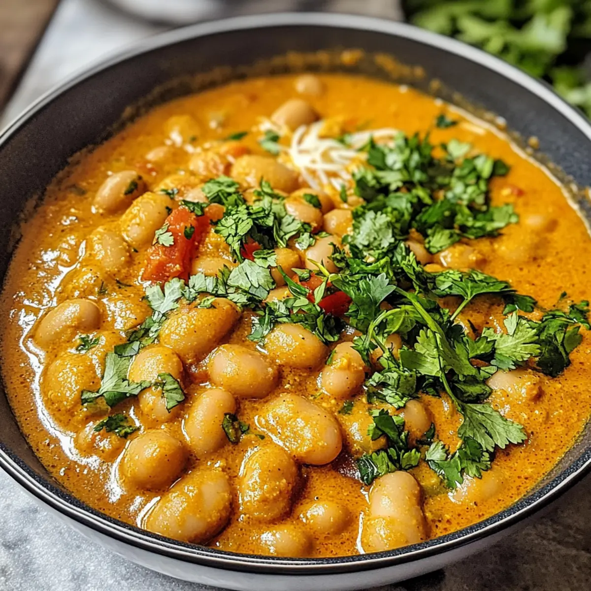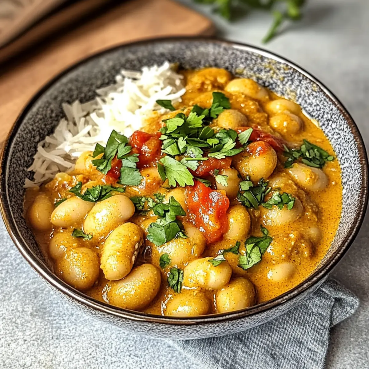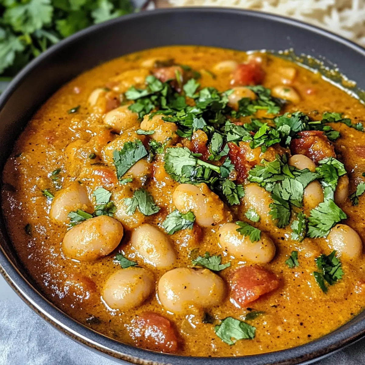 Die Aromen der indischen Märkte direkt in meiner Küche – das ist der Zauber meines Butterbohnen-Currys. Diese cremige, vegane Variante ist nicht nur eine Geschmacksexplosion, sondern auch ein echtes Komfortessen, das in nur 30 Minuten auf dem Tisch steht. Ideal für stressige Wochentage, bringt dieses Gericht die nötige Wärmewohlfühlatmosphäre in euer Zuhause, während es gleichzeitig nahrhaft, glutenfrei und proteinreich ist. Ob mit frischen Tomaten, aromatischen Gewürzen oder einer Prise Kreativität – die flexiblen Variationen machen dieses Curry zum perfekten Begleiter. Obwohl die Zubereitung einfach ist, kann jeder Löffel euch in eine Welt voller exotischer Geschmäcker entführen. Seid ihr bereit, eure Geschmacksnerven zu verwöhnen? Warum ist dieses Curry so besonders? Einfachheit: Die Zubereitung ist kinderleicht und erfordert keine komplizierten Kochkenntnisse. Vielseitig: Mit verschiedenen Gemüsesorten und optionalen Proteinquellen könnt ihr euer Curry ganz nach Belieben anpassen. Aromatisch: Die Kombination aus frischen Gewürzen und cremigen Cashews verleiht diesem Gericht einen himmlischen Geschmack, der zum Träumen einlädt. Schnell: In nur 30 Minuten habt ihr ein köstliches Mahl auf dem Tisch, perfekt für stressige Abende. Außerdem ist es eine gesunde Wahl, die sowohl Veganern als auch Glutenfreien gerecht wird. Ein echtes Wohlfühlessen für die ganze Familie! Butterbohnen-Curry Zutaten • Verwandle dein Kochen mit diesem köstlichen Butterbohnen-Curry! Für die Sauce Butterbohnen – Hauptquelle für Protein und Cremigkeit; verwende Konserven oder selbstgekochte Bohnen. Zwiebel – Basis für den Geschmack; bis zur Transparenz anbraten, um Tiefe zu entwickeln. Ingwer – Fügt Wärme und Würze hinzu; frisch gerieben ist am besten. Knoblauch – Verstärkt das Aroma; gründlich hacken. Frische Tomaten – Tragen Saftigkeit und Säure bei; bei Bedarf können auch Dosentomaten verwendet werden. Tomatenmark – Verdickt die Sauce und intensiviert den Tomatengeschmack; kann weniger verwendet werden, wenn viele frische Tomaten vorhanden sind. Cashews – Erzeugen eine cremige Sauce; in heißem Wasser mindestens 15 Minuten einweichen. Für die Gewürze Garam Masala – Schlüsselgewürzmischung für authentischen Geschmack; nach Geschmack anpassen. Kurkuma – Fügt Farbe und Erdigkeit hinzu; wichtig für gesundheitliche Vorteile. Kreuzkümmel/Koriander – Verstärken die Tiefe des Geschmacks; gemahlene Gewürze für mehr Bequemlichkeit verwenden. Currypulver – Ergänzende Gewürzmischung; je nach Vorliebe variieren. Zimt – Eine Prise Süße; vorsichtig hinzufügen. Für die Flüssigkeit Gemüsebrühe – Flüssigkeitsbasis für die Sauce; kann durch Wasser oder Brühe ersetzt werden. Salz und Pfeffer – Unverzichtbar zur Würze; nach Geschmack anpassen. Vervollständige dein Butterbohnen-Curry mit der richtigen Dosis Geselligkeit und genieße die Reise durch die Aromen Indiens in deinem eigenen Zuhause! Schritt-für-Schritt-Anleitung für das Butterbohnen-Curry Step 1: Cashews einweichen Weiche die Cashews mindestens 15 Minuten lang in heißem Wasser ein, damit sie weich und cremig werden. Diese einfache Vorbereitungsphase ist entscheidend für die Herstellung einer glatten Cashew-Sauce im Butterbohnen-Curry. Step 2: Zwiebeln anbraten Erhitze einen Esslöffel Öl in einer großen, beschichteten Pfanne bei mittlerer Hitze. Füge die gewürfelte Zwiebel hinzu und brate sie etwa 5-7 Minuten lang an, bis sie weich und leicht goldbraun ist. Dies bringt eine süße Basis für das Gericht. Step 3: Ingwer und Knoblauch hinzufügen Rühre den frisch geriebenen Ingwer und den fein gehackten Knoblauch in die Pfanne und koche sie für etwa 1-2 Minuten mit. Achte darauf, dass sie nicht verbrennen, da dies den Geschmack beeinträchtigen kann. Der Duft wird intensiv und einladend! Step 4: Gewürze integrieren Gib das Garam Masala, Kurkuma, Kreuzkümmel, Koriander und eine Prise Zimt dazu und koche die Mischung für weitere 1-2 Minuten. Dies hilft, die Aromen freizusetzen und das Butterbohnen-Curry perfekt würzig zu machen. Step 5: Tomaten und Tomatenmark hinzufügen Füge die gewürfelten frischen Tomaten und das Tomatenmark in die Pfanne hinzu. Lasse die Mischung etwa 3-4 Minuten köcheln, bis die Tomaten weich und saftig sind. Rühre gelegentlich um, um ein Anhaften zu vermeiden. Step 6: Mit Brühe köcheln lassen Gieße die Gemüsebrühe hinzu, rühre gut um und decke die Pfanne ab. Lasse das Curry bei niedriger Hitze etwa 12 Minuten köcheln. Dies sorgt dafür, dass sich die Aromen gut vermischen und duftet herrlich. Step 7: Cashew-Sahne zubereiten Gieße die eingeweichten Cashews ab und gib sie zusammen mit etwa einer Tasse der abgekühlten Curry-Sauce in einen Mixer. Püriere die Mischung, bis sie wunderbar cremig und glatt ist. Diese Sahne wird das Butterbohnen-Curry verfeinern. Step 8: Butterbohnen hinzufügen Rühre die abgetropften Butterbohnen und die cremige Cashew-Sauce in das Curry ein. Erhitze alles für weitere 5 Minuten bei niedriger Hitze, bis die Bohnen heiß sind und alles gut vermischt ist. Step 9: Würzen und garnieren Schmecke das Curry mit Salz und Pfeffer ab, um den Geschmack abzurunden. Garniere das cremige Butterbohnen-Curry mit frischem Koriander und gerösteten Sesamsamen für das letzte i-Tüpfelchen, bevor du es servierst. Butterbohnen-Curry Variationen Entdecke, wie du dein Butterbohnen-Curry individuell anpassen kannst, um neue Geschmacksrichtungen und Texturen zu erleben! Kichererbsen: Ersetze Butterbohnen durch Kichererbsen für eine nussige Note und hervorragende Proteinquelle. Gemüseschicht: Füge zusätzliches Gemüse wie Zucchini, Spinat oder Karotten hinzu, um das Curry bunt und nährstoffreich zu gestalten. Diese Variationen bringen nicht nur Farbe, sondern auch zusätzliche Vitamine in dein Gericht. Mandelcreme: Ersetze die Cashewcreme durch Mandelcreme für eine nussfreie, aber ebenso cremige Variante, die das Curry leich