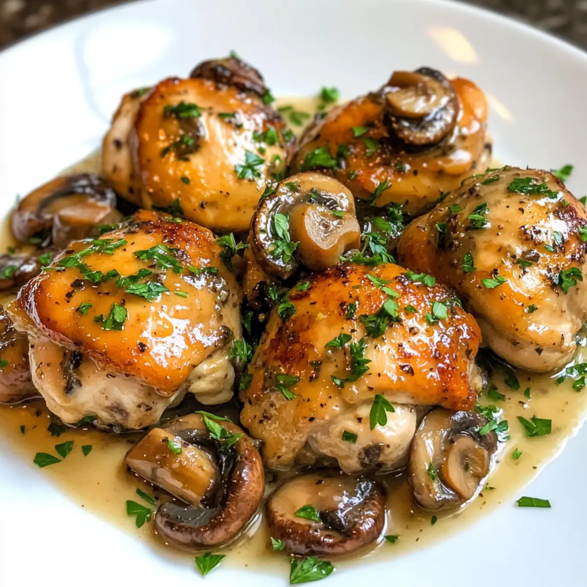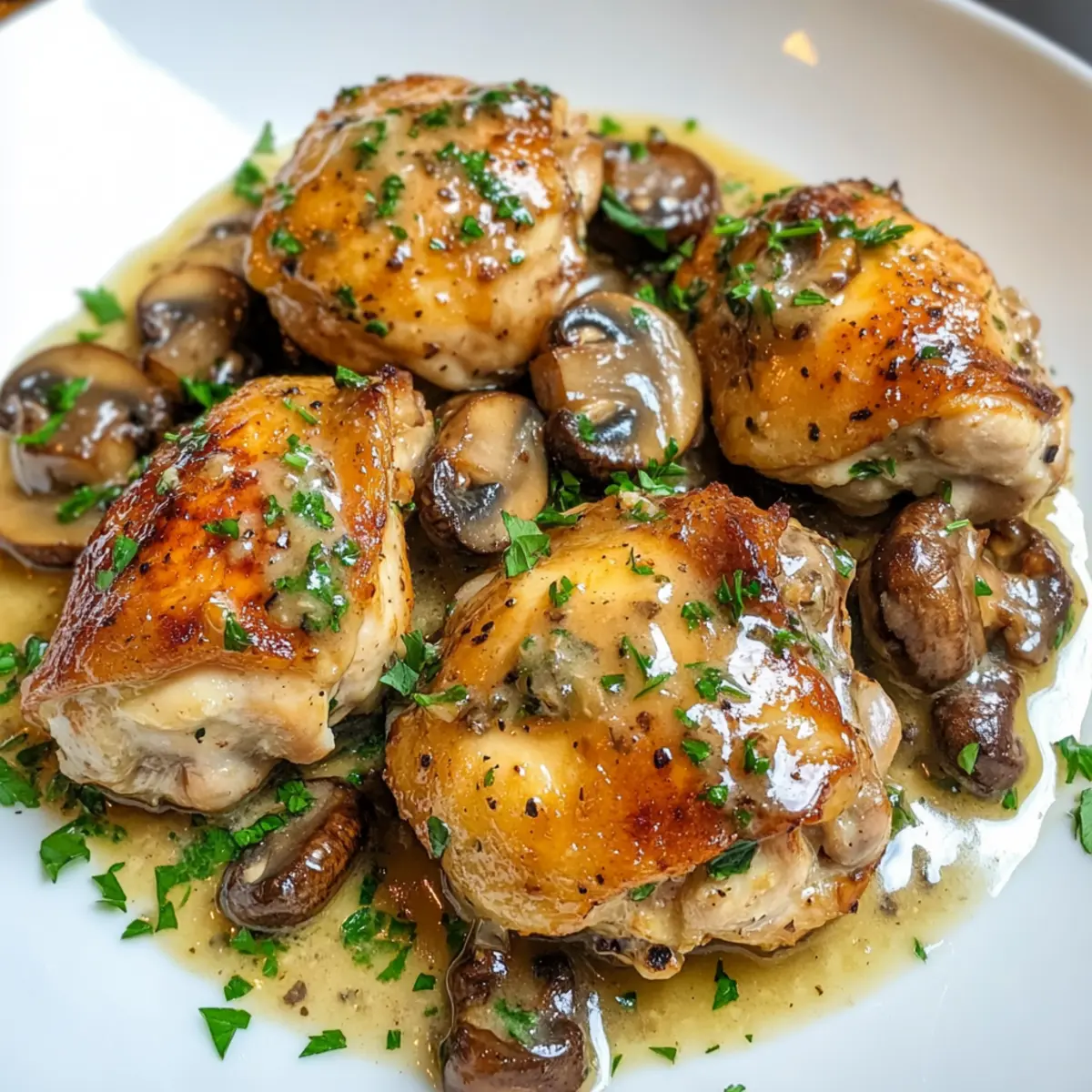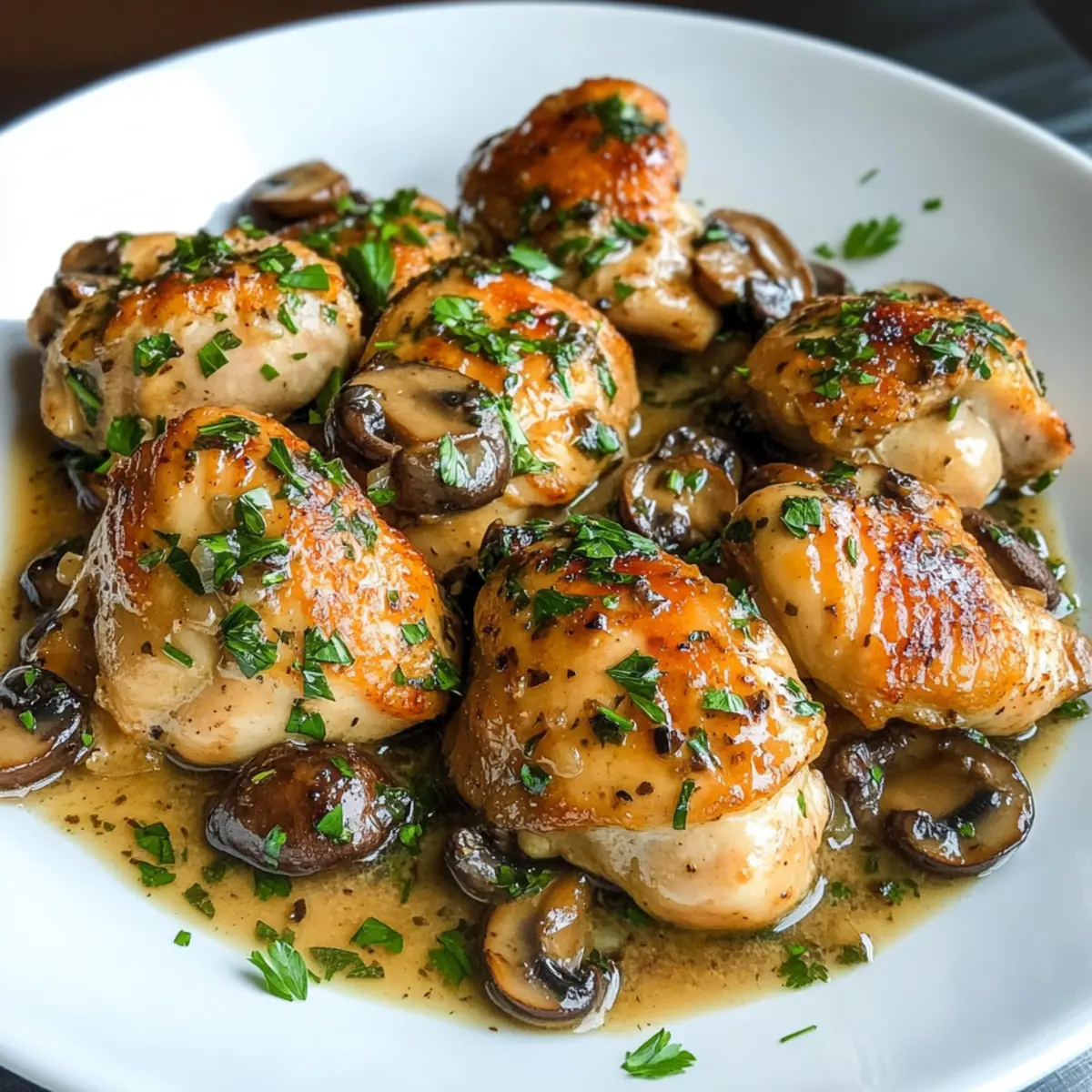 Als ich neulich in meiner Küche stand, um ein schnelles Abendessen zuzubereiten, überkam mich der unwiderstehliche Duft von gebratenen Pilzen und zartem Hühnchen. Die Zubereitung von Butterhühnchen und Pilzsauce ist nicht nur einfach, sondern auch eine wahre Freude für die Sinne! Diese saftigen Hähnchenschenkel, perfekt in einer reichhaltigen, aromatischen Pilzsauce, lassen sich in weniger als 30 Minuten zubereiten und sind die ideale Lösung für hektische Wochentage. Egal, ob du sie einfach mit frischem Brot genießt oder über cremige Eiernudeln servierst, dieses Gericht bringt garantiert ein Stück Bistro-Atmosphäre direkt in dein Zuhause. Bist du bereit, das Aroma der Seele durch deine Küche ziehen zu lassen? Warum wirst du dieses Rezept lieben? Einfachheit: Die Zubereitung von Butterhühnchen und Pilzsauce ist kinderleicht und benötigt nur grundlegende Kochfertigkeiten, perfekt für alle, die schnelle und dennoch schmackhafte Gerichte suchen. Aromatische Explosion: Der köstliche Duft von Knoblauch und frischem Gemüse kombiniert mit herzhafter Pilzsauce lässt das Wasser im Mund zusammenlaufen. Vielseitigkeit: Ob mit verschiedenen Pilzen oder als glutenfreie Variante – du kannst das Rezept nach deinem Geschmack anpassen und so immer neu inspirieren! Schnell zubereitet: In weniger als 30 Minuten hast du ein vollwertiges, köstliches Gericht auf dem Tisch, das selbst an stressigen Tagen Freude bereitet. Crowd-Pleaser: Diese Kombination aus zartem Hühnchen und aromatischer Sauce wird sicher bei Familie und Freunden für Begeisterung sorgen und zu einem neuen Lieblingsgericht werden. Genieße es zusammen mit Butter Nudeln Mit oder frischem Brot, um die köstliche Sauce aufzutunken! Butterhühnchen und Pilzsauce Zutaten • Diese köstlichen Zutaten werden dein Gericht zum Leben erwecken! Für das Hühnchen Hähnchenschenkel – sorgen für eine saftige und geschmackvolle Basis; Hähnchenbrust kann als trockenere Alternative verwendet werden. Koscheres Salz & Pfeffer – verstärkt den Gesamtgeschmack des Gerichts; nach Geschmack anpassen. Allzweckmehl – dient zum Wenden des Hähnchens und sorgt für eine knusprige Außenbeschichtung; kann für glutenfreie Varianten weggelassen werden. Für die Sauce Canolaöl & ungesalzene Butter – unverzichtbar zum Anbraten und für den Geschmack; Olivenöl kann das Canolaöl ersetzen, aber die Butter bereichert die Sauce zusätzlich. Knoblauch – verleiht ein starkes, aromatisches Aroma; frischer Knoblauch ist empfohlen, Knoblauchpulver ist ein schwächerer Ersatz. Schalotte – sorgt für einen milden Zwiebelgeschmack; Zwiebeln können als Alternative verwendet werden. Cremini-Pilze – bieten einen tiefen, erdigen Geschmack, der die Sauce aufsaugt; Portobello, Austern- oder Shiitake-Pilze können ebenfalls genutzt werden. Hühnerbrühe – bildet die Grundlage der Sauce; verwende niedrig natriummäßige Brühe, um den Salzgehalt zu kontrollieren, oder ersetze sie durch Gemüsebrühe. Frischer Thymian & Petersilie – bietet Frische und Farbe; getrocknete Kräuter können in kleineren Mengen verwendet werden (1 Esslöffel frisch = 1 Teelöffel getrocknet). Tipp: Du kannst auch mit verschiedenen Pilzvariationen spielen, um dein Butterhühnchen und Pilzsauce noch interessanter zu gestalten! Schritt-für-Schritt-Anleitung für Butterhühnchen und Pilzsauce Step 1: Hühnchen vorbereiten Würze 1,5 Pfund Hähnchenschenkel großzügig mit koscherem Salz und Pfeffer. Wende sie gleichmäßig in 4 Esslöffeln Allzweckmehl, bis sie komplett bedeckt sind. Dies gibt dem Hühnchen eine köstliche, knusprige Kruste, die beim Braten entsteht. Step 2: Hühnchen anbraten Erhitze 1 Esslöffel Canolaöl und 1 Esslöffel Butter in einer gusseisernen Pfanne bei mittlerer Hitze. Gib die Hähnchenschenkel in die Pfanne und brate sie in Chargen jeweils 4-5 Minuten pro Seite, bis sie goldbraun sind und 74 °C (165 °F) erreichen. Nimm das Hühnchen anschließend aus der Pfanne und lege es beiseite. Step 3: Aromastoffe garen Reduziere die Hitze auf mittlere bis niedrige Stufe und füge 3 gehackte Knoblauchzehen, 1 gewürfelte Schalotte und 8 Unzen in Scheiben geschnittene Cremini-Pilze in die Pfanne hinzu. Brate sie etwa 4 Minuten lang an, bis sie zart und leicht gebräunt sind. Schmecke die Mischung mit Salz und Pfeffer ab, um die Aromen zu intensivieren. Step 4: Sauce zubereiten Streue 1,5 Esslöffel Mehl über die Pilzmischung und rühre gut um, um alles zu vermengen. Koche es eine Minute lang, um das Mehl leicht zu rösten. Gieße dann 1 Tasse Hühnerbrühe und 1 Teelöffel frischen Thymian hinzu, und bringe die Mischung zum Kochen. Reduziere die Hitze und lasse die Sauce etwa 3 Minuten köcheln, bis sie leicht eingedickt ist. Step 5: Kombinieren und servieren Rühre 2 Esslöffel frisch gehackte Petersilie unter die Sauce und passe die Würze nach deinem Geschmack an. Gib das angebratene Hühnchen zurück in die Pfanne und lasse es 1-2 Minuten in der Sauce erwärmen. Serviere das Butterhühnchen und die Pilzsauce sofort und genieße die herrlichen Aromen dieser einfachen, aber köstlichen Mahlzeit. Vorbereitung für Butterhühnchen und Pilzsauce Butterhühnchen und Pilzsauce eignet sich hervorragend für die Zubereitung im Voraus! Du kannst die Hähnchenschenkel bis zu 24 Stunden vor dem Kochen würzen und im Kühlschrank lagern, sodass sie die Aromen besser aufnehmen. Auch die Pilze und das Gemüse lassen sich schon am Vortag vorbereiten – einfach schneiden und in einem luftdichten Behälter aufbewahren. Wenn du bereit bist zu kochen, gehe wie folgt vor: Erhitze die Pfanne, brate das vorbereitete Hühnchen an und folge dann den Schritten für Sauce und Kombination. So sparst du Zeit und bekommst gleichzeitig ein ebenso köstliches Ergebnis wie frisch zubereitet! Achte darauf, die Hähnchenschenkel nicht länger als nötig zu lagern, um die Saftigkeit zu bewahren und ein Austrocknen zu vermeiden. Aufbewahrungstipps für Butterhühnchen und Pilzsauce K