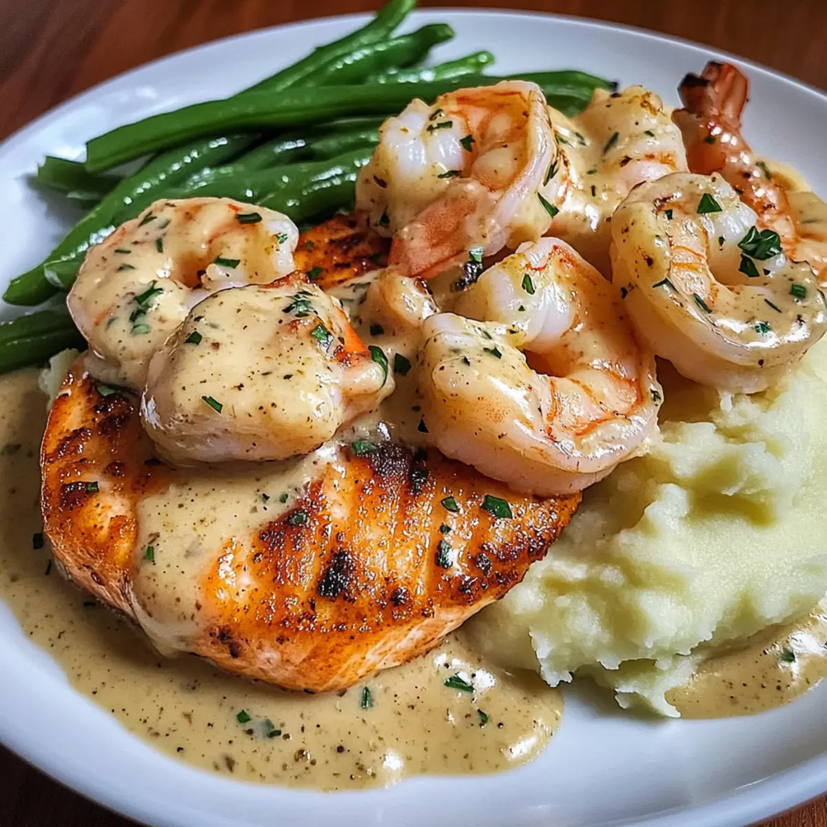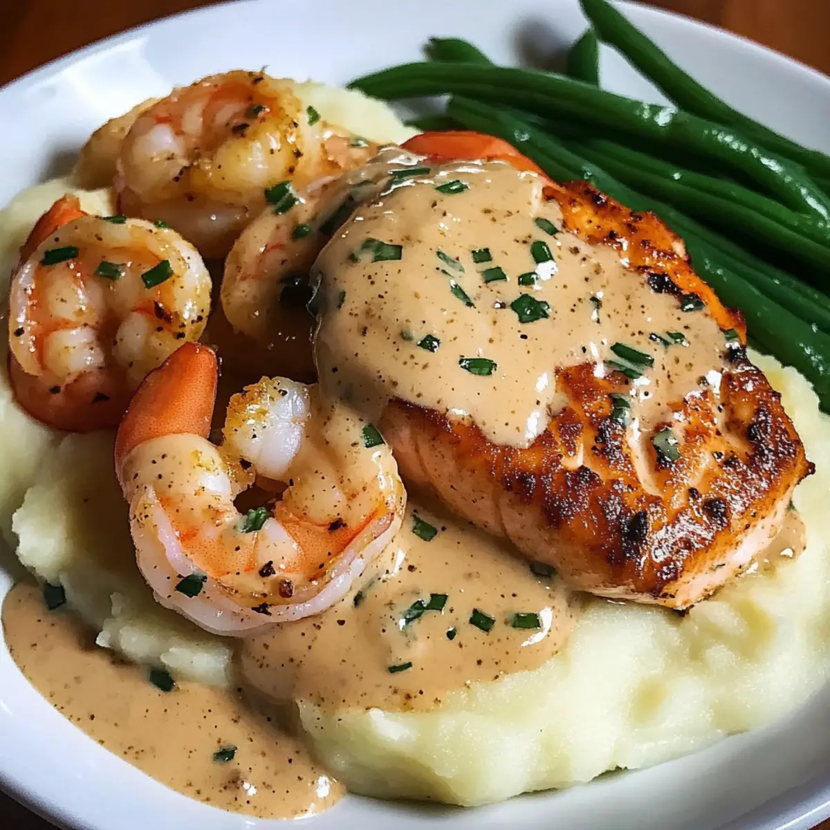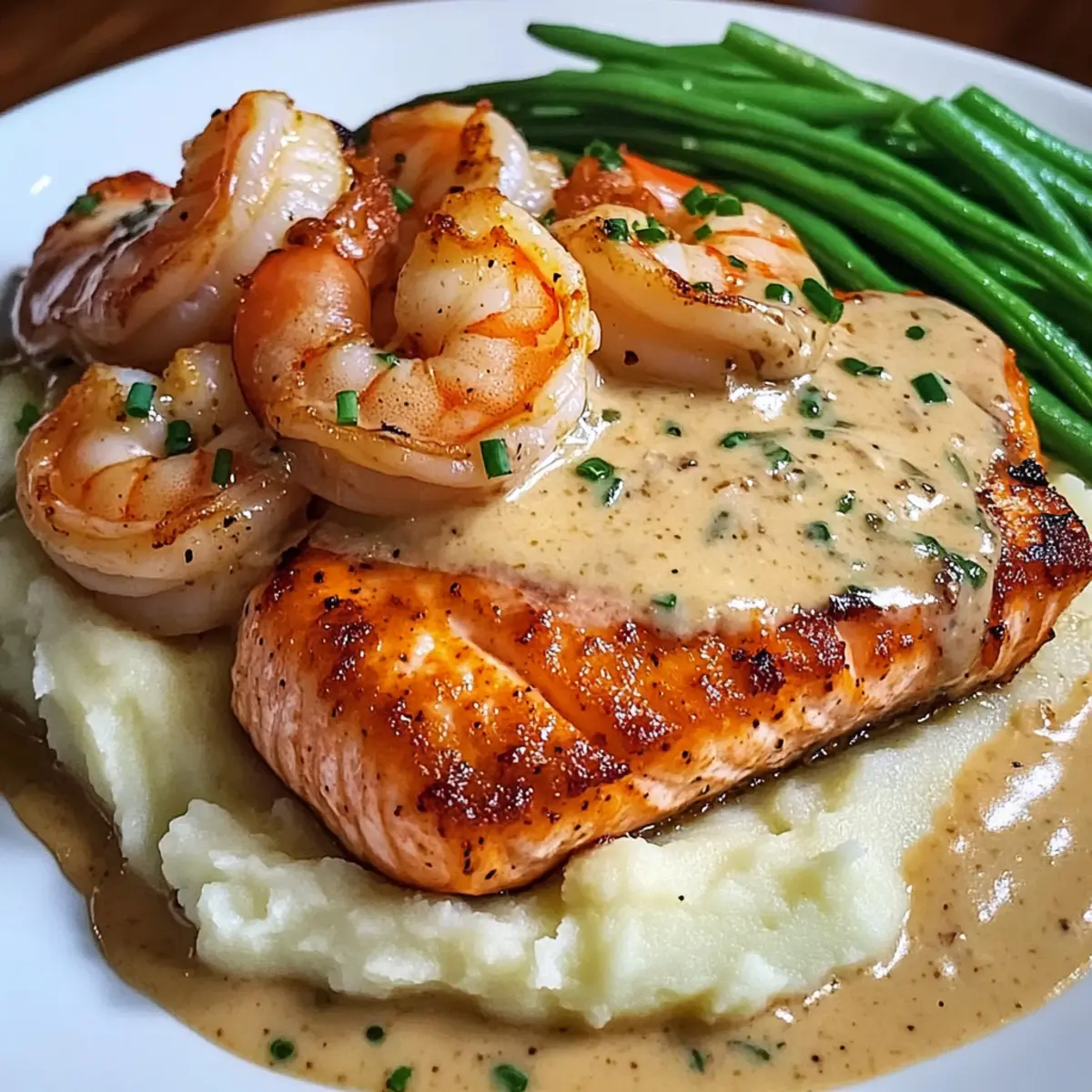 Die Küche der Südstaaten hat ihre ganz eigenen Geheimnisse, und eines davon ist die unwiderstehliche Kombination aus Cajun-Gewürzen und frischem Seafood. Diese Cajun Garnelen und Lachs mit einer cremigen Knoblauchsoße, serviert mit zarten Kartoffelpüree und knackigen grünen Bohnen, wird garantiert zum neuen Star auf deinem Esstisch! Nicht nur ist dieses Gericht eine wahre Augenweide, sondern es bietet auch alles, was man sich von Komfortfood wünschen kann: einen herzhaften Geschmack und einfach zuzubereiten. Perfekt für ein entspanntes Familienessen oder ein schönes Abendessen mit Freunden. Bist du bereit, deine Kochkünste auf das nächste Level zu heben und in die Welt der Aromen einzutauchen? Warum wirst du dieses Rezept lieben? Einfachheit: Die Zubereitung ist unkompliziert und erfordert nur grundlegende Kochfähigkeiten – perfekt für Köche aller Erfahrungsstufen. Reicher Geschmack: Die Kombination aus Cajun-Gewürzen und frischem Seafood sorgt für ein intensives Geschmackserlebnis, das deine Geschmacksknospen verzaubert. Vielseitigkeit: Du kannst die Garnelen einfach gegen andere Meeresfrüchte wie Scampis oder sogar Hähnchenbrust austauschen, um neue Geschmacksrichtungen zu entdecken. Perfekte Textur: Die flauschigen Kartoffelpürees ergänzen die zarten Garnelen und den saftigen Lachs auf einzigartige Weise. Zeitersparnis: In weniger als 30 Minuten zubereitet, ist dieses Gericht ideal für hektische Wochentage oder besondere Anlässe. Entdecke außerdem diese köstliche Tortilla Suppe Mit oder das Wuerziges Rinderfleisch Mit für weitere raffinierte Gerichte! Cajun Garnelen Zutaten • Für ein gelungenes Gericht, hier sind die benötigten Zutaten. Für die Garnelen und den Lachs Garnelen – Frische Garnelen bringen eine süßliche, salzige Note; kann durch Scampis ersetzt werden. Lachs – Bietet eine reichhaltige, flaky Textur; für eine nicht-meeresfrüchte Option kann Hähnchenbrust verwendet werden. Für die Sauce Cajun-Gewürz – Verleiht den Garnelen und dem Lachs würzige, rauchige Aromen; passe die Menge je nach Schärfevorliebe an. Knoblauch – Fügt der Sauce aromatische Tiefe hinzu; frischer Knoblauch ist für den besten Geschmack empfohlen. Schlagsahne – Schafft eine samtige, reichhaltige Textur für die Sauce; kann durch halb-und-halb für eine leichtere Variante ersetzt werden. Butter – Verstärkt den Reichtum der Sahnesauce; kann für eine leichtere Version durch Olivenöl ersetzt werden. Für die Beilagen Kartoffeln (Russet) – Grundlage für cremige Kartoffelpüree; kann durch Süßkartoffeln für eine süßliche Note ersetzt werden. Grüne Bohnen – Sorgen für eine knackige, frische Beilage; alternativ können auch Spargel oder Rosenkohl verwendet werden. Viel Spaß beim Kochen dieser köstlichen Cajun Garnelen! Schritt-für-Schritt-Anleitung für Cajun Garnelen mit Knoblauch-Sahnesauce Step 1: Meeresfrüchte vorbereiten Fange an, die Garnelen und den Lachs gründlich zu reinigen. Streue großzügig Cajun-Gewürz über die Meeresfrüchte und stelle sicher, dass jede Fläche gleichmäßig bedeckt ist. Lass die Gewürze für etwa 10 Minuten einziehen, damit sich die Aromen entfalten können. Währenddessen kannst du die Zutaten für die Sauce bereitstellen. Step 2: Meeresfrüchte kochen Erhitze eine große Pfanne bei mittlerer Hitze und füge 2 Esslöffel Butter hinzu. Wenn die Butter geschmolzen und leicht schäumend ist, gib die Garnelen in die Pfanne. Brate sie für etwa 3–4 Minuten, bis sie pink und nicht mehr durchscheinend sind, dann nimm sie aus der Pfanne und halte sie warm. Im Restfett die Lachsfilets mit der Hautseite nach unten für 5-6 Minuten braten, bis die Haut knusprig und das Fleisch leicht durchgegart ist. Step 3: Sauce zubereiten In der gleichen Pfanne, in der du die Meeresfrüchte gekocht hast, füge jetzt 2–3 gehackte Knoblauchzehen hinzu und brate sie kurz an, bis sie aromatisch sind, etwa 30 Sekunden. Gieße dann 200 ml Schlagsahne in die Pfanne und lasse die Mischung bei niedriger Hitze köcheln, bis sie leicht eindickt, was ungefähr 5 Minuten dauert. Rühre dabei regelmäßig um, damit die Sauce nicht anbrennt. Step 4: Kartoffelpüree zubereiten Während die Sauce köchelt, koche die geschälten und gewürfelten Kartoffeln in einem großen Topf mit kochendem Wasser für etwa 15 Minuten, bis sie weich sind. Gieße das Wasser ab und stampfe die Kartoffeln mit 2 Esslöffeln Butter und 100 ml Sahne, bis sie cremig sind. Würze mit Salz und Pfeffer nach Geschmack, um das Kartoffelpüree zu verfeinern. Step 5: Grüne Bohnen kochen Bringe einen kleinen Topf mit Salzwasser zum Kochen und blanchiere die grünen Bohnen für 3–4 Minuten, bis sie zart und leuchtend grün sind. Alternativ kannst du die Bohnen auch in der Pfanne mit etwas Butter für 5 Minuten anbraten, bis sie weich sind, aber noch einen leichten Biss haben. Step 6: Das Gericht anrichten Nimm die Garnelen wieder in die Pfanne mit der Sauce, damit sie leicht erwärmt werden und den Geschmack aufnehmen. Auf einem Teller platziere eine Portion Kartoffelpüree, lege die Cajun Garnelen und den Lachs darauf und beträufele alles mit der cremigen Knoblauchsoße. Füge die grünen Bohnen als Beilage hinzu und genieße das köstliche Gericht! Vorbereiten der Cajun Garnelen für stressfreies Kochen • Die Cajun Garnelen mit Knoblauch-Sahnesauce sind ideal für die Vorbereitung im Voraus, wodurch du an hektischen Abenden viel Zeit sparst! Du kannst die Garnelen und den Lachs bis zu 24 Stunden im Voraus marinieren, indem du sie mit Cajun-Gewürz würzt und gut abdeckst, um die Aromen zu intensivieren. Auch das Kartoffelpüree lässt sich hervorragend vorbereiten und kann bis zu 3 Tage im Kühlschrank aufbewahrt werden – einfach nach dem Kochen abkühlen lassen und luftdicht verschließen. Die grünen Bohnen können vorgekocht und ebenfalls bis zu 3 Tage im Kühlschrank aufbewahrt werden. Am Abend des Servierens erhitzt du alles, indem du die Garnelen schnell in d