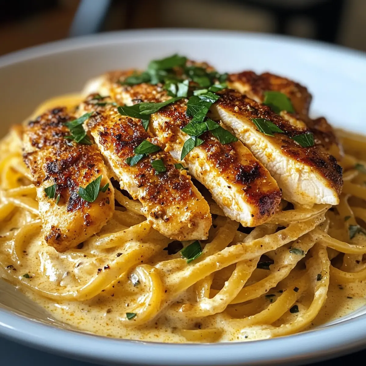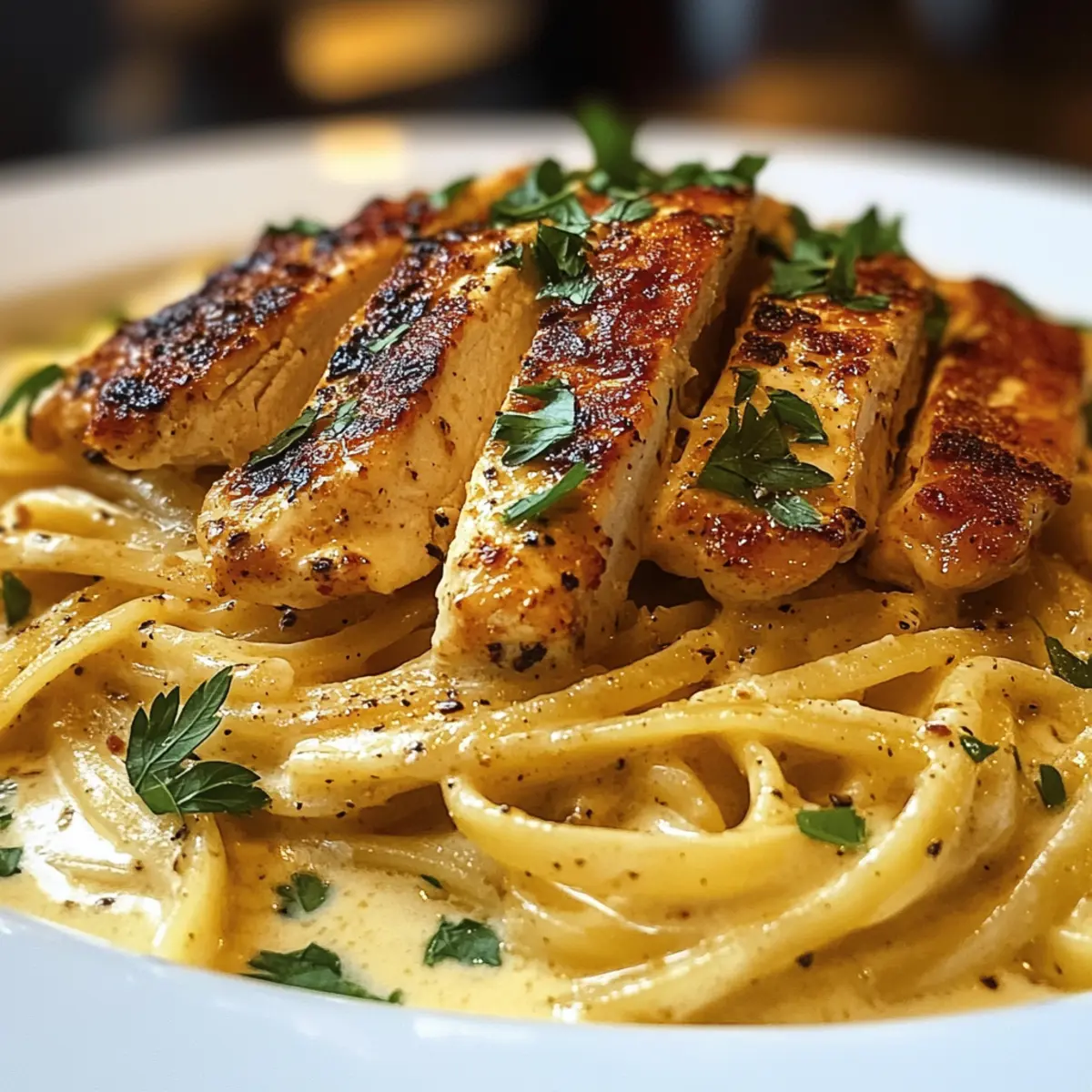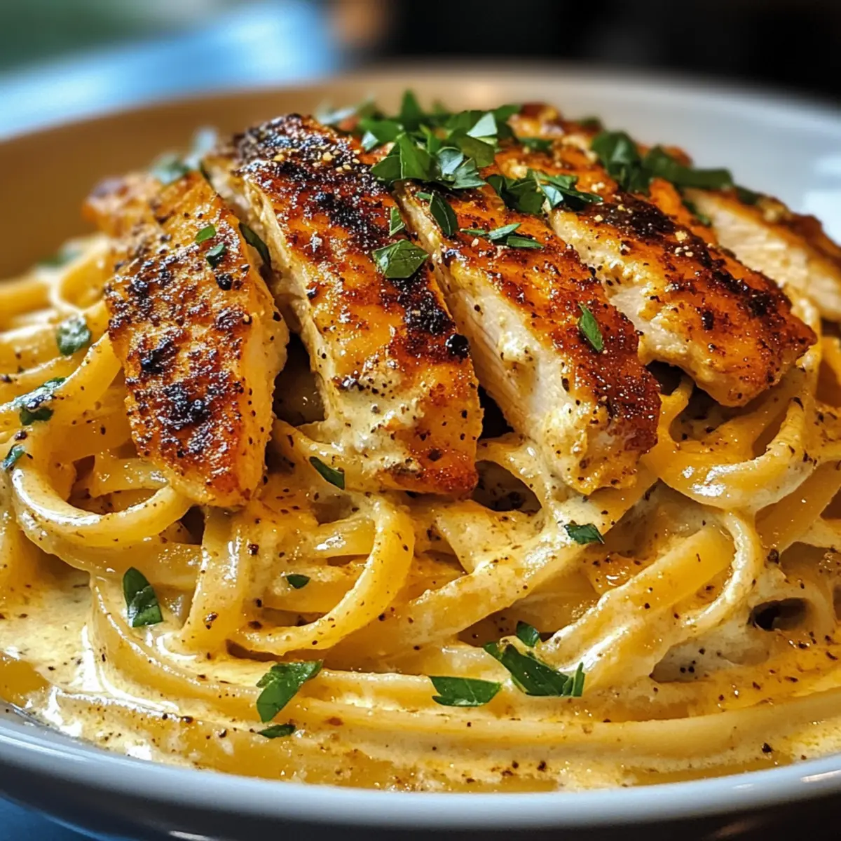 Die ersten Aromen dringen an meine Nase, während ich die Pfanne erhitze – das verheißt ein festliches Dinner! Mein Cajun-Hühnchen & cremige Parmesan-Linguine ist nicht nur ein optisches Highlight, sondern überzeugt auch mit einem köstlichen Zusammenspiel von würzigem Hähnchen und einer samtigen Sauce. Diese schnelle Pasta ist erstklassig für die hektischen Wochentage oder um Freunde bei einem gemütlichen Abendessen zu beeindrucken. In nur 30 Minuten zauberst du ein Gericht, das sowohl Gaumenfreuden verspricht als auch das wohlige Gefühl von Hausmannskost vermittelt. Und das Beste daran? Du kannst es ganz nach deinen Vorlieben anpassen. Bist du bereit, deine Geschmacksknospen auf eine köstliche Reise zu schicken? Warum wirst du dieses Rezept lieben? Einfachheit pur: Die Zubereitung ist unkompliziert und erfordert lediglich grundlegende Kochskills. Würzige Geschmacksexplosion: Die Kombination aus Cajun-Gewürzen und cremigem Parmesan verleiht jedem Bissen eine aufregende Note. Vielseitigkeit: Ob mit Hühnchen, Garnelen oder sogar Gemüse – du kannst das Rezept nach deinem Geschmack anpassen. Schnell zubereitet: In nur 30 Minuten hast du ein köstliches Gericht auf dem Tisch, perfekt für stressige Abende. Guter Eindruck: Diese Pasta ist nicht nur ein Genuss, sondern beeindruckt auch bei jedem Dinner mit Freunden. Probiere auch unsere Cremige Tomaten Basilikum oder Honig Scharfes Cajun für abwechslungsreiche Geschmackserlebnisse! Cajun-Hühnchen & cremige Parmesan-Linguine Zutaten • Die perfekte Kombination für ein schnelles, köstliches Abendessen! Für das Hühnchen Hähnchenbrustfilets – Hauptprotein, das Saftigkeit und einen herzhaften Grundgeschmack bietet. Verwende ungebone, hautlose Stücke für mehr Komfort. Cajun-Gewürz – Sorgt für einen kräftigen, rauchigen und würzigen Geschmack. Fertig gemischte oder selbstgemachte Varianten sind optimal. Olivenöl oder Butter – Zum Anbraten des Hühnchens und Anreichern der Sauce. Beides kann je nach Vorliebe ausgetauscht werden. Für die Sauce Knoblauch – Essentiell für den Geschmack; sorgt für Tiefe in der cremigen Sauce. Frisch gehackter Knoblauch liefert das beste Aroma. Schlagsahne – Kreiert eine reichhaltige, samtige Sauce. Halbfettmilch kann für eine leichtere Option verwendet werden, jedoch wird die Konsistenz dünner. Parmesan-Käse – Frisch gerieben verstärkt den Geschmack und sorgt für eine glatte Textur in der Sauce. Vorgeriebener Käse sollte vermieden werden für optimales Schmelzen. Für die Pasta Linguine – Die empfohlene Pasta, ideal, um die Sauce festzuhalten. Alternativen wie Fettuccine oder Spaghetti sind ebenfalls möglich. Salz und Pfeffer – Nach Geschmack würzen, um das gesamte Aroma zu verstärken. Petersilie (optional) – Verleiht Frische und Farbe, wenn die Pasta serviert wird. Schritt-für-Schritt-Anleitung für Cajun-Hühnchen & cremige Parmesan-Linguine Step 1: Hühnchen würzen Bestreiche die Hähnchenbrustfilets großzügig mit Cajun-Gewürz auf beiden Seiten. Achte darauf, dass die Gewürze gleichmäßig verteilt sind, um den vollen Geschmack zu erreichen. Dies sorgt für eine würzige und herzhafte Grundlage für dein Cajun-Hühnchen & cremige Parmesan-Linguine. Step 2: Hühnchen anbraten Erhitze in einer großen, beschichteten Pfanne bei mittlerer bis hoher Hitze etwas Olivenöl oder Butter. Füge die gewürzten Hähnchenbrustfilets hinzu und brate sie für 5–6 Minuten pro Seite an, bis sie goldbraun und durchgegart sind. Das Hühnchen sollte eine Innentemperatur von 75 °C erreichen. Nimm es aus der Pfanne und lasse es ruhen. Step 3: Linguine kochen Bring einen großen Topf mit gesalzenem Wasser zum Kochen und füge die Linguine hinzu. Koche die Pasta gemäß den Anweisungen auf der Verpackung al dente. Bevor du die Pasta abgießt, hebe eine Tasse des Nudelwassers auf, um die Sauce bei Bedarf später zu verdünnen. Step 4: Sauce zubereiten Verwende die gleiche Pfanne, in der du das Hühnchen angebraten hast. Füge bei mittlerer Hitze den frisch gehackten Knoblauch hinzu und brate ihn kurz an, bis er duftet, aber nicht braun wird. Das gibt deiner cremigen Parmesan-Sauce eine köstliche Aroma-Basis. Step 5: Sahne hinzufügen Gieße die Schlagsahne in die Pfanne mit dem Knoblauch und bringe die Mischung zum Köcheln. Lasse die Sauce 2-3 Minuten sanft köcheln, bis sie etwas eindickt. Rühre dabei regelmäßig um, um ein Anbrennen zu vermeiden. Step 6: Parmesan einrühren Streue den frisch geriebenen Parmesan-Käse in die Sauce und rühre, bis er vollständig geschmolzen ist und sich eine cremige Konsistenz gebildet hat. Wenn die Sauce zu dick ist, füge nach und nach das aufbewahrte Nudelwasser hinzu, bis die gewünschte Textur erreicht ist. Step 7: Pasta kombinieren Schneide das ruhende Hühnchen in Scheiben und gib es zusammen mit der gekochten Linguine in die Pfanne mit der Sauce. Mische alles gut durch, damit die Pasta gleichmäßig mit der cremigen Parmesan-Sauce überzogen ist. Step 8: Servieren Verteile dein Cajun-Hühnchen & cremige Parmesan-Linguine auf Tellern und garniere sie optional mit frisch gehackter Petersilie und zusätzlichem Parmesan-Käse. Serviere das Gericht heiß und genieße die harmonierenden Aromen! Was passt gut zu Cajun-Hühnchen & cremige Parmesan-Linguine? Lass uns das Menü vervollständigen – mit köstlichen Begleitgerichten und Getränken, die deine Pasta perfekt abrunden! Knoblauchbrot: Dieses butterweiche Brot mit einer knusprigen Kruste ist ideal, um die cremige Sauce aufzutunken und bringt zusätzlichen Geschmack. Frischer Gartensalat: Ein leichter, knackiger Salat aus Rucola, Kirschtomaten und einem spritzigen Dressing sorgt für erfrischende Balance und Frische. Gemischtes Gemüse: Gedünstetes Brokkoli oder grüne Bohnen bringen nicht nur Farbe auf den Teller, sondern auch wichtige Nährstoffe und eine angenehme Textur. Zitronentarte: Diese leichte, zitronige Nachspeise rundet das Essen perfekt ab und sorgt für einen sü