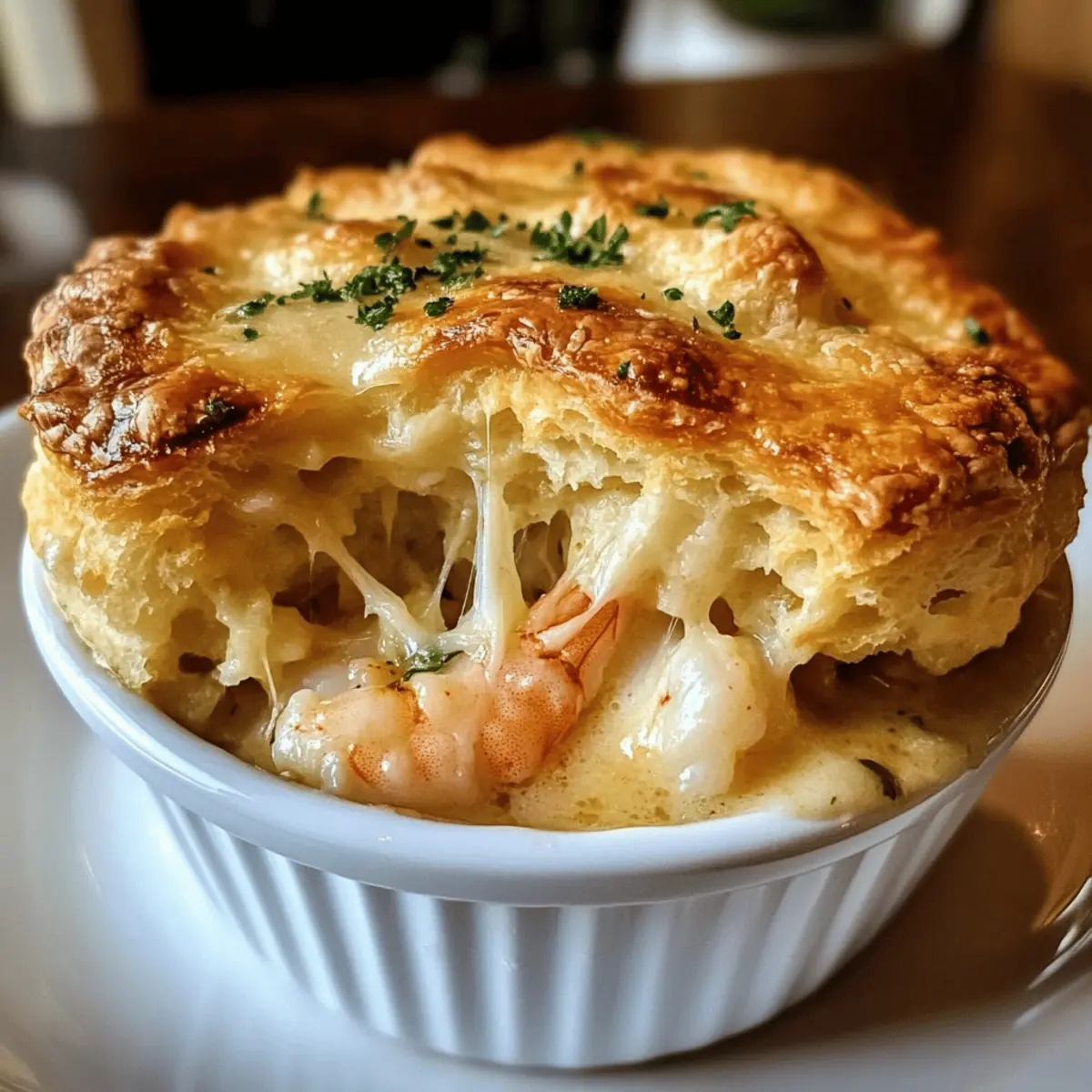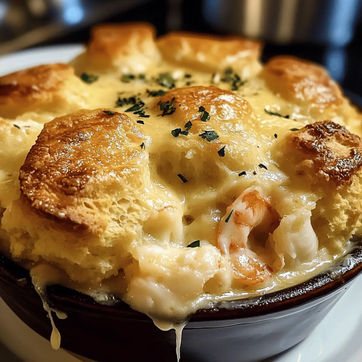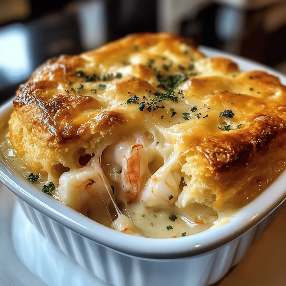 Der Duft von frisch gebackenen Keksen wehte durch meine Küche, als ich beschloss, ein ganz besonderes Gericht zu kreieren: einen Cheddar Bay Biscuit Seafood Pot Pie. Diese ist nicht nur ein gemütliches Komfortessen, sondern auch ein schnelles und einfaches Rezept, das perfekt für geschäftige Wochentage ist. Die Kombination aus zartem Seafood und einer cremigen Sauce, eingekuschelt in die warmen, flauschigen Cheddar Bay Biscuits, ist ein echter Genuss und wird sicherlich die Herzen meiner Familie gewinnen. Und das Beste daran? Man benötigt dafür nur wenig Zeit in der Küche, ohne auf den köstlichen Geschmack zu verzichten. Wer hätte gedacht, dass das Genießen eines solchen Gerichts so spielend leicht sein kann? Lass uns gemeinsam entdecken, wie man dieses köstliche Pot Pie zaubert! Warum wirst du dieses Rezept lieben? Simplicity: Die Zubereitung ist kinderleicht und erfordert nur grundlegende Kochkenntnisse, perfekt für Kochanfänger und Profis gleichermaßen. Reiche Aromen: Die Kombination aus frischem Seafood und cremiger Sauce sorgt für einen himmlischen Geschmack, der deine Geschmacksknospen verwöhnt. Vielseitigkeit: Dieses Rezept lässt sich leicht anpassen, indem du verschiedene Meeresfrüchte oder Gemüse verwendest, je nach saisonalem Angebot oder persönlichem Geschmack. Familienfreundlich: Ideal für die ganze Familie, denn niemand kann einem warmen, aromatischen Pot Pie widerstehen! Zeitersparnis: In weniger als 30 Minuten servierbereit, ist es die perfekte Lösung für hektische Wochentage. Entdecke auch unsere anderen leckeren Rezepte wie Bayerische Broetchen Rindfleisch, die ebenfalls für tolle Familienabende sorgen. Cheddar Bay Biscuit Seafood Pot Pie Zutaten • Diese Liste hilft dir, alles für dein köstliches Pot Pie zusammenzustellen! Shrimp – bietet einen süßen, salzigen Geschmack und zarte Textur. Du kannst auch Krabbenfleisch für eine andere Meeresfrucht-Variante verwenden. Krabbenfleisch (oder Imitationskrabben) – trägt zu einem reichen Ozeangeschmack bei. Imitationskrabben sind eine budgetfreundliche Option. Fischfilets (z.B. Kabeljau oder Schellfisch) – fügen der Füllung Tiefe und Komplexität hinzu. Jeder feste weiße Fisch ist geeignet. Gefrorenes Mischgemüse – bringt Farbe und Nährstoffe. Frisches Gemüse kann verwendet werden, sollte aber vorher gekocht werden. Schlagsahne – sorgt für eine reiche, samtige Sauce. Du kannst auch leichte Sahne verwenden, wenn du es etwas leichter magst. Hühner- oder Fischbrühe – bildet die geschmackvolle Basis für die Sauce. Gemüsebrühe ist eine gute pflanzliche Alternative. Knoblauchpulver – hebt den Geschmack insgesamt an. Frischer gehackter Knoblauch kann für einen intensiveren Geschmack verwendet werden. Zwiebelpulver – fügt der Füllung Tiefe hinzu. Frische Zwiebeln können ebenfalls verwendet werden. Getrockneter Thymian – verleiht erdige, kräuterige Noten. Frischer Thymian eignet sich ebenso. Salz und Pfeffer – nach Geschmack, um alle Aromen zu verstärken. Cheddar Bay Biscuit-Mix – sorgt für Einfachheit und Geschmack, mit Käse und Gewürzen. Selbstgemachter Keksteig kann für eine „von Grund auf“-Version zubereitet werden. Milch – notwendig für die Zubereitung des Biscuit-Mixes. Jede pflanzliche Alternative kann benutzt werden. Geschmolzene Butter – fügt Reichhaltigkeit hinzu und hilft, eine goldene Kruste auf den Keksen zu erreichen. Schritt-für-Schritt-Anleitung für Cheddar Bay Biscuit Seafood Pot Pie Step 1: Ofen vorheizen Heize den Ofen auf 200°C vor. Dies ist notwendig, damit die Cheddar Bay Biscuit Seafood Pot Pie gleichmäßig gart und eine goldbraune Kruste erhält. Ein vorgeheizter Ofen sorgt dafür, dass die Kekse fluffig und köstlich werden, während die Füllung gleichzeitig perfekt durchgegart wird. Step 2: Meeresfrüchte garen Erhitze in einem großen Topf bei mittlerer Hitze etwas Öl und gib die Garnelen, das Krabbenfleisch und die Fischfilets hinein. Koche die Mischung für 3 bis 4 Minuten, bis die Garnelen rosa und die Fische undurchsichtig sind. Nimm die Meeresfrüchte danach vom Herd und stelle sie beiseite, um sie später in das Pot Pie zu integrieren. Step 3: Sauce zubereiten In demselben Topf kombinierst du die Hühner- oder Fischbrühe, die Schlagsahne, Knoblauchpulver, Zwiebelpulver, getrockneten Thymian, Salz und Pfeffer. Lasse die Mischung bei mittlerer Hitze köcheln, um die Aromen zu vereinen, etwa 5 Minuten. Rühre dabei gelegentlich um, damit nichts ansetzt, und beobachte, wie die Sauce leicht eindickt. Step 4: Gemüse hinzufügen Füge die gefrorenen Mischgemüse und die zuvor gegarten Meeresfrüchte in den Topf mit der Sauce. Rühre alles gut um und lasse es weitere 5 Minuten erhitzen, bis die Gemüse weich und warm sind. Dies verleiht deinem Cheddar Bay Biscuit Seafood Pot Pie Farbe und Nährstoffe, die das Gericht noch schmackhafter machen. Step 5: Füllung eindicken Rühre die Mischung kontinuierlich für etwa 5 Minuten, um sicherzustellen, dass die Füllung die perfekte Konsistenz erreicht. Sie sollte jetzt dick und cremig sein, damit sie beim anschließendem Backen im Pot Pie nicht zu flüssig ist. Danach nimm den Topf vom Herd und lasse die Füllung kurz abkühlen. Step 6: Biscuit-Mix vorbereiten In einer separaten Schüssel mischst du den Cheddar Bay Biscuit-Mix mit der Milch, bis alles gerade so kombiniert ist. Achte darauf, nicht zu lange zu rühren, um die Kekse fluffig zu halten. Diese Mischung wird das köstliche Topping für dein Pot Pie, das dem Gericht seinen charakteristischen Geschmack verleiht. Step 7: Füllung und Topping kombinieren Gieße die Meeresfrüchte-Füllung in eine große Auflaufform oder ein Casserole-Gerät. Verteile anschließend die Biscuit-Mischung gleichmäßig über die Füllung, sodass sie komplett bedeckt ist. Stelle sicher, dass das Topping gleichmäßig verteilt ist, um eine schöne Kruste beim Backen zu erhalten. Step 8: Butter hinzufügen Träufle die geschmolzene Butter über d