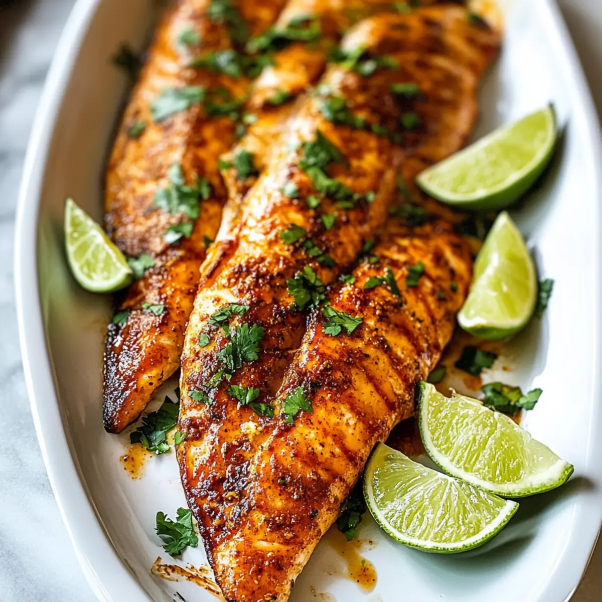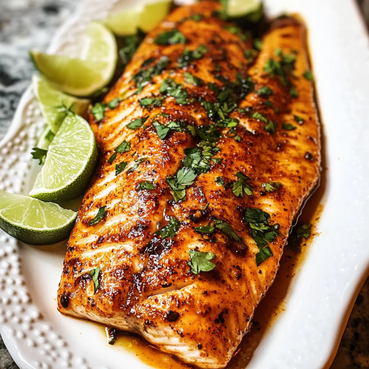 Als ich letztens in der Küche stand und überlegte, was ich zum Abendessen zubereiten könnte, kam mir die Idee zu einem Gericht, das nicht nur schnell geht, sondern auch frisch und belebend ist. Der Chili Limetten Gebackene Forelle wird aus zartem Trout zubereitet und erhält durch die Kombination von süßem Honig und spritziger Limette eine geschmackvolle Note, die jeder Fischliebhaber lieben wird. Dieses Rezept ist nicht nur hochproteinreich und gesund, sondern auch budgetfreundlich – perfekt für geschäftige Wochentage, an denen man auf Fast Food verzichten möchte. Wenn du also auf der Suche nach einer neuen, schnellen und schmackhaften Möglichkeit bist, Fisch zuzubereiten, wirst du diesen Genuss nicht verpassen wollen. Was für eine glückliche Überraschung, dass solch ein köstliches Gericht so einfach und schnell zubereitet werden kann! Warum ist dies das perfekte Fischgericht? Einfachheit: Die Zubereitung der Chili Limetten Gebackenen Forelle ist unkompliziert und erfordert nur wenige Schritte. Ideal für Anfänger und erfahrene Köche gleichermaßen. Frischer Geschmack: Die Kombination aus süßem Honig und spritziger Limette bringt eine erfrischende Note, die jedem Fischliebhaber begeistert. Vielseitig: Ob zu einer frischen Salatbeilage oder als Teil einer vollständigen Mahlzeit mit Gemüse – dieses Rezept passt perfekt zu deinen Lieblingsbeilagen. Zeitersparnis: In weniger als 30 Minuten hast du ein schmackhaftes, gesundes Abendessen auf dem Tisch. Perfekt für hektische Wochentage! Gesund und nahrhaft: Mit hohen Proteinwerten und gesunden Fetten ist dieses Gericht nicht nur köstlich, sondern auch nährstoffreich. Wenn du auf der Suche nach einer gesunden Mahlzeit bist, solltest du dieses Rezept ausprobieren. Chili Limetten Gebackene Forelle Zutaten • Hier sind die benötigten Zutaten für ein köstliches und gesundes Gericht. Für die Forelle Steelhead Forelle – Die Hauptproteinquelle, reich an Omega-3-Fettsäuren; kannst alternativ Lachs verwenden, wenn Forelle nicht verfügbar ist. Limette – Sorgt für die spritzige Note durch Zesten und Saft; eine Limette reicht für Zesten und Saft (plus extra Stücke zum Servieren). Für die Marinade Honig – Fügt eine angenehme Süße hinzu, die die Schärfe des Chilis ausgleicht; kann für weniger Süße mit Agavendicksaft ersetzt werden. Olivenöl – Helfen, die Gewürzmischung gleichmäßig zu vermengen und sorgt für Feuchtigkeit; keine direkten Ersatzmöglichkeiten erforderlich. Chilipulver – Bringt Würze und Geschmackstiefe; kann je nach Geschmack dosiert oder durch Paprika ersetzt werden, wenn weniger Schärfe gewünscht ist. Küchensalz – Hebt alle Aromen hervor; benutze als Alternative Meersalz, aber achte auf die Körnung. Dieser perfekte Mix von Zutaten für Chili Limetten Gebackene Forelle wird dich begeistern! Schritt-für-Schritt-Anleitung für Chili Limetten Gebackener Forelle Step 1: Ofen vorheizen Heize den Ofen auf 190 °C (375 °F) vor und lege ein Backblech mit Backpapier aus. Dies sorgt dafür, dass die Forelle gleichmäßig gebacken wird und nicht anhaftet. Die Vorheizzeit sollte etwa 10 Minuten betragen, sodass der Ofen die optimale Temperatur erreicht, wenn du das Fischgericht bereit hast. Step 2: Marinade zubereiten Vermische in einer Schüssel die Limettenschale, den Limettensaft, den Honig, das Olivenöl, das Chilipulver und das Küchensalz gründlich. Achte darauf, dass du die Zutaten gut kombinierst, bis eine glatte Marinade entsteht. Diese würzige Chili Limetten Mischung wird dem Fisch viel Geschmack verleihen und ihn zart und aromatisch machen. Step 3: Forelle vorbereiten Lege die Steelhead Forelle auf das vorbereitete Backblech. Verwende einen Pinsel oder Löffel, um die Chili Limetten Marinade gleichmäßig auf der Oberseite des Fisches zu verteilen. Achte darauf, dass die gesamte Oberfläche gut bedeckt ist, um den vollen Geschmack der Marinade zu genießen während des Backens. Step 4: Backen Backe die Forelle für 16-18 Minuten im vorgeheizten Ofen. Du wirst wissen, dass der Fisch fertig ist, wenn er sich leicht mit einer Gabel zerteilen lässt und eine schöne, goldene Farbe annimmt. Dieser Schritt ist entscheidend, um die perfekte Textur des Chili Limetten Gebackenen Forelle zu erreichen. Step 5: Anrichten und Garnieren Nimm die Forelle aus dem Ofen und lass sie kurz abkühlen. Optional kannst du sie mit frisch gehackter Petersilie garnieren und mit zusätzlichen Limettenstücken servieren. Diese letzten Schritte verleihen deinem Gericht eine erfrischende Note und machen deinen Chili Limetten Gebackenen Forelle noch einladender! Meal Prep für Chili Limetten Gebackene Forelle Die Chili Limetten Gebackene Forelle ist ideal für die Vorbereitung im Voraus! Du kannst die Marinade bis zu 24 Stunden vor dem Kochen zubereiten und im Kühlschrank aufbewahren; das sorgt dafür, dass die Aromen sich fantastisch entfalten. Der Fisch selbst kann bereits mariniert und abgedeckt im Kühlschrank aufbewahrt werden, um die Frische zu erhalten. Wenn du bereit bist zu servieren, heize den Ofen auf 190 °C (375 °F) vor, lege die Forelle auf ein Backblech und backe sie für 16-18 Minuten. Um sicherzustellen, dass dein Gericht ebenso köstlich bleibt, wende darauf, die Forelle nie länger als nötig zu backen, damit sie zart und saftig bleibt. So genießt du ein schnelles und gesundes Abendessen, perfekt für hektische Wochentage! Aufbewahrungstipps für Chili Limetten Gebackene Forelle Zimmertemperatur: Entsorge Reste nicht länger als 2 Stunden bei Zimmertemperatur, um die Lebensmittelsicherheit zu gewährleisten. Kühlschrank: Lagere die Chili Limetten Gebackene Forelle in einem luftdichten Behälter bis zu 1-2 Tage im Kühlschrank. So bleibt der Geschmack erhalten und der Fisch bleibt frisch. Einfrieren: Du kannst die Forelle für eine längere Haltbarkeit bis zu 3 Monate einfrieren. Wickele sie gut in Frischhaltefolie und lege sie dann in einen gefrierfesten Behälter. Wiederaufwärmen: 