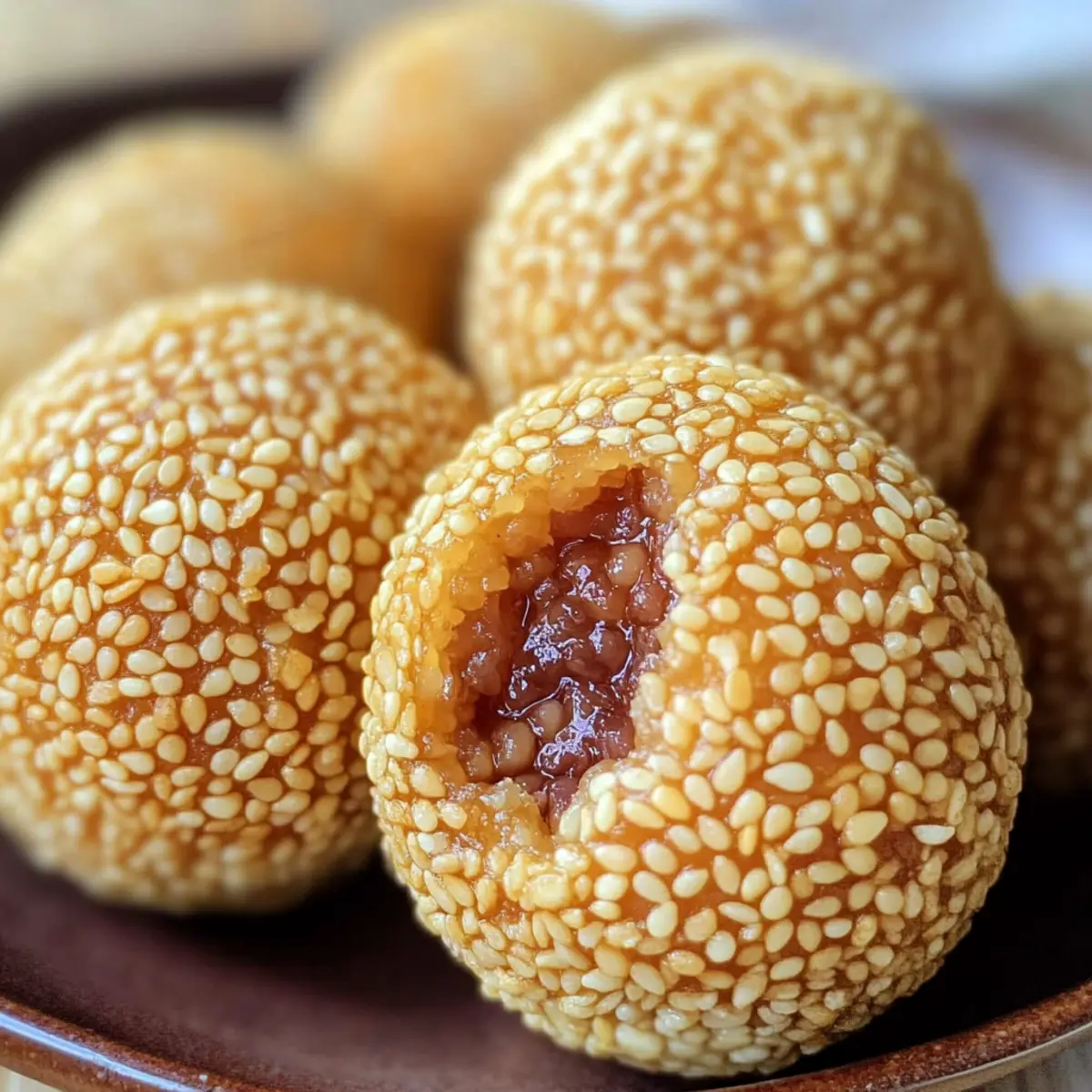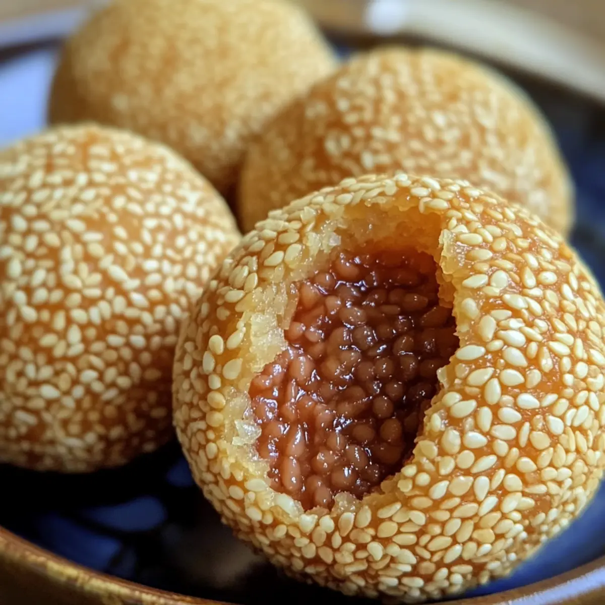 Als ich zum ersten Mal die köstlichen Chinesischen frittierte Sesamkugeln probierte, war es, als würde ich in ein Stück Tradition und Freude beißen. Diese kleinen Wunder zeigen außen eine knusprige Textur und enthüllen einen süßen, zähen Kern aus hausgemachter roter Bohnenpaste, der jeden Bissen zu einem Fest macht. Perfekt als köstlicher Snack oder zauberhaftes Dessert, sind sie nicht nur ideal für das Fest des Laternens, sondern bringen auch bei jeder Gelegenheit ein Lächeln auf die Gesichter. Dieser traditionelle Leckerbissen verbindet Komfort und Eleganz und ist einfacher zuzubereiten, als man denkt. Lust auf eine Portion? Entdecken wir gemeinsam, wie man diese unwiderstehlichen Sesamkugeln zaubert! Warum sind diese Sesamkugeln unwiderstehlich? Traditionell und Festlich: Diese chinesischen frittierte Sesamkugeln sind mehr als nur ein Dessert; sie sind ein Symbol für Feierlichkeiten und Glück. Perfekt für das Lunar New Year, bringen sie Freude zu jedem Anlass. Einfachheit in der Zubereitung: Trotz ihrer köstlichen Komplexität ist das Rezept leicht verständlich und erfordert keine ausgeklügelten Kochkünste. Wenn du bereits Freude an Rezepten wie Cremige Gnocchi Haehnchen hast, wirst du dieses Gericht lieben! Vielfältiger Genuss: Die gesunde Kombination aus knuspriger Außenschicht und zähem Inneren macht sie zu einem perfekten Snack oder Dessert. Du wirst sie immer wieder zubereiten wollen! Schnell und Lecker: Der gesamte Prozess dauert nur wenig Zeit, sodass du im Handumdrehen eine leckere Köstlichkeit auf dem Tisch hast. Lade Freunde ein, serviere sie warm und erlebe, wie alle begeistert sind! Chinesische frittierte Sesamkugeln Zutaten Erlebe die Aromen Chinas mit diesen köstlichen Zutaten! Für den Teig Glutinous Rice Flour – sorgt für die typische zähe Textur der Sesamkugeln; achte darauf, dünnflüssiges Reismehl zu verwenden, nicht normales Mehl. Granulated Sugar – fügt Süße hinzu; passe die Menge nach deinem persönlichen Geschmack an. Für die Füllung Red Beans – unerlässlich für die süße rote Bohnenpaste; verwende getrocknete rote Bohnen, die vorher eingeweicht und gekocht werden müssen. Zum Frittieren Vegetable Oil – das perfekte Medium zum Frittieren, damit die Sesamkugeln herrlich knusprig werden; achte auf die richtige Temperatur beim Frittieren. White Sesame Seeds – geben den Knusprigen und Nussgeschmack; geröstet oder roh, je nach gewünschtem Geschmack. Diese leckeren chinesischen frittierte Sesamkugeln sind garantiert der Hit auf deinem nächsten Fest! Schritt-für-Schritt-Anleitung für Chinesische frittierte Sesamkugeln Step 1: Rote Bohnenpaste vorbereiten Weiche die roten Bohnen über Nacht in Wasser ein, um sie weich zu machen. Am nächsten Tag kochst du die Bohnen in frischem Wasser für etwa 1-1,5 Stunden, bis sie zart sind. Lass sie abtropfen und püriere sie anschließend zu einer glatten Masse. Gib Zucker hinzu und koche alles weiter, bis die Mischung dick wird. Rolle die Paste in 20 kleine Bällchen und lege sie zum Abkühlen in den Kühlschrank. Step 2: Glutinösen Reisteig herstellen Bringe einen Topf mit Wasser zum Kochen. Löst dann den restlichen Zucker im kochenden Wasser auf und vermische ihn mit dem glutinösen Reismehl in einer großen Schüssel. Knete die Mischung, bis ein glatter und homogener Teig entsteht. Lass den Teig für etwa 10 Minuten ruhen, damit er etwas fester wird und sich leichter formen lässt. Step 3: Sesamkugeln formen Nimm eine kleine Portion vom Reisteig und forme sie zu einer Kugel. Drücke eine kleine Vertiefung in die Mitte der Kugel und füge einen gefrorenen roten Bohnenball hinzu. Schließe die Kugel sorgfältig und rolle sie in deinen Händen, um eine glatte Oberfläche zu erhalten. Wälze die Formung dann großzügig in den weißen Sesamkörnern, bis sie rundum bedeckt sind. Step 4: Frittieren Erhitze das Pflanzenöl in einem tiefen Topf auf etwa 180 °C (350 °F). Lasse die Sesamkugeln portionsweise ins heiße Öl gleiten und frittiere sie für etwa 4-5 Minuten oder bis sie goldbraun sind. Achte darauf, die Temperatur im Auge zu behalten, damit das Öl nicht zu heiß wird. Die Sesamkugeln sollten beim Frittieren schön aufsteigen und leicht schwimmen. Step 5: Abtropfen lassen und servieren Wenn die Sesamkugeln goldbraun und knusprig sind, nimm sie mit einem Schaumlöffel heraus und lasse sie auf einem Küchentuch abtropfen, um überschüssiges Öl zu entfernen. Serviere die heißen, frischen Chinesischen frittierte Sesamkugeln als köstlichen Snack oder Dessert, ideal zu einer Tasse Tee oder bei festlichen Anlässen. Expertentipps für Chinesische frittierte Sesamkugeln Zutaten genau abmessen: Achte darauf, alle Zutaten genau zu wiegen; ungenaue Mengen können dazu führen, dass der Teig entweder zu fest oder zu weich ist. Temperatur kontrollieren: Halte das Öl konstant bei 350°F (176°C), um gleichmäßige Bräunung zu gewährleisten. Zu heißes Öl lässt die Sesamkugeln außen brennen, während sie innen roh bleiben. In kleinen Portionen frittieren: Frittiere die Sesamkugeln in kleinen Chargen, damit die Temperatur des Öls stabil bleibt und eine gleichmäßige Garung sichergestellt ist. Variable Füllungen probieren: Experimentiere mit der Füllung! Statt roter Bohnenpaste kannst du auch Lotus- oder Schokoladenpaste verwenden, um Abwechslung zu schaffen. Richtige Reis-Mehl-Wahl: Nutze unbedingt glutinöses Reismehl und nicht normales Mehl, um die typisch zähe Textur der chinesischen frittierte Sesamkugeln zu erreichen. Vorbereiten der chinesischen frittierte Sesamkugeln Die chinesischen frittierte Sesamkugeln sind perfekt für die Vorbereitung, um Zeit in der hektischen Woche zu sparen! Du kannst die rote Bohnenpaste bis zu 3 Tage im Voraus zubereiten. Lasse die gekochten und pürierten Bohnen mit Zucker gut abkühlen, forme sie zu Bällchen und lagere sie in einem luftdichten Behälter im Kühlschrank. Auch der Reisteig kann bereits 24 Stunden vor dem Frittieren zubere