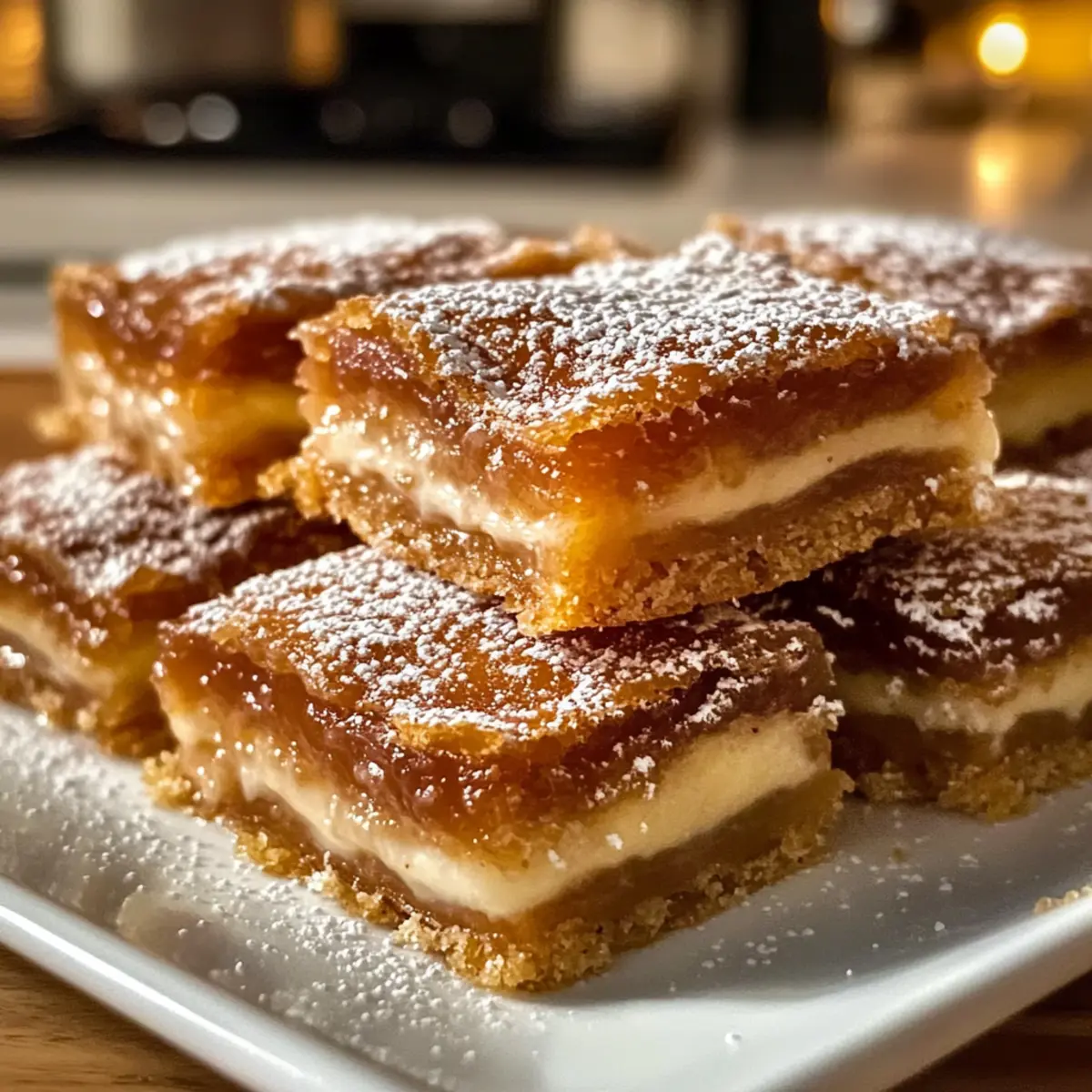 Als ich eines Tages nach einer süßen Versuchung suchte, traf ich auf die perfekten Zutaten für mich: Churro Salzcracker Toffee! Diese unwiderstehlichen Bars sind eine harmonische Verbindung von süßem Karamell und salzigen Crackern, die einfach jeden begeistern. Mit ihrer buttery Toffee-Beschichtung und dem knusprigen Grundgerüst aus Salzcrackern sind diese Churro Salzcracker Toffee Bars nicht nur kinderleicht zuzubereiten, sondern auch der ideale Snack für jede Gelegenheit. Egal, ob du sie für eine Feier oder einfach als schnellen Genuss zubereitest, sie werden garantiert schnell vernascht. Bist du bereit, diese verführerische Köstlichkeit auszuprobieren? Warum wirst du unser Rezept lieben? Einfachheit: Dieses Rezept erfordert nur wenige Schritte und leicht zu beschaffende Zutaten, sodass du es im Handumdrehen zubereiten kannst. Köstliche Kombination: Der Mix aus salzigen Crackern und süßem Karamell bietet ein Geschmackserlebnis, das perfekt aufeinander abgestimmt ist. Vielseitigkeit: Du kannst die Salzcracker durch andere Cracker ersetzen oder verschiedene Toppings wie Kokosraspeln hinzufügen, um deine persönliche Note zu setzen. Perfekt für Partys: Diese Bars sind der ideale Hingucker auf jedem Buffet – sie werden schnell zum Star auf der Desserttafel. Kein Backen erforderlich: Mit dieser einfachen Anleitung sparst du Zeit und bekommst trotzdem ein köstliches Dessert, das jedem schmeckt! Wenn du mehr Ideen benötigst, schau dir doch unsere anderen Köstlichkeiten für Partys an. Churro Salzcracker Toffee Zutaten • Die Zubereitung dieser Köstlichkeiten beginnt mit diesen leicht verfügbaren Zutaten, die zusammen einen unwiderstehlichen Genuss erzeugen. Für die Karamellschicht Butter – sorgt für Reichhaltigkeit und einen köstlichen Geschmack; es sind keine Ersatzstoffe empfohlen. Brauner Zucker – bringt Süße und Karamellgeschmack in die Toffee-Schicht; optional kannst du hellen oder dunklen Zucker verwenden. Schlagsahne – verleiht dem Toffee eine cremige Konsistenz; in Notfällen kann auch Halb-und-Halb verwendet werden, das Ergebnis kann jedoch variieren. Zimt – ist unerlässlich für die Geschmacksnuancen der Churros; keine Substitutionen empfohlen. Für den Boden Salzcracker – bieten eine salzige Grundlage, die perfekt mit dem süßen Toffee harmoniert; du kannst sie durch Graham Crackers oder Club Crackers ersetzen, aber Salzcracker ergeben den besten Kontrast. Für die Dekoration Puderzucker – ist zum Bestäuben gedacht und verleiht eine süße und ansprechende Optik; optional kann er für weniger Süße weggelassen werden. Diese Churro Salzcracker Toffee Bars sind nicht nur einfach zuzubereiten, sie vereinen auch die perfekte Balance aus süß und salzig für jeden Anlass! Step-by-Step Instructions for Churro Salzcracker Toffee Step 1: Ofen vorheizen und Backblech vorbereiten Heize deinen Ofen auf 175 °C (350 °F) vor und lege ein Backblech mit Backpapier aus. Achte darauf, dass das Backpapier glatt aufliegt, um ein Anhaften der Churro Salzcracker Toffee Bars zu verhindern. Bereite im Vorfeld alle notwendigen Zutaten und Utensilien vor, damit der Kochprozess reibungslos abläuft. Step 2: Salzcracker anordnen Lege eine einzige Schicht Salzcracker nebeneinander auf das Backblech, sodass die gesamte Oberfläche bedeckt ist. Achte darauf, dass die Crackern eng nebeneinanderliegen, damit sie eine stabile Basis für die Karamellschicht bilden. Diese salzigen Cracker werden später mit dem süßen Karamell überzogen und sorgen für den perfekten Kontrast. Step 3: Karamellzubereitung Erhitze in einem mittelgroßen Topf bei mittlerer Hitze die Butter und den braunen Zucker. Rühre die Mischung stetig um, bis sie beginnt zu blubbern und eine goldbraune Farbe annimmt, was etwa 5 Minuten dauert. Achte darauf, dass die Mischung nicht anbrennt, um den köstlichen Karamellgeschmack zu bewahren. Step 4: Sahne hinzufügen Nehme den Topf vom Herd und füge vorsichtig die Schlagsahne hinzu, während du kräftig umrührst. Die Mischung kann beim Hinzufügen der Sahne aufschäumen, also sei vorsichtig. Rühre weiter, bis die Karamellsoße schön glatt und gleichmäßig ist. Diese Schicht wird die Churro Salzcracker Toffee Bars köstlich machen. Step 5: Karamell über die Crackers gießen Gieße die heiße Karamellmischung gleichmäßig über die Salzcracker. Verwende einen Spatel, um sicherzustellen, dass alle Crackern gut bedeckt sind. Die heiße Toffee-Mischung sollte sofort in die Ritzen zwischen den Crackern fließen und eine tolle, lockende Karamellschicht bilden. Step 6: Backen Backe die Bars für 10-12 Minuten im vorgeheizten Ofen, bis das Karamell sprudelnd ist und die Ränder goldbraun schimmern. Achte darauf, dass die Bars nicht zu dunkel werden, da angebranntes Karamell bitter schmeckt. In dieser Zeit wird die Karamellschicht wunderbar fest und verbindet sich mit den Crackern. Step 7: Gewürze hinzufügen und abkühlen lassen Sobald die Churro Salzcracker Toffee Bars aus dem Ofen kommen, bestäube sie sofort mit einer Mischung aus Zimt und Puderzucker. Lass die Bars vollständig abkühlen, bevor du sie in Stücke schneidest. Dies ermöglicht es der Karamellschicht, sich besser zu setzen und macht das Schneiden einfacher. Expert Tips für Churro Salzcracker Toffee Konstantes Rühren: Rühre ständig, während du die Butter und den braunen Zucker schmelzt, um ein Anbrennen zu vermeiden. Verbrennter Toffee ist ungenießbar. Optimale Backzeit: Achte darauf, die Bars nicht zu lange zu backen. Sobald das Karamell sprudelt und die Ränder goldbraun sind, solltest du sie aus dem Ofen nehmen, um einen optimalen Geschmack zu sichern. Abkühlen lassen: Lass die Churro Salzcracker Toffee Bars vollständig abkühlen, bevor du sie schneidest. Dies hilft, eine schöne, saubere Schnitte zu erzielen und verhindert, dass sie zerfallen. Lagerungstipps: Bewahre die Bars in einem luftdichten Behälter bei Raumtemperatur auf. Sie bleiben so bis zu einer Woche frisch und le