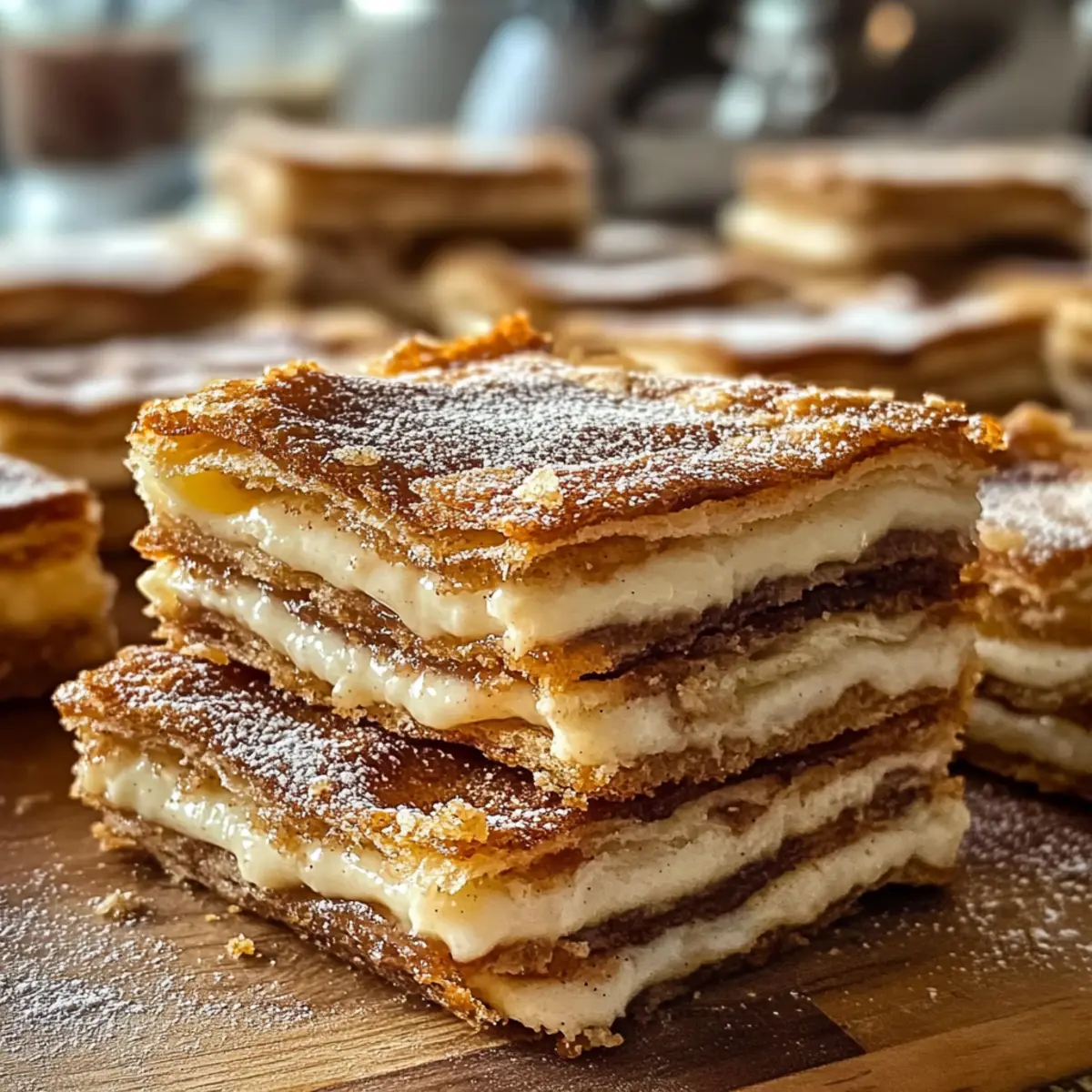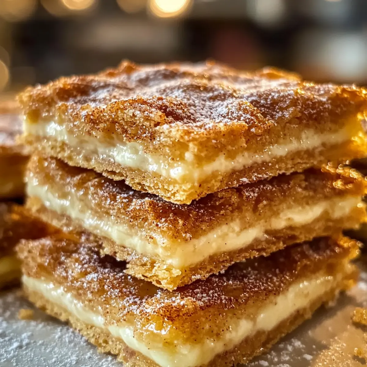 Wenn der Duft von warmem Karamell und Zimt in der Luft liegt, erkennst du sofort: Es ist Zeit für etwas Süßes! Diese Churro Saltine Toffee Bars sind nicht nur einfach zuzubereiten, sondern auch eine perfekte Mischung aus süßem, salzigem und knusprigem Genuss. Mit einer buttery toffee Schicht auf knusprigen Salzine-Crackern, gekrönt von einer feinen Zimt-Zucker-Dustung, wirst du im Handumdrehen zum Star deiner nächsten Kaffeetafel. Ein weiterer Vorteil? Dieses Rezept eignet sich hervorragend, um deine Freunde und Familie zu beeindrucken – ganz ohne aufwendige Backkünste. Ob für einen Filmabend oder als süßes Mitbringsel zur nächsten Feier, diese kleinen Leckerbissen machen garantiert jeden glücklich. Bist du bereit, in die Welt des Churro-Himmels einzutauchen? Warum wirst du dieses Rezept lieben? Einfachheit, diese Churro Saltine Toffee Bars sind im Handumdrehen zubereitet – ideal für Kochanfänger! Reiche Aromen, das Zusammenspiel von Karamell, Zimt und dem salzigen Cracker sorgt für ein Geschmackserlebnis, das alle begeistert. Vielseitigkeit, du kannst die Salzine-Cracker nach Wunsch ersetzen und mit Nüssen oder Schokolade experimentieren. Perfekte Konsistenz, der knusprige Grund und die cremige Toffee-Schicht machen jeden Bissen unwiderstehlich. Köstlicher Genuss, perfekt zu einer Tasse Kaffee oder mit einer Portion Vanilleeis. Erlebe, wie einfach es ist, deine Liebsten mit einem süßen Highlight zu überraschen! Churro Saltine Toffee Zutaten • Ein schneller Blick auf die Zutaten, die du für diese köstlichen Churro Saltine Toffee Bars benötigst: Salzine-Cracker – Sie bilden die crunchy und salzige Basis für das Dessert. Du kannst sie durch Graham-Cracker oder Club-Cracker ersetzen, um unterschiedliche Geschmackserlebnisse zu schaffen. Butter – Sie bringt Reichhaltigkeit und hilft, die Toffee-Schicht zu entwickeln. Verwende ungesalzene Butter, um die Salzmenge zu kontrollieren. Brauner Zucker – Er sorgt für Süße und einen köstlichen Karamellgeschmack. Du kannst hellen oder dunklen braunen Zucker verwenden, je nach Vorliebe. Schlagsahne – Ihr cremiger Charakter macht die Toffee-Textur perfekt. Achte darauf, dass sie frisch ist, um die besten Ergebnisse zu erzielen. Zimt – Verleiht dem Ganzen eine warme, gewürzte Note. Verwende gemahlenen Zimt für die Einfachheit. Puderzucker – Der krönende Abschluss, der Süße und visuelle Attraktivität bringt. Passe ihn nach Geschmack an. Viel Spaß beim Zubereiten dieser Churro Saltine Toffee Bars, die nicht nur einfach sind, sondern auch ein Geschmackserlebnis bieten! Schritt-für-Schritt-Anleitung für Churro Salzine Toffee Step 1: Ofen vorheizen Heize den Ofen auf 175 °C vor und lege ein Backblech mit Backpapier aus. Das Backpapier sorgt dafür, dass die Churro Salzine Toffee Bars später einfach zu entfernen sind, und verhindert ein Ankleben. Stelle sicher, dass der Ofen gut vorgeheizt ist, damit die Toffee-Schicht gleichmäßig karamellisiert. Step 2: Salzine-Cracker anordnen Lege die Salzine-Cracker in einer einzelnen Schicht auf das vorbereitete Backblech. Achte darauf, dass die Cracker dicht beieinander liegen, um eine solide Basis für die Churro Salzine Toffee zu bilden. Diese knusprigen Cracker werden später die ideale Textur für die süße Karamellschicht bieten. Step 3: Butter und Zucker schmelzen Gib die Butter und den braunen Zucker in einen mittelgroßen Topf und erhitze sie bei mittlerer Hitze. Rühre kontinuierlich, bis die Mischung anfängt zu blubbern und eine goldene Farbe annimmt, was etwa 6-8 Minuten dauert. Achte darauf, dass die Hitze nicht zu hoch ist, da die Mischung sonst anbrennen könnte. Step 4: Sahne hinzufügen Nehme den Topf vom Herd und füge langsam die Schlagsahne hinzu, während du weiterhin rührst. Dies sorgt dafür, dass sich die Sahne gut mit dem heißen Karamell verbindet. Die Mischung sollte glatt und seidig sein. Überprüfe die Konsistenz, sie sollte cremig und ohne Klumpen sein. Step 5: Toffee über die Cracker gießen Gieße die Toffeemischung gleichmäßig über die Salzine-Cracker, sodass alle Cracker gut bedeckt sind. Nutze einen Spatel, um sicherzustellen, dass auch die Ränder gut mit dem Karamell benetzt sind. Die gesamte Fläche muss in der Mischung schwimmen, damit jedes Stück perfekt wird. Step 6: Backen Backe die angeordneten Salzine-Cracker für 10-12 Minuten im vorgeheizten Ofen, bis die Toffee-Mischung blubbert und leicht goldbraun ist. Beobachte den Fortschritt sorgfältig, damit das Karamell nicht zu dunkel wird; ein leicht goldenes Finish sorgt für einen perfekten Geschmack. Step 7: Mit Zimt und Puderzucker bestreuen Nehme das Backblech aus dem Ofen und sprenkle sofort eine Mischung aus Zimt und Puderzucker über die warmen Bars. Die Hitze wird dafür sorgen, dass der Zucker schmilzt und sich gut mit dem Toffee verbindet, was zusätzlichen Geschmack verleiht und das Aussehen der Churro Salzine Toffee verstärkt. Step 8: Abkühlen lassen Lass die Churro Salzine Toffee Bars vollständig abkühlen, bevor du sie in Stücke schneidest. Dies kann etwa 30 Minuten dauern. Sobald sie abgekühlt sind, sollten sie fest und gut zusammenhalten, bereit zum Servieren oder Genießen. Lagerungstipps für Churro Saltine Toffee Raumtemperatur: Bewahre die Churro Saltine Toffee Bars in einem luftdichten Behälter auf, um ihre Frische bis zu einer Woche zu erhalten. So bleibt der köstliche Geschmack lange erhalten. Kühlschrank: Wenn du die Bars länger aufbewahren möchtest, kannst du sie auch im Kühlschrank lagern. Das verlängert die Haltbarkeit auf bis zu 10 Tage, aber die Konsistenz könnte sich leicht verändern. Einfrieren: Wickele die Churro Saltine Toffee Bars einzeln in Frischhaltefolie und friere sie für bis zu 3 Monate ein. Lass sie vor dem Servieren bei Raumtemperatur auftauen, um den Geschmack wiederherzustellen. Wiederaufwärmen: Um die Bars wieder etwas aufzufrischen, kannst du sie leicht im Ofen bei 150 °C für etwa 5 Minuten aufwärmen