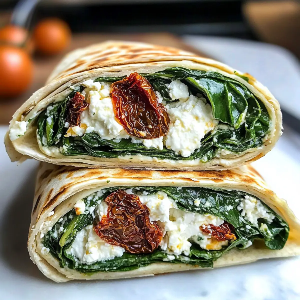 Die ersten Sonnenstrahlen des Morgens kitzeln sanft meine Haut, während ich in der Küche stehe und die Zubereitung eines köstlichen Frühstücks beginne. Heute präsentiere ich euch meinen Copycat Starbucks Spinat Feta Wrap, eine schnelle und einfache Variante des beliebten Cafés, die in weniger als 30 Minuten fertig ist. Diese vegetarische Köstlichkeit vereint frischen Spinat, cremigen Feta und den würzigen Kick von sonnengetrockneten Tomaten, alles verpackt in einer warmen Tortilla. Ein perfektes Gericht für alle, die auf der Suche nach einer budgetfreundlichen und tragbaren Option sind! Ob für hektische Morgen oder als schmackhafte Mittagspause, diese Wraps sind nicht nur schnell zubereitet, sondern auch eine wahre Gaumenfreude. Seid ihr bereit, das vertraute Café-Feeling nach Hause zu holen? Lasst uns gemeinsam in die Zubereitung eintauchen! Warum diesen Spinat Feta Wrap lieben? Schnelligkeit und Einfachheit: In weniger als 30 Minuten zubereitet, perfekt für hektische Morgen oder als schnelles Mittagessen. Frische Zutaten: Die Kombination aus frischem Spinat, cremigem Feta und würzigen sonnengetrockneten Tomaten sorgt für einen einzigartigen Geschmack, der den Gaumen erfreut. Portabilität: Ideal für unterwegs, diese Wraps passen in jede Lunchbox und halten euch auch unterwegs satt und glücklich. Anpassungsfähig: Mit einfachen Variationen wie glutenfreien Tortillas oder veganem Käse findet jeder die richtige Variante für sich. Budgetfreundlich: Eine kostengünstige Alternative zu teuren Café-Bestellungen, die trotzdem geschmacklich mithalten kann. Entdeckt auch weitere köstliche Optionen wie die Zucchini Spinat Feta oder die Honig Feta Hühnchen. Copycat Starbucks Spinat Feta Wrap Zutaten • Für ihr köstliches Aroma und die gesunde Fülle! Vollkorn-Tortillas: – Die Basis des Wraps; für eine glutenfreie Option glutenfreie Tortillas verwenden. Eiklar: – Bietet Protein und eine leichte Textur; ganze Eier können verwendet werden, erhöhen jedoch den Fettgehalt. Frischer Babyspinat: – Sorgt für Nährstoffe und Farbe; kann durch Grünkohl ersetzt werden, um einen anderen Geschmack zu erzielen. Sonnengetrocknete Tomaten (julienniert): – Verleiht einen reichen, würzigen Geschmack; am besten in Öl eingelegt für zusätzliche Feuchtigkeit. Feta-Käse (zerkrümelt): – Bietet salzige Cremigkeit; kann durch Ziegenkäse ersetzt werden für ein ähnliches Aroma mit anderer Textur. Olivenöl: – Für das Kochen und zur Geschmacksverstärkung; kann auch das Öl der sonnengetrockneten Tomaten für zusätzlichen Geschmack verwendet werden. Frischkäse (auf Raumtemperatur): – Dient als Basis für den Aufstrich; Low-Fat oder regulär sind austauschbar. Salz und Pfeffer: – Unverzichtbar zur Würzung und zur Verstärkung der Aromen. Entdecke jetzt, wie du diesen Copycat Starbucks Spinat Feta Wrap einfach selbst zubereiten kannst! Schritt-für-Schritt-Anleitung für Copycat Starbucks Spinat Feta Wrap Step 1: Aufstrich zubereiten Vermische in einer Schüssel den Raumtemperatur-Frischkäse mit den gehackten sonnengetrockneten Tomaten. Füge nach Belieben Salz und Pfeffer hinzu, um den Geschmack zu verstärken. Rühre gut um, bis eine gleichmäßige Mischung entsteht. Dieser Aufstrich wird das herzliche Element deines Copycat Starbucks Spinat Feta Wrap sein. Step 2: Spinat anbraten Erhitze in einer großen Pfanne bei mittlerer Hitze einen Esslöffel Olivenöl. Füge eine großzügige Handvoll frischen Babyspinat hinzu und brate ihn für etwa 2-3 Minuten, bis er verwelkt ist. Achte darauf, dass der Spinat eine leuchtend grüne Farbe annimmt und zerfällt. Sobald er gar ist, nimm ihn aus der Pfanne und stelle ihn beiseite. Step 3: Eiklar zubereiten Gib einen weiteren Schuss Olivenöl in die Pfanne und erhitze es leicht. Schlage die Eiklar in die Pfanne und würze sie mit etwas Salz und Pfeffer. Koche die Eiklar für etwa 3-4 Minuten, bis sie fest werden. Falten Sie die Eiklar wie ein Omelett und garen Sie sie noch 1-2 Minuten, bis sie vollständig durchgegart sind. Schneide sie in fünf gleich große Stücke. Step 4: Wraps zusammenstellen Lege eine Vollkorn-Tortilla auf eine saubere Oberfläche oder einen Teller. Verteile den sonnengetrocknete Tomaten-Frischkäse gleichmäßig darauf. Füge dann den angebratenen Spinat und die Stücke der Eiklar hinzu. Streue zerkrümelten Feta und ein paar zusätzliche sonnengetrocknete Tomaten darüber, um den Wrap noch schmackhafter zu machen. Step 5: Wraps toasten Lege die ausgestopften Wraps mit der Naht nach unten in die Pfanne und röste sie bei mittlerer Hitze für 2-3 Minuten, bis sie goldbraun sind. Wende die Wraps vorsichtig um und toaste die andere Seite ebenfalls für 2-3 Minuten, bis sie schön knusprig und goldbraun sind. Achte darauf, nicht zu stark zu rösten, um ein Anbrennen zu vermeiden. Step 6: Servieren Nehme die warmen Copycat Starbucks Spinat Feta Wraps aus der Pfanne und schneide sie diagonal in zwei Hälften. Genieße sie warm, um die besten Aromen zu erleben. Diese Wraps sind ideal für unterwegs und bringen das Café-Feeling direkt in deine Küche! Copycat Starbucks Spinat Feta Wrap Variationen Entdecke spannende Möglichkeiten, wie du diesen Wrap an deinen Geschmack anpassen kannst! Glutenfrei: Verwende glutenfreie Tortillas, um diese köstliche Variante für Allergiker zu kreieren. Vegan: Tausche Feta gegen eine pflanzliche Käsesorte und verwende Tofu statt Eiklar für eine vegane Option. Extra Würze: Füge scharfe Paprika oder Jalapeños hinzu, um jedem Biss einen herzhaften Kick zu verleihen. Die Kombination aus den würzigen Zutaten bringt zusätzliche Geschmacksnuancen. Kräuterfrisch: Ergänze frische Kräuter wie Basilikum oder Petersilie, um einen frischen, aromatischen Geschmack zu erzielen. Diese werden dem Wrap eine besondere Frische verleihen. Süßigkeitskick: Füge geröstete Pinienkerne oder Walnüsse hinzu, um die Textur zu variieren und einen nussigen Geschmack zu erhalten. Ein genialer Kon