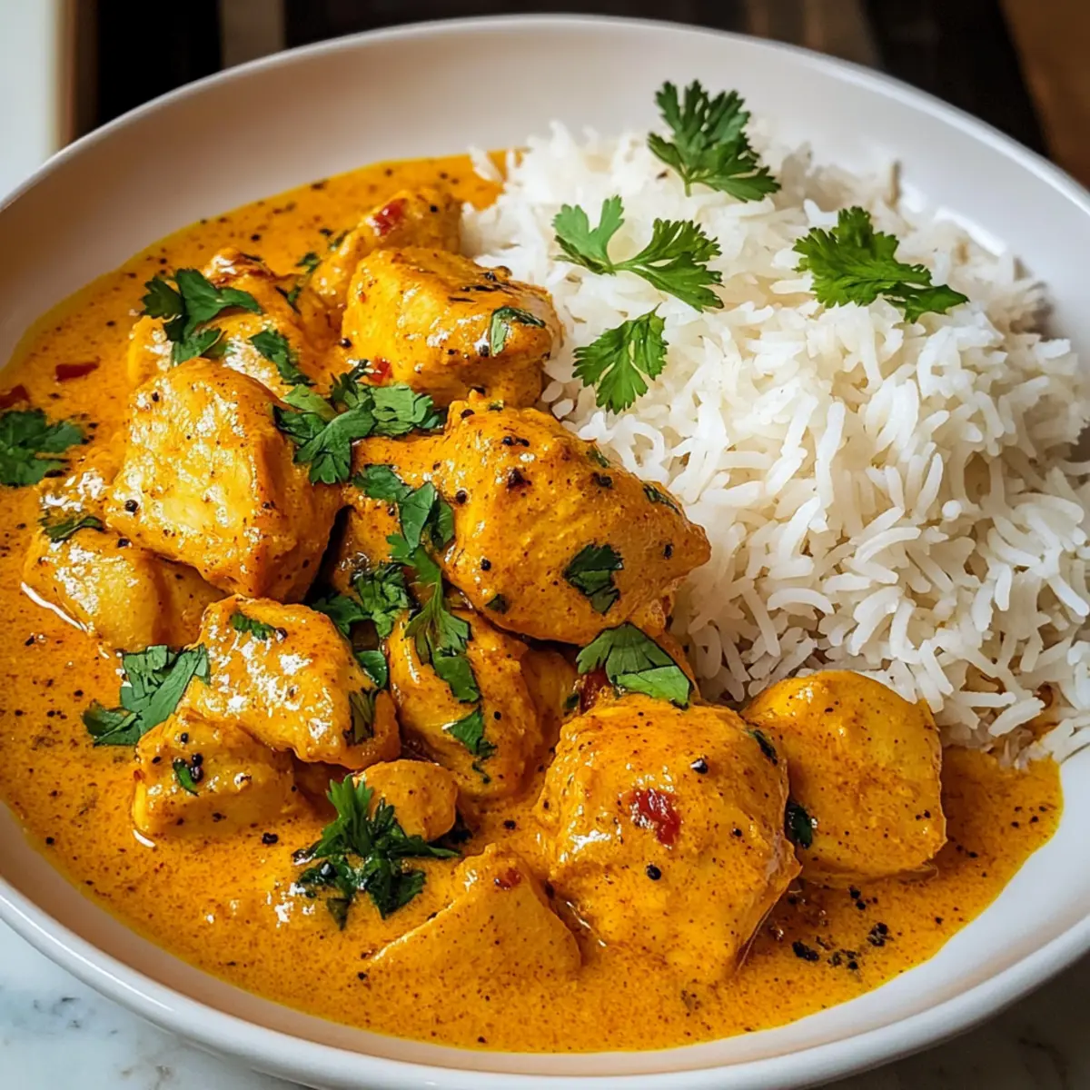 Gekochter Basmati-Reis oder Naan – Ideal, um die cremige Sauce aufzusaugen.