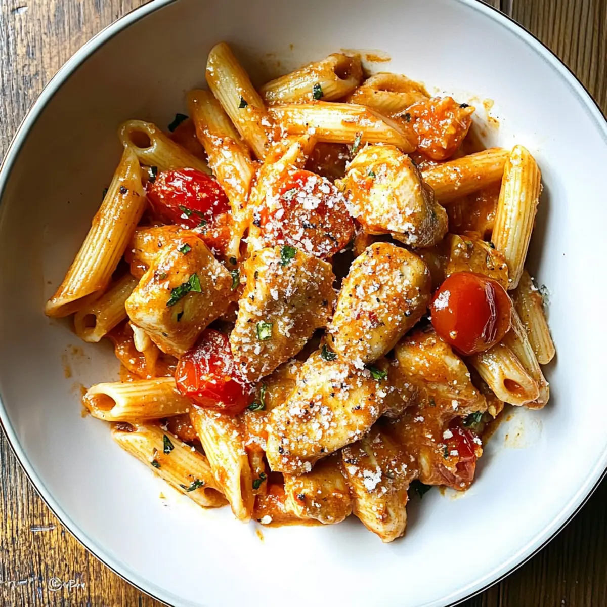 Die Zubereitung von Cremiger Hähnchen all’Arrabbiata ist ideal für stressfreie Wochenabendessen! Sie können die Hähnchenbrustfilets bis 24 Stunden im Voraus marinieren, um das Aroma zu intensivieren. Auch die Sauce lässt sich bequem vorbereiten und ist im Kühlschrank bis zu 3 Tage haltbar; einfach aufwärmen, bevor Sie die Pasta hinzufügen. Während des Aufwärmens können Sie etwas von dem zurückbehaltenen Nudelwasser hinzufügen, um die Konsistenz der Sauce zu perfektionieren und eine cremige Textur zu gewährleisten. Wenn es Zeit zum Servieren ist, kochen Sie die Penne frisch und vermengen sie rasch mit der Sauce – so bleibt der Geschmack, wie er sein sollte: genauso köstlich und einladend!
