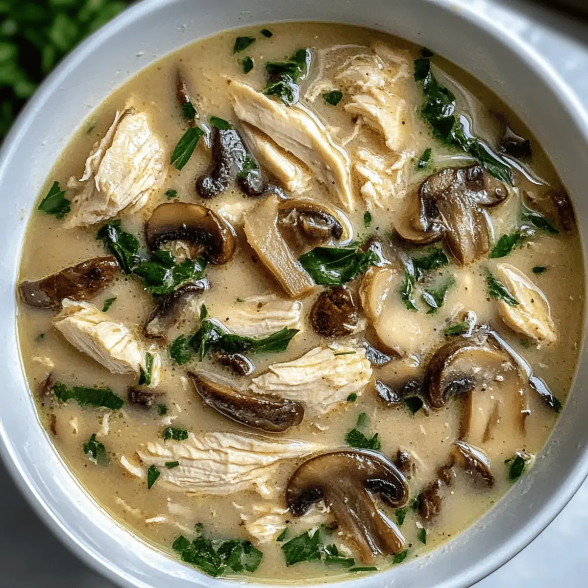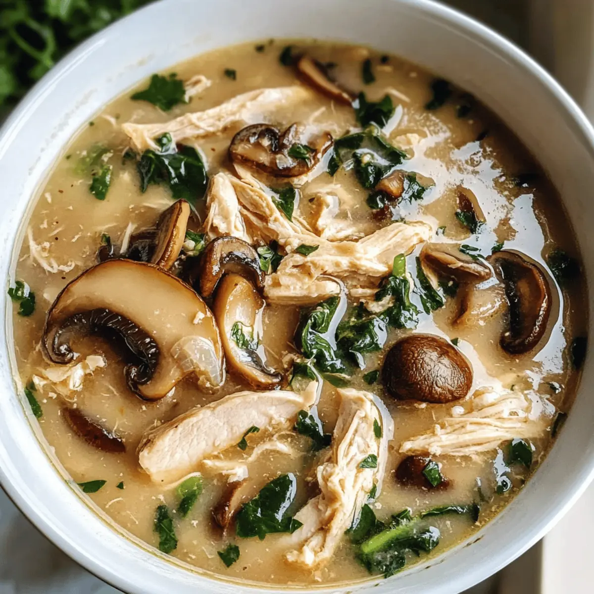 Der erste Biss in diese Cremige Rotisserie-Hühnchen-Pilzsuppe ist wie eine Umarmung an einem kalten Winterabend. Während ich die Zubereitung beginne, wird mir klar, dass diese Suppe nicht nur eine einfache Mahlzeit ist, sondern ein wahrer Wohlfühl-Klassiker, der aus übrig gebliebenem Hühnchen zubereitet wird. Die Kombination aus zartem Hühnchen, erdigen Pilzen und frischem Spinat in einem reichhaltigen, cremigen Fond macht sie zu einer unschlagbaren Option für jeden Tag. Zudem ist sie glutenfrei und kohlenhydratarm – perfekt für all jene, die auf eine ausgewogene Ernährung achten. Dieses Rezept lässt sich schnell zusammenstellen und verspricht, selbst die kritischsten Esser zu begeistern. Wer könnte da widerstehen? Was wird wohl der Geheimtipp sein, um diese sensationelle Suppe noch mehr aufzupeppen? Warum werden Sie diese Suppe lieben? Wohlfühl-Aroma: Der erste Löffel dieser cremigen Suppe ist wie eine warme Umarmung. Einfachheit: Mit nur wenigen Zutaten und minimalem Aufwand können Sie im Handumdrehen eine köstliche Mahlzeit zaubern. Vielseitigkeit: Ob als schnelles Abendessen oder elegantes Gericht für Gäste, diese Suppe passt zu jedem Anlass. Gesunde Wahl: Glutenfrei und kohlenhydratarm, ideal für ernährungsbewusste Feinschmecker. Einfache Resteverwertung: Verwenden Sie einfach Ihr übrig gebliebenes Hühnchen und verwandeln Sie es in etwas Wundervolles. Wenn Sie nach weiteren geschmackvollen Ideen suchen, schauen Sie sich auch unsere Mexikanischen Tostadas Rotisserie an! Zutaten für die Cremige Hähnchen-Pilz-Suppe Diese cremige Suppe mit Rotisserie-Hühnchen ist nicht nur köstlich, sondern auch einfach zuzubereiten. Für das Anbraten Olivenöl oder Butter – Sorgt für die nötige Fettbasis zum Sautieren der Gemüse. Sie können auch ein neutrales Öl verwenden, wenn gewünscht. 1 Zwiebel (gewürfelt) – Bildet die Geschmacksbasis der Suppe; für einen milderen Geschmack nutzen Sie Schalotten. 2 Selleriestangen (fein gehackt) – Fügt aromatischen Geschmack und knusprige Textur hinzu; Karotten können eine süßere Note bieten. Für die aromatische Basis 4 Knoblauchzehen (gehackt) – Bringt Tiefe und Aroma, keine Alternativen empfohlen. 1 lb Pilze (dünn geschnitten) – Liefert umami Geschmack und Textur; wählen Sie verschiedene Sorten wie Cremini oder Champignon. 2 TL frischer Thymian – Verstärkt den Kräutergeschmack; Sie können auch 1 TL getrockneten Thymian verwenden. Für die Hauptmasse 1 Rotisserie-Hühnchen (zerrupft) – Die Hauptquelle für Protein; verwenden Sie auch jedes andere gekochte Hühnchen. 6 Tassen Brühe – Bildet die Basis der Suppe; wählen Sie Hühner- oder Gemüsebrühe. 1 Tasse Sahne – Fügt Cremigkeit und Wohlgeschmack hinzu; für eine milchfreie Variante nutzen Sie Kokoscreme. 3 Tassen Spinat (gehackt) – Steigert die Nährstoffdichte und bringt Farbe ins Spiel; auch Grünkohl oder Mangold sind möglich. Für den letzten Schliff Prise Chili-Flocken – Verleiht eine leichte Schärfe; weglassen, wenn Sie es milder mögen. Salz und Pfeffer (nach Geschmack) – Unverzichtbar zum Würzen. Mit diesen Zutaten sind Sie bestens gerüstet, um diese einzigartige, cremige Rotisserie-Hühnchen-Pilzsuppe zuzubereiten, die nicht nur ein Fest für den Gaumen, sondern auch ein Genuss für die Seele ist. Schritt-für-Schritt-Anleitung für die Cremige Hähnchen-Pilz-Suppe Step 1: Öl erhitzen Erhitzen Sie in einem großen Topf bei mittlerer Hitze 2 Esslöffel Olivenöl oder Butter. Warten Sie, bis das Öl heiß ist und leicht zu blubbern beginnt, was etwa 1-2 Minuten in Anspruch nehmen sollte. Dies schafft eine geschmackvolle Basis für das Anbraten der Gemüse in Ihrer cremigen Hähnchen-Pilz-Suppe. Step 2: Zwiebel und Sellerie anbraten Fügen Sie die gewürfelte Zwiebel und den fein gehackten Sellerie hinzu. Sautieren Sie die Mischung für etwa 5 Minuten, bis die Zwiebel weich und leicht goldbraun ist. Die Aromen werden sich vermischen und eine angenehme Süße entfalten, die die Grundlage Ihrer Suppe bildet. Step 3: Pilze hinzufügen Geben Sie die dünn geschnittenen Pilze in den Topf und rühren Sie um. Lassen Sie die Pilze für etwa 5-7 Minuten garen, bis sie goldbraun sind und ihr Wasser abgegeben haben. Dies verleiht Ihrer cremigen Hähnchen-Pilz-Suppe eine köstliche Umami-Note und die perfekte Textur. Step 4: Aromastoffe hinzufügen Fügen Sie den frischen Thymian und die zerdrückten Knoblauchzehen hinzu. Sautieren Sie diese Mischung für etwa 1 Minute, bis Sie einen aromatischen Duft wahrnehmen. Dies wird den Geschmack Ihrer Suppe intensivieren und sie besonders einladend machen. Step 5: Brühe und Sahne einrühren Gießen Sie 6 Tassen Brühe und 1 Tasse Sahne in den Topf. Bringen Sie die Mischung zum Köcheln und lassen Sie sie für ca. 5 Minuten sanft köcheln. Achten Sie darauf, dass die Suppe leicht blubbert, was den optimalen Garzustand anzeigt. Step 6: Hähnchen und Spinat hinzufügen Rühren Sie das zerrupfte Rotisserie-Hühnchen und den gehackten Spinat in die Suppe ein. Lassen Sie die Mischung für weitere 5 Minuten köcheln, bis der Spinat verwelkt ist und das Hähnchen durchgewärmt ist. Diese Zutaten bringen Farbe und Nährstoffe in Ihre cremige Hähnchen-Pilz-Suppe. Step 7: Würzen und servieren Schmecken Sie die Suppe mit Salz, Pfeffer und einer Prise Chili-Flocken ab, um den letzten Schliff zu verleihen. Servieren Sie die warme Suppe sofort in Schüsseln, vielleicht mit einem Spritzer Zitrone zur Aufhellung des Geschmacks. Genießen Sie diese herzerwärmende cremige Hähnchen-Pilz-Suppe! der Ausgang: Variationen & Ersatzmöglichkeiten Lassen Sie Ihrer Kreativität freien Lauf und passen Sie diese köstliche Suppe nach Ihrem Geschmack an! Glutenfrei: Verwenden Sie Reis- oder Gemüsebrühe anstelle von standardmäßiger Brühe, um die Suppe glutenfrei zu gestalten. Dairy-Free: Ersetzen Sie die Sahne durch Kokoscreme für eine cremige, milchfreie Variante, die dennoch reichhaltig schmeckt. Hühnchen ersetzen: Ve
