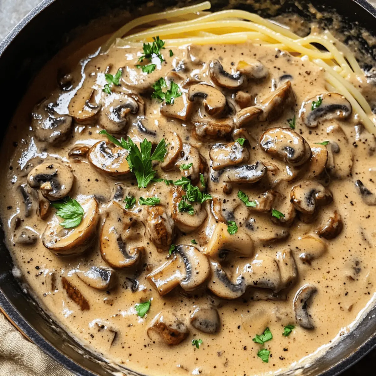 „Ich kann nicht mehr glauben, dass ich jemals auf Fertiggerichte zurückgegriffen habe!“ hörte ich eine Freundin murmeln, als wir über unsere Leidenschaft für selbstgekochte Speisen sprachen. Genau in solchen Momenten denke ich an meine geheime Zutat: die cremige Champignon-Marsala-Sauce. Diese köstliche Sauce verwandelt jedes Gericht in einen Gourmet-Traum und bietet nicht nur ein Verlangen nach mehr, sondern ist auch ein wahrer Alleskönner – ob über gegrilltem Fleisch, Pasta oder Gemüse. In nur wenigen Minuten zubereitet, sorgt sie dafür, dass ich in kürzester Zeit am Tisch Feinschmecker-Momente erleben kann. Bereit, deinen Gaumen mit einer perfekten Kombination aus erdigen Pilzen und einem Hauch süßem Marsala zu verwöhnen? Lass uns gemeinsam in die Zubereitung dieser unwiderstehlichen Sauce eintauchen! Warum ist diese Sauce so besonders? Vielseitigkeit, diese cremige Pilz-Marsala-Sauce passt zu fast jedem Gericht, sei es über saftigem Steak oder in einer gemüsereichen Pasta. Schnelle Zubereitung, in nur 20 Minuten zauberst du ein Gourmet-Essen für Familie und Freunde. Einfachheit, selbst Kochanfänger meistern diese Rezeptur mühelos. Reiche Aromen, die Kombination aus erdigen Champignons und süßem Marsala bringt einen unverwechselbaren Geschmack. Wenn du nach einer kreativen Variante suchst, könnte die Cremige Gemuesepasta Rezept genau das Richtige für dich sein! Zutaten für die Cremige Pilz-Marsala-Sauce • Entdecke die essenziellen Zutaten für die perfekte Sauce, die dein Gericht auf das nächste Level hebt! Olivenöl: – Fügt Reichhaltigkeit hinzu und eignet sich hervorragend zum Anbraten. Du kannst auch neutrales Öl verwenden, um die Sauce leichter zu machen. Zwiebel (1, gehackt): – Sorgt für Süße und Geschmackstiefe. Gelbe Zwiebeln sind wegen ihres ausgewogenen Geschmacks ideal. Knoblauch (1 Zehe, gehackt): – Verstärkt das Aroma. Verwende mehr für einen stärkeren Geschmack oder lasse ihn weg, wenn du heikel bist. Champignons (200g/2 Tassen, dick geschnitten): – Die Hauptzutat, die Umami-Geschmack und eine fleischige Textur bietet. Kombiniere verschiedene Sorten wie Cremini und Shiitake für mehr Tiefe. Frischer Rosmarin (1 Esslöffel, gehackt) oder getrockneter Rosmarin (1 Teelöffel): – Bringt kräuterliche Noten. Du kannst ihn auch mit Thymian oder Estragon ersetzen, wenn nötig. Mehl (1 Esslöffel): – Dient als Verdickungsmittel für eine reichhaltige Sauce. Für eine glutenfreie Variante verwende Maisstärke oder ein glutenfreies Mehlgemisch. Süßer Marsala-Wein (125ml/1/2 Tasse): – Verleiht Süße und Komplexität. Du kannst ihn durch trockenen Weißwein ersetzen, aber der Geschmack wird sich verändern. Hühner- oder Gemüsebrühe (1 Tasse): – Sorgt für eine herzhaft tiefgründige Basis. Selbstgekochte oder natriumarme Optionen sind ideal, um die Intensität der Aromen zu kontrollieren. Schlagsahne/Sahne (125ml/1/2 Tasse): – Schafft eine luxuriöse Textur. Für eine pflanzliche Option probiere Kokoscreme oder eine Pflanzencreme. Salz/Pfeffer: – Unverzichtbar für das Würzen. Passe die Menge je nach Geschmack an. Petersilie (1-2 Zweige, optional): – Fügt frische Farben und Geschmack beim Servieren hinzu. Lass sie weg, wenn du magst. Mit diesen Zutaten steht einem wahrhaft exquisite Erfahrung mit deiner Sauce nichts mehr im Weg! Schritt-für-Schritt-Anleitung zur Cremigen Pilz-Marsala-Sauce Step 1: Öl und Zwiebeln anbraten Erhitze in einer großen Pfanne bei niedriger Hitze 2 Esslöffel Olivenöl. Füge die gehackte Zwiebel hinzu und brate sie 5-7 Minuten lang, bis sie weich und leicht goldbraun wird. Rühre gelegentlich um, damit die Zwiebeln gleichmäßig garen und ein angenehmes Aroma entfalten. Step 2: Knoblauch hinzufügen Gib eine zerdrückte Knoblauchzehe in die Pfanne und rühre etwa 30 Sekunden lang, bis der Knoblauch duftet. Achte darauf, dass der Knoblauch nicht verbrennt, da er sonst bitter wird. Die Gewürze aus der ersten Phase werden durch den Knoblauch intensiviert und verleihen der Cremigen Pilz-Marsala-Sauce mehr Tiefe. Step 3: Champignons und Gewürze anbraten Füge die dick geschnittenen Champignons sowie eine Prise Pfeffer und den gehackten Rosmarin hinzu. Brate alles für etwa 8-10 Minuten unter gelegentlichem Rühren, bis die Champignons schön goldbraun und karamellisiert sind. Dies bringt den Umami-Geschmack perfekt zur Geltung und lässt die Sauce reichhaltig erscheinen. Step 4: Mehl einrühren Streue 1 Esslöffel Mehl über die Champignons und rühre um, um sie gleichmäßig zu beschichten. Lasse die Mischung etwa 1-2 Minuten bei mittlerer Hitze kochen, damit das Mehl leicht angeröstet wird und einen nussigen Geschmack entfaltet. Dies hilft, die Konsistenz der Cremigen Pilz-Marsala-Sauce zu verdicken. Step 5: Mit Marsala ablöschen Gieße 125ml süßen Marsala-Wein in die Pfanne und rühre gut um, um die aromatischen Rückstände vom Pfannenboden zu lösen. Lasse die Sauce 5 Minuten lang köcheln, bis sie um die Hälfte reduziert ist. Dies intensiviert den Geschmack und verleiht der Sauce eine köstliche Süße. Step 6: Brühe hinzufügen Gieße 1 Tasse Hühner- oder Gemüsebrühe in die Pfanne und bringe die Mischung zum Kochen. Koche die Sauce weitere 5 Minuten, bis sie merklich dicker wird und die Aromen gut miteinander verschmelzen. Diese Basis sorgt für einen herzhaften und komplexen Geschmack in der Cremigen Pilz-Marsala-Sauce. Step 7: Sahne einrühren Reduziere die Hitze und füge 125ml Schlagsahne hinzu, rühre dabei stetig um, bis die Sauce schön cremig ist. Achte darauf, die Sauce nicht zum Kochen zu bringen, damit die Sahne ihre Textur behält und nicht gerinnt. Passe die Gewürze nach Belieben an, um die perfekte Balance in deiner Sauce zu erreichen. Step 8: Garnieren und servieren Wenn die Sauce warm ist, kannst du sie nach Belieben mit frischer Petersilie garnieren. Diese letzte Note bringt nicht nur Farbe, sondern auch frische Aromen in die Cremige Pilz-Marsala-Sauce. S