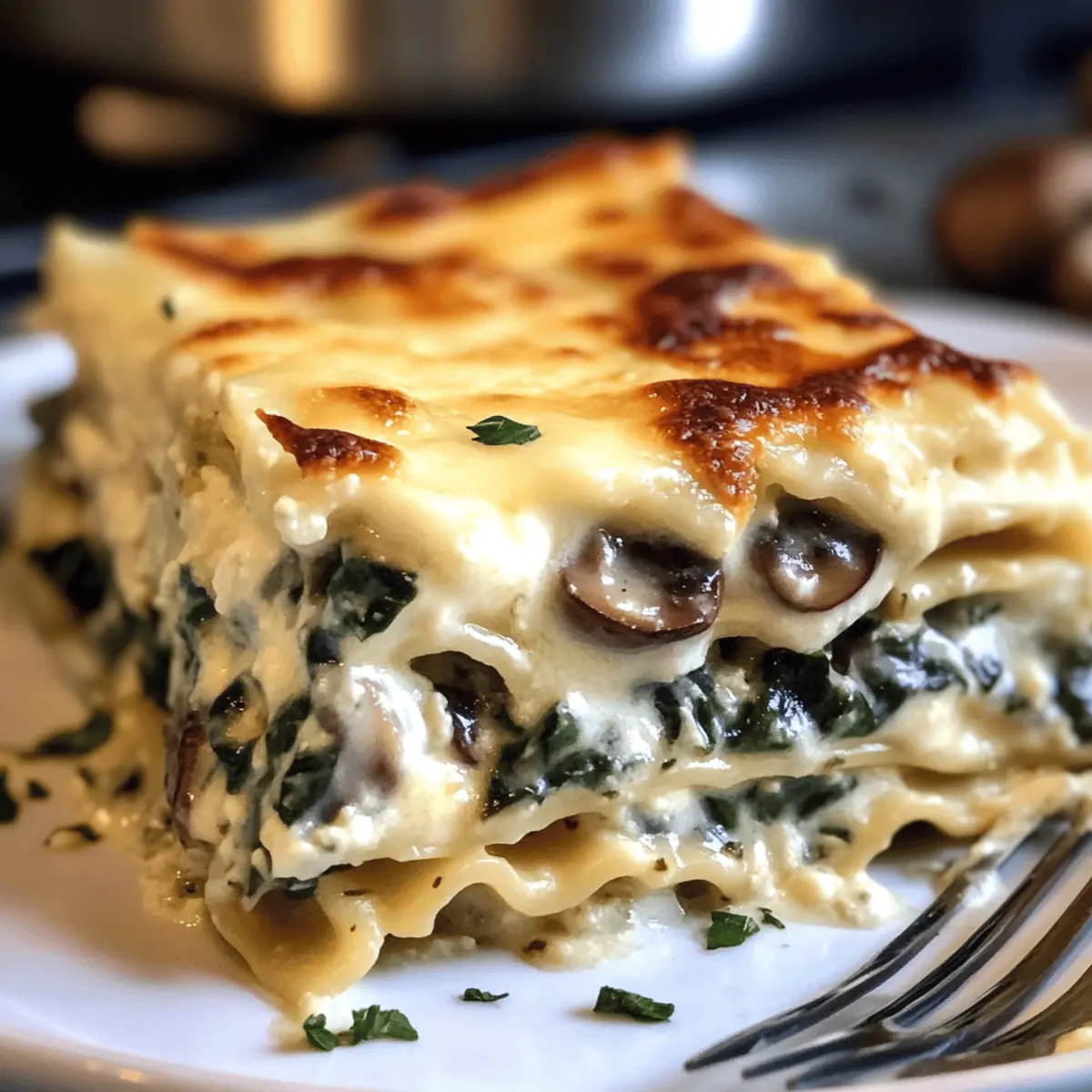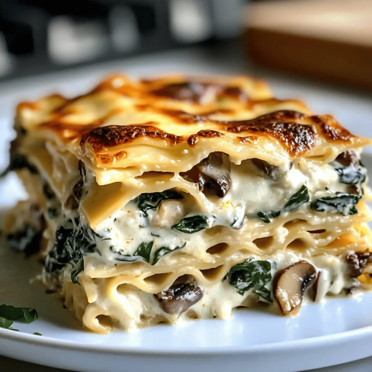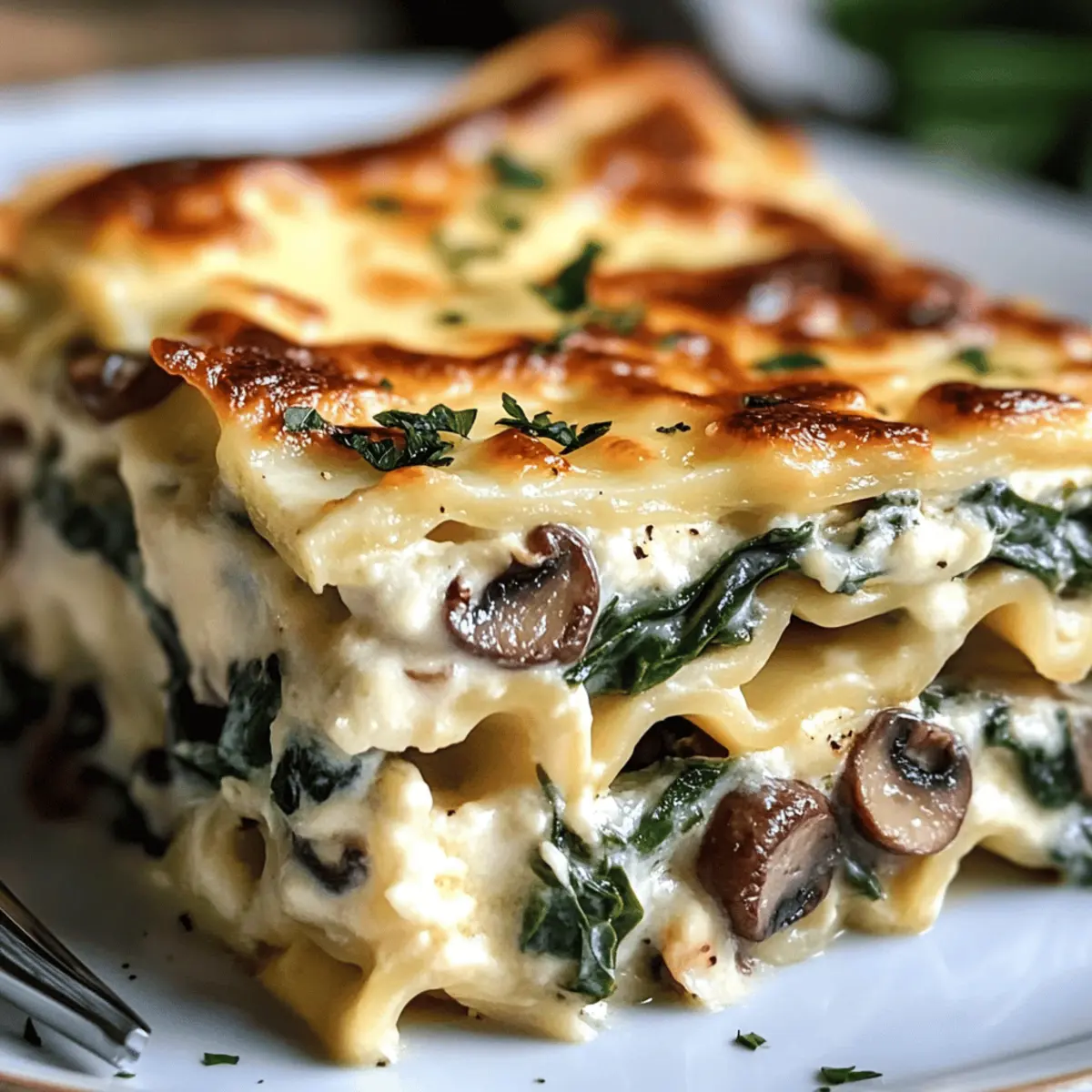 Neulich, als ich in der Küche stand und den herrlichen Duft von sautierten Pilzen und frisch blanchiertem Spinat wahrnahm, wusste ich, dass ich etwas Besonderes zaubern würde. Die Cremige Spinat- und Pilz-Weißlasagne verbindet die Wärme und Gemütlichkeit eines klassischen Gerichts mit einem gesunden Twist, der selbst die kritischsten Geschmäcker begeistert. Diese unvergessliche Lasagne macht nicht nur das Familienessen zu einem Fest, sondern ist auch überraschend einfach zuzubereiten – genau das Richtige, wenn der Alltag hektisch wird. Mit einer reichhaltigen Béchamelsauce und der Möglichkeit, sie glutenfrei zuzubereiten, ist sie ein wahrer Genuss für alle! Ich kann es kaum erwarten, mit euch die Schritte zu teilen, um dieses cremige Wohlfühlessen zu kreieren. Wer ist bereit, seine eigene Version zu zaubern? Warum ist diese Lasagne so besonders? Einfachheit: Die Zubereitung ist unkompliziert und erfordert keine speziellen Kochkenntnisse. Reichhaltiger Geschmack: Die Kombination aus Spinat, Champignons und Béchamelsauce sorgt für ein harmonisches Geschmacksprofil. Vielseitigkeit: Diese Lasagne kann leicht an persönliche Vorlieben angepasst werden, indem Gemüse oder Käse Ihrer Wahl hinzugefügt werden. Gesunde Wahl: Mit frischen Zutaten ist sie nicht nur lecker, sondern auch nahrhaft und befriedigend. Perfekt für jede Gelegenheit: Ob beim Familienessen oder als Festmahl, diese Lasagne begeistert garantiert jeden. Entdecken Sie auch unser Rezept für ein Caesar Croissant Sandwich als ideale Begleitung! Cremige Spinat-Mushroom Lasagne Zutaten • Diese köstliche Lasagne ist nicht nur ein Genuss, sondern auch sehr einfach zuzubereiten! Für die Lasagne Lasagne-Nudeln – Sie bilden die Hauptstruktur des Gerichts; glutenfreie Nudeln bieten eine tolle Alternative für eine glutenfreie Ernährung. Frischer Spinat – Sorgt für zusätzlichen Nährwert und frischen Geschmack; probieren Sie auch Gemüse wie Zucchini oder Paprika für mehr Vielfalt. Champignons – Bringen eine erdige Note ins Gericht; braten Sie sie gut an, um ihren natürlichen Geschmack zu intensivieren. Für die Béchamelsauce Butter – Gibt der Sauce einen reichen Geschmack; wichtig, um sie vor dem Hinzufügen des Mehls zu schmelzen. Mehl – Wichtig für die Bindung; beim Mischen stetig rühren, um Klumpen zu vermeiden. Milch – Sorgt für die Cremigkeit; langsam hinzufügen, während Sie die Mischung auf dem Herd umrühren. Für den Käse Fontina oder Gruyère – Diese Käsesorten verleihen der Lasagne zusätzliche Tiefe; verwöhnen Sie Ihren Gaumen mit verschiedenen Käsesorten für eine besondere Note! Schritt-für-Schritt-Anleitung für Cremige Spinat-Mushroom Lasagne Step 1: Champignons anbraten Erhitze in einer großen Pfanne bei mittlerer Hitze etwas Öl und füge die in Scheiben geschnittenen Champignons hinzu. Brate sie für etwa 5-7 Minuten, bis sie goldbraun und karamellisiert sind. Rühre gelegentlich um, um eine gleichmäßige Bräunung zu gewährleisten und den vollen Geschmack zu entfalten. Diese Schritt sorgt für die perfekte Grundlage in deiner cremigen Spinat-Mushroom Lasagne. Step 2: Béchamelsauce zubereiten In einem Topf die Butter bei mittlerer Hitze schmelzen und das Mehl hinzufügen. Rühre kontinuierlich für etwa 2 Minuten, um eine blonde Mehlschwitze zu bilden. Gieße langsam die Milch hinzu, während du ständig whiskst. Koche die Mischung 5-7 Minuten, bis sie dick und glatt ist. Achte darauf, dass keine Klumpen entstehen, um die perfekte Cremigkeit für die Lasagne zu erreichen. Step 3: Spinat hinzufügen Füge den frischen Spinat zu den Champignons in die Pfanne hinzu und brate ihn für weitere 2-3 Minuten, bis er zusammenfällt und zart wird. Rühre dabei regelmäßig um, um sicherzustellen, dass der Spinat gleichmäßig gegart wird. Dieser Schritt verstärkt die Aromen in deiner cremigen Spinat-Mushroom Lasagne. Step 4: Zutaten schichten Heize den Ofen auf 180 °C vor. Beginne die Lasagne zu schichten, indem du eine dünne Schicht Béchamelsauce auf den Boden einer Auflaufform verteilst. Lege dann eine Schicht Lasagne-Nudeln darauf, gefolgt von der Pilz-Spinat-Mischung und einer weiteren Schicht Béchamel. Wiederhole diese Schichtung, bis alle Zutaten aufgebraucht sind und beende mit einer Schicht Béchamel. Step 5: Backen Stelle die Lasagne in den vorgeheizten Ofen und backe sie für etwa 30-35 Minuten, bis die Oberseite goldbraun und blubbernd ist. Während des Backens entwickelt sich eine köstliche, knusprige Kruste und der Duft der cremigen Spinat-Mushroom Lasagne wird deine Küche erfüllen. Step 6: Vor dem Servieren ruhen lassen Nehme die Lasagne aus dem Ofen und lasse sie für etwa 10-15 Minuten ruhen. Dieser Schritt ist wichtig, um die Struktur zu festigen und das Schneiden zu erleichtern. Sobald sie etwas abgekühlt ist, kannst du die Lasagne in Stücke schneiden und servieren. Genieße deine selbstgemachte, cremige Spinat-Mushroom Lasagne! Was passt gut zur Cremigen Spinat-Mushroom Lasagne? Die perfekte Begleitung zu einem herzhaften Gericht macht das Essen zu einem unvergesslichen Erlebnis, während wir die Sinne verwöhnen. Frischer Beilagensalat: Erfrischender, knackiger Salat bringt eine gesunde Komponente und bietet einen schönen Kontrast zur cremigen Lasagne. Knoblauchbrot: Außen knusprig und innen weich, das Knoblauchbrot ergänzt den herzhaften Charakter und sorgt für ein noch schmackhafteres Essen. Gegrilltes Gemüse: Geröstetes Gemüse wie Zucchini oder Paprika ergänzt die Lasagne auf wunderbare Weise und fügt zusätzliche Geschmäcker und Texturen hinzu. Zitrus-Cocktail: Ein spritziger Cocktail mit Zitronen- oder Limettengeschmack bringt Frische und belebt den Gaumen zwischen den Bissen. Weißwein: Ein leichter Weißwein wie Pinot Grigio harmoniert hervorragend mit den Aromen der Lasagne und hebt das gesamte Esserlebnis hervor. Schokoladendessert: Schokoladenmousse oder ein Stück Schokoladenkuchen ist der perfekte krönende Abschluss für die