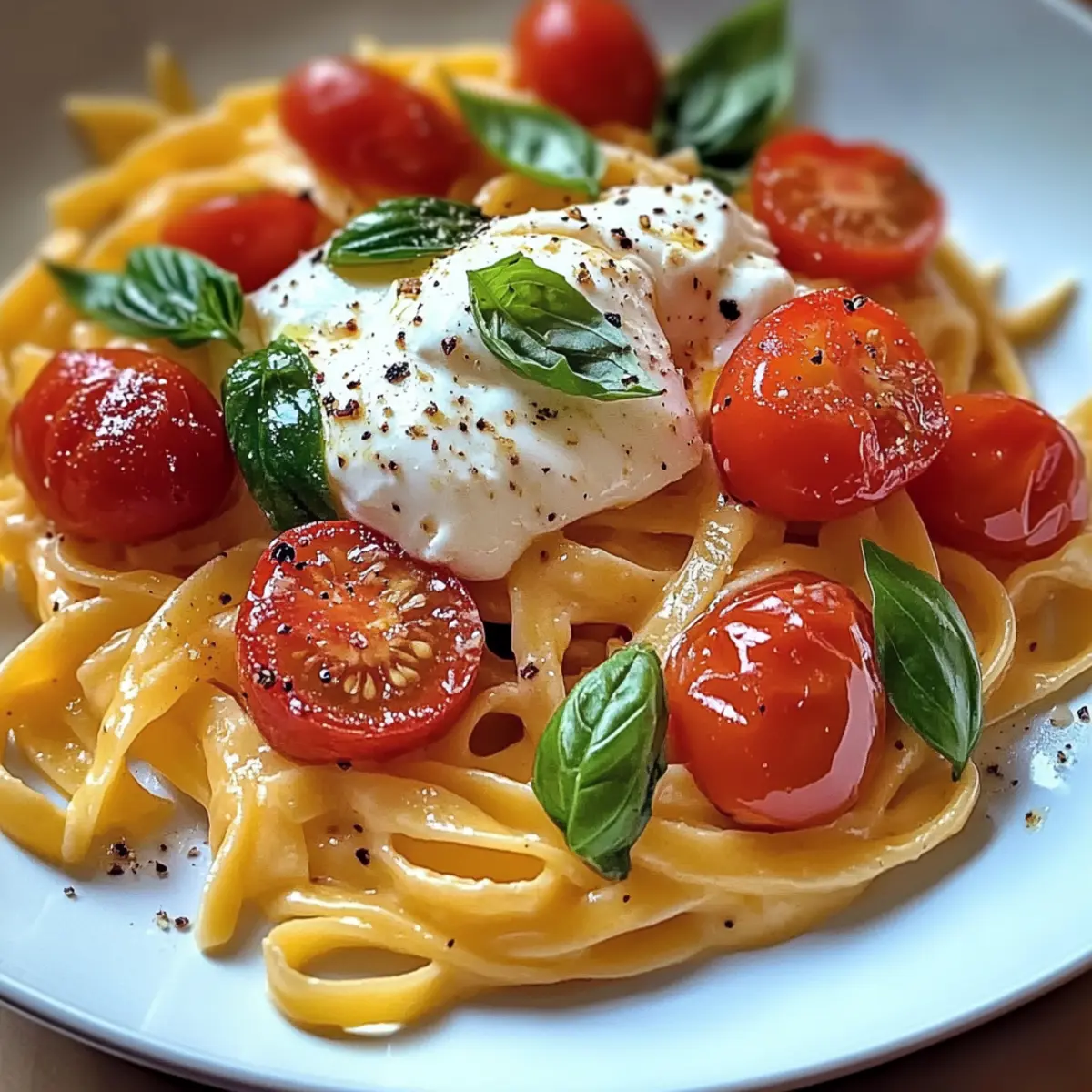 Als ich gestern Abend in der Küche stand, kam mir die zündende Idee: Warum nicht eine cremige Tomaten-Burrata-Pasta zaubern, die im Handumdrehen zubereitet ist? Mit dem köstlichen Geschmack saftiger Kirschtomaten und der schmelzenden Burrata wird dieses Gericht zum Höhepunkt deiner nächsten Mahlzeit – und das in unter 30 Minuten! Diese cremige Tomaten-Burrata-Pasta ist nicht nur ein wahrer Genuss für den Gaumen, sondern eignet sich perfekt für hektische Abende, an denen du trotzdem nicht auf ein luxuriöses Geschmackserlebnis verzichten möchtest. Ganz gleich, ob du dich mit Freunden zusammensetzt oder einfach einen ruhigen Abend zu Hause verbringst – diese Pasta wird garantiert zum neuen Lieblingsrezept! Bereit, den Kochlöffel zu schwingen und deine Geschmacksnerven zu verwöhnen? Lass uns loslegen! Warum ist diese Pasta so besonders? Einfachheit: Die zubereitung dauert weniger als 30 Minuten und ist damit perfekt für hektische Abende geeignet. Reichhaltiger Geschmack: Die Kombination aus frischen Kirschtomaten und der cremigen Burrata begeistert jeden Gaumen und ist ein echter Genuss! Vielseitigkeit: Du kannst das Rezept nach Belieben anpassen – füge Spinat oder geröstete Nüsse hinzu, um neue Geschmackserlebnisse zu kreieren. Kochfreude: Ideal für alle, die sich von Fast Food verabschieden möchten und die Freude am Kochen wiederentdecken wollen. Beliebtheit: Dieser Pastaklassiker sorgt garantiert für Begeisterung am Esstisch, egal ob du Freunde einlädst oder ein romantisches Dinner planst. Probiere auch die köstliche Kombination mit einem frischen Blattsalat – ein wahrer Genuss! Cremige Tomaten-Burrata-Pasta Zutaten Für die Pasta • Tagliatelle oder Farfalle – Die Grundlage der Pasta; du kannst auch glutenfreie Alternativen wählen. Für die Sauce • Kirschtomaten – Frisch und saftig; sie verleihen deinem Gericht eine süße Note. • Olivenöl – Zum Sautieren; sorgt für reichhaltigen Geschmack und Geschmeidigkeit. • Knoblauch – Aromatisch; frisch gehackt ist am besten, um die volle Geschmacksintensität zu erreichen. • Getrockneter Oregano – Für eine herzhafte Note; du kannst auch italienische Gewürzmischung verwenden. • Salz & Pfeffer – Unerlässlich zur Geschmacksanpassung; eine Prise reicht oft! Für die Cremigkeit • Burrata – Sorgt für eine samtige Textur; frisch kann auch Mozzarella verwendet werden. Zum Garnieren • Frisches Basilikum – Bringt Farbe und Frische ins Gericht. • Parmesan – Optional; verstärkt den herzhaften Geschmack der cremigen Tomaten-Burrata-Pasta. Sei bereit, in weniger als 30 Minuten ein köstliches Gericht zu zaubern und deine Lieben zu begeistern! Schritt-für-Schritt-Anleitung für Cremige Tomaten-Burrata-Pasta in weniger als 30 Minuten Step 1: Pasta kochen Bringe in einem großen Topf ausreichend gesalzenes Wasser zum Kochen. Füge die Tagliatelle oder Farfalle hinzu und koche sie 8-10 Minuten lang al dente. Achte darauf, dass die Pasta weich, aber noch bissfest ist. Gieße sie ab und behalte eine Tasse des Nudelwassers für später, um die Sauce bei Bedarf zu verdünnen. Step 2: Tomaten vorbereiten Während die Pasta kocht, wasche und halbiere 250 g der frischen Kirschtomaten. Lege sie beiseite, während du die Pfanne vorbereitest. Dieses frische Gemüse bringt die süße Note in deine cremige Tomaten-Burrata-Pasta und sorgt für die notwendige Farbvielfalt auf dem Teller. Step 3: Öl erhitzen Erhitze in einer großen Pfanne 2 Esslöffel Olivenöl bei mittlerer Hitze. Warte, bis das Öl leicht shimmernd ist – ein gutes Zeichen, dass es bereit ist, die Aromen zu entfalten. Die richtige Temperatur sorgt dafür, dass du die köstlichen Aromen des Knoblauchs und der Tomaten optimal zur Geltung bringst. Step 4: Knoblauch sautieren Füge 2-3 fein gehackte Knoblauchzehen in die Pfanne und brate sie 1-2 Minuten lang an. Achte darauf, dass der Knoblauch goldbraun und aromatisch wird, ohne zu verbrennen, da er sonst bitter schmecken würde. Diese aromatische Basis wird deiner cremigen Tomaten-Burrata-Pasta den gewünschten Kick verleihen. Step 5: Tomaten hinzufügen Gib die vorbereiteten Kirschtomaten in die Pfanne und lasse sie 5-7 Minuten kochen. Rühre gelegentlich um, bis sie weich und leicht karamellisiert sind. Die Tomaten sollten ihren Saft abgeben und eine leckere, sämige Konsistenz bilden, die ideal für deine Sauce ist. Step 6: Würzen Streue 1 Teelöffel getrockneten Oregano, sowie Salz und Pfeffer nach Geschmack über die Tomaten. Mische alles gut durch und koche die Mischung weitere 1-2 Minuten, um die Gewürze vollständig zu integrieren. Der Oregano bringt eine herzhafte Note in die cremige Tomaten-Burrata-Pasta. Step 7: Pasta kombinieren Füge die abgetropfte Pasta in die Pfanne mit der Tomatensauce und vermenge alles gut miteinander. Nutze eine Zange oder einen Spatel, um die Pasta gleichmäßig mit der Sauce zu umhüllen. Wenn die Mischung zu dick ist, gib etwas von dem zurückgehaltenen Nudelwasser hinzu, um die gewünschte Cremigkeit zu erzielen. Step 8: Burrata hinzufügen Nimm 250 g Burrata und brach sie in Stücke über die Pasta. Lasse sie für etwa 1-2 Minuten in der heißen Pfanne schmelzen. Achte darauf, dass die Burrata dabei sanft schmilzt und sich gut mit der Pasta verbindet – das ist das Geheimnis der cremigen Textur deiner Tomaten-Burrata-Pasta. Step 9: Garnieren Zupfe frisches Basilikum und streue es großzügig über die fertige Pasta. Optional kannst du auch frisch geriebenen Parmesan darüber geben. Diese Zutaten sorgen nicht nur für einen visuellen Kontrast, sondern bringen auch zusätzliche Frische und Geschmack, die das Gericht abrunden. Step 10: Servieren Serviere die leckere cremige Tomaten-Burrata-Pasta sofort in tiefen Tellern. Achte darauf, die Pasta gut in der Sauce zu positionieren, sodass jeder Bissen mit der cremigen Burrata und den süßen Tomaten gefüllt ist. Ein Genuss, der am besten direkt nach der Zubereitung genossen wird! Aufbewahrungstipps f