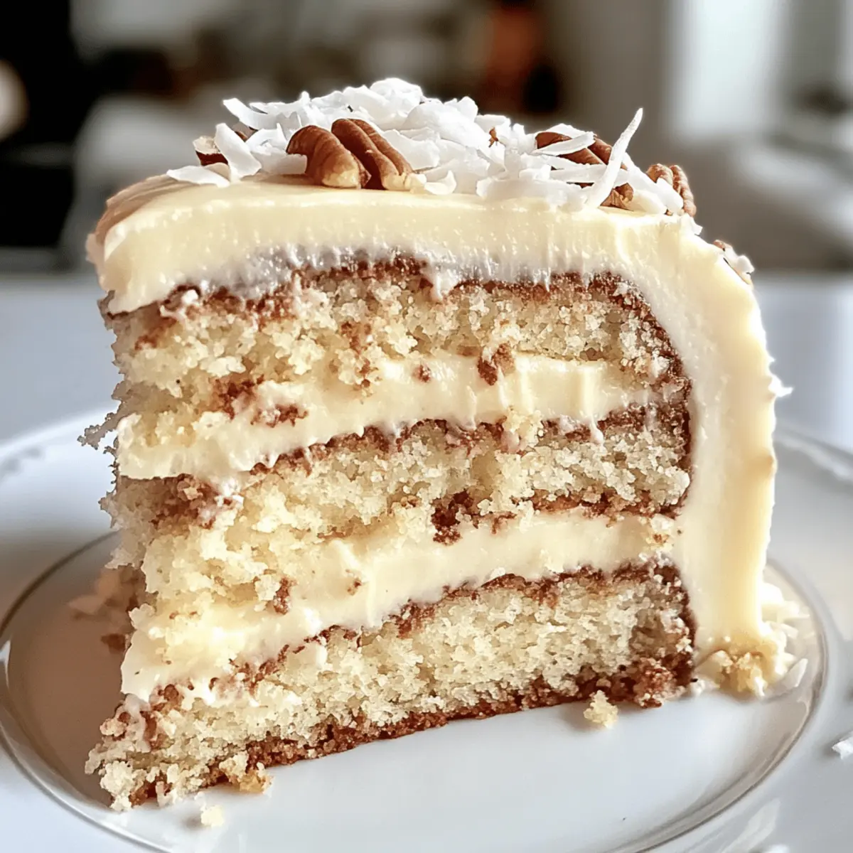 Während ich letzte Woche in meiner kleinen Küche stand, durchzog der verführerische Duft von frisch gebackenem Kuchen die Luft – ein Vorboten des unwiderstehlichen Weißen Deutschen Schokoladenkuchens, auf den ich mich so gefreut hatte. Diese cremige Köstlichkeit kombiniert die Süße der weißen Schokolade mit den tropischen Aromen von Kokosnuss und dem knackigen Biss von Pekannüssen. Perfekt für besondere Anlässe oder einfach als luxuriöse Belohnung nach einem langen Tag, dieses Rezept ist nicht nur schnell zuzubereiten, sondern sorgt auch dafür, dass Ihre Gäste mit seinen einzigartigen Geschmäckern staunen werden. Werden Sie bereit, diesen verführerischen Kuchen zu kreieren und Ihre Liebsten zu überraschen? Warum werden Sie diesen Kuchen lieben? Einfachheit: Die Zubereitung dieses Kuchens ist unkompliziert, auch für Backanfänger. Reicher Geschmack: Die Kombination aus weißer Schokolade, Kokosnuss und Pekannüssen sorgt für einen unvergesslichen Genuss. Vielseitigkeit: Servieren Sie ihn allein oder mit frischen Beeren und einer Kugel Vanilleeis für ein perfektes Dessert. Perfekte Textur: Der feuchte Kuchen mit cremigem Frosting schmilzt im Mund und bietet ein luxuriöses Erlebnis. Eindrucksvoll: Ihre Gäste werden von diesem einzigartigen Rezept begeistert sein, das einen Hauch von Eleganz in jede Festlichkeit bringt. Schnell & Praktisch: Mit einfachen Zutaten und einem klaren Ablauf ist dieser Kuchen in kürzester Zeit fertig – ideal für unerwartete Gäste oder besondere Anlässe. Zutaten für den weißen deutschen Schokoladenkuchen Für den Kuchen • Allzweckmehl – sorgt für Struktur; kann durch Kuchenmehl ersetzt werden, indem 2 Esslöffel pro Tasse durch Maisstärke ersetzt werden. • Backpulver – als Treibmittel für den Kuchen; darauf achten, dass es frisch ist für den richtigen Aufstieg. • Backsoda – zusätzliche Lockerung, die mit säurehaltigen Zutaten wirkt. • Salz – verbessert den Geschmack und balanciert die Süße. • Ungesalzene Butter – verleiht Feuchtigkeit und Reichtum; sollte weich sein für eine bessere Verarbeitung. • Zucker – sorgt für Süße und hilft bei der Struktur des Kuchens. • Brauner Zucker – fügt Feuchtigkeit und einen Hauch von Karamellgeschmack hinzu. • Große Eier – binden die Zutaten zusammen und sorgen für Feuchtigkeit. • Vanilleextrakt – Geschmacksverstärker, der die Süße des Kuchens ergänzt. • Buttermilch – sorgt für Feuchtigkeit und Zartheit; kann durch Milch mit Zitronensaft ersetzt werden. • Weiße Schokolade – sorgt für einzigartigen Geschmack und süße Cremigkeit; darauf achten, sie zu schmelzen und leicht abkühlen zu lassen. • Kokosraspeln – bringen Textur und ein tropisches Aroma. • Gehackte Pekannüsse – verleihen einen knackigen Biss und nussigen Geschmack; können durch Walnüsse ersetzt oder ganz weggelassen werden. Für das Frosting • Frischkäse – sorgt für Cremigkeit und festigt das Frosting. • Zusätzliche ungesalzene Butter – verbessert die Textur und den Geschmack des Frostings. • Puderzucker – macht das Frosting süß und sorgt für die richtige Konsistenz; nach Bedarf anpassen. • Zusätzliche weiße Schokolade – schmelzen und abkühlen, um die Geschmackstiefe zu erhöhen. Schritt-für-Schritt-Anleitung für den cremigen weißen deutschen Schokoladenkuchen Step 1: Ofen vorheizen Heizen Sie den Ofen auf 175 °C vor und bereiten Sie zwei runde 23 cm Kuchenformen vor, indem Sie sie mit Butter einfetten und mit Mehl ausstäuben. Dies gewährleistet, dass der Kuchen beim Backen nicht anklebt und leicht herausgenommen werden kann. Step 2: Trockene Zutaten mischen In einer mittelgroßen Schüssel das Mehl, Backpulver, Backsoda und Salz miteinander vermengen. Diese trockenen Zutaten sind entscheidend für die Struktur des cremigen weißen deutschen Schokoladenkuchens. Mischen Sie alles gut durch und stellen Sie die Schüssel beiseite, während Sie mit den nächsten Schritten fortfahren. Step 3: Butter und Zucker cremig schlagen In einer großen Rührschüssel die weiche Butter zusammen mit dem Granulatzucker und dem braunen Zucker mit einem Handmixer auf mittlerer Geschwindigkeit schaumig schlagen. Dies sollte etwa 2-3 Minuten dauern, bis die Mischung leicht und luftig ist. Dadurch wird sichergestellt, dass der Kuchen später schön fluffig wird. Step 4: Eier und Vanille hinzufügen Fügen Sie nun die großen Eier einzeln hinzu und schlagen Sie nach jedem Ei gut durch, gefolgt vom Vanilleextrakt. Die Eier sorgen für die Bindung und Feuchtigkeit des Kuchens. Achten Sie darauf, dass die Mischung gut homogen ist, bevor Sie mit den trockenen Zutaten fortfahren. Step 5: Trockene Zutaten und Buttermilch abwechselnd hinzufügen Geben Sie abwechselnd die trockenen Zutaten und die Buttermilch zur Butter-Zucker-Mischung. Beginnen Sie mit den trockenen Zutaten und enden Sie damit, um eine gleichmäßige Verteilung zu gewährleisten. Dies sollte bei niedriger Geschwindigkeit geschehen, damit der cremige weiße deutsche Schokoladenkuchen schön zart bleibt. Step 6: Geschmolzene weiße Schokolade unterheben Nachdem alles gut vermischt ist, fügen Sie die leicht abgekühlte geschmolzene weiße Schokolade hinzu und heben Sie sie vorsichtig unter. Achten Sie darauf, dass die Schokolade gut eingearbeitet ist, ohne die Luftigkeit der Teigmischung zu verlieren – so bleibt der Kuchen schön saftig. Step 7: Teig aufteilen und backen Teilen Sie den Kuchen Teig gleichmäßig zwischen den vorbereiteten Formen auf und glätten Sie die Oberflächen. Backen Sie die Kuchen für etwa 25-30 Minuten oder bis ein Zahnstocher in der Mitte sauber herauskommt. Diese Vorsichtsmaßnahme garantiert, dass Ihr cremiger weißer deutscher Schokoladenkuchen perfekt gebacken ist. Step 8: Kuchen abkühlen lassen Lassen Sie die gebackenen Kuchen für 10 Minuten in den Formen abkühlen, bevor Sie sie vorsichtig auf ein Kuchengitter stürzen. Dies ermöglicht es den Kuchen, leicht abz