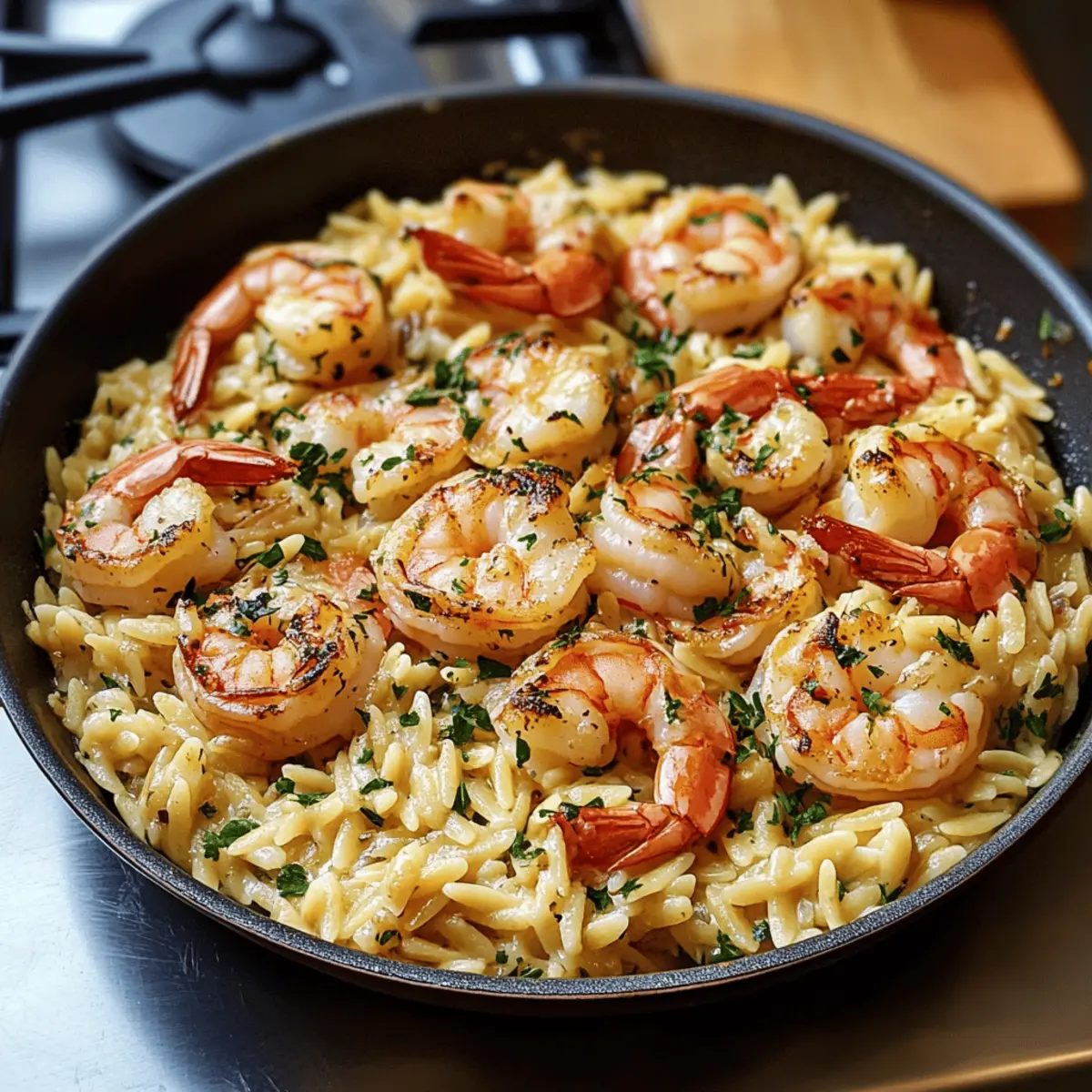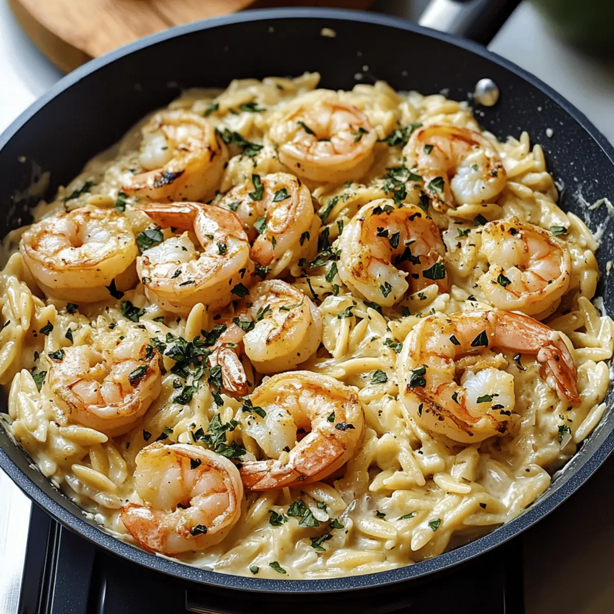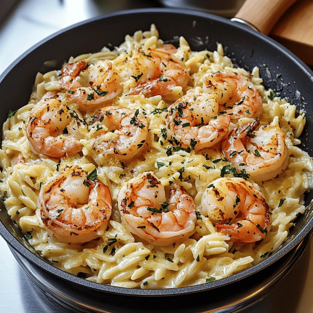 Wenn ich an ein spezifisches Gericht denke, das mir nach einem langen Tag die Seele wärmt, kommt mir sofort dieses Rezept für cremigen Parmesan-Orzo mit Garnelen in den Sinn. Diese gesellige Kombination aus zarten, saftigen Garnelen und einer wunderbar cremigen Orzo-Basis schafft nicht nur einen Geschmack, der überzeugt, sondern ist auch unglaublich einfach zuzubereiten. In weniger als 30 Minuten zauberst du dir ein schnelles, einpfanniges Abendessen, das allen am Tisch Freude bereitet. Die harmonische Verbindung von aromatischem Knoblauch und einem Spritzer Zitrone hebt dieses Gericht auf ein neues Level der Genüsse. Bist du bereit, den Kochlöffel zu schwingen und in die Welt dieser köstlichen Kreation einzutauchen? Warum ist dieses Rezept großartig? Schnelligkeit: In weniger als 30 Minuten zubereitet, perfekt für hektische Abende. Cremige Konsistenz: Die Kombination aus Parmesan und Sahne verleiht einen unwiderstehlichen, samtigen Geschmack. Einzelne Pfanne: Schnell aufräumen, da alles in einer Pfanne gekocht wird – ideal für den Alltag! Vielseitigkeit: Diese Basis lässt sich leicht abwandeln; probiere auch Knuspriger Parmesan Spargel als Beilage oder andere Proteinquellen. Familienfreundlich: Ein Gericht, das Groß und Klein gleichermaßen begeistert. Mediterranes Flair: Hol dir mit jedem Bissen den Geschmack des Mittelmeers nach Hause! Cremige Parmesan-Orzo Zutaten Für die Garnelen • Garnelen – Hochwertiges Protein, verwenden Sie geschälte und entdarmte Garnelen für mehr Komfort. Für das Gericht • Olivenöl – Ideal zum Anbraten; kann durch Pflanzenöl ersetzt werden. • Butter – Sorgt für Reichhaltigkeit und Geschmack; verwenden Sie Margarine für eine milchfreie Option. • Knoblauch – Liefert aromatischen Geschmack; Schalotten sind eine mildere Alternative. • Orzo-Pasta – bildet die Basis des Gerichts; kann durch andere kleine Pasta wie Ditalini oder Couscous ersetzt werden. • Hühnerbrühe – Sorgt für Feuchtigkeit und Geschmack; Gemüsebrühe ist eine gute vegetarische Alternative. • Parmesan-Käse – Fügt Cremigkeit und Tiefgang hinzu; nutzen Sie geriebenen Pecorino Romano für einen kräftigeren Geschmack. • Sahne – Verleiht dem Gericht seine Reichhaltigkeit; ersetzen Sie sie durch Halbfettmilch oder Vollfett-Kokosmilch für leichtere Versionen. • Zitronensaft – Bringt die Gesamtgeschmack hervor; Limettensaft kann als Ersatz verwendet werden. • Salz und Pfeffer – Essenzielle Gewürze für den Geschmack; nach Belieben anpassen. • Optional: Rote Pfefferflocken für Schärfe, gehackte Petersilie zur Garnitur, extra Parmesan zum Servieren. Die Zutaten für dieses cremige Parmesan-Orzo mit Garnelen Rezept sind einfach zu beschaffen und versprechen ein schnelles, köstliches Gericht, das in weniger als 30 Minuten zubereitet werden kann. Schritt-für-Schritt-Anleitung für Cremiges Parmesan-Orzo mit Garnelen Step 1: Garnelen anbraten Erhitze das Olivenöl in einer großen Pfanne bei mittlerer bis hoher Temperatur. Würze die Garnelen mit Salz und Pfeffer und brate sie 1-2 Minuten auf jeder Seite, bis sie gerade pink und durchgegart sind. Nimm die Garnelen aus der Pfanne und stelle sie beiseite, damit sie nicht weiter garen. Step 2: Orzo rösten Reduziere die Hitze auf mittlere Stufe und gib die Butter und den Knoblauch in die Pfanne. Brate den Knoblauch etwa 1 Minute lang an, bis er duftet. Füge die Orzo-Pasta hinzu und röste sie 1-2 Minuten lang, bis sie leicht golden wird und die Aromen entfaltet. Step 3: Brühe hinzufügen und köcheln Gieße die Hühnerbrühe in die Pfanne und bringe die Mischung zum Kochen. Reduziere die Hitze auf eine sanfte Köchelebene und lasse das Orzo 10-12 Minuten unbedeckt köcheln, bis es weich ist und der Großteil der Flüssigkeit absorbiert wurde. Rühre gelegentlich um, um ein Ankleben zu verhindern. Step 4: Cremigkeit hinzufügen Stelle die Pfanne vom Herd und rühre die Sahne und den Parmesan sorgfältig ein, bis der Käse geschmolzen ist und eine cremige Konsistenz entsteht. Diese cremige Basis ist das Herzstück des cremigen Parmesan-Orzo mit Garnelen und wird vom Parmesan-Aroma durchzogen. Step 5: Garnelen zurückgeben und servieren Gib die angebratenen Garnelen zurück in die Pfanne und füge den Zitronensaft hinzu. Lasse alles bei niedriger Hitze 1 Minute lang erwärmen, bis die Garnelen wieder heiß sind. Schmecke das Gericht ab und passe die Gewürze nach Bedarf an, bevor du es servierst. Tipps für das beste Parmesan-Orzo Perfekte Garnelen: Achte darauf, dass die Garnelen gut abgetropft sind, um ein optimales Anbraten zu gewährleisten und ein köstliches Aroma zu entwickeln. Häufig umrühren: Rühre das Orzo während des Kochens gelegentlich um, um eine gleichmäßige Garung zu fördern, aber vermeide zu starkes Rühren, um ein Verkleben zu verhindern. Abschmecken: Probiere das Gericht vor dem Servieren und passe die Gewürze an, um sicherzustellen, dass die Aromen harmonisch sind und das Parmesan-Orzo seinen vollen Geschmack entfalten kann. Alternative Brühen: Verwende Gemüsebrühe, um eine vegetarische Version des Gerichts zu kreieren, ohne dabei auf Geschmack zu verzichten. Küchenutensilien: Nutze eine große, beschichtete Pfanne, um das Anhaften und die Reinigung zu erleichtern. Frische Kräuter: Füge frische Kräuter wie Basilikum oder Petersilie erst kurz vor dem Servieren hinzu für zusätzlichen Geschmack und ein hübsches Finish. Meal Prep für cremigen Parmesan-Orzo mit Garnelen Cremiger Parmesan-Orzo mit Garnelen ist ideal für die Vorbereitung, da du die Garnelen und die Brühe bereits bis zu 24 Stunden im Voraus vorbereiten kannst. Beginne damit, die Garnelen zu schälen und zu entdarmen und lege sie in eine luftdicht verschlossene Schale im Kühlschrank, um ihre Frische zu bewahren. Du kannst die benötigten Zutaten wie Orzo-Pasta und Brühe ebenfalls bereitstellen und alles in einer Schüssel vermischen. Kurz bevor du bereit bist zu kochen, erhitze das Olivenöl