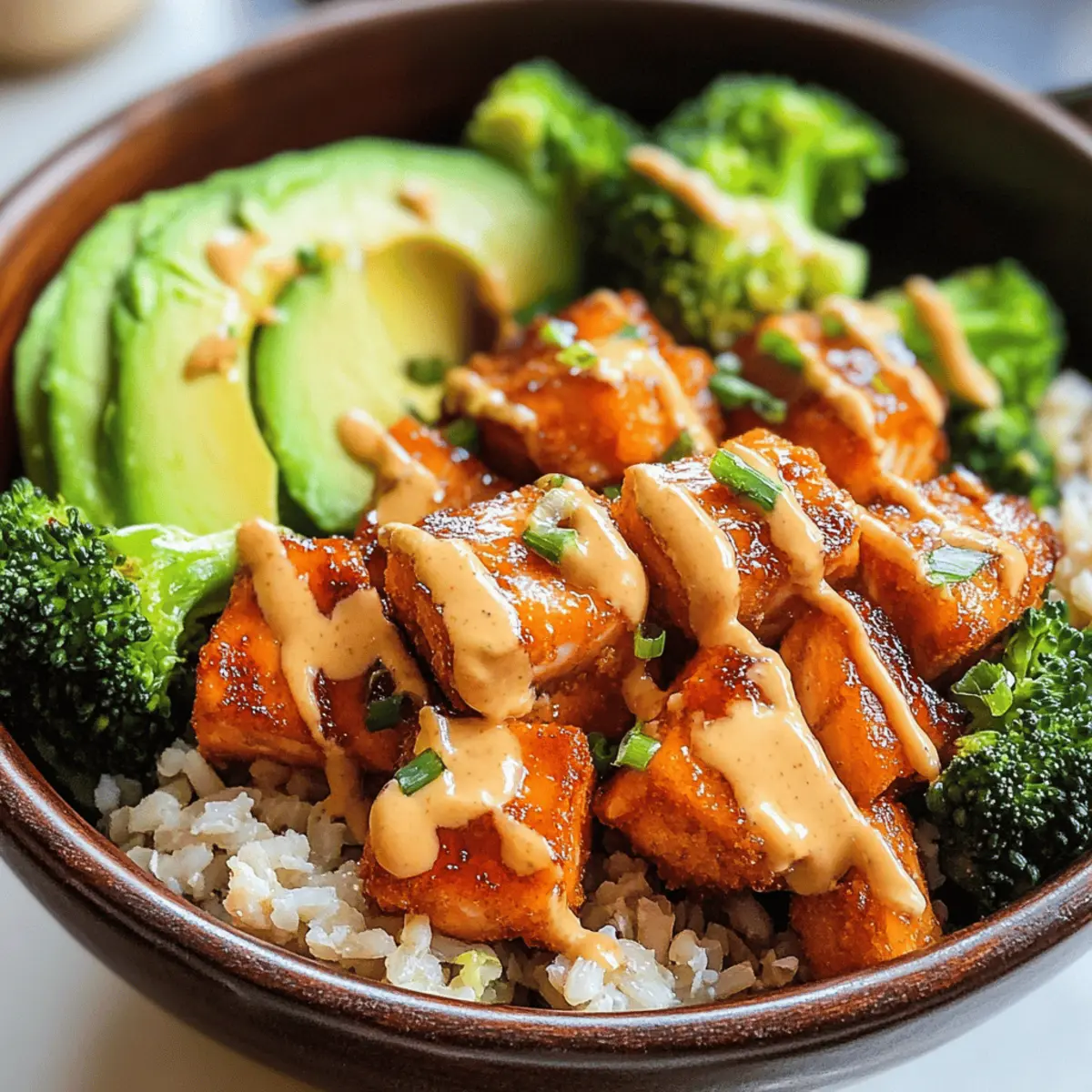 Eines Abends, als ich nach einem schnellen, aber gesunden Abendessen suchte, hatte ich einen Geistesblitz: Die crispy Bang Bang Salmon Bites Bowls! Diese köstlichen Schalen kombinieren knackige, goldene Lachsstückchen, die mit einer unwiderstehlichen Bang Bang Sauce glasiert sind, und sind optimal für all jene unter uns, die ein nahrhaftes und gleichzeitig schnelles Gericht zaubern wollen. Mit dieser gesunden Rezeptur zauberst du nicht nur ein hochproteinreiches Abendessen, sondern kannst die Bowls auch ganz nach deinem Geschmack anpassen, sei es mit verschiedenen Beilagen oder Kochmethoden. Ideal für hektische Wochentage, bieten diese bunten Schalen ein Fest für den Gaumen und lassen sich sogar mit Blumenkohlreis für eine Low-Carb-Option variieren. Bist du bereit, die Küche für ein aufregendes Geschmackserlebnis zu betreten? Warum wirst du dieses Rezept lieben? Einfachheit: Die Zubereitung dieser Schalen ist kinderleicht und benötigt keine besonderen Kochkünste. Gesunder Genuss: Mit proteinreichem Lachs und frischem Gemüse bietet dieses Gericht eine nährstoffreiche Mahlzeit, die deinem Körper guttut. Vielseitigkeit: Ob im Skillet, Air Fryer oder Ofen – du kannst die Lachsfilets nach Belieben zubereiten und gegen ein anderes Protein oder Gemüse austauschen. Fantastischer Geschmack: Die süß-scharfe Bang Bang Sauce verleiht dem Gericht eine erstaunliche Geschmackstiefe, die du nicht verpassen solltest. Schneller Genuss: Dieses Rezept ist perfekt für hektische Wochentage; in kürzester Zeit hast du ein köstliches und sättigendes Abendessen auf dem Tisch. Für ein weiteres schnelles und gesundes Gericht, schau dir doch mal unsere Suesskartoffel Taco Bowls an! Crispy Bang Bang Lachs Bissen Zutaten Für die Bang Bang Sauce • Griechischer Joghurt oder Mayonnaise – sorgt für die cremige Basis der Sauce. • Süß-Chili-Sauce – fügt eine angenehme Süße hinzu. • Sriracha – gibt der Sauce die gewünschte Schärfe. Optional für milder, einfach weglassen. Für den Lachs • Lachsfilet (1 lb) – die Hauptzutat mit hohem Eiweiß- und Omega-3-Gehalt. Frischer, wild gefangener Lachs ist für besseren Geschmack und Textur empfehlenswert. • Avocadoöl (1 EL) – hoch erhitzbar und fördert gesunde Fette beim Braten. Für die Marinade • Kokosaminos (½ Tasse) – bietet eine salzarme Soyasauce-Alternative mit leckerem Umami-Geschmack. • Reisessig (1 EL) – bringt eine angenehme Säure in die Marinade. • Knoblauch (2 Zehen, gehackt) – verstärkt das Aroma in Sauce und Marinade. • Sriracha (2 TL, optional) – für zusätzlichen Schärfekick in der Marinade. • Geröstetes Sesamöl (2 TL, optional) – fügt eine nussige Tiefe und Geschmack hinzu. Für die Schalen • Gekochter brauner Reis (3 Tassen) – bietet komplexe Kohlenhydrate als Basis. Kann durch Blumenkohlreis für eine Low-Carb-Option ersetzt werden. • Brokkoli (1 große Kopf, in Röschen zerteilt) – liefert Ballaststoffe und essentielle Nährstoffe. • Avocado (1 große, in Scheiben geschnitten) – sorgt für cremige Textur und gesunde Fette. • Gurkensalat – sorgt für einen frischen Crunch und ist der perfekte Kontrast. Step-by-Step Instructions for Crispy Bang Bang Lachs Bissen Schalen Step 1: Gurkensalat vorbereiten Mische die Zutaten für den Gurkensalat in einer Schüssel und lasse ihn mindestens 15 Minuten ziehen, damit sich die Aromen entfalten. Die frische und knackige Textur des Salats wird eine angenehme Ergänzung zu den knusprigen Lachs Bissen bieten, die du bald zubereiten wirst. Step 2: Reis kochen Koche den braunen Reis gemäß der Packungsanweisung. Normalerweise ergibt 1 Tasse trockener Reis etwa 3 Tassen gekochten Reis. Während der Reis kocht, bereite die anderen Zutaten vor, damit alles rechtzeitig fertig ist. Step 3: Bang Bang Sauce zubereiten Vermische in einer Schüssel den griechischen Joghurt oder die Mayonnaise, die Süß-Chili-Sauce und die Sriracha, um die Bang Bang Sauce zu kreieren. Stelle die Sauce für etwa 30 Minuten in den Kühlschrank, damit sie schön kühl und geschmackvoll ist, wenn du sie später über den Lachs gibst. Step 4: Brokkoli garen Dämpfe, brate oder röste den Brokkoli nach deinem Belieben; das Braten mit etwas Öl und Wasser wird empfohlen. Der Brokkoli sollte hellgrün und knackig sein. Dies dauert etwa 5-8 Minuten und bringt eine nahrhafte Komponente in die Schalen. Step 5: Lachs marinieren Mische in einer Schüssel die Kokosaminos, den Knoblauch, den Reisessig, die optionale Sriracha und das geröstete Sesamöl. Schneide das Lachsfilet in mundgerechte Stücke und mariniere die Lachs Bissen in dieser Mischung für 10-15 Minuten, um den Geschmack zu intensivieren. Step 6: Lachs braten Erhitze in einer Pfanne bei mittelhoher Temperatur das Avocadoöl. Brate die Lachsstückchen (wenn mit Haut, Hautseite nach unten) für 2-3 Minuten, bis sie goldbraun sind. Wende die Stücke und brate sie weitere 4-5 Minuten, bis sie vollständig durchgegart sind und eine knusprige Textur erreicht haben. Step 7: Lachs glasieren Sobald der Lachs fertig ist, nimm die Pfanne vom Herd und überziehe die gebratenen Lachs Bissen sofort mit der vorbereiteten Bang Bang Sauce. Schwenke die Stücke vorsichtig, damit sie gleichmäßig glasiert sind und das würzige Aroma aufnehmen. Step 8: Schalen anrichten Richte die Schalen an, indem du zuerst etwas gekochten Reis als Basis hinzufügst. Füge dann den Brokkoli, den Gurkensalat und die Avocado-Scheiben hinzu. Toppe die Schalen großzügig mit den knusprigen Lachs Bissen und gib nach Belieben noch etwas Bang Bang Sauce darüber. Was passt zu Crispy Bang Bang Lachs Bissen Schalen? Die perfekte Ergänzung zu diesem geschmackvollen Gericht schafft die Möglichkeit, ein rundum zufriedenstellendes und gesundes Abendessen zu gestalten. Cremige Guacamole: Diese bietet eine exquisite Cremigkeit, die die Knusprigkeit des Lachses und die Schärfe der Sauce perfekt ausgleicht. Gekochte Quinoa: Reich an Proteinen und eine herv