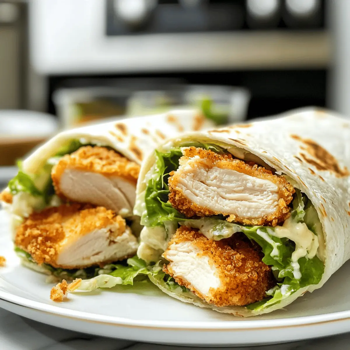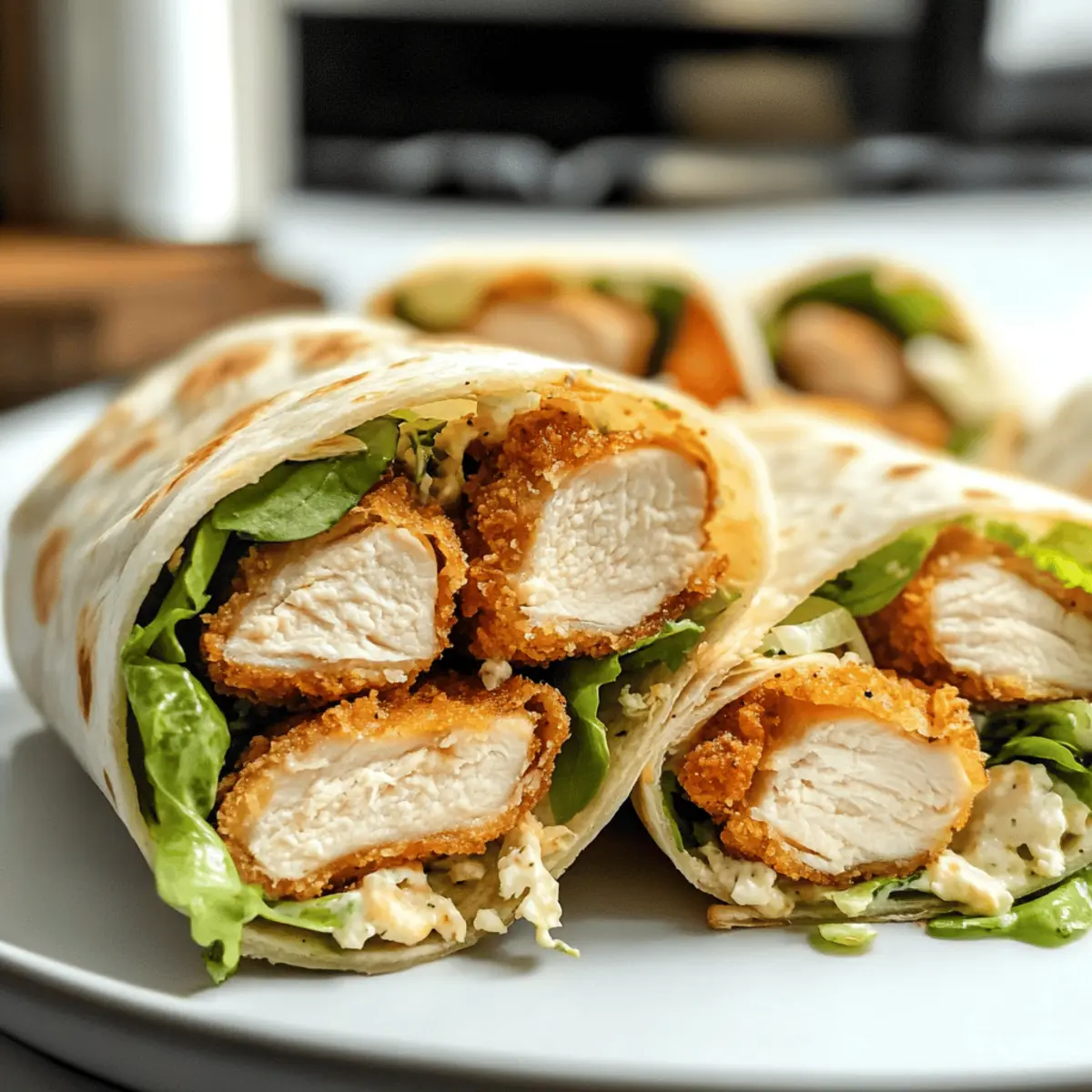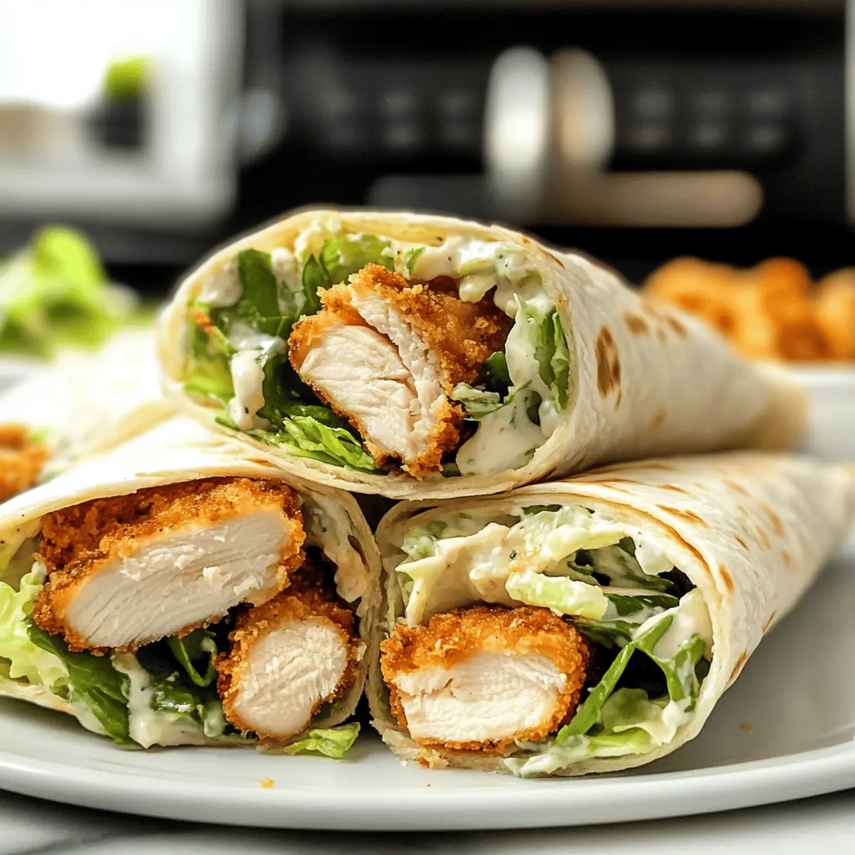 „Kann ich denn wirklich schon wieder kochen?“ fragte mein Freund, während wir durch den Kühlschrank schauten. Ich konnte es kaum fassen, dass wir nichts Frisches für ein schnelles Abendessen hatten. Zum Glück gibt es jetzt die Air Fryer Crispy Chicken Caesar Wraps! Diese Wraps sind nicht nur eine köstliche und einfache Lösung für einen schnellen Snack oder ein vollwertiges Mittagessen – sie sind auch perfekt für die Meal Prep. Mit knusprigem, panadefreiem Hähnchen und einem frischen Caesar-Salat in einer handlichen Tortilla sind sie der ideale Begleiter für hektische Tage. Noch dazu sind sie kalorienbewusst und bringen die Vielfalt direkt auf deinen Teller. Hast du schon Lust, diesen Klassiker neu zu entdecken? Warum wirst du diesen Wrap lieben? Einfachheit, die begeistert: Diese Wraps sind blitzschnell zubereitet und benötigen nur wenige Zutaten, die du bestimmt schon zu Hause hast. Köstlicher Geschmack: Die Kombination aus knusprigem Hühnchen und cremigem Caesar-Salat sorgt für einen Geschmack, der deine Geschmacksknospen zum Tanzen bringt. Vielseitig, ganz nach deinem Geschmack: Probiere verschiedene Proteine oder Saucen – von gegrilltem Hähnchen bis zu BBQ-Sauce, deine Kreativität kennt keine Grenzen. Perfekt für Meal Prep: Diese Wraps halten sich im Kühlschrank, bereit für einen schnellen Snack oder ein leichtes Mittagessen an stressigen Tagen. Crowd-Pleaser: Ob für die Familie oder Freunde, diese Wraps sind ein Hit bei jedem! Wenn du mehr über tolle Ideen für schnelle Mittagessen erfahren möchtest, schau dir unseren Meal Prep Guide an. Zutaten für die Crispy Chicken Caesar Wraps • Hier sind die notwendigen Zutaten, um deine leckeren Air Fryer Crispy Chicken Caesar Wraps zuzubereiten. Für das Hähnchen Hähnchenbrust ohne Knochen und Haut – Hauptquelle für Protein, in Streifen schneiden sorgt für gleichmäßiges Garen. Eier – Dienen als Binder für die Panade, gründliches Mischen sorgt für eine gleichmäßige Beschichtung. Allzweckmehl – Grundlage für den Teig, sorgt für eine knusprige Außenfläche; glutenfreies Mehl kann als Ersatz verwendet werden. Maisstärke – Fügt der Panade Knusprigkeit hinzu; kann bei Bedarf durch zusätzliches Mehl ersetzt werden. Nature’s Seasoning – Würzung zur Geschmacksverbesserung, jede Lieblingswürze kann verwendet werden. Für den Salat Leichte Caesar-Dressing – Verleiht Cremigkeit und Geschmack; ersatzweise kann Ranch- oder griechisches Joghurt-Dressing genutzt werden. Geriebener Parmesan – Sorgt für einen scharfen, käsigen Geschmack; Nährhefe kann als vegane Option verwendet werden. Croutons – Fügen eine knackige Textur hinzu; weder gekaufte noch selbstgemachte können verwendet werden. Römersalat – Frische Komponente; alternativ können auch Grünkohl oder Spinat verwendet werden. Für die Wraps Tortillas (8-Zoll) – Die Hülle für die Zutaten, Low-Carb- oder glutenfreie Tortillas sind auch Optionen. Diese Zutaten sind der Schlüssel zu deinen köstlichen Air Fryer Crispy Chicken Caesar Wraps, die nicht nur einfach zuzubereiten sind, sondern auch eine großartige Option für Meal Prep bieten! Schritt-für-Schritt-Anleitung für die Crispy Chicken Caesar Wraps im Air Fryer Schritt 1: Hähnchenstreifen vorbereiten Schneide die Hähnchenbrust in gleichmäßige Streifen. Mische in einer Schüssel Allzweckmehl, Maisstärke und Nature’s Seasoning. Tauche die Hähnchenstreifen zuerst in die Mischung, dann in die geschlagenen Eier und schließlich erneut in die Mehlmischung, um eine gleichmäßige Panade zu erhalten. Schritt 2: Air Fryen Heize den Air Fryer auf 193 °C (380 °F) vor. Besprühe den Korb des Air Fryers mit Kochspray, um ein Anhaften zu verhindern. Lege die panierten Hähnchenstreifen in einer einzelnen Schicht in den Korb und lasse sie für 8 Minuten garen. Wende die Streifen und koche sie weitere 3 Minuten, bis sie goldbraun und durchgegart sind. Schritt 3: Salat zubereiten Während das Hähnchen gart, schneide den Römersalat in kleine Stücke. Gib den geschnittenen Salat in eine große Schüssel und füge das leichte Caesar-Dressing, den geriebenen Parmesan und die Croutons hinzu. Mische alles gut durch, sodass die Zutaten gleichmäßig verteilt sind und die Salatkomponenten den Dressing gut aufnehmen. Schritt 4: Wraps zusammenstellen Nimm eine Tortilla und lege etwa ½ Tasse des vorbereiteten Caesar-Salats auf die untere Hälfte. Füge 3-4 knusprige Hähnchenstreifen dazu. Klappe die Tortilla zuerst an der Unterseite hoch, dann an den Seiten und rolle sie burritoartig auf. Achte darauf, die Zutaten gut einzuschließen, um ein Auslaufen zu vermeiden. Schritt 5: Servieren und genießen Schneide die fertigen Crispy Chicken Caesar Wraps schräg in der Mitte durch, um die ansprechende Füllung zu zeigen. Du kannst sie sofort genießen oder sie für ein schnelles Mittagessen in Folie einwickeln. Diese Wraps sind ideal für unterwegs und bringen Abwechslung auf den Teller! Was passt gut zu Air Fryer Crispy Chicken Caesar Wraps? Genieße ein ausgewogenes und köstliches Mahl, das deinen Gaumen erfreut und deine Geschmacksknospen verwöhnt. Frischer Obstsalat: Eine farbenfrohe Mischung aus saisonalen Früchten fügt Frische und Süße hinzu, die perfekt zu den herzhaften Wraps passt. Cremige Kartoffelbrei: Der zarte und cremige Brei kontrastiert wunderbar mit der knusprigen Textur der Hähnchenwraps und sorgt für eine extra Portion Comfort Food. Leichte Tomatensuppe: Diese rustikale Suppe ergänzt die Wraps köstlich und bietet eine warme, beruhigende Note zu deinem Abendessen. Knackiges Gemüse-Sticks: Karotten, Gurken und Selleriestangen mit etwas Hummus als Dip sorgen für Frische und einen angenehmen Crunch, der gut zu den Wraps passt. Rucola-Salat: Mit einem Spritzer Zitronensaft und Olivenöl verfeinert, bringt der Salat eine pikante Note, die den Wraps eine erfrischende Dimension verleiht. Spritziger Limonen-Minz-Drink: Ein erfrischendes Getränk mit Limonen und Min