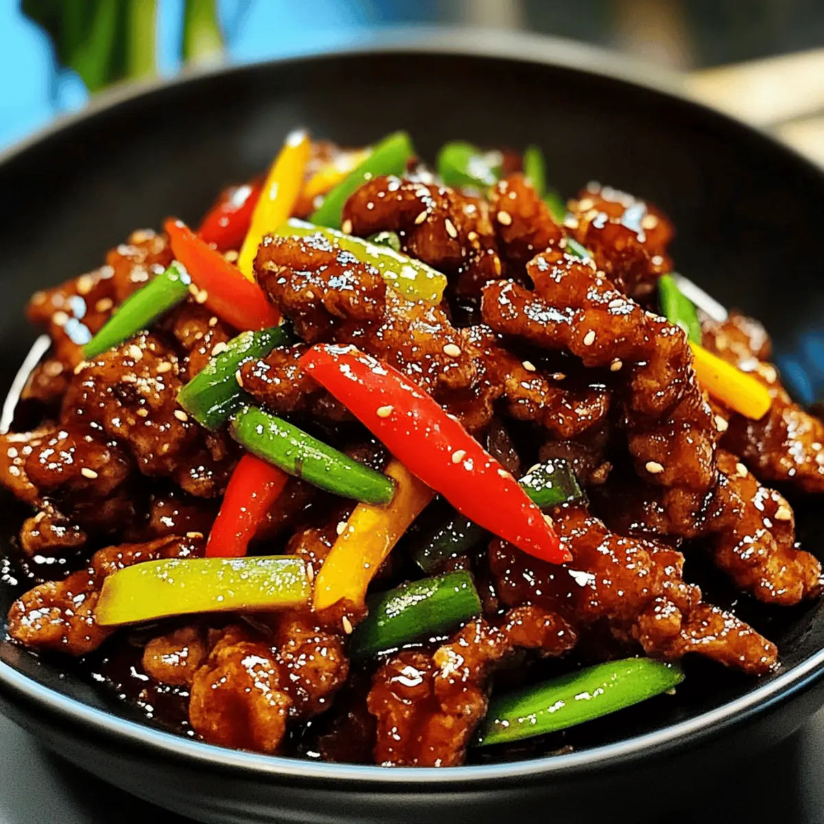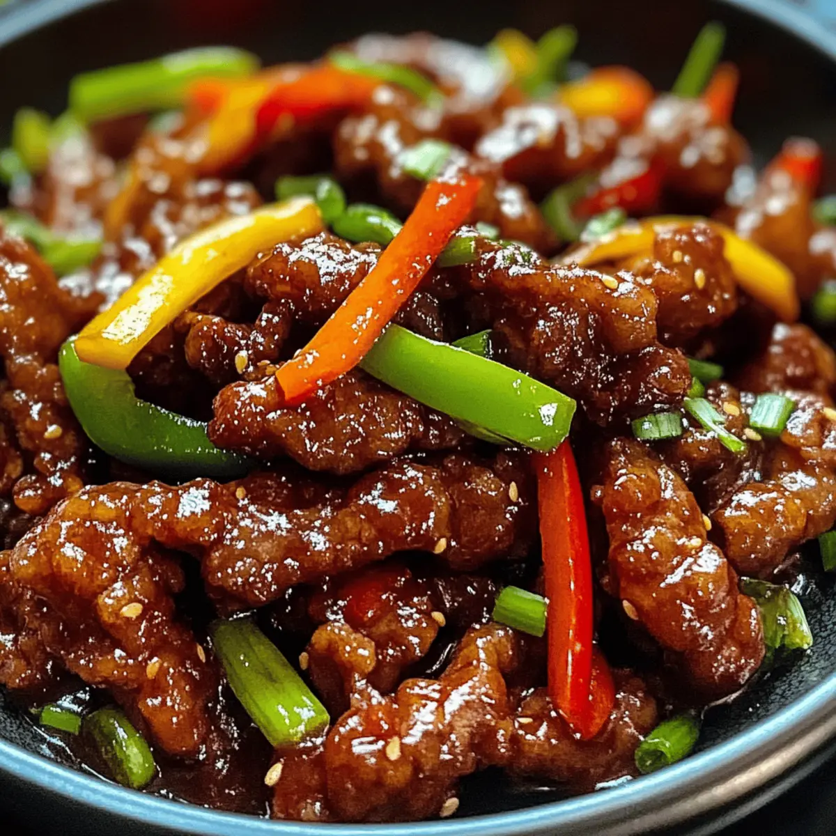 Als ich das erste Mal Crispy Chilli Beef zubereitete, war ich überrascht, wie einfach es ist, das beliebte Takeout-Gericht zu Hause nachzubauen. Dieser köstliche Klassiker der chinesischen Küche kombiniert knusprig gebratenes Rindfleisch mit einer herrlich süß-scharfen Sauce, die jeden Bissen zu einem Geschmackserlebnis macht. Mit nur wenigen gängigen Zutaten und in weniger als 40 Minuten zubereitet, ist dieses Rezept nicht nur ein echter Publikumsmagnet, sondern auch eine unkomplizierte Möglichkeit, sich von Fast Food zu verabschieden. Ob mit Brokkoli, Karotten oder einem anderen Gemüse – die Variationsmöglichkeiten sind nahezu endlos. Neugierig, wie du dein eigenes Restaurantgefühl in die Küche bringen kannst? Lass uns starten! Warum wirst du dieses Rezept lieben? Einfachheit: Die Zubereitung ist blitzschnell und benötigt nur grundlegende Kochfähigkeiten – ideal für alle, die frische, hausgemachte Gerichte lieben. Vielfältige Variationen: Du kannst mit verschiedenen Gemüsesorten wie Brokkoli oder Karotten experimentieren und dabei deine kreativen Kochkünste zeigen. Reichhaltiger Geschmack: Die Kombination aus süß und scharf in der Sauce sorgt für ein wahres Geschmackserlebnis. Zeitersparnis: In weniger als 40 Minuten genießt du ein köstliches Gericht, das sonst nur im Restaurant erhältlich ist. Publikumsfavorit: Dieses Gericht ist perfekt für Familienabende oder als beeindruckendes Highlight auf deiner nächsten Feier. Gesunde Alternative: Mit der Möglichkeit, das Rindfleisch durch Hähnchen oder Tofu zu ersetzen, ist es auch für alle geeignet, die gesünder essen möchten. Falls du mehr über leckere Beilage-Rezepte erfahren möchtest, schau dir unsere Sammlung an. Crispy Chilli Beef Zutaten • Entdecke die perfekten Zutaten für dein Crispy Chilli Beef! Für das Rindfleisch 200g Rumpf-/Sirloin-Steak – Die Hauptproteinquelle für reichhaltigen Genuss. Kann durch jedes zarte Steak ersetzt werden. 1 Ei – Bindet die Panade am Rindfleisch. Kann für eine vegane Option durch ein Flax-Ei ersetzt werden. 1 Tasse Mais-/Kartoffelstärke – Sorgt für eine knusprige Textur. Alternativen sind Allzweckmehl, verändern jedoch die Knusprigkeit. ½ Süße Zwiebel – Fügt Süße und Tiefe hinzu. Rote Zwiebel sorgt für einen schärferen Geschmack. ½ Paprika – Bringt Farbe und Knusprigkeit. Kann durch jede Paprikavariante ersetzt werden. 2-3 Frühlingszwiebeln – Frischer Geschmacksgeber. Grüne Zwiebeln sind eine gute Alternative. 2-3 Vogelaugen-/scharfe Chilis – Fügt Wärme und Gewürz hinzu. Menge je nach Schärfetoleranz anpassen. Marinade für das Rindfleisch 1 EL helle Sojasauce – Fügt Umami hinzu. Tamari ist eine glutenfreie Option. 1 TL Ingwer-Knoblauch-Paste – Essentiell für den Geschmack. Frischer Ingwer und gehackter Knoblauch sind gute Alternativen. 1 TL Sesamöl – Sorgt für eine charakteristische Nussigkeit. Alternatives Öl kann verwendet werden, wenn nötig. ½ TL Zucker – Balanciert die Aromen. Kann durch Honig oder einen Zuckeralternativen ersetzt werden. ¼ TL weißer Pfeffer – Fügt milde Schärfe hinzu. Schwarzer Pfeffer kann ebenfalls verwendet werden. Pfannensoße 3 EL süße Chilisauce – Hauptgeschmacksträger. Achte auf die Vorliebe der Marke bezüglich Schärfegrad. 2 EL Ketchup – Fügt Säure hinzu. Kann durch ähnliche Chilisauce ersetzt werden. 2 EL helle Sojasauce – Verstärkt den Geschmack. Tamari für glutenfrei wie zuvor erwähnt. 1 TL Essig (weiß oder Reis) – Bietet Säure. Kann durch Apfelessig ersetzt werden, falls nicht verfügbar. 1 EL Zucker – Süßt die Soße; geschmacklich anpassen. ½ TL Salz – Basisgewürz. Salz reduzieren, wenn Sojasauce verwendet wird. Step-by-Step Instructions für Crispy Chilli Beef Step 1: Rindfleisch schneiden und marinieren Schneide das Rindfleisch in dünne Streifen gegen die Faser und lege es in eine Schüssel. Füge die Marinade-Zutaten wie helle Sojasauce, Ingwer-Knoblauch-Paste, Sesamöl, Zucker und weißen Pfeffer hinzu. Mische alles gut und lasse das Fleisch mindestens 15 Minuten marinieren, damit die Aromen eindringen können. Step 2: Pfannensoße vorbereiten Mische in einer separaten Schüssel die Zutaten für die Pfannensoße, einschließlich süßer Chilisauce, Ketchup, heller Sojasauce, Essig, Zucker und Salz. Stelle die Soße beiseite, sodass sie bereit ist, wenn du die Rindfleischstreifen hinzufügst. Diese Mischung sorgt für den köstlichen, würzigen Geschmack deines Crispy Chilli Beef. Step 3: Ei hinzufügen und panieren Gib das Ei zu den marinierten Rindfleischstreifen und vermische alles gut, damit das Rindfleisch gleichmäßig beschichtet ist. Anschließend wälze die Rindfleischstreifen in der Mais-/Kartoffelstärke, bis sie vollständig bedeckt sind. Achte darauf, dass die Stücke gut voneinander getrennt sind, um ein Verklumpen beim Frittieren zu vermeiden. Step 4: Rindfleisch frittieren Erhitze ausreichend Öl in einem tiefen Topf oder einer Fritteuse auf 180 °C. Frittiere die panierten Rindfleischstreifen portionsweise für etwa 1-2 Minuten, bis sie goldbraun und knusprig sind. Vermeide es, zu viele Stücke auf einmal zu frittieren, damit das Öl seine Temperatur behält. Lass das fertige Rindfleisch auf Küchenpapier abtropfen. Step 5: Gemüse braten In einem Wok oder einer großen Pfanne bei mittlerer Hitze etwas Öl erhitzen. Füge die geschnittene süße Zwiebel und die Paprika hinzu und brate sie für einige Sekunden an, bis sie leicht weich werden und duftend sind. Dies bildet die aromatische Grundlage für das Crispy Chilli Beef. Step 6: Rindfleisch und Soße kombinieren Gib die frisch frittierten Rindfleischstreifen zusammen mit der vorbereiteten Pfannensoße, den Frühlingszwiebeln und den Chilis in den Wok. Mische alles gut für 1-2 Minuten bei hoher Hitze, bis das Rindfleisch gleichmäßig mit der Soße beschichtet ist und die Aromen miteinander verschmelzen. Step 7: Servieren Serviere das Crispy Chilli Beef heiß, idealerweise m