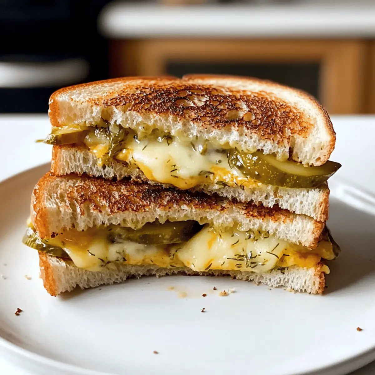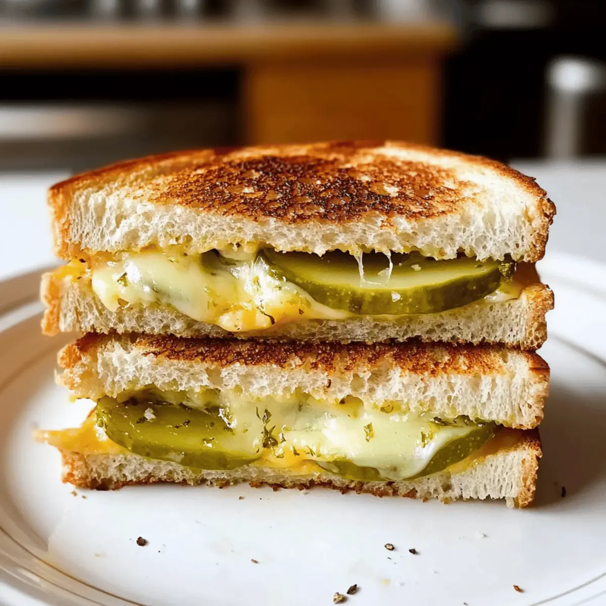 Die perfekte Kombination aus knusprigen, goldbraunen Stücken und einem unwiderstehlichen cremigen Inneren – das ist der Crispy Dill Pickle Grilled Cheese Sandwich, der jede Mittagspause verwandelt. Der Überraschungsgast hier sind die Dillpickles, die diesem klassischen Komfortgericht eine spritzige Note verleihen. Schnell zubereitet ist dieses Sandwich ideal für ein herzhaftes Mittagessen oder ein entspanntes Abendessen mit der Familie. Außerdem verwendet es Zutaten, die du wahrscheinlich schon in deiner Küche hast – eine perfekte Lösung für alle, die sich nach einer schmackhaften Mahlzeit sehnen, ohne viel Zeit zu verlieren. Hast du schon einmal darüber nachgedacht, deinen Grillkäse aufzupeppen? Lass uns gemeinsam in dieses Geschmackserlebnis eintauchen! Warum wirst du dieses Rezept lieben? Simplicity: Die Zubereitung ist kinderleicht und eignet sich hervorragend für Kochanfänger. Köstlicher Geschmack: Die Kombination aus Dillpickles, cremigem Käse und knusprigem Brot sorgt für ein Geschmackserlebnis, das du so noch nie hattest. Vielseitigkeit: Du kannst den Käse oder das Brot nach Belieben austauschen, um deine eigene Note hinzuzufügen. Familienfreundlich: Dieses Sandwich ist ein Hit bei Groß und Klein – einfach ideal für gemeinsame Mahlzeiten. Zeitersparnis: In wenigen Minuten zubereitet, ist es perfekt für hektische Tage. Wenn dir die Idee eines herzhaften Mittagessens gefällt, schau dir auch unser Rezept für das Caesar Croissant Sandwich an oder entdecke die leckeren Käse Gefüllte Brotsticks! Crispy Dill Pickle Grilled Cheese Sandwich Zutaten Für das Sandwich: • Sauerteigbrot – Die Basis des Sandwichs; verwende am besten älteres Brot für eine bessere Textur, die nicht durchweicht. • Dill Havarti Käse – Verleiht Cremigkeit und einen markanten Dillgeschmack; kann durch andere schmelzende Käsesorten wie Cheddar oder Mozzarella ersetzt werden. • Dillpickles – Sorgen für einen spritzigen Crunch; achte darauf, sie vorher trocken zu tupfen, um Durchweichen zu vermeiden. • Salzbutter – Wird zum Grillen des Sandwichs verwendet, um eine goldene, knusprige Kruste zu erzielen; kann durch Olivenöl oder Margarine als milchfreie Option ersetzt werden. Für die Füllung (optional): • Dill-Pickle-chips – Für zusätzlichen Crunch in der Mitte des Sandwichs; ideal für Dill-Fans und fügt eine knackige Textur hinzu. Schritt-für-Schritt-Anleitungen für Crispy Dill Pickle Grilled Cheese Sandwich Step 1: Brot vorbereiten Bereite zwei Scheiben Sauerteigbrot vor. Lege sie auf ein Schneidebrett und achte darauf, dass sie gleichmäßig dick sind, damit sie gleichmäßig bräunen. Diese Basis ist wichtig, um ein knuspriges Sandwich zu erzielen, das nicht durchweicht. Step 2: Käse auftragen Verteile die Hälfte des geriebenen Dill Havarti Käse gleichmäßig auf einer der Brotscheiben. Der Käse sollte gut verteilt sein, sodass jede Bissfüllung den cremigen Geschmack trägt. Diese geschmolzene Käseschicht wird die anderen Zutaten zusammenhalten und ein köstliches Erlebnis schaffen. Step 3: Dillpickles hinzufügen Lege nun die gehackten und trocken getupften Dillpickles gleichmäßig auf den Käse. Diese sollen für den charakteristischen Crunch und die spritzige Note sorgen, ohne das Brot zu durchweichen. Nachdem die Pickles aufgetragen sind, decke sie mit dem restlichen Käse ab, um die perfekte Käseverbindung zu schaffen. Step 4: Sandwich formen Platziere die zweite Scheibe Brot vorsichtig auf den Käse und den Pickles. Drücke das Sandwich leicht zusammen, damit sich die Zutaten gut verbinden und die Füllung nicht herausfällt, wenn du es in die Pfanne legst. Diese Sandwichstruktur ist entscheidend für die Form und den Genuss. Step 5: Butter auftragen Verteile großzügig Butter auf den äußeren Seiten beider Brotscheiben. Dies sorgt für eine goldbraune, knusprige Kruste. Alternativ kannst du auch Olivenöl verwenden, falls du eine milchfreie Option bevorzugst. Achte darauf, dass die Butter gleichmäßig aufgetragen wird, um ein gleichmäßiges Bräunen zu gewährleisten. Step 6: Pfanne vorheizen Heize eine schwere Pfanne bei mittlerer bis niedriger Hitze vor. Es ist wichtig, diese Temperatur beizubehalten, um das Brot gleichmäßig zu bräunen, während der Käse schmilzt. Eine gut vorgeheizte Pfanne sorgt für ein perfektes Grillen. Step 7: Sandwich grillen Lege das Sandwich vorsichtig in die vorgeheizte Pfanne. Koche es für etwa 3-4 Minuten auf jeder Seite, bis das Brot goldbraun ist und der Käse zu schmelzen beginnt. Drücke das Sandwich sanft mit einem Pfannenwender, um die Aromen zu verbinden und den Grillprozess zu fördern. Step 8: Chips hinzufügen Füge kurz vor dem Herausnehmen aus der Pfanne Dill-Pickle-Chips innerhalb des Sandwichs hinzu. Diese sorgen für zusätzlichen Crunch und einen aufregenden Geschmack, der die Grillkäse-Erfahrung noch bereichert. Lass das Sandwich dafür kurz ruhen, um alles gut durchzuziehen. Step 9: Sandwich schneiden und servieren Nimm das Sandwich vorsichtig aus der Pfanne und lasse es kurz abkühlen. Schneide es in zwei Hälften, um die schmelzende Käse- und Dillpickle-Füllung zu zeigen. Serviere es sofort, um den optimalen Crunch und die köstliche Kombination der Aromen zu genießen. Expertentipps für das beste Crispy Dill Pickle Grilled Cheese Sandwich Pickles trocken tupfen: Stelle sicher, dass die Dillpickles vorher trocken getupft sind, um ein Durchweichen des Brotes zu vermeiden. Mittlere Hitze verwenden: Grillflaute vermeiden – nutze mittlere bis niedrige Hitze, damit der Käse gleichmäßig schmilzt, ohne das Brot zu verbrennen. Sanft pressen: Drücke das Sandwich beim Grillen leicht herunter, um die Aromen und Texturen harmonisch miteinander zu verbinden. Richtig aufbewahren: Für die Aufbewahrung, wickele Reste in Folie, damit sie bis zu 2 Tage frisch bleiben, und erwärme sie in einer Pfanne für optimalen Crunch. Vorbereitungen für das Crispy Dill Pickle Grilled Cheese Sandwich