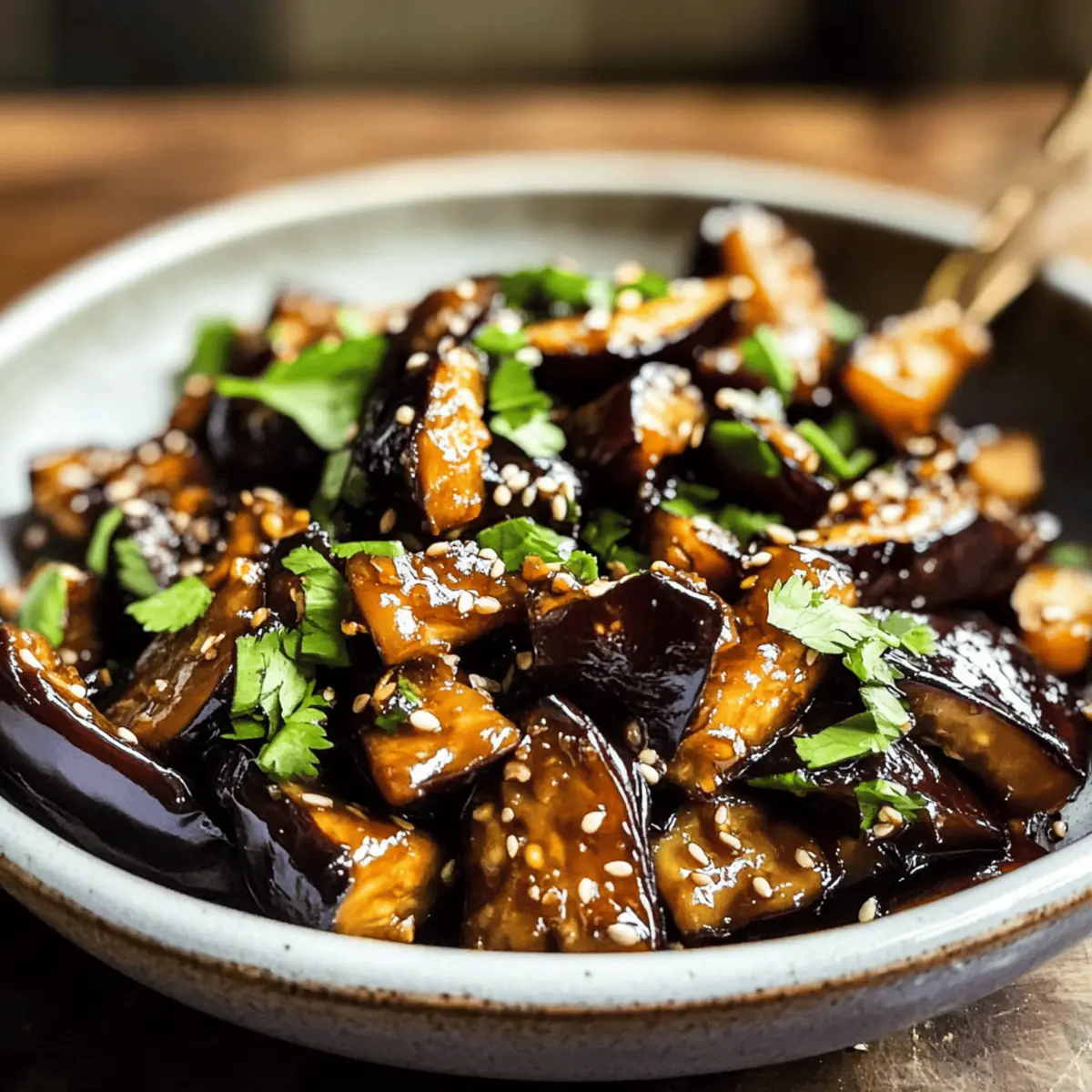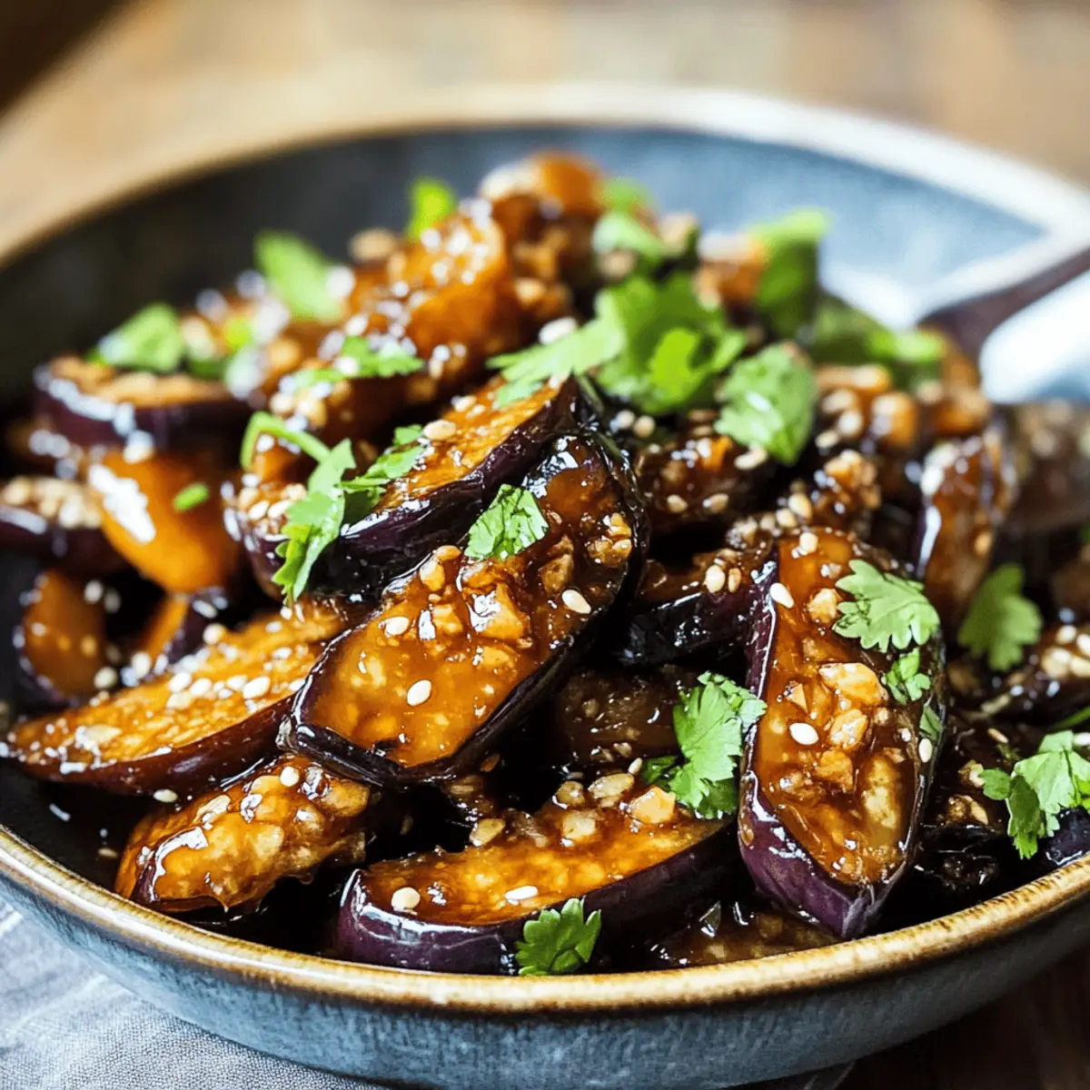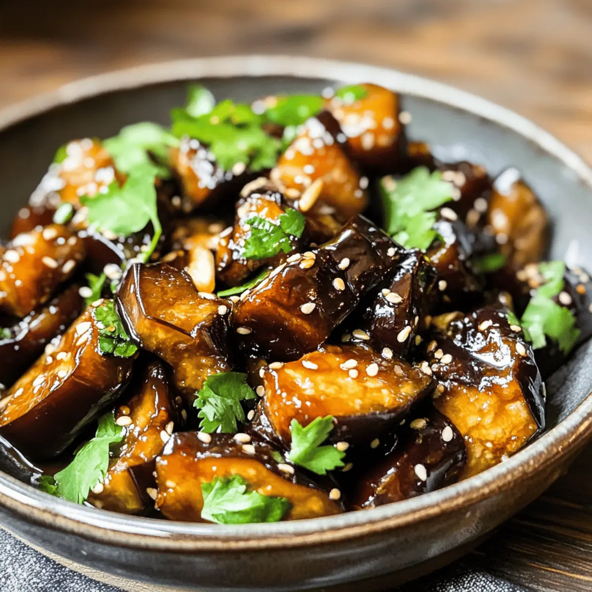 Beim ersten Bissen von knusprigem Auberginenstückchen mit Knoblauch-Ingwer-Sauce wähnt man sich in einem kleinen asiatischen Restaurant, wo die Aromen zum Leben erwachen. Diese vegane Delikatesse verbindet die knackige Textur der frittierten Aubergine mit einer harmonischen Mischung aus süßem und salzigem Sojasauce, die während des Kochens eindickt und jedem Bissen eine wunderbare Tiefe verleiht. Ein spannendes Gericht, das nicht nur schnell zubereitet ist, sondern auch auf jeder Tischrunde begeistert – perfekt für einen fleischlosen Montag oder als schmackhafte Beilage zu jedem Essen. Und wer hätte gedacht, dass ein so einfaches Rezept so viel Geschmack entfalten kann? Lass uns gemeinsam in diese kulinarische Reise eintauchen! Warum wirst du dieses Rezept lieben? Einfachheit: Die Zubereitung ist kinderleicht und erfordert nur grundlegende Kochkenntnisse. Vielseitigkeit: Ob als Hauptgericht für deinen fleischlosen Montag oder als köstliche Beilage, diese Auberginen sind extrem anpassungsfähig. Reichhaltiger Geschmack: Die Kombination von Knoblauch und Ingwer bringt das Gericht zum Leben und sorgt für ein wahres Geschmackserlebnis. Gesundheitsbewusst: Dieses Rezept ist nicht nur vegan, sondern auch reich an Ballaststoffen und Nährstoffen – ideal, um deinem Körper etwas Gutes zu tun. Schnell und lecker: In weniger als 30 Minuten auf dem Tisch, perfekt für hektische Wochentage! Lass dir auch unsere anderen leckeren Rezepte nicht entgehen, wie die Zucchini Sahnesauce Einfaches oder das Parmesan Hühnchen Knoblauchsauce. Genieß dein Kocherlebnis! Crispy Eggplant Zutaten • Für die Auberginen Aubergine – Hauptzutat, die beim Kochen die Aromen aufsaugt und super zart wird; chinesische Auberginen sind süßer, aber auch normale Auberginen sind eine gute Wahl. Öl – Notwendig zum Frittieren; verwende Öl mit hohem Rauchpunkt wie Pflanzen- oder Rapsöl. • Für die Sauce Knoblauch – Frisch gehackter Knoblauch sorgt für ein tiefes Aroma; für das beste Ergebnis frisch verwenden. Ingwer – Frischer, gehackter Ingwer bringt einen würzigen Kick; achte darauf, ihn klein zu schneiden für maximalen Geschmack. Sojasauce – Der Schlüssel zur Sauce, sorgt für Umami und salzige Noten; ersetzbar durch glutenfreie Tamari-Sojasauce. • Für die Garnitur Koriander/Chives – Frischer Koriander oder Schnittlauch bringen Farbe und Frische ins Gericht; nach Geschmack dosieren. Geröstete Sesamsamen – Optional für zusätzlichen Crunch und nussigen Geschmack; eine wunderbare Ergänzung für dieses Gericht. Genieße dieses köstliche Rezept für Crispy Eggplant und entdecke die harmonische Verbindung von Aromen! Schritt-für-Schritt-Anleitung für Crispy Eggplant mit Knoblauch-Ingwer-Sauce Schritt 1: Aubergine vorbereiten Schneide die Aubergine in dünne Stücke und lege sie in ein Sieb. Bestreue die Stücke großzügig mit Salz und lasse sie 10–15 Minuten stehen, um die Bitterkeit und Feuchtigkeit zu entziehen. Spüle die Auberginen unter fließendem Wasser ab und tupfe sie mit einem Küchentuch trocken, damit sie beim Frittieren schön knusprig werden. Schritt 2: Sauce mischen In einer Schüssel die Sojasauce mit frisch gehacktem Knoblauch und Ingwer vermengen. Rühre die Mischung gut um und stelle sie beiseite. Diese aromatische Sauce wird später über die gebratenen Auberginen gegossen und sorgt für den intensiven Geschmack des Gerichts. Schritt 3: Aubergine frittieren Erhitze in einem Wok oder einer großen Pfanne bei hoher Temperatur ausreichend Öl. Füge die vorbereiteten Auberginenstücke hinzu und frittiere sie für etwa 5–7 Minuten, bis sie goldbraun und zart sind, dabei gelegentlich umrühren, um ein gleichmäßiges Bräunen zu gewährleisten. Schritt 4: Aromatische Zutaten hinzufügen Sobald die Auberginen knusprig und golden sind, reduziere die Hitze auf mittlere Stufe. Füge den gehackten Knoblauch und Ingwer hinzu und brate sie für etwa 1–2 Minuten, bis sie aromatisch sind, um ein Anbrennen zu vermeiden und die Aromen freizusetzen. Schritt 5: Mit Sauce kombinieren Gieße die vorbereitete Sojasauce über die Auberginen in der Pfanne. Lasse das Ganze 2–3 Minuten köcheln, bis die Sauce eingedickt ist und die Auberginen gleichmäßig bedeckt sind. Gehe dabei sanft um, damit die Auberginen nicht zerfallen. Schritt 6: Servieren Das Gericht auf eine Servierplatte anrichten und nach Belieben mit frischem Koriander oder Schnittlauch sowie gerösteten Sesamsamen garnieren. Serviere die Crispy Eggplant lauwarm mit gedämpftem Reis oder Nudeln für eine vollständige Mahlzeit. Meal Prep für Crispy Eggplant mit Knoblauch-Ingwer-Sauce Die Crispy Eggplant mit Knoblauch-Ingwer-Sauce ist ideal für die Vorbereitung im Voraus und spart viel Zeit an hektischen Wochentagen! Du kannst die Auberginen bis zu 24 Stunden im Voraus vorbereiten: Schneide sie in Stücke, salze sie und lasse sie wie beschrieben 10–15 Minuten ruhen. Die Sauce aus Sojasauce, Knoblauch und Ingwer kann ebenfalls bis zu 3 Tage im Voraus gemischt und im Kühlschrank aufbewahrt werden. Achte darauf, dass die Auberginen vor dem Frittieren gut trocken sind, um die gewünschte Knusprigkeit zu bewahren. Wenn es Zeit zum Kochen ist, erhitze einfach dein Öl, frittiere die Auberginen und vermenge sie mit der Sauce für ein leckeres Gericht, das gerade so frisch und köstlich wie beim ersten Mal schmeckt! Was passt zu Crispy Eggplant mit Knoblauch-Ingwer-Sauce? Beim Genießen dieses köstlichen Gerichts kannst du es noch weiter aufwerten und zu einem vollendeten Menü machen! Jasminreis: Perfekt für den samtenen Kontrast. Die fluffige Textur des Reis ergänzt die knusprige Aubergine wunderbar. Stir-Fried Gemüse: Bunte Mischung aus Brokkoli, Paprika und Karotten bringt Farbe hinein. Frisches Gemüse verstärkt das asiatische Flair der Mahlzeit. Gedämpfte Dumplings: Diese zarten Häppchen bieten einen köstlichen Biss und harmonisieren mit der kräftigen Sauce. Sie sind ideal zum Dippen! Kokosmilch-Limonade