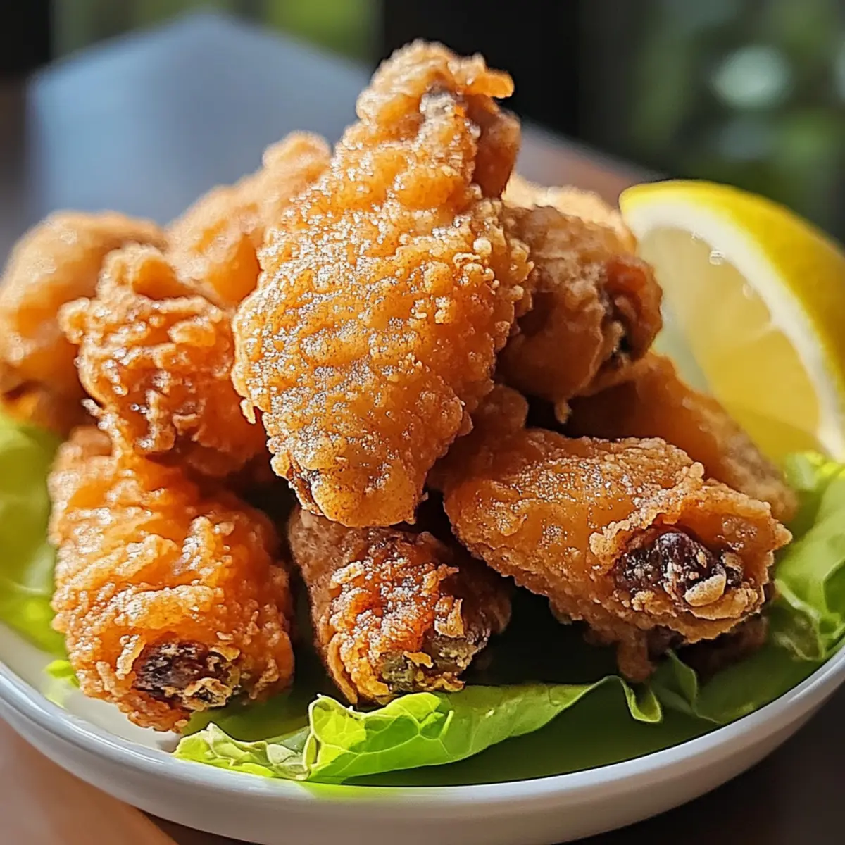 Es gibt nichts Besseres als den knusprigen Klang von frittierendem Hühnchen in der Küche, der das Wasser im Mund zusammenlaufen lässt. Bei meinem Rezept für Crispy Japanisches Frittiertes Hühnchen (Karaage) dreht sich alles um die perfekte Kombination aus zartem Fleisch und einer himmlischen, knusprigen Kruste. Diese japanische Köstlichkeit ist nicht nur in wenigen Schritten zubereitet, sondern bringt auch einen Hauch von Fernost direkt auf deinen Tisch. Egal, ob du nach einem schmackhaften Gericht für einen Familienabend oder einem besonderen Anlass suchst – dieses Rezept ist einfach unwiderstehlich! Lass dich von der herrlichen Mischung aus Sojasauce, Ingwer und Knoblauch begeistern, während sich das Aroma in deiner Küche entfaltet. Bist du bereit, deine Geschmacksknospen mit einmaligen Variationen zu überraschen? Warum wirst du dieses Rezept lieben? Einfachheit in der Zubereitung: Das Rezept benötigt keine umfangreichen Kochkenntnisse und ist somit für Anfänger sowie erfahrene Köche gleichermaßen geeignet. Saisonale Varianten: Von köstlichem Shio Karaage bis hin zu veganem Tofu Karaage – die Möglichkeiten sind endlos und bieten für jeden etwas. Knusprigkeit garantiert: Durch die Verwendung von Kartoffelstärke erhältst du eine perfekte knusprige Oberfläche, die im Mund schmilzt. Überraschende Aromen: Die Kombination aus Sojasauce, frisch geriebenem Ingwer und Knoblauch verwandelt dieses Gericht in ein Geschmackserlebnis. Schneller Genuss: In etwa 30 Minuten zubereitet, ist dieses Rezept ideal für ein schnelles Abendessen an hektischen Tagen. Wenn du auf der Suche nach weiteren leckeren Rezepten bist, schau dir auch unser Himbeer Streuselkuchen Rezept oder das Zucchini Kuchen Rezept an! Crispy Japanisches Frittiertes Hühnchen Zutaten • Dieses Rezept für crispy japanisches frittiertes Hühnchen wird deinen Gaumen verführen! Für die Marinade Hühnchenschenkel ohne Knochen und Haut – Zartes Fleisch sorgt für einen himmlischen Biss. Sojasauce – Verleiht einen umami-geschmack; für glutenfreie Varianten kann Tamari verwendet werden. Sake – Fügt Tiefe und Geschmack hinzu; kann durch trockenen Weißwein ersetzt werden. Geriebener Ingwer – Frisch geriebener Ingwer verleiht eine würzige Note. Gehackter Knoblauch – Intensiviert das Aroma der Marinade. Sesamöl – Sorgt für einen reichen, nussigen Geschmack; pflanzliches Öl ist ebenfalls eine gute Alternative. Für die Panade Kartoffelstärke – Erzeugt eine leicht knusprige Beschichtung. Weizenmehl – Gibt der Panade Struktur; glutenfreies Mehl kann hier ebenfalls verwendet werden. Für das Frittieren Pflanzenöl – Sollte einen hohen Rauchpunkt haben, um ein perfektes Frittierergebnis zu erzielen. Zitronenschnitze – Bringen Frische und Geschmack, wenn sie über das Gericht gedrückt werden. Japanische Majo (Optional) – Fügt eine cremige Textur und eine angenehme Säure als Dip hinzu. Schritt-für-Schritt-Anleitung für Crispy Japanisches Frittiertes Hühnchen Step 1: Marinade für das Hühnchen vorbereiten Mische in einer mittelgroßen Schüssel Sojasauce, Sake, geriebenen Ingwer, gehackten Knoblauch und Sesamöl gut zusammen. Füge die Hühnchenschenkel hinzu und stelle sicher, dass sie komplett mit der Marinade bedeckt sind. Decke die Schüssel ab und lasse das Hühnchen mindestens 30 Minuten im Kühlschrank marinieren, um die Aromen zu intensivieren. Je länger du es marinierst, desto köstlicher wird das Crispy Japanisches Frittiertes Hühnchen! Step 2: Panade zubereiten In einer separaten Schüssel mische die Kartoffelstärke und das Weizenmehl gründlich, um eine leichte und knusprige Beschichtung zu schaffen. Sorge dafür, dass die Mischung gut kombiniert ist, damit sie gleichmäßig an dem marinierten Hühnchen haftet. Diese Mischung wird das Geheimnis für die perfekte Konsistenz und Knusprigkeit deines japanischen Frittierhühnchens sein. Step 3: Öl erhitzen Erhitze in einer tiefen Pfanne oder einem Wok genügend Pflanzenöl, damit das Hühnchen später vollständig eintauchen kann. Die Öltemperatur sollte etwa 170°C (340°F) erreichen. Um sicherzustellen, dass das Öl heiß genug ist, kannst du einen Küchenthermometer verwenden oder ein kleines Stück Teig hineinwerfen; es sollte sofort sizzeln. Das richtige Temperatur ist entscheidend, um richtig knuspriges Hühnchen zu erhalten. Step 4: Hühnchen panieren Nimm die marinierten Hühnchenteile aus der Marinade und lasse überschüssige Marinade abtropfen. Wende jedes Stück in der Mehlmischung, sodass es gleichmäßig bedeckt ist, und schüttle das überschüssige Mehl ab. Dies ist ein wichtiger Schritt, um sicherzustellen, dass das Crispy Japanisches Frittiertes Hühnchen eine herrlich knusprige Textur hat. Step 5: Hühnchen frittieren Frittiere die Hühnchenteile in Chargen, um Überfüllung der Pfanne zu vermeiden, und sorge dafür, dass jedes Stück genug Platz hat, um gleichmäßig zu bräunen. Frittiere sie für etwa 4-5 Minuten, bis sie goldbraun und knusprig sind. Achte darauf, die Temperatur des Öls während des Frittierens konstant zu halten, um das bestmögliche Ergebnis zu erzielen. Step 6: Abtropfen und Servieren Übertrage das frittierte Hühnchen auf einen Teller, der mit Küchenpapier ausgelegt ist, um überschüssiges Öl abzuleiten. Lass die Stücke kurz abtropfen, bevor du sie heiß servierst. Garniere das Crispy Japanisches Frittiertes Hühnchen mit frischen Zitronenschnitzen, die jedem Bissen eine spritzige Note verleihen, und eventuell mit etwas japanischer Majo als Dip für den extra Genuss. Vorbereitung für dein Crispy Japanisches Frittiertes Hühnchen Für alle, die sich das Kochen erleichtern möchten, ist die Vorbereitung für das Crispy Japanisches Frittiertes Hühnchen ideal! Du kannst das Hühnchen bis zu 24 Stunden im Voraus marinieren, was den Geschmack intensiviert und das Gericht noch köstlicher macht. Die Marinade aus Sojasauce, Ingwer und Knoblauch wird wunderbar aufgenommen, während du
