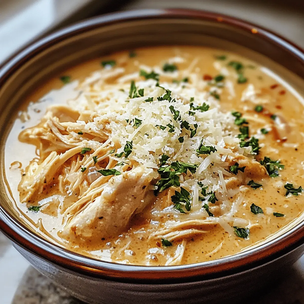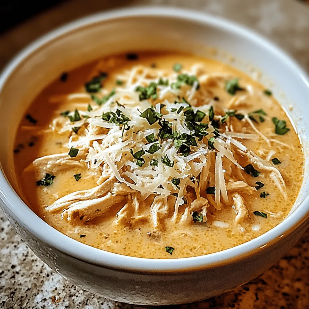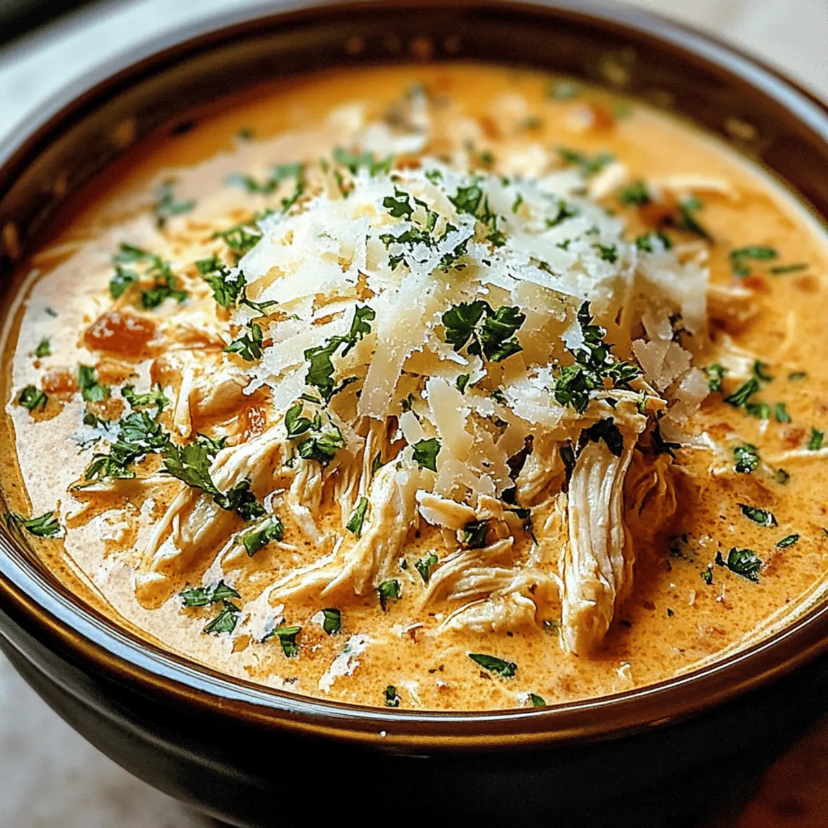 Die kühle Jahreszeit ruft nach herzhaftem Komfort, und nichts verkörpert das besser als meine Crock Pot Creamy Chicken Parmesan Soup. Während die Aromen langsam in der Küche aufsteigen, kann ich kaum die Vorfreude zügeln, die bei jedem Löffel entsteht. Diese cremige Suppe verbindet zarte, zerrissene Hähnchenstücke mit einer köstlichen, käsehaltigen Brühe – eine wahre Umarmung in einer Schüssel. Ideal für familienfreundliche Abende ist diese unkomplizierte Mahlzeit nicht nur schnell zuzubereiten, sondern punktet auch als wahres Seelengericht. Wer braucht schon Fast Food, wenn man so einfach hausgemachte Köstlichkeiten genießen kann? Bereit für eine kulinarische Entdeckung? Lass uns gleich loslegen! Warum wirst du diese Suppe lieben? Einfachheit: Mit nur wenigen Zutaten und minimalem Aufwand ist dieses Rezept perfekt für jeden Koch, egal ob Anfänger oder Profi. Herzhafter Geschmack: Die Kombination aus Hähnchen, Parmesan und italienischen Gewürzen sorgt für einen vollmundigen, leckeren Geschmack, der die ganze Familie begeistert. Zeitersparnis: Dank des Slow Cookers kannst du das Gericht einfach anlassen und dich währenddessen anderen Dingen widmen. Vielfältigkeit: Ob mit frischem Brot zum Dippen oder als alleinige Mahlzeit, diese Suppe passt zu jeder Gelegenheit und kann leicht abgewandelt werden. Energie-Kick: Ideal für kalte Abende, bringt sie Wärme ins Haus und in Herzen. Für mehr köstliche Ideen schau dir auch unser Rezept für Knuspriger Parmesan Spargel oder Knuspriges Parmesan Hühnchen mit Knoblauchsauce an! Crock Pot Cremige Hähnchen Parmesan Suppe Zutaten • Für das Rezept habe ich alle Zutaten zusammengetragen, die du für diese herzliche Suppe benötigst. Hähnchenbrust – die Hauptproteinzufuhr; verwende auch gerne Rotisserie-Hähnchen für die schnelle Zubereitung. Zwiebeln – bringen Süße und Tiefe; gelbe oder weiße Zwiebeln eignen sich gut. Knoblauch – für ein aromatisches Geschmackserlebnis; frischer Knoblauch sorgt für das beste Aroma. Italienische Gewürzmischung – verleiht der Suppe traditionelle Aromen; auch getrockneter Oregano und Basilikum sind gute Alternativen. Rote Paprikaflocken – optional für eine mild pikante Note; je nach Vorliebe anpassen. Zerkleinerte Tomaten – bieten Säure und Textur; gewürfelte Tomaten sind eine hervorragende Ersatzlösung. Hühnerbrühe – die Basisflüssigkeit; setze auf natriumarme Brühe für bessere Kontrolle des Salzgehalts. Schlagsahne – sorgt für die cremige Konsistenz; sie kann durch Kokosmilch für eine milchfreie Variante ersetzt werden. Parmesankäse – der Hauptgeschmacksträger; frisch geriebener Käse schmilzt am besten. Maisstärke – gibt der Suppe die gewünschte Dicke; optional für diejenigen, die eine dickere Konsistenz wünschen. Schritt-für-Schritt-Anleitung für die Crock Pot Cremige Hähnchen Parmesan Suppe Step 1: Hähnchen vorbereiten Legen Sie die rohen Hähnchenbrustfilets auf den Boden des Slow Cookers. Achten Sie darauf, dass sie gleichmäßig nebeneinander liegen, um eine gleichmäßige Garung zu gewährleisten. Dies ist die Grundlage unserer köstlichen Crock Pot Cremigen Hähnchen Parmesan Suppe. Step 2: Gemüse und Gewürze hinzufügen Schneiden Sie die Zwiebeln und den Knoblauch und geben Sie sie über das Hähnchen. Fügen Sie die italienische Gewürzmischung sowie die roten Paprikaflocken hinzu, wenn Sie eine scharfe Note wünschen. Die Kombination dieser Zutaten sorgt für einen aromatischen Geschmack, der sich wunderbar entfaltet. Step 3: Tomaten und Brühe einfüllen Gießen Sie die zerkleinerten Tomaten gleichmäßig über die Zutaten und stellen Sie sicher, dass sie gut verteilt sind. Anschließend gießen Sie die Hühnerbrühe hinzu, sodass das Hähnchen vollständig bedeckt ist. Diese Brühe wird die Basis für die herrlich cremige Suppe sein. Step 4: Kochen lassen Decken Sie den Slow Cooker ab und stellen Sie ihn auf die niedrige Stufe. Lassen Sie das Gericht für 6 Stunden kochen, bis das Hähnchen zart und leicht zu zerkleinern ist. Das langsame Garen ermöglicht es den Aromen, sich perfekt zu entfalten. Step 5: Hähnchen zerkleinern Nach der Kochzeit nehmen Sie das Hähnchen vorsichtig heraus und zerkleinern es mit zwei Gabeln. Geben Sie das zerrissene Hähnchen zurück in den Slow Cooker, um die texturierte Basis der Suppe zu schaffen, die wir lieben. Step 6: Cremigkeit hinzufügen Mischen Sie nun die Schlagsahne gründlich unter die Suppe. Fügen Sie allmählich den frisch geriebenen Parmesan hinzu und rühren Sie weiter, bis er schmilzt. Diese Schritte geben der Suppe die cremige Konsistenz, die wir alle suchen. Step 7: Suppe eindicken Lassen Sie die Suppe ohne Deckel für weitere 20-30 Minuten auf niedriger Stufe kochen. Dies hilft, die Textur zu verdicken und das Aroma zu intensivieren. Achten Sie darauf, gelegentlich umzurühren, damit nichts am Boden anbrennt. Step 8: Abschmecken und Servieren Probieren Sie die Suppe und passen Sie bei Bedarf die Würze mit Salz und Pfeffer an. Servieren Sie die Crock Pot Cremige Hähnchen Parmesan Suppe heiß, garniert mit zusätzlichem Parmesan und frisch gehackter Petersilie. Perfekt als herzhaftes Abendessen oder für entspannte Familienessen. Expert Tips für die beste Crock Pot Cremige Hähnchen Parmesan Suppe Zutatenwahl: Verwende frische, qualitativ hochwertige Zutaten, um den vollmundigen Geschmack der Suppe zu maximieren. Günstige Alternativen können den Geschmack beeinträchtigen. Richtige Brühe: Nutze immer natriumarme Hühnerbrühe. So kannst du den Salzgehalt der Suppe besser kontrollieren und gesunde Optionen für die Familie gewährleisten. Cremigkeit bewahren: Füge die Schlagsahne und den Parmesan erst hinzu, nachdem das Hähnchen gekocht und zerkleinert ist. Das verhindert, dass die Kreation gerinnt und die perfekte Konsistenz erreicht werden kann. Käsewahl: Verwende frisch geriebenen Parmesan anstelle von verpacktem geriebenen Käse. Letzterer kann Zusatzstoffe enthalte