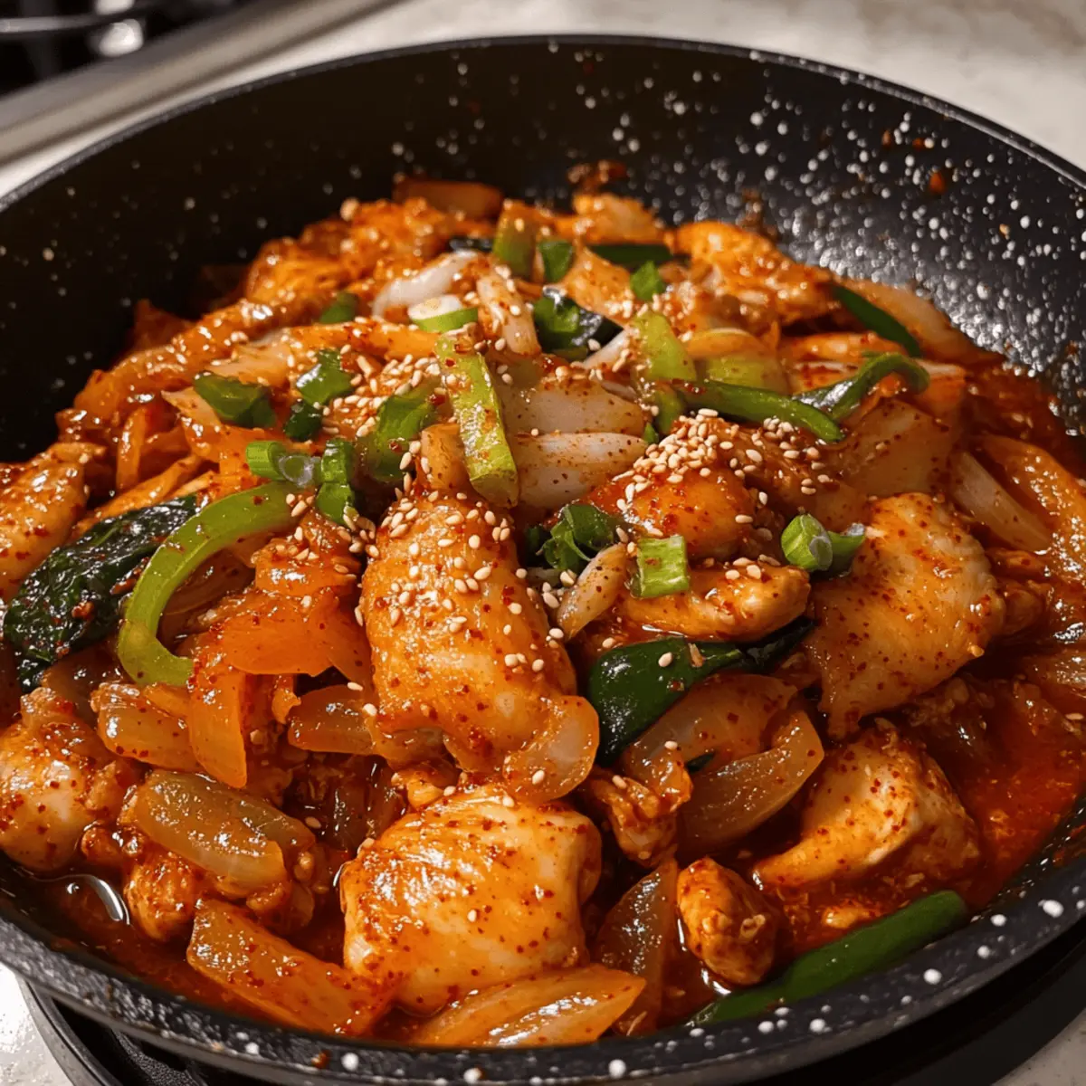 Im Herzen von Seoul, wo die Straßen von köstlichen Aromen durchzogen sind, gibt es ein Gericht, das jeder Food-Liebhaber unbedingt probieren muss: Dakgalbi! Dieses traditionelle koreanische Gericht vereint zartes Hähnchen, knackiges Gemüse und wunderbar chewy Reis-Gnocchi in einer würzigen, herzhafter Soße. Was ich an Dakgalbi besonders schätze, ist, wie schnell es zubereitet ist – ein perfektes Rezept für hektische Wochentage. Außerdem ist es ideal für geselliges Beisammensein, denn es wird direkt aus der Pfanne serviert und lässt jeden am Tisch in den Genuss dieser lebhaften Aromen eintauchen. Wer kann da schon widerstehen? Lass uns gemeinsam in die Welt von Dakgalbi eintauchen und entdecken, wie du es selbst zubereiten kannst!