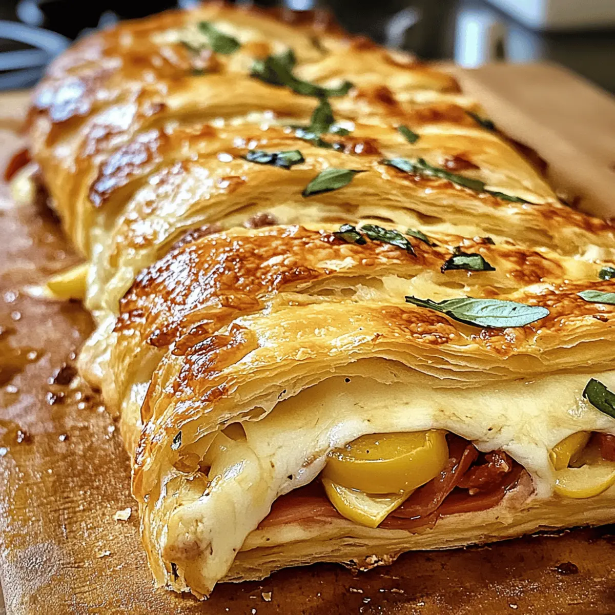 Es gibt diesen besonderen Moment, wenn der Duft von frisch gebackenem Brot und herzhaften italienischen Gewürzen durch die Küche zieht – ein Wahnsinnsgefühl, das sich nur mit dem besten Gericht der italienischen Küche erleben lässt: dem Italian Crescent Roll Sandwich Bake. Dieses Rezept vereint alles, was wir lieben: eine goldene, flakey Kruste, gefüllt mit einer köstlichen Mischung aus deli Fleisch, geschmolzenem Käse und pikanten Aromen. Es bietet nicht nur eine schnelle Zubereitung, sondern auch die Möglichkeit, das Gericht an verschiedene Vorlieben anzupassen, egal ob du ein Fan von Fleisch oder einer vegetarischen Variante bist. Ideal für ein entspanntes Dinner während der Woche oder um deine Freunde beim Spieltag zu beeindrucken – dieses Rezept ist ein wahrer Crowd-Pleaser und ein Muss für jede Rezeptesammlung! Bist du bereit, deine Lieblingszutaten zu vereinen und deine Lieben mit diesem köstlichen Gericht zu verwöhnen? Warum wirst du dieses Rezept lieben? Einfachheit: Die Zubereitung ist kinderleicht und erfordert nur wenige Schritte, so dass du auch an hektischen Tagen ein köstliches Gericht zaubern kannst. Vielfältige Anpassungen: Egal ob du dich für die vegetarische, glutenfreie oder milchfreie Variante entscheidest – dieses Rezept bietet dir zahlreiche Möglichkeiten, um es nach deinem Geschmack zu gestalten. Aroma und Geschmack: Der herrliche Duft von italienischen Gewürzen und der schmelzende Käse vereinen sich zu einem unvergesslichen Geschmackserlebnis, das deine Gäste begeistern wird. Gemütliches Essen: Perfekt für ein entspanntes Dinner oder als Herzstück eines Buffets – dieses Gericht ist ideal, um Familie und Freunde zusammenzubringen. Vorratsfreundlich: Du kannst es problemlos im Voraus zubereiten und sogar einfrieren, was dir Zeit spart und dir die Flexibilität gibt, bei Bedarf schnell ein köstliches Gericht zu genießen. Für noch mehr Ideen schau dir auch mein Caesar Croissant Sandwich an, das ebenso schnell zubereitet ist! Das Ausgabegerät: Zutaten Für den Teig Crescent Rolls – Sorgen für eine Struktur und eine flakey Textur, kannst du auch glutenfreie Croissants verwenden. Für die Füllung Geschnittener Schinken – Verleiht einen rauchigen und herzhaften Geschmack, kann durch Truthahn oder Hühnchen ersetzt werden. Geschnittene Salami – Fügt Reichhaltigkeit und einen leicht scharfen Kick hinzu, ersetzbar durch jedes andere Aufschnitt. Geschnittener Provolone Käse – Bietet Cremigkeit und schmilzt wunderbar, kann mit Mozzarella oder Cheddar getauscht werden. Geschnittene Pepperoni – Verstärkt das herzhafte Aroma, kann weggelassen oder durch vegetarische Pepperoni ersetzt werden. Bananen-Pfeffer-Ringe – Fügen einen würzigen und pikanten Kick hinzu, ersetzbar durch Jalapeños für mehr Schärfe. Geröstete Paprika – Bringt Süße und Farbe in das Gericht, frische Paprika können ebenfalls verwendet werden. Italienische Gewürze – Infusioniert das Gericht mit klassischen italienischen Aromen, kann durch einzelne getrocknete Kräuter ersetzt werden. Geriebener Parmesan Käse – Fügt einen scharfen, käsigen Geschmack hinzu, kann durch Hefeflocken für eine milchfreie Variante ersetzt werden. Olivenöl – Hält die Kruste feucht und verstärkt den Geschmack, kann auch mit geschmolzener Butter ersetzt werden. Für das Topping (optional) Salat- und Tomatenscheiben – Bringt Frische und Crunch als Beilage, perfekt zum Servieren nach dem Backen. Schritt-für-Schritt-Anleitung für das Ausgabegerät: Italienischer Sandwich-Blechkuchen Step 1: Ofen vorheizen Heize deinen Ofen auf 190°C vor und fette eine 9×13 Zoll große Auflaufform mit etwas Olivenöl ein. Der Ofen sollte während der Vorbereitungen die richtige Temperatur erreichen, um das Gericht gleichmäßig zu backen. Achte darauf, die Form gut zu fetten, damit der italienische Sandwich-Blechkuchen später nicht anklebt. Step 2: Teig auslegen Roll den ersten Teig von einem Glas Crescent Dough aus und lege ihn gleichmäßig in die gefettete Auflaufform. Drücke die Teigstellen zusammen, um eine durchgehende Kruste zu bilden. Achte darauf, dass der Teig schön flach und ohne Falten ausgelegt ist, um eine perfekte Grundlage für die reichhaltige Füllung zu schaffen. Step 3: Füllung schichten Beginne mit dem Schichten der Füllung: Lege zuerst die geschnittenen Schinkenstücke gleichmäßig über den Teig. Darauf folgt eine Schicht Salami und dann Provolone Käse. Anschließend die Pepperoni und die Bananen-Pfeffer-Ringe hinzufügen, und die gerösteten Paprika als letzte Schicht einfügen. Achte darauf, die Zutaten gleichmäßig zu verteilen, um jeden Bissen schmackhaft zu machen. Step 4: Gewürze hinzufügen Streue die italienischen Gewürze großzügig über die Füllung und füge dann den geriebenen Parmesan-Käse hinzu. Verteile zum Schluss einen Esslöffel Olivenöl gleichmäßig über die gesamte Oberfläche, um die Aromen zu intensivieren und die Oberseite des Blechs schön knusprig zu machen. Diese Gewürze verleihen dem italienischen Sandwich-Blechkuchen den letzten Schliff. Step 5: Zweiten Teig auflegen Rolle die zweite Dose Crescent Dough aus und lege sie vorsichtig über die Füllung, sodass alle Zutaten vollständig bedeckt sind. Drücke die Ränder gut zusammen, um sicherzustellen, dass die Füllung während des Backens nicht ausläuft. Es ist wichtig, eine gute Verbindung zwischen den Teigschichten zu schaffen, um den perfekten Biss zu garantieren. Step 6: Backen Schiebe die Auflaufform vorsichtig in den vorgeheizten Ofen und backe den italienischen Sandwich-Blechkuchen für 20 bis 25 Minuten. Achte darauf, dass die Oberseite goldbraun und knusprig wird. Der köstliche Duft, der während des Backens aufsteigt, wird dir das Wasser im Mund zusammenlaufen lassen und ist ein Zeichen dafür, dass das Gericht fast fertig ist. Step 7: Abkühlen und garnieren Lasse das fertige Gericht nach dem Backen etwa 5 bis 10 Minuten abkühlen, bevor du es in St