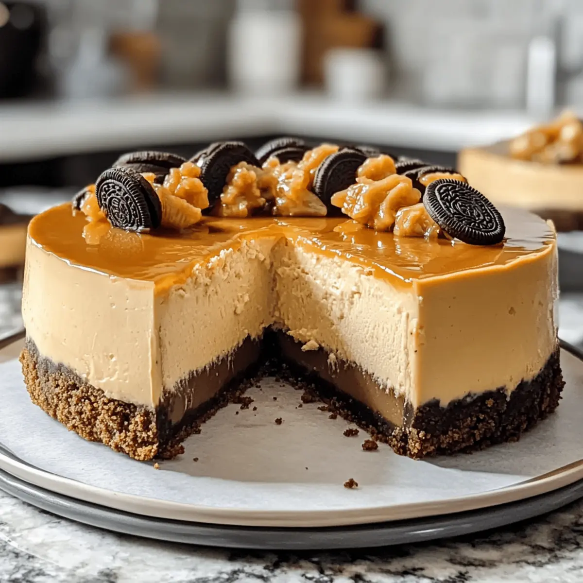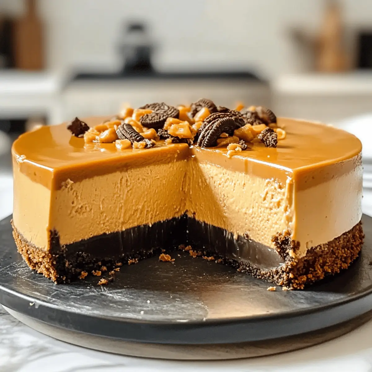 “Du wirst es nie glauben, aber der Ausgang meiner letzten Backsession war eine himmlische Loaded Butterscotch Cheesecake, die alle Erwartungen übertraf! Diese köstliche, cremige Delikatesse mit einer knusprigen Oreo-Kruste und dem verführerischen Geschmack von Butterscotch ist wirklich ein Showstopper. Ob für ein Familienfest, einen Geburtstag oder einfach als süßer Abschluss für ein Abendessen – dieser Kuchen beeindruckt einfach jeden. Die Zubereitung ist nicht nur unkompliziert, sondern kann auch ganz nach deinem Geschmack angepasst werden. Warum also nicht gleich zur Küche eilen und mit mir dieses unglaubliche Dessert entdecken? Was wird wohl dein liebster Topping sein?” Warum lieben alle Butterscotch Cheesecake? Einfachheit: Die Zubereitung dieses Rezepts erfordert keine komplizierten Techniken, wodurch es für jeden zugänglich ist. Vielfalt: Du kannst kreativ werden und deine eigenen Variationen ausprobieren, wie die erfrischende No-Bake-Version oder vegane Optionen. Cremiger Genuss: Die Kombination aus weichem Käse und Butterscotch verbindet sich zu einem unvergesslichen Geschmackerlebnis. Tolle Präsentation: Der dekadente Topping aus Butterscotch und gekrönter Sahne sorgt für eine beeindruckende Optik, die deine Gäste ins Staunen versetzen wird! Schnell und unkompliziert: In nur wenigen Schritten hast du ein luxuriöses Dessert, ideal für spontane Feierlichkeiten oder wenn du einfach nur etwas Süßes willst. Entdecke auch unsere Tipps für die perfekte Lagerung und wie du die besten Serviervorschläge umsetzt! Butterscotch Cheesecake Zutaten Für den Boden: • Oreo-Kekse – Zerbrösele sie fein für eine knusprige Kruste. Alternativ kannst du auch Graham-Cracker-Krümel verwenden, um den Geschmack zu variieren. • Ungesalzene Butter – Bindet die Keks-Krümel zu einer stabilen Basis. Für die Füllung: • Frischkäse – Stelle sicher, dass er weich ist, um ein einfaches Mischen zu ermöglichen. • Brauner Zucker – Sorgt für zusätzliche Süße und Feuchtigkeit in der Füllung. • Allzweckmehl – Stabilisiert den Cheesecake und gibt ihm Struktur. • Vanilleextrakt – Bringt eine geschmackliche Tiefe in die Füllung. • Butterscotch-Pudding – Dies verleiht eine cremige und reichhaltige Textur; achte darauf, dass er gut vorbereitet und abgekühlt ist. • Sauerrahm – Fügt eine angenehme, leicht säuerliche Note hinzu und verstärkt die Cremigkeit. • Eier – Dienen als Bindemittel und geben dem Käsekuchen Festigkeit. • Butterscotch-Streusel – Optional für zusätzlichen Geschmack und Textur. Für das Topping: • Schlagsahne – Für das perfekte Finish und eine luftige Textur. • Butterscotch-Chips – Fügen einen extra Karamellgeschmack hinzu. • Salz – Betont den Butterscotch-Geschmack und rundet die Süße ab. Optionale Garnierungen: • Karameledrizzle – Für zusätzlichen Glanz und Geschmack. • Extra Butterscotch-Chips – Für die Dekoration. Mit diesen Zutaten bereitest du dir schnell ein unwiderstehliches Dessert zu, das sicherlich ein Publikumsliebling wird! Step-by-Step Instructions für Loaded Butterscotch Cheesecake Step 1: Kruste vorbereiten Heize den Ofen auf 163°C vor. Zerkleinere die Oreo-Kekse zu feinen Krümeln, mische sie mit der geschmolzenen Butter und drücke die Mischung gleichmäßig in den Boden einer Springform. Backe die Kruste für 10 Minuten, bis sie fest und leicht knusprig ist. Lass sie anschließend vollständig auskühlen, während du die Füllung vorbereitest. Step 2: Füllung herstellen In einer großen Rührschüssel die zimmerwarme Frischkäse mit dem braunen Zucker und dem Allzweckmehl mit einem Handmixer glatt rühren. Füge den Vanilleextrakt, den abgekühlten Butterscotch-Pudding und den Sauerrahm hinzu und mische alles gut durch. Die Eier einzeln hinzufügen und jeweils gut unterrühren, bis eine cremige Masse entsteht. Step 3: Cheesecake backen Gieße die Füllung gleichmäßig auf die abgekühlte Kruste in der Springform. Wickele die Form in Aluminumfolie und stelle sie in ein größeres Backblech mit heißem Wasser für einen Wasserbad. Backe den Cheesecake für 55-65 Minuten, bis die Ränder fest sind und die Mitte leicht wackelt. Lass ihn eine Stunde im Ofen bei ausgeschaltetem Herd abkühlen und dann mindestens 4 Stunden im Kühlschrank. Step 4: Topping zubereiten Erhitze die Schlagsahne in einem kleinen Topf, bis sie gerade zu köcheln beginnt. Füge die Butterscotch-Streusel und das Salz hinzu, rühre, bis sie komplett geschmolzen sind und eine glatte Masse entsteht. Lass die Mischung kurz abkühlen, bevor du sie gleichmäßig über den gekühlten Cheesecake gießt. Step 5: Garnieren und servieren Dekoriere den Cheesecake nach Belieben mit Schlagsahne, zusätzlichen Butterscotch-Streuseln oder einem Karamell-Topping. Schneide den Cheesecake in Stücke und serviere ihn, um seine cremige, dekadente Textur und den reichhaltigen Geschmack zu genießen. Lass deine Gäste diesen Loaded Butterscotch Cheesecake bewundern, während sie sich auf das besondere Dessert freuen! Was passt gut zum Loaded Butterscotch Cheesecake? Dieser cremige Käsekuchen fordert nach weiteren Leckereien, die das Geschmackserlebnis abrunden und das Essen unvergesslich machen. Vanilleeis: Eine Kugel Vanilleeis ergänzt die süße Butterscotch-Note und sorgt für eine kühle, cremige Textur. Die Kombination macht jeden Bissen noch verführerischer. Salzkaramellsoße: Ein Tropfen Salzkaramell intensiviert die Aromen des Cheesecakes und vermittelt eine wunderbare Balance zwischen süß und salzig, die einfach unwiderstehlich ist. Frische Beeren: Himbeeren oder Erdbeeren bringen eine fruchtige Frische ins Spiel. Sie sorgen für einen schönen Farbkontrast und eine spritzige Ausgewogenheit gegen die Cremigkeit. Einfache Schokoladensauce: Ein leichtes Überziehen mit warmer Schokoladensauce bringt eine feste Textur und ein zusätzliches Geschmackselement, das gut mit der Butterscotch-Basis harmoniert. Mit einer Po