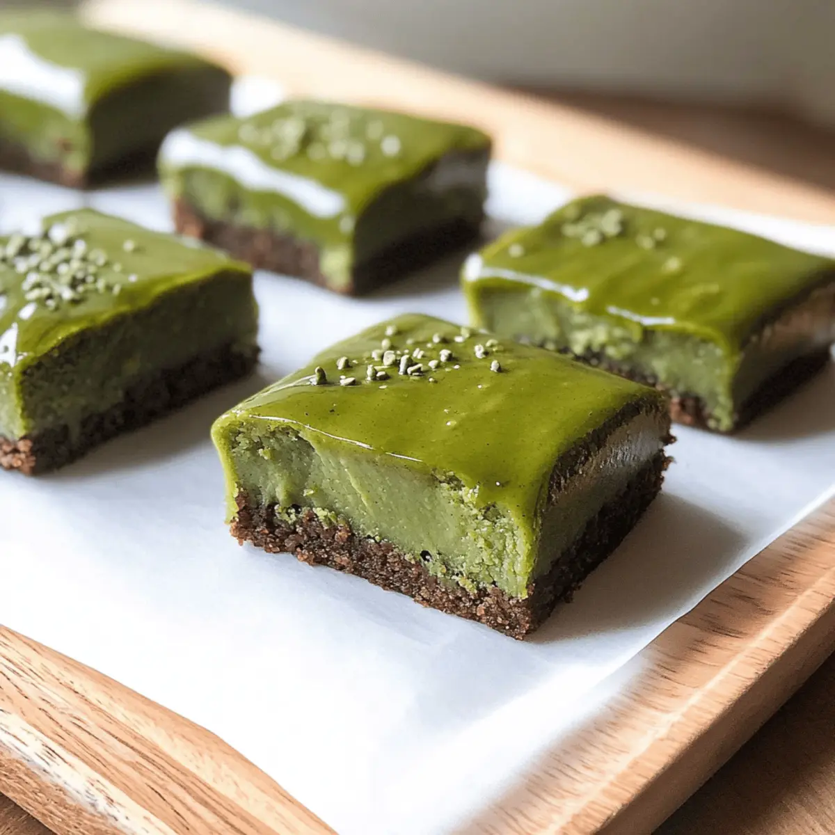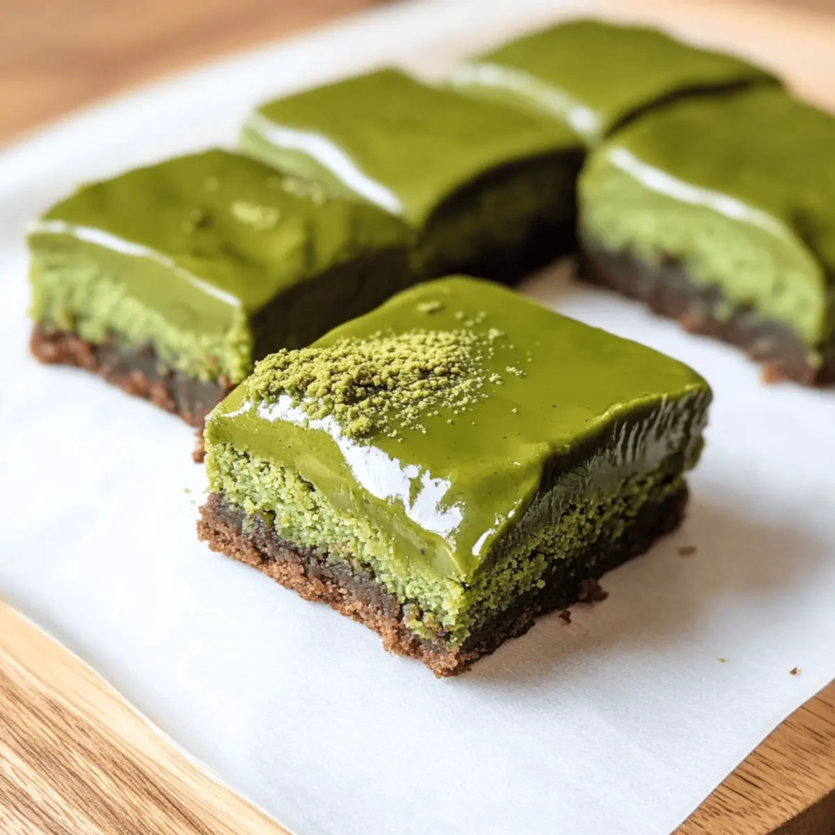 Es war ein regnerischer Nachmittag, und der Duft von frisch gebackenem Brot erfüllte die Küche. Während ich den Teig knetete, huschte mir der Gedanke an eine besondere Nascherei durch den Kopf: Chewy Cakey Matcha Mochi Brownies mit reichhaltiger Matcha Ganache. Diese verführerischen Brownies kombinieren die perfekte Balance zwischen einem cakey und chewy Erlebnis, das sie zu einem absoluten Genuss macht. Nicht nur, dass sie frei von Gluten sind – dank des süßen glutinösen Reismehls – aber sie lassen sich auch schnell zubereiten, perfekt für alle, die Lust auf ein hausgemachtes Dessert haben. Und die zarte, cremige Ganache aus nachhaltigem Matcha rundet den Geschmack einfach herrlich ab. Bereit, Ihre küchentechnischen Fähigkeiten auf die nächste Stufe zu heben? Lassen Sie uns gemeinsam in die Welt dieser einzigartigen Leckerei eintauchen! Warum sind diese Brownies so besonders? Einzigartiger Geschmack: Die Kombination aus erdigem Matcha und süßem weißen Schokolade schafft ein Geschmackserlebnis, das sowohl ungewöhnlich als auch köstlich ist. Glutenfrei: Die Verwendung von Mochiko macht diese Brownies zu einer idealen Wahl für glutenfreie Ernährung, ohne auf Genuss zu verzichten. Einfache Zubereitung: Mit nur wenigen Schritten sind diese Brownies schnell und unkompliziert zubereitet – perfekt für spontane Backaktionen! Vielseitig: Fühlen Sie sich frei, Variationen hinzuzufügen, wie Nüsse oder verschiedene Schokoladensorten, um Ihren eigenen Twist zu kreieren. Beeindruckende Präsentation: Die strahlend grüne Farbe zusammen mit der glänzenden Ganache bietet nicht nur einen Geschmack, sondern auch eine optische Freude – ideal für besondere Anlässe oder einfach so! Egal, ob Sie sich nach einer neuen Dessertidee sehnen oder einfach etwas Besonderes ausprobieren möchten, diese Matcha Mochi Brownies sind eine perfekte Wahl. Zutaten für die Matcha Mochi Brownies • Für den Teig: Butter – sorgt für Feuchtigkeit und Reichtum; verwenden Sie ungesalzene Butter für mehr Kontrolle über den Salzgehalt. Zucker – für Süße und Bräunung; keine direkte Substitution, es sei denn, Sie verwenden alternative Süßstoffe; passen Sie die Flüssigkeiten entsprechend an. Eier – für Struktur und Bindung; können durch Leinsamen-Eier für eine vegane Option ersetzt werden (1 Ei = 1 EL gemahlener Leinsamen + 2,5 EL Wasser, kurz ruhen lassen). Culinary Matcha Powder – für Geschmack und Farbe; verwenden Sie die kulinarische Qualität zum Backen; zeremonielle Matcha ist besser für Getränke geeignet. Vanillepaste/-extrakt – verstärkt den Gesamtgeschmack; keine Substitution nötig, aber jede Vanillevariante funktioniert. Milch – für zusätzliche Feuchtigkeit; pflanzliche Milch kann ohne Änderung der Textur substituiert werden. Mochiko (süßes glutenfreies Reismehl) – für die Hauptstruktur und die chewy Textur; nicht durch normales Reismehl ersetzen. Feines Meersalz – hebt den Geschmack hervor; kann durch Kräutersalz ersetzt werden, aber die Menge anpassen, da es gröber ist. • Für die Ganache: Weiße Schokoladenstückchen – für Süße und Cremigkeit in der Ganache; kann durch milchfreie Schokolade für eine pflanzliche Option ersetzt werden. Schlagsahne – sorgt für Reichtum in der Ganache; verwenden Sie Kokosmilch als pflanzliche Alternative. Diese Matcha Mochi Brownies sind nicht nur ein Genuss für den Gaumen, sondern auch eine kreative Möglichkeit, etwas Einzigartiges in Ihrer Küche zu zaubern! Schritt-für-Schritt-Anleitung für Chewy Cakey Matcha Mochi Brownies Step 1: Ofen vorheizen und Backform vorbereiten Heizen Sie den Ofen auf 180 °C vor und bereiten Sie eine 23×23 cm große Backform vor, indem Sie sie mit Backpapier auskleiden. Das Backpapier sorgt dafür, dass die Chewy Cakey Matcha Mochi Brownies nach dem Backen leicht herausgehoben werden können. Step 2: Zutaten vermengen In einer großen Schüssel schmelzen Sie die ungesalzene Butter und fügen dann den Zucker hinzu. Rühren Sie die Mischung gut um, bis sie cremig ist, und geben Sie dann die Eier, das Matcha-Pulver und die Vanille hinzu. Diese Mischung sollte glatt und gut miteinander verbunden sein. Step 3: Milch hinzufügen Gießen Sie langsam die Milch in die Teigmischung und rühren Sie dabei kontinuierlich. Dies hilft, die Zutaten gut zu vermengen und eine homogene Masse zu schaffen. Achten Sie darauf, dass der Teig glatt ist und keine Klumpen enthält. Step 4: Mochiko und Salz einarbeiten Sieben Sie das Mochiko und das Meersalz in die Schüssel und falten Sie die trockenen Zutaten vorsichtig unter die feuchte Mischung. Achten Sie darauf, nicht zu übermixen, damit die Chewy Cakey Matcha Mochi Brownies ihre zarte Textur behalten. Der Teig sollte gleichmäßig und klumpenfrei sein. Step 5: Teig in die Backform gießen Gießen Sie den fertigen Teig gleichmäßig in die vorbereitete Backform. Glätten Sie die Oberseite mit einem Offset-Spatel, um sicherzustellen, dass die Brownies gleichmäßig backen. Stellen Sie die Form in den vorgeheizten Ofen und backen Sie die Brownies für 40–50 Minuten. Step 6: Abkühlen lassen Überprüfen Sie die Brownies nach der Backzeit mit einem Zahnstocher; er sollte mit wenigen Krümeln herauskommen. Nehmen Sie die Backform aus dem Ofen und lassen Sie die Brownies 30 Minuten lang in der Form auf einem Kuchengitter abkühlen. Step 7: Ganache zubereiten Für die Matcha-Ganache kombinieren Sie die weißen Schokoladenstückchen und die Schlagsahne in einer mikrowellengeeigneten Schüssel. Erhitzen Sie die Mischung in der Mikrowelle in Intervallen von 30 Sekunden und rühren Sie zwischendurch, bis sie glatt ist. Step 8: Matcha einrühren Sichten Sie das Matcha-Pulver in die geschmolzene Schokoladen- und Sahnemischung und rühren Sie es gut um, bis es gleichmäßig kombiniert ist. Achten Sie darauf, dass keine Klumpen zurückbleiben, und die Ganache eine homogene, cremige Konsistenz hat. Step 9: Ganache auf die Brownies gießen Gießen Sie die f