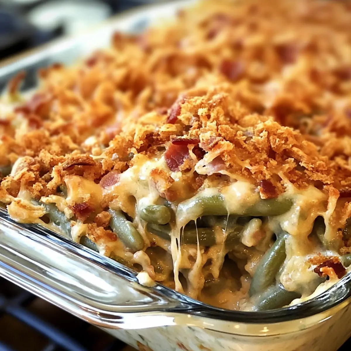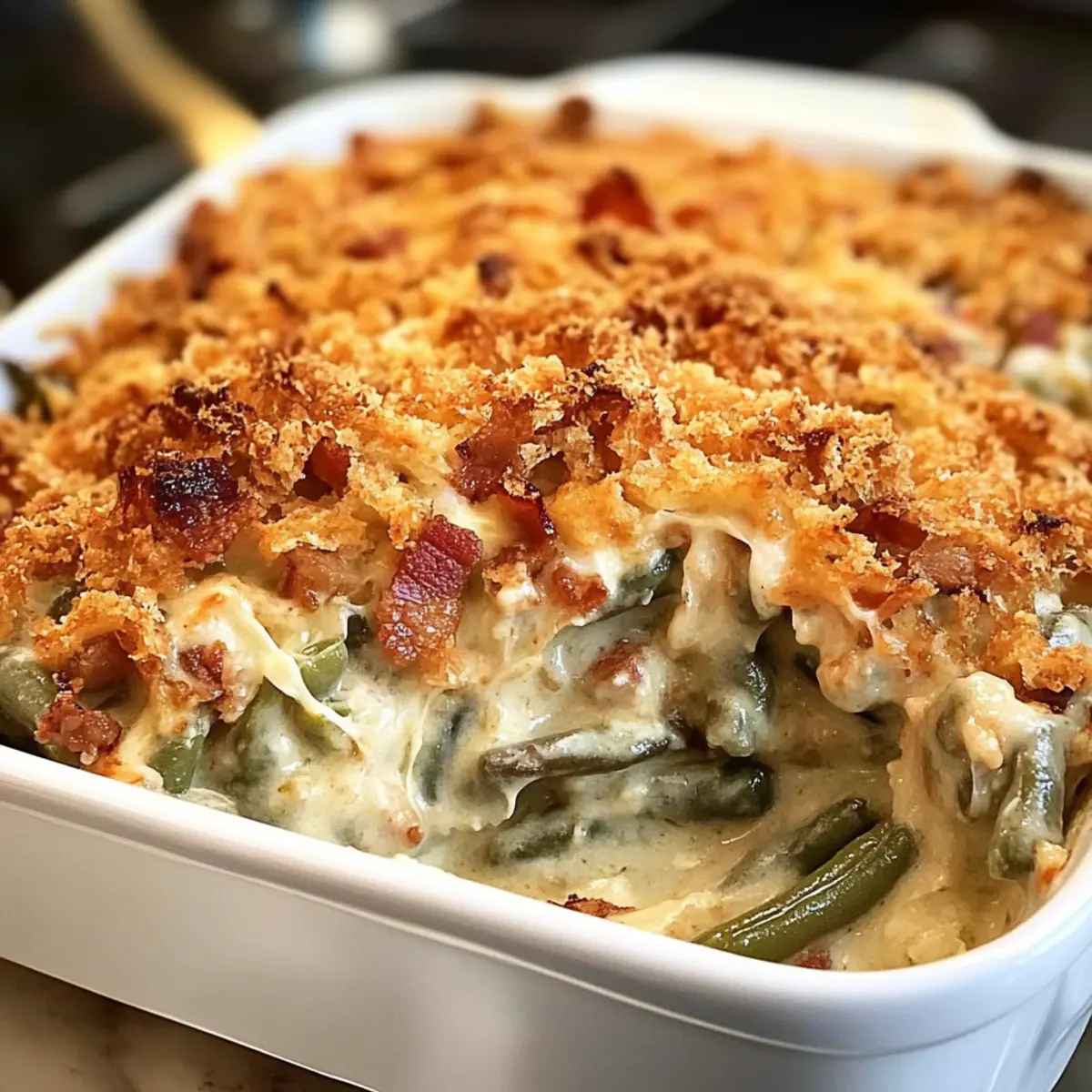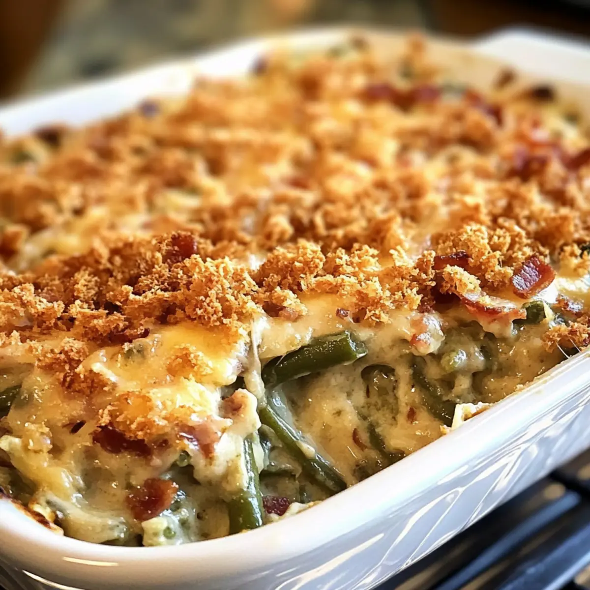 Die Kombination aus cremiger Sauce, knusprigem Speck und zarten grünen Bohnen weckt Appetit und Vorfreude auf ein unvergessliches Familienessen.