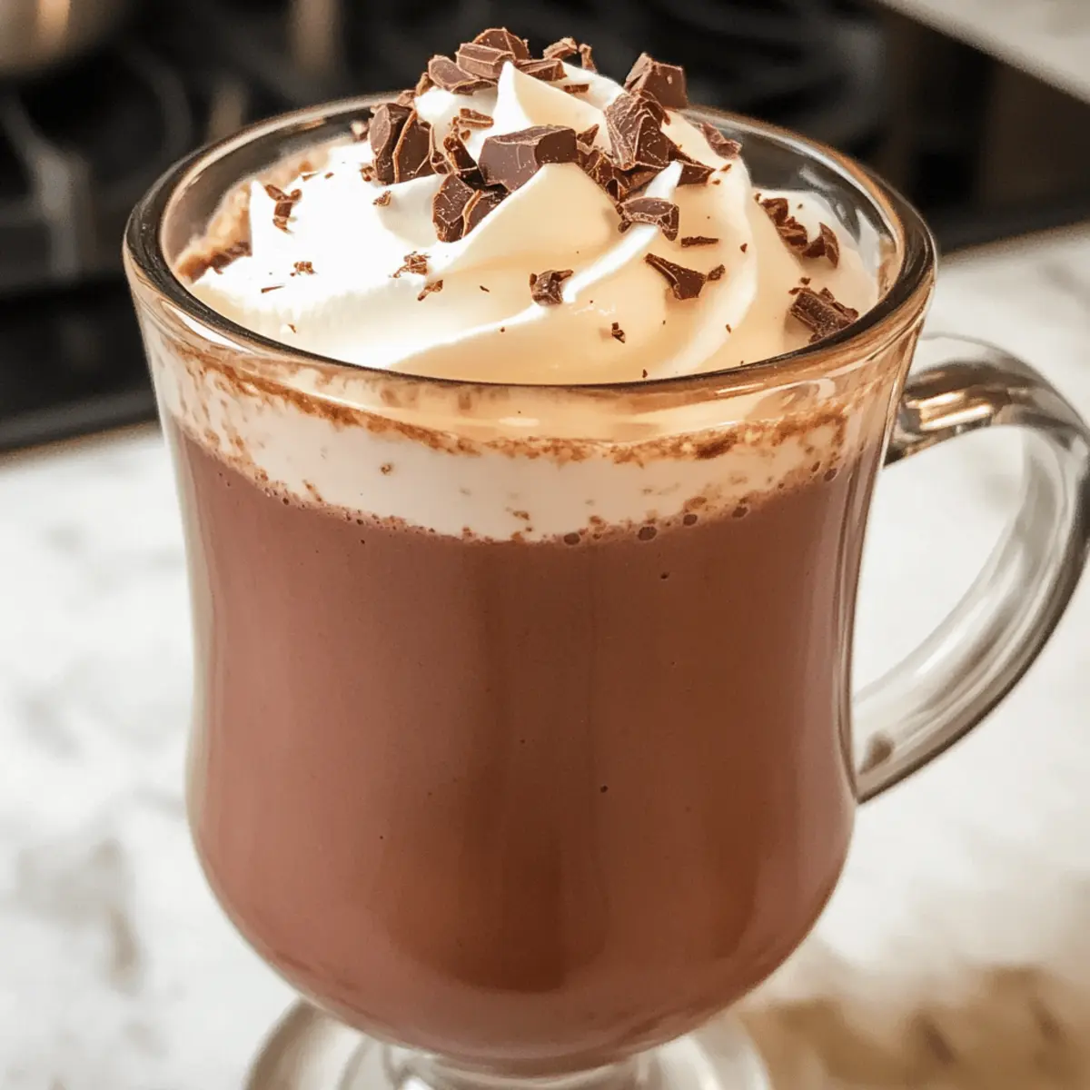 Lagern Sie die Reste in einem luftdichten Behälter und stellen Sie ihn in den Kühlschrank – das hält die heiße Schokolade frisch für bis zu 3-4 Tage. Bevor Sie sie wieder genießen, erwärmen Sie sie vorsichtig in einem Topf bei mittlerer Hitze, während Sie ständig rühren, um die cremige Konsistenz zu bewahren.