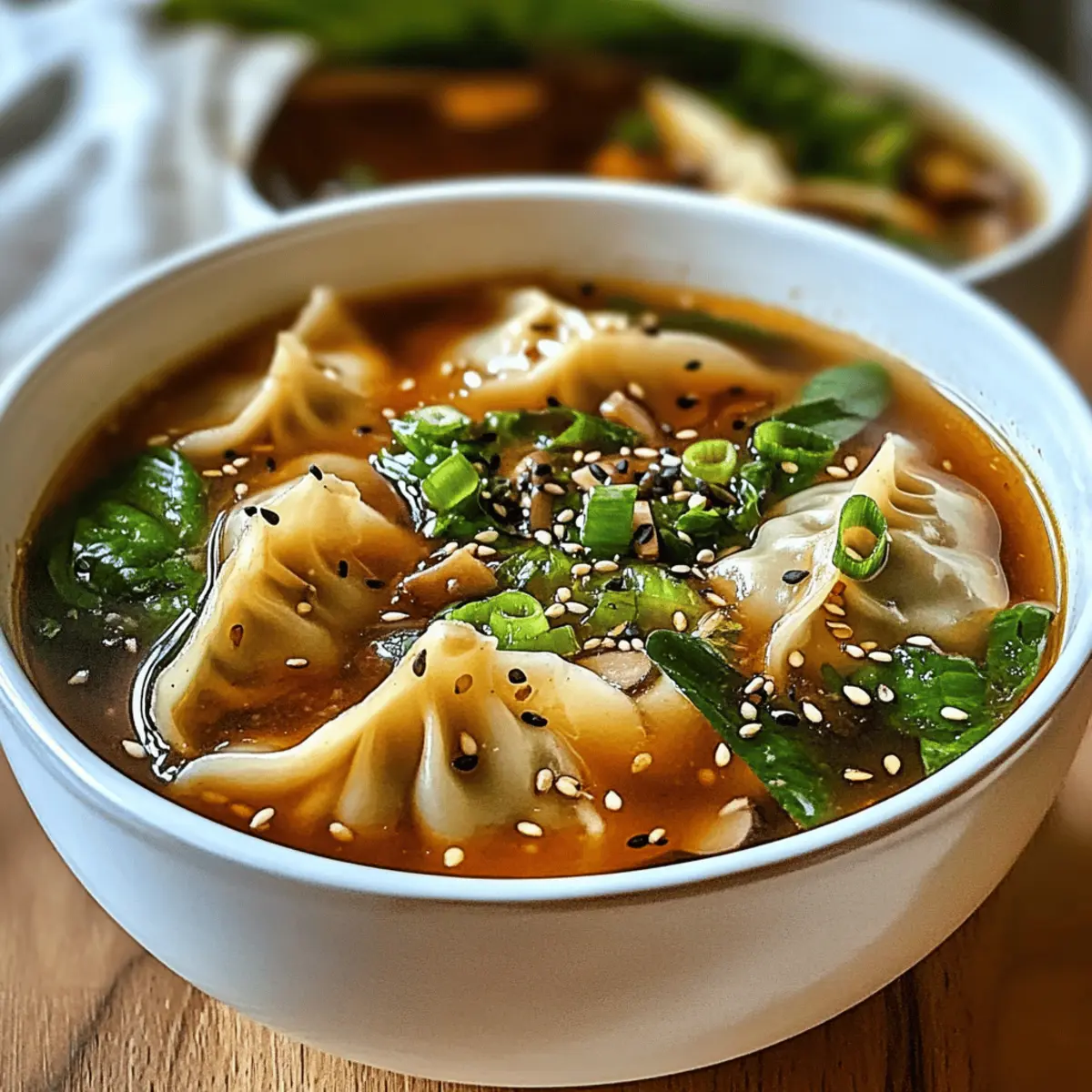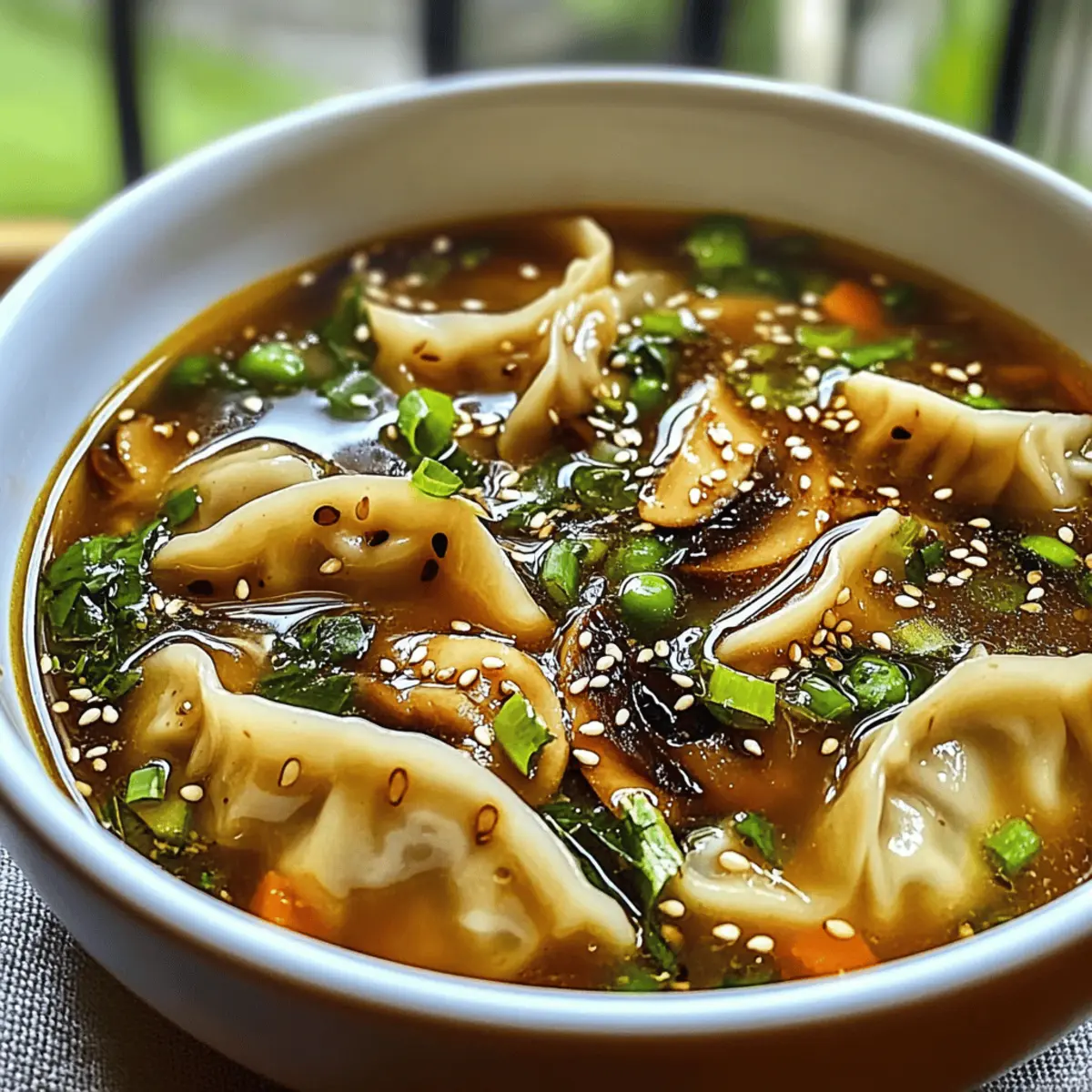 Es war ein kalter Abend, als ich mich in meiner Küche wiederfand, umhüllt von köstlichen Aromen, die mir ein Gefühl von Wärme und Geborgenheit schenkten. Ich wollte einfach nur etwas Selbstgemachtes zaubern, das nicht nur schnell zubereitet ist, sondern auch das Herz sättigt – und so entstand meine Leidenschaft für diese einfache, aber unglaublich schmackhafte Easy Asian Dumpling Potsticker Soup. Mit saftigen, gefrorenen Dumplings in einer herzlichen Brühe, die den perfekten Umami-Geschmack bietet, ist diese Suppe ideal für geschäftige Wochentage oder entspannende Wochenenden. Das Beste daran? Sie ist nicht nur eine Umarmung in einer Schüssel, sondern kann auch ganz nach Wunsch vegetarisch oder glutenfrei zubereitet werden. Neugierig, wie einfach dieses Wohlfühlessen zuzubereiten ist? Warum lieben Sie diese Suppe? Simplicity pur: Die Zubereitung ist kinderleicht und erfordert nur grundlegende Kochkünste. Herzhafter Geschmack: Eine Kombination aus aromatischen Gewürzen und umami-reicher Brühe lässt das Herz höherschlagen. Vielseitig einsetzbar: Diese Suppe kann ganz nach Ihrem Geschmack gestaltet werden, ob mit zusätzlichen Gemüsearten oder verschiedenen Dumpling-Varianten. Wohlfühlfaktor: Jede Schüssel ist wie eine warme Umarmung, ideal für kalte Abende oder stressige Tage. Schnelle Zubereitung: In weniger als 30 Minuten steht ein köstliches Gericht auf dem Tisch, das Ihre Familie begeistern wird. Gesunde Wahl: Mit frischen Zutaten und Möglichkeiten für eine glutenfreie, vegetarische Variante ist sie eine nahrhafte Entscheidung. Zutaten für die einfache asiatische Teigtaschen-Suppe • Hier sind die Schlüsselzutaten für ein köstliches, umami-reiches Erlebnis! Für den Brotkern: Sesamöl – verleiht Tiefe und ein nussiges Aroma; optional für kalorienbewusste Varianten. Frischer Ingwer (2 Teelöffel, gehackt) – sorgt für einen warmen Gewürzgeschmack und hebt das Aroma; kann durch 1/2 Teelöffel gemahlenen Ingwer ersetzt werden. Knoblauch (3 Zehen, gehackt) – sorgt für aromatischen Geschmack; frischer Knoblauch ist am stärksten, aber pulverisierter Knoblauch ist eine Alternative. Niedriger Natrium-Gemüsebrühe (6 Tassen) – bildet die Basis der Suppe; Hühnerbrühe kann für einen intensiveren Geschmack verwendet werden. Niedriger Natrium-Sojasauce (2 Esslöffel) – verstärkt den Umami-Geschmack; Tamari ist eine glutenfreie Option. Reisessig (1 Esslöffel) – fügt Säure und Frische hinzu; Apfelessig kann substituiert werden. Chili-Knoblauch-Sauce (1 Teelöffel, optional) – sorgt für Schärfe; für eine milde Suppe mit weniger beginnen. Für die Füllung: Champignons (1 Tasse, in Scheiben geschnitten, vorzugsweise Shiitake oder Cremini) – bieten einen erdigen Geschmack; Champignons oder Austernpilze können verwendet werden. Baby-Bok-Choy oder Spinat (3 Tassen, gehackt) – sorgt für Nährstoffe und Farbe; andere Blattgemüse wie Grünkohl sind ebenfalls möglich. Gefrorene Teigtaschen oder Potstickers (12–16) – die Hauptproteinquelle; können selbstgemacht oder gekauft sein. Für die Garnitur: Frühlingszwiebeln (2, gehackt) – für zusätzliche Frische und Geschmack. Geröstete Sesamsamen (1 Esslöffel) – fügt Knusprigkeit und Geschmack hinzu; können weggelassen werden. Schwarzer Pfeffer – nach Geschmack; frisch gemahlener Pfeffer ist für den besten Geschmack empfehlenswert. Rote Pfefferflocken (optional) – für zusätzliche Schärfe. Mit diesen Zutaten in der Hand, sind Sie bereit, eine unvergessliche Bowl mit der einfachen asiatischen Teigtaschen-Suppe zu kreieren! Schritt-für-Schritt-Anleitung für die einfache asiatische Teigtaschen-Suppe Schritt 1: Sesamöl erhitzen Erhitzen Sie das Sesamöl in einem großen Topf bei mittlerer Hitze. Fügen Sie den gehackten Knoblauch und den Ingwer hinzu und sautieren Sie sie für 1–2 Minuten, bis sie aromatisch sind und zu duften beginnen. Diese Aromen bilden die Grundlage für Ihre einfache asiatische Teigtaschen-Suppe. Schritt 2: Brühe hinzufügen Gießen Sie die Gemüsebrühe, die Sojasauce, den Reisessig und die optionale Chili-Knoblauch-Sauce in den Topf. Rühren Sie alles gut um und bringen Sie die Mischung zum sanften Kochen. Achten Sie darauf, dass die Brühe nicht zu stark sprudelt, um ein besseres Geschmackserlebnis zu gewährleisten. Schritt 3: Köcheln lassen Reduzieren Sie die Hitze und lassen Sie die Brühe für etwa 5 Minuten köcheln. Dies erlaubt den Aromen, sich zu vereinen und die Umami-Basis für Ihre Suppe zu entwickeln. Während dieser Zeit wird sich ein köstlicher Duft in Ihrer Küche verbreiten. Schritt 4: Pilze hinzufügen Fügen Sie die in Scheiben geschnittenen Champignons hinzu und lassen Sie die Suppe für weitere 3–4 Minuten köcheln, bis die Pilze zart sind. Diese geben eine erdige Note und ergänzen perfekt die anderen Aromen in der einfachen asiatischen Teigtaschen-Suppe. Schritt 5: Grünes Gemüse einrühren Incorporate die gehackten Baby-Bok-Choy oder den Spinat und lassen Sie die Suppe für 2–3 Minuten weiter köcheln, bis das Gemüse lebendig und leicht zusammengefallen ist. Dies sorgt nicht nur für Farbe, sondern auch für wertvolle Nährstoffe in Ihrer Suppe. Schritt 6: Teigtaschen hinzufügen Geben Sie die gefrorenen Teigtaschen oder Potstickers vorsichtig in die Brühe. Lassen Sie sie für 5–7 Minuten oder nach den Packungsanweisungen simmern, bis sie gar sind. Achten Sie darauf, dass sie gut durchgekocht sind, um die perfekte Textur und den besten Geschmack zu erreichen. Schritt 7: Servieren und garnieren Servieren Sie die einfache asiatische Teigtaschen-Suppe heiß in Schalen. Garnieren Sie jede Portion mit frischen Frühlingszwiebeln, gerösteten Sesamsamen, frisch gemahlenem schwarzen Pfeffer und optionalen roten Pfefferflocken für zusätzliche Schärfe. Genießen Sie Ihre selbstgemachte Suppe! Vorbereitung der einfachen asiatischen Teigtaschen-Suppe Diese einfache asiatische Teigtaschen-Suppe eignet sich hervorragend für di