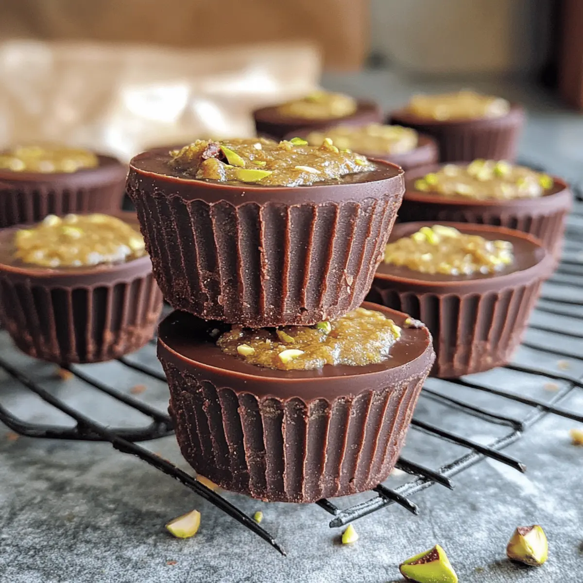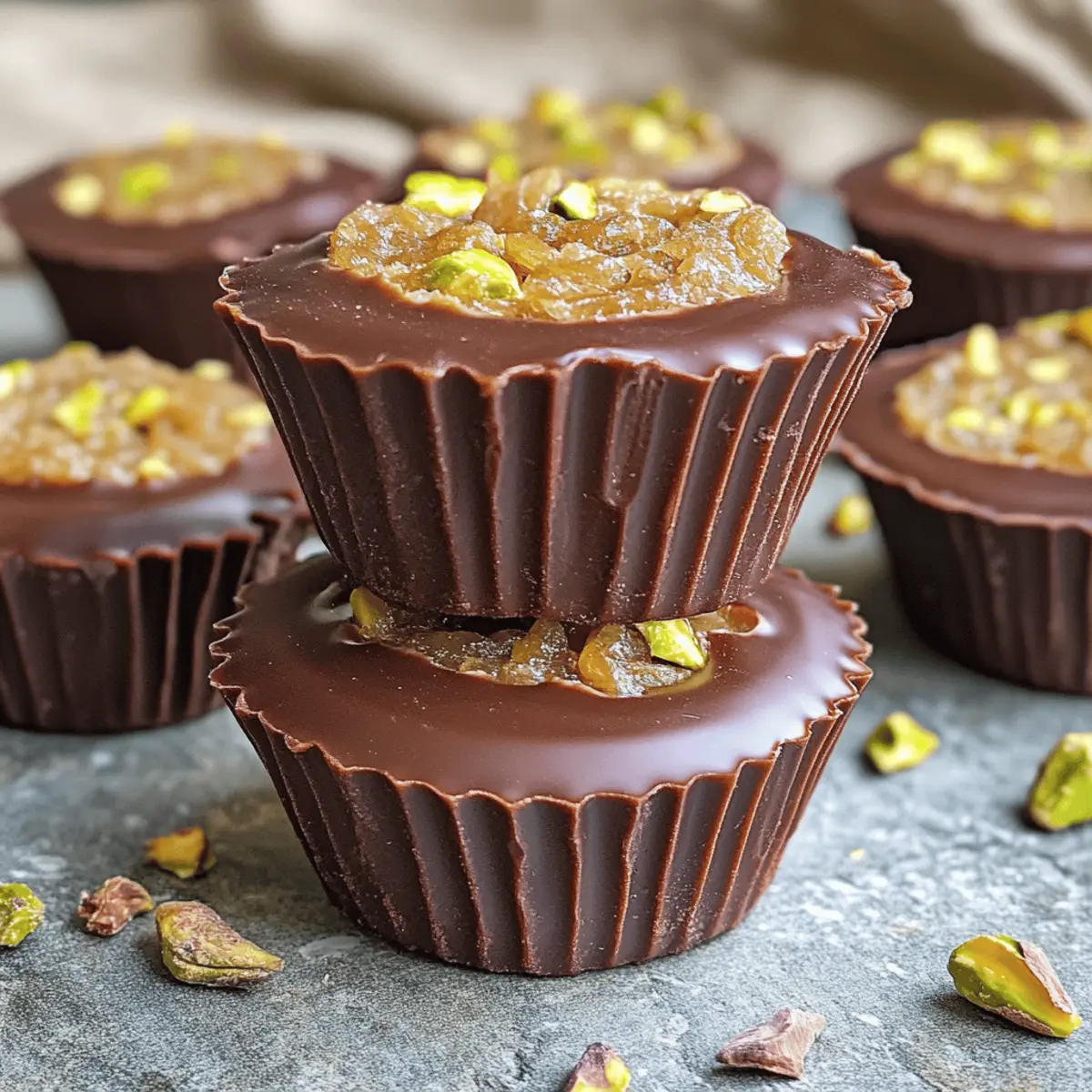 Hast du schon einmal die magische Kombination aus schokoladiger Süße und knusprigem Genuss entdeckt? Die Easy Dubai Chocolate Cups sind nicht nur eine Augenweide, sondern auch ein einfaches Rezept, das mit nur vier Zutaten auskommt! Diese leckeren Desserttassen sind perfekt, um schnell einen süßen Zahn zu stillen und dabei sind sie auch glutenfrei. Die Kombination aus cremiger Pistazienbutter und dem knackigen Innenleben verleiht jedem Bissen eine spannende Textur. Wenn du also auf der Suche nach einer schnellen und beeindruckenden Dessertidee bist, die sowohl Gaumenfreuden als auch den Wow-Faktor bietet, wirst du diese köstlichen Schokoladenbecher lieben. Bist du bereit, die Geheimnisse dieser süßen Leckerei zu lüften? Warum wirst du diese Schokoladenbecher lieben? Einfachheit in Überfluss: Dieses Rezept erfordert nur vier Zutaten und ist damit ideal für alle, die schnell ein köstliches Dessert zubereiten möchten. Vielfältige Anpassungsfähigkeiten: Du kannst die Füllung nach deinem Geschmack variieren, sei es mit Nüssen oder Obst – deine Kreativität kennt keine Grenzen! Glutenfrei und leicht: Jeder Becher hat nur etwa 107 Kalorien, sodass du ohne schlechtes Gewissen genießen kannst. Beeindruckende Präsentation: Die Kombination aus schokoladigem Äußeren und knusprigem Inneren wirkt auf jedem Tisch wie ein Gourmetgenuss. Schnelle Zubereitung: In kürzester Zeit kannst du deine Gäste mit diesen beeindruckenden Süßigkeiten begeistern. Verwandle eine einfache Nachspeise in ein unvergessliches Erlebnis – perfekt für jede Gelegenheit! Einfache Dubai Schokoladenbecher Zutaten Für die Füllung • Pistazienbutter – Verleiht eine cremige Textur und authentischen Pistaziengeschmack; kann durch Mandel- oder Cashewbutter ersetzt werden. • Kataifi – Sorgt für Knusprigkeit und interessante Textur; bis goldbraun rösten für optimalen Geschmack oder durch fein gehackte Nüsse ersetzen. Für die Schokoladenschicht • Butter – Wird zum Rösten des Kataifi verwendet und steigert die Reichhaltigkeit; kann durch Kokosöl für eine milchfreie Version ersetzt werden. • Semi-Süße Schokolade – Bildet die schokoladige äußere Schicht; Schokoladenstückchen oder gehackte Tafeln funktionieren gut, für einen intensiveren Geschmack kann dunkle Schokolade genutzt werden. Schritt-für-Schritt-Anleitung für Einfache Dubai Schokoladenbecher Schritt 1: Kataifi vorbereiten Butter in einer Pfanne bei mittlerer Hitze schmelzen, bis sie vollständig flüssig ist. Füge das Kataifi hinzu und röste es unter ständigem Rühren, bis es goldbraun und knusprig ist, etwa 5-7 Minuten. Achte darauf, dass es nicht verbrennt, da dies den Geschmack beeinträchtigen kann. Nimm die Pfanne vom Herd und lasse das geröstete Kataifi etwas abkühlen. Schritt 2: Schokolade schmelzen Gib die semi-süße Schokolade in eine mikrowellengeeignete Schüssel. Erhitze sie in der Mikrowelle für 30 Sekunden und rühre gut durch. Setze den Vorgang in 20-30 Sekunden-Schritten fort, bis die Schokolade vollständig geschmolzen und glatt ist. Achte darauf, dass keine Stückchen mehr zu sehen sind, um eine gleichmäßige Schokoladenschicht zu gewährleisten. Schritt 3: Becher zusammensetzen Nehme deine Silikonbecher und beginne mit einer Schicht geschmolzener Schokolade am Boden. Füge dann eine Schicht des gerösteten Kataifi hinzu, gefolgt von einer weiteren Schicht geschmolzener Schokolade, bis die Becher gefüllt sind. Achte darauf, dass das Kataifi gleichmäßig verteilt ist, um eine harmonische Textur in den Einfache Dubai Schokoladenbechern zu erreichen. Schritt 4: Kühlen Stelle die gefüllten Silikonbecher in den Kühlschrank und lasse sie für mindestens eine Stunde ruhen. Dies gibt der Schokolade Zeit, fest zu werden und sorgt dafür, dass sich die Schichten gut verbinden. Überprüfe nach einer Stunde, ob die Schokolade fest ist, bevor du mit dem nächsten Schritt fortfährst. So bereitest du die Einfache Dubai Schokoladenbecher im Voraus vor Die Einfachen Dubai Schokoladenbecher sind perfekt für vielbeschäftigte Haushaltsköche, da du die einzelnen Komponenten im Voraus vorbereiten kannst. Du kannst das geröstete Kataifi bis zu 3 Tage im Voraus zubereiten und in einem luftdichten Behälter im Kühlschrank aufbewahren; so bleibt es knusprig und geschmackvoll. Zudem kannst du die geschmolzene Schokolade bis zu 24 Stunden vorher vorbereiten und in einer verschlossenen Schüssel bei Raumtemperatur lagern, damit sie nicht aushärtet. Wenn du bereit bist, die Becher zu füllen, schichte einfach die vorbereitete Schokolade und das geröstete Kataifi in die Silikonbecher, stelle sie dann für mindestens eine Stunde in den Kühlschrank zum Aushärten. Vergiss nicht, die Schokolade gleichmäßig zu schichten, damit der Genuss ebenso köstlich bleibt! Lagerungstipps für Einfache Dubai Schokoladenbecher Raumtemperatur: Diese Schokoladenbecher sollten nicht bei Raumtemperatur aufbewahrt werden, da das Schokoladenäsuer weich werden kann. Kühlschrank: Bewahre die Becher in einem luftdichten Behälter im Kühlschrank auf, wo sie bis zu 2 Wochen frisch bleiben. Gefrierschrank: Du kannst die Schokoladenbecher bis zu einem Monat einfrieren. Stelle sicher, dass sie gut verpackt sind, um Frostschäden zu vermeiden. Auftauen: Zum Servieren gefrorene Becher bei Raumtemperatur für etwa 10-15 Minuten stehen lassen, damit sie leicht weich werden und besser schmecken. Expert Tips für die besten Dubai Schokoladenbecher Kataifi richtig rösten: Achte darauf, das Kataifi gleichmäßig zu rösten, um den besten Geschmack zu erzielen. Häufiges Rühren verhindert ein Anbrennen. Optimale Schokolade: Verwende hochwertige semi-süße Schokolade für den besten Geschmack. Dunkle Schokolade hat einen intensiveren Geschmack und passt gut zu den Zutaten. Achtung beim Schichten: Fülle die Schokolade und das Kataifi gleichmäßig in die Becher, um eine harmonische Textur in den Dubai Schokoladenbechern zu garantieren. Kühlen n