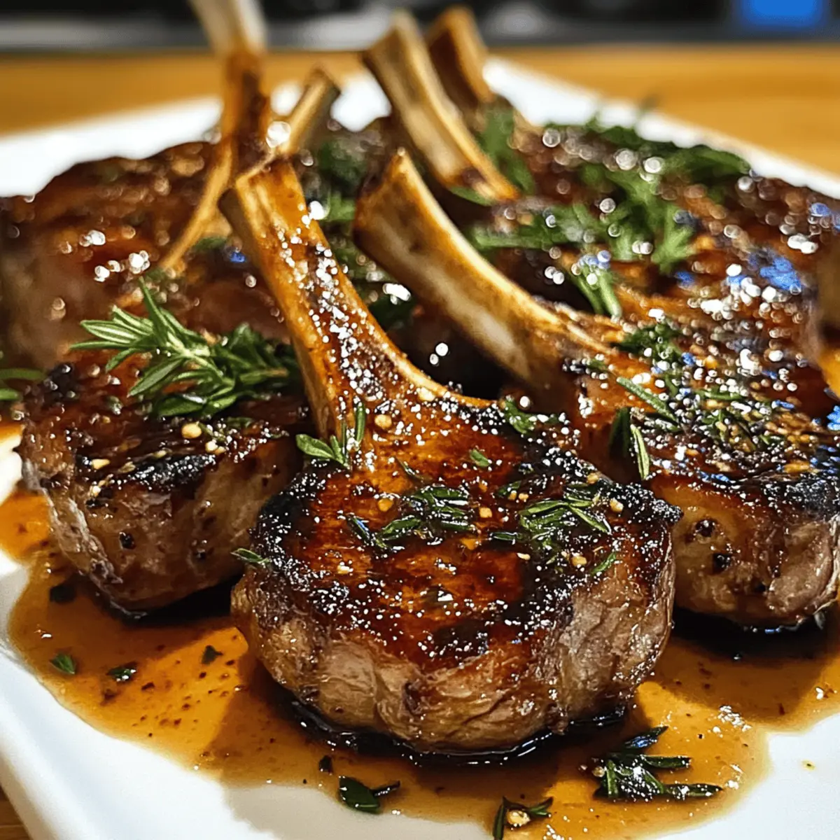 Nehme die Lammkoteletts aus der Pfanne und lege sie auf einen Teller. Mit der restlichen Glasur aus der Pfanne beträufeln und nach Belieben mit frisch gehackter Petersilie garnieren. Serviere die Honig-Knoblauch Lammkoteletts sofort, um die volle Geschmacksintensität zu genießen.