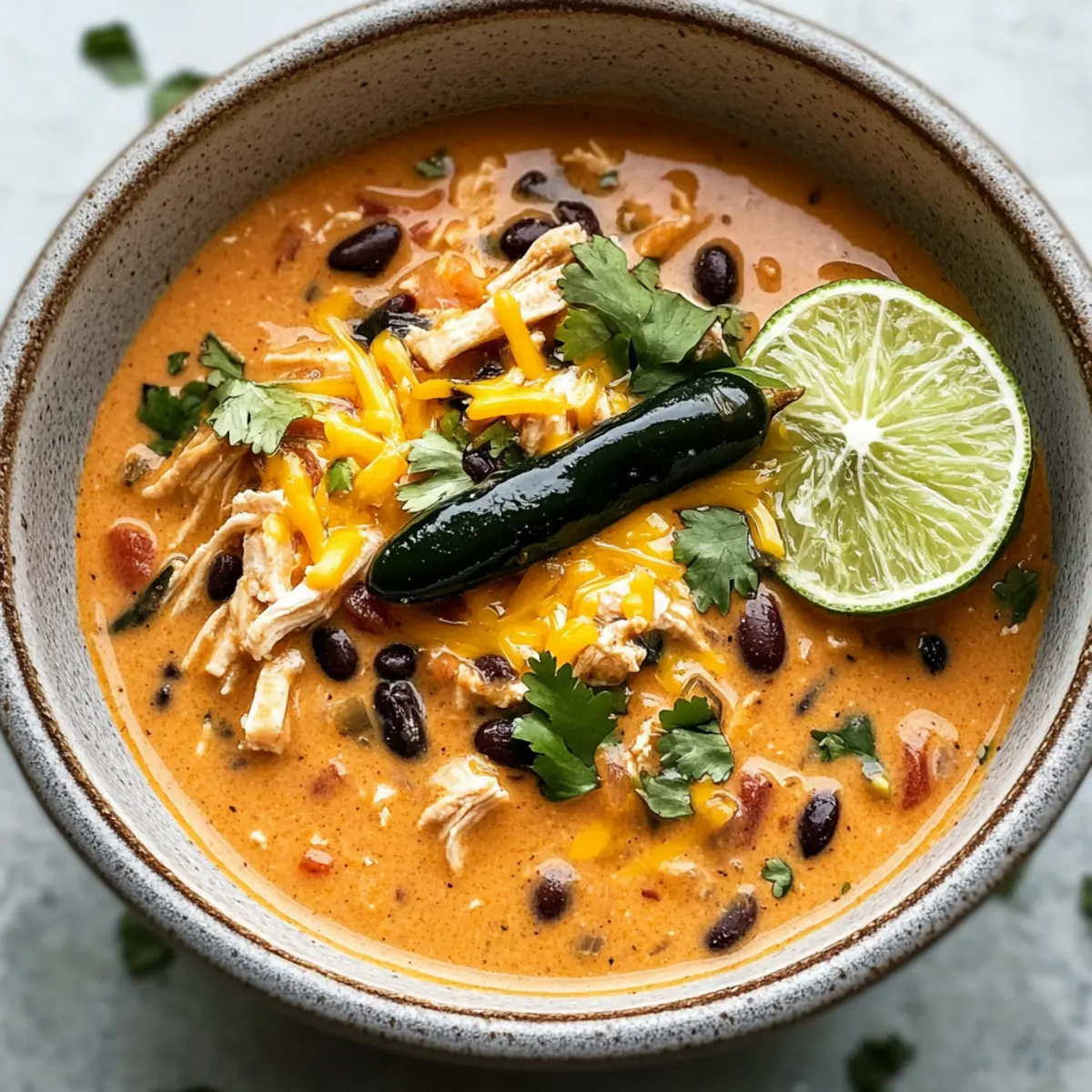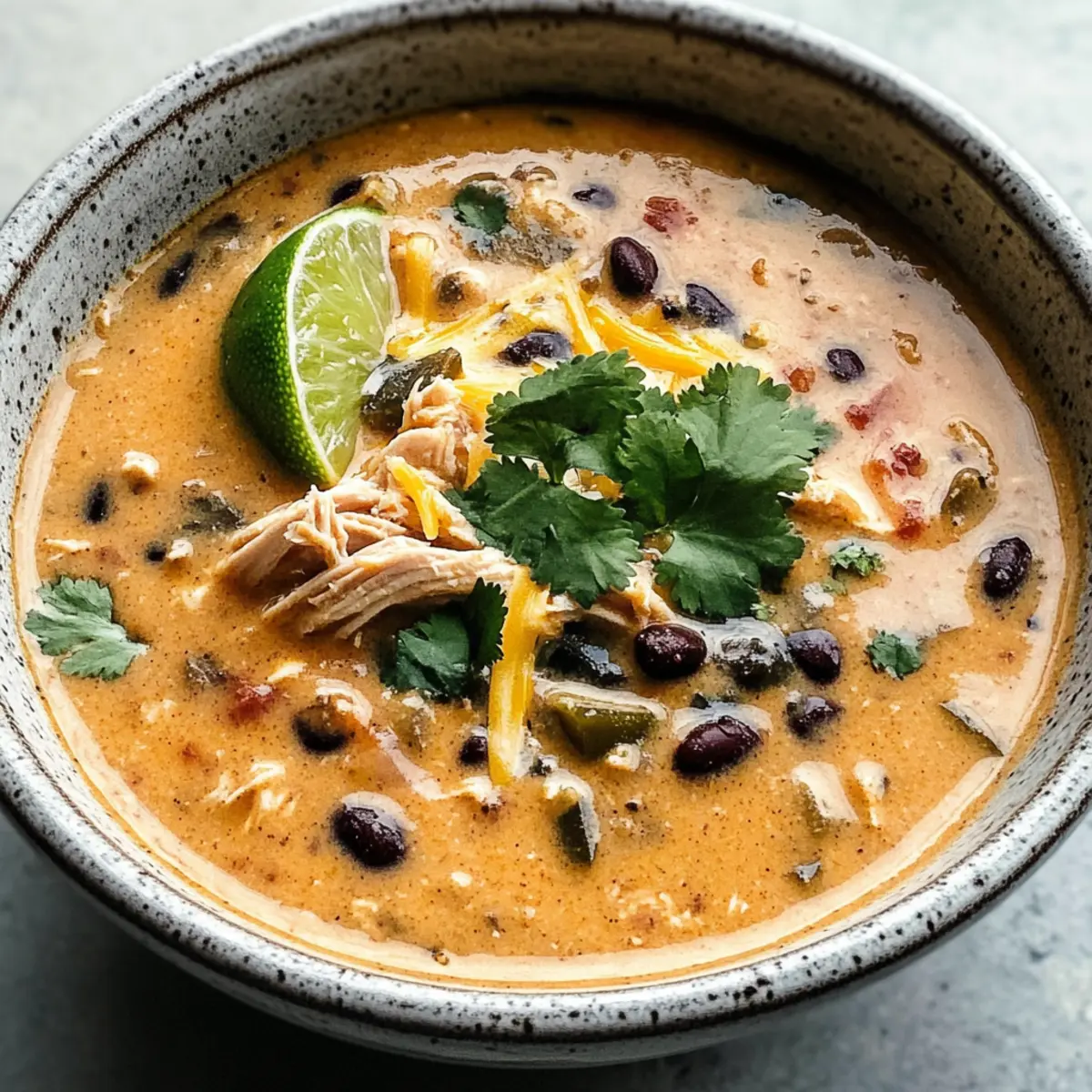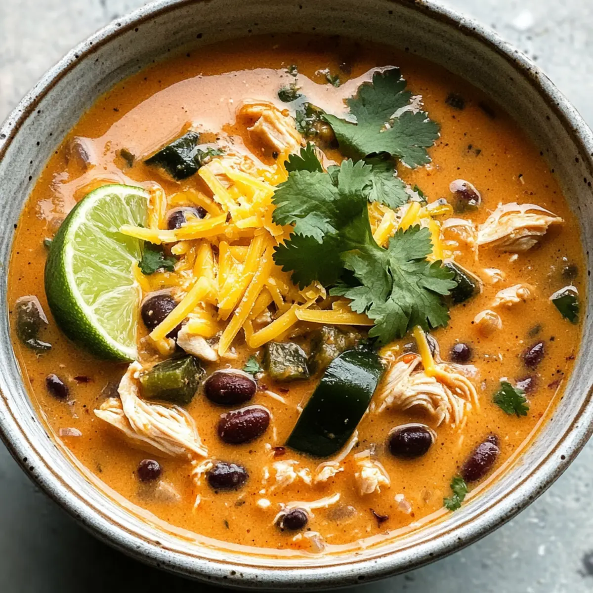 Eine köstliche, cremige Suppe mit zartem Hähnchen, Poblano-Paprika und nahrhaften schwarzen Bohnen, ideal für hektische Wochentage.