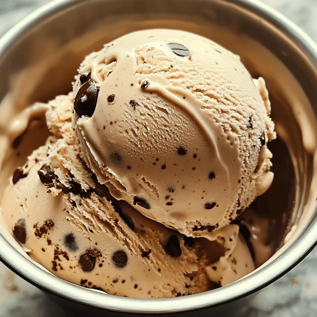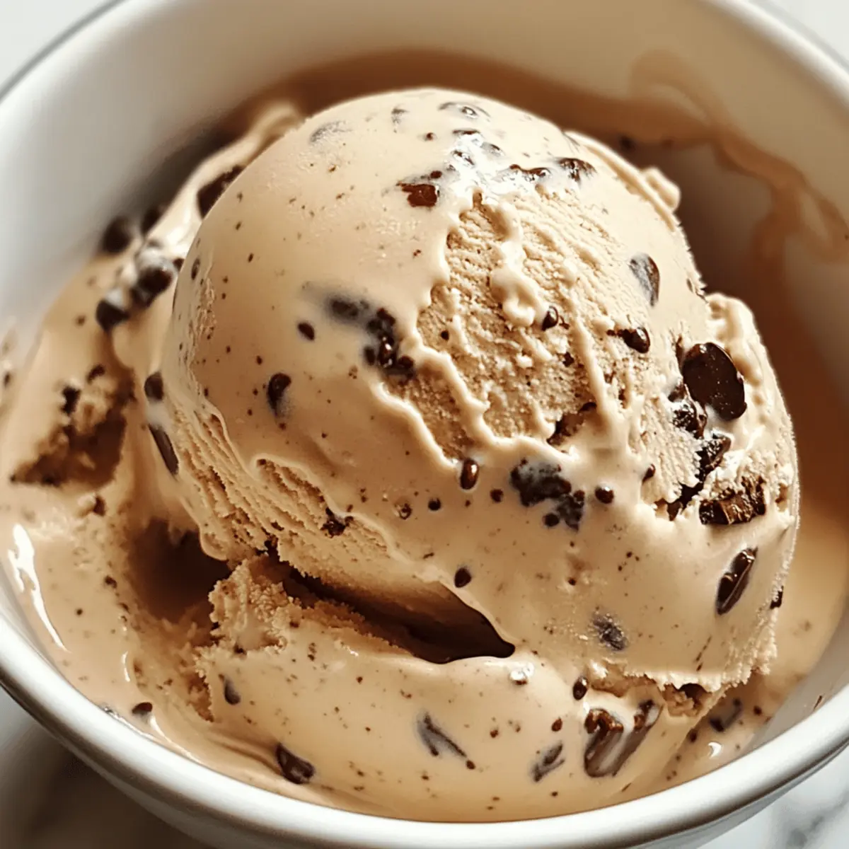 Der Duft von frisch gebrühtem Kaffee und schmelzenden Schokoladenstückchen erinnert mich an die perfektionierten Momente des Genusses – genau das bietet mein Rezept für das einfache Kaffee-Schokoladeneis. In nur wenigen Schritten kreieren wir eine cremige, hausgemachte Köstlichkeit, die nicht nur für heiße Sommertage perfekt ist, sondern auch den Drang nach ungesundem Fast Food vertreibt. Mit der Möglichkeit, dieses Eis sogar in einer milchfreien Variante zuzubereiten, ist es ein Genuss, den einfach jede*r genießen kann. Und das Beste daran? Es ist so einfach, dass selbst Kochanfänger Freude daran haben werden! Welche kreative Mischung würdet ihr heute ausprobieren? Warum wirst du dieses Rezept lieben? Einfachheit: Der Prozess ist unkompliziert und erfordert nur wenige Schritte, die selbst Neulinge in der Küche meistern können. Intensiver Geschmack: Die Kombination aus reichhaltigem Kaffee und schokoladigen Mini-Stückchen sorgt für ein unvergessliches Geschmackserlebnis. Vielseitigkeit: Du kannst das Rezept leicht anpassen, indem du verschiedene Zutaten wie Kokosmilch für eine milchfreie Variante oder andere Schokoladensorten verwendest. Perfekte Erfrischung: An warmen Tagen bringt diese cremige Köstlichkeit den ultimativen Genuss – ideal, um den Drang nach Fast Food zu stillen. Zeitersparnis: Mit nur wenigen Zutaten und einer kurzen Zubereitungszeit kannst du im Handumdrehen eine köstliche Eiscreme zaubern. Begeisterung bei Freunden: Sicher dir die Herzen deiner Gäste – dieses Eis ist ein Hit auf jeder Sommerparty! Probiere auch unsere anderen leckeren Rezepte für einen vollendeten kulinarischen Genuss! Kaffeeschokoladenstückchen-Eiszutaten Für die Basis • Schlagsahne – sorgt für eine reichhaltige und cremige Textur. Substitution: Halbe-Halbe für eine leichtere Option, aber die Textur wird weniger cremig. • Vollmilch – fügt dem Eis eine zusätzliche Reichhaltigkeit hinzu. Substitution: Kokosmilch für eine milchfreie Alternative; könnte einen leichten Kokosgeschmack hinterlassen. • Instant-Kaffeepulver – sorgt für den vollen Kaffeegeschmack; die Menge kann je nach gewünschter Intensität angepasst werden. Substitution: Stark gebrühter, abgekühlter Kaffee, falls kein Instant-Kaffee verfügbar ist. • Mini-Schokoladenstückchen – garantieren eine gleichmäßige Verteilung der Schokolade ohne zu dominieren. Substitution: Normale Schokoladenstückchen oder gehackte Schokoladenriegel; Zartbitterschokolade kann den Geschmack verstärken. • Zucker – süßt die Mischung. Hinweis: Um die Süße zu reduzieren, verringere die Menge um 1/4 Tasse. • Vanilleextrakt – verstärkt die Geschmacksvielfalt. Für besondere Gestaltung • Toppings – verfeinere das Eis mit Klecksen von Schlagsahne oder einem zusätzlichen Schokoladensirup. Schritt-für-Schritt-Anleitung für einfache Kaffee-Schokoladenstückchen-Eiscreme Step 1: Zucker und Kaffeepulver vermengen In einer mittelgroßen Schüssel vermischst du den Zucker und das Instant-Kaffeepulver sorgfältig, bis sie gleichmäßig verteilt sind. Diese Basis sorgt für den intensiven Kaffeegeschmack der Kaffee-Schokoladenstückchen-Eiscreme. Achte darauf, dass keine Klumpen entstehen, um eine perfekte Konsistenz zu gewährleisten. Step 2: Milch hinzufügen Erhitze die Vollmilch in einem Topf, bis sie warm, aber nicht kochend ist. Gieße die heiße Milch langsam in die Schüssel mit dem Zucker-Kaffeegemisch und rühre kräftig um, bis alles gut aufgelöst ist. Lass die Mischung anschließend auf Raumtemperatur abkühlen, um die perfekte Grundlage für dein Eis zu schaffen. Step 3: Sahne und Vanille unterrühren Sobald die Mischung abgekühlt ist, füge die Schlagsahne und den Vanilleextrakt hinzu. Rühre alles gut um, bis die Zutaten vollständig miteinander verbunden sind. Diese Kombination verleiht der einfachen Kaffee-Schokoladenstückchen-Eiscreme eine cremige Textur und einen exquisiten Geschmack, der das Naschen während des Sommers zu einem echten Genuss macht. Step 4: Kühlen im Kühlschrank Decke die Schüssel mit Frischhaltefolie ab und stelle sie für mindestens zwei Stunden in den Kühlschrank. Das Kühlen sorgt dafür, dass die Aromen sich harmonisch entfalten können und die Mischung ideal vorbereitet ist, um in die Eismaschine gefüllt zu werden. Step 5: In die Eismaschine geben Nach der Kühlzeit gießt du die kalte Mischung in die Eismaschine und churnst sie gemäß den Herstelleranweisungen für etwa 20 bis 25 Minuten. Achte darauf, dass die Eiscreme die Konsistenz eines soft-serve Eis erreicht; sie sollte cremig und leicht luftig sein und duftet schon verführerisch nach Kaffee. Step 6: Schokoladenstückchen hinzufügen In den letzten fünf Minuten des Churnens füge die Mini-Schokoladenstückchen hinzu. Diese kleinen Leckerbissen verteilen sich gleichmäßig in der Kaffee-Schokoladenstückchen-Eiscreme und sorgen für köstliche Überraschungen bei jedem Löffel. Rühre sie sanft ein, um sicherzustellen, dass sie nicht agglomerieren. Step 7: In den Gefrierschrank geben Fülle die fertige Mischung in einen gefrierfesten Behälter und verschließe ihn gut. Stelle sicher, dass kein Luft entweichen kann, um die Frische zu bewahren. Lasse das Eis für mindestens vier Stunden im Gefrierschrank, damit es die perfekte Konsistenz erhält und bereit ist, genossen zu werden. Step 8: Servieren und genießen Nach der Gefrierzeit kannst du die Kaffeeschokoladenstückchen-Eiscreme mit einem Eislöffel aus dem Behälter schöpfen. Wenn das Eis zu hart ist, lasse es einige Minuten bei Raumtemperatur stehen, um das Portionieren zu erleichtern. Serve die Eiscreme in Schüsseln oder Waffeln und genieße deinen selbstgemachten Genuss! Tipps für das beste Kaffee-Schokoladenstückchen-Eis Kaffee-Intensität anpassen: Verändere die Menge des Instant-Kaffeepulvers je nach persönlichem Geschmack, um das gewünschte Aroma in deinem Eis zu erreichen. Einfache Substitution: Wenn du keine Sahne verwenden mö
