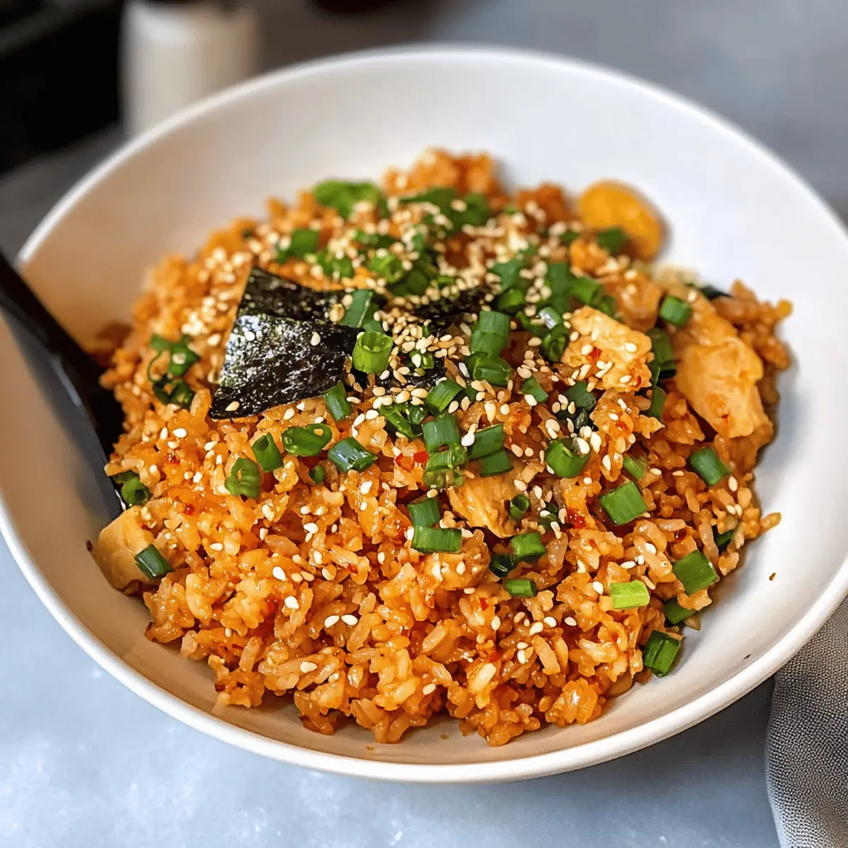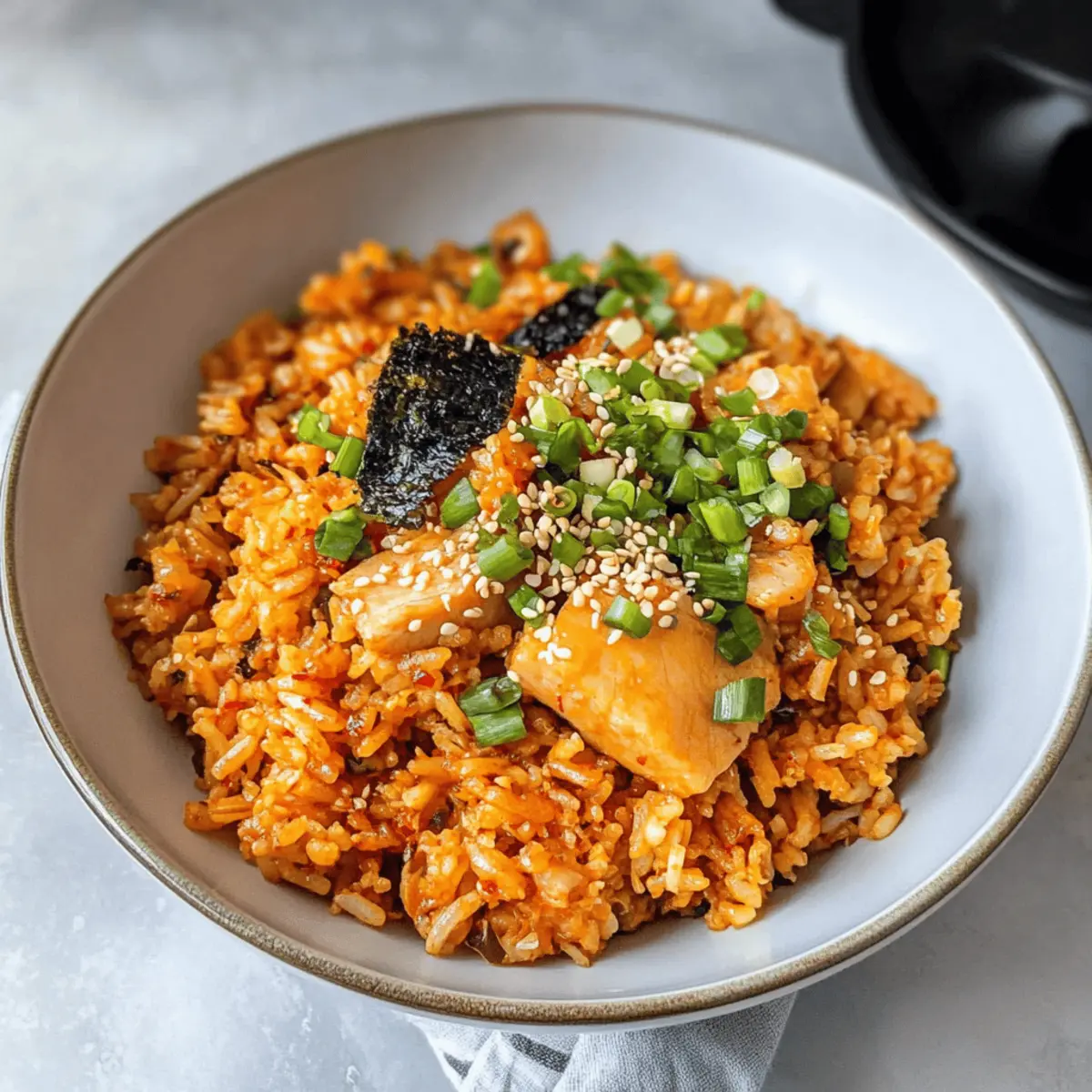 Es gibt Momente in der Küche, in denen ein einfaches Gericht alle Erwartungen übertrifft. So erging es mir, als ich das koreanische Tuna Mayo Rice entdeckte – eine köstliche Kombination aus cremigem Thunfisch und fluffigem Reis, die in nur 30 Minuten zubereitet werden kann. Diese preiswerte Mahlzeit ist nicht nur ein schnelles Mittagessen für hektische Tage, sondern auch unglaublich anpassbar, sodass Sie mit verschiedenen Toppings Ihrer Kreativität freien Lauf lassen können. Egal, ob Sie eine scharfe Variante mit Kimchi oder eine frische Salat-Version ausprobieren möchten, jedes Mal bietet dieses Gericht eine umwerfende Geschmacksexplosion. Neugierig, wie einfach es ist, dieses koreanische Comfort Food zu machen? Dann lassen Sie uns gemeinsam in die Zubereitung eintauchen! Warum lieben alle dieses Rezept? Einfachheit pur: Die Zubereitung erfordert nur grundlegende Kochfähigkeiten und weniger als 30 Minuten. Köstlicher Geschmack: Diese perfekt abgestimmte Kombination aus cremigem Thunfisch und fluffigem Reis sorgt für eine Geschmacksexplosion in jedem Bissen. Vielseitig anpassbar: Mit Toppings wie Oliven, Kimchi oder frischen Kräutern können Sie Ihrer Kreativität freien Lauf lassen und das Gericht anpassen. Günstige Zutaten: Ideal für das Budget, da alle notwendigen Zutaten leicht erhältlich und erschwinglich sind. Tolle Präsentation: Die bunten Schichten und die ansprechende Anrichtung garantieren, dass Ihr Gericht nicht nur schmeckt, sondern auch gut aussieht, perfekt für Gäste oder ein einfaches Abendessen. Wenn Sie weitere köstliche Ideen suchen, sind Schokoladenmousse Brownies Rezept oder Kirschen Schokoladen Brownies großartige Ergänzungen für Ihr Dessertangebot! Koreanischer Thunfisch-Mayo-Reis Zutaten Für den Reis • Kurzkornreis – Er bildet die ideale Basis für die Textur und den Geschmack; Calrose-Reis ist besonders authentisch. Für das Topping • Eier – Sie fügen eine cremige Note hinzu; können als Rührei zubereitet oder in dünne Streifen geschnitten werden. • Dosen-Thunfisch (2 Dosen, je 113 g) – Liefert wertvolles Protein und umami; wählen Sie Skipjack oder Gelbfieber für einen geringeren Quecksilbergehalt. • Mayonnaise – Sorgt für die cremige Konsistenz; versuchen Sie japanische Mayonnaise für eine süßere Note. • Frühlingszwiebeln (2) – Bringen Frische und Schärfe ins Spiel; sie lockern die Schwere des Gerichts auf. • Getrockneter Seetang (1 Blatt) – Fügt Umami und eine knusprige Textur hinzu; wählen Sie ungewürzte Varianten. Für die Sauce • Braune Sauce – Eine Mischung aus Sojasauce, Reisessig und Honig für zusätzlichen Geschmack; nach Belieben mischen, um die ideale Konsistenz zu erreichen. Die Kombination dieser Zutaten sorgt für ein schnelles und köstliches koreanisches Lieblingsgericht, das perfekt ist, um die Familienzeit zu bereichern oder eine gesunde Alternative zu Fast Food zu genießen! Schritt-für-Schritt-Anleitung für Koreanischer Thunfisch-Mayo-Reis ** Schritt 1: Reis kochen** Kochen Sie 1 Tasse Kurzkornreis in einem Reiskocher oder auf dem Herd nach Anleitung. Verwenden Sie etwa 2 Tassen Wasser für eine fluffige Konsistenz, die perfekt als Basis für Ihren Koreanischen Thunfisch-Mayo-Reis dient. Lassen Sie den Reis nach dem Kochen fünf Minuten ruhen, damit er die gewünschte Textur erreicht. ** Schritt 2: Eier vorbereiten** Während der Reis kocht, bereiten Sie die Eier vor. Schlagen Sie 2 Eier in einer Schüssel und rühren Sie sie gut durch. Erhitzen Sie eine beschichtete Pfanne bei mittlerer Hitze und geben Sie einen Hauch Öl hinzu. Gießen Sie die Eier hinein und rühren Sie kontinuierlich, bis sie leicht gebräunt und fluffig sind, was etwa 4-5 Minuten dauert. ** Schritt 3: Toppings schneiden** Nachdem die Eier fertig sind, schneiden Sie 2 Frühlingszwiebeln in feine Ringe und zerschneiden Sie ein Blatt getrockneten Seetang in dünne Streifen. Diese frischen Zutaten verleihen Ihrem Koreanischen Thunfisch-Mayo-Reis eine knusprige und aromatische Note. Legen Sie alles auf einen Teller zur Seite, während Sie mit den nächsten Schritten fortfahren. ** Schritt 4: Braune Sauce zubereiten** Mischen Sie in einer kleinen Schüssel 2 Esslöffel Sojasauce, 1 Esslöffel Reisessig und 1 Teelöffel Honig, bis alles gut vermengt ist. Passen Sie die Sauce nach Ihrem Geschmack an, um die perfekte Balance zwischen salzig, süß und säuerlich zu erreichen. Diese Sauce wird Ihrem Gericht zusätzlichen Geschmack verleihen und die Schichten miteinander verbinden. ** Schritt 5: Schalen anrichten** Um die Schalen zu füllen, nehmen Sie eine Portion des gekochten Reises und geben Sie ihn als Basis in eine Schüssel. Fügen Sie dann das Rührei hinzu, gefolgt von zwei gut abgetropften Dosen Thunfisch. Drisieren Sie eine großzügige Menge Mayonnaise darüber und sorgen Sie für eine ansprechende Präsentation. ** Schritt 6: Mit Toppings vervollständigen** Verteilen Sie die geschnittenen Frühlingszwiebeln und die Seetangstreifen gleichmäßig über die Schalen. Diese farbenfrohen Zutaten bringen nicht nur visuelle Attraktivität, sondern auch eine erfrischende Geschmacksnote. ** Schritt 7: Servieren** Zum Schluss träufeln Sie die vorbereitete braune Sauce über den Koreanischen Thunfisch-Mayo-Reis und genießen Sie das Gericht direkt nach der Zubereitung. Der Kontrast zwischen cremigem Thunfisch und fluffigem Reis macht dieses einfache Rezept zum perfekten schnellen Abendessen! Aufbewahrungstipps für Koreanischen Thunfisch-Mayo-Reis Zimmertemperatur:: Am besten sofort verzehren, um die frischesten Aromen zu genießen; jedoch kann der Reis trocknen. Kühlschrank:: Reste können bis zu 3 Tage im Kühlschrank aufbewahrt werden – bewahre ihn in einem luftdichten Behälter auf, um den Geschmack zu erhalten. Gefrierer:: Koreanischer Thunfisch-Mayo-Reis eignet sich nicht gut zum Einfrieren, da die Textur und der Geschmack darunter leiden können. Wiederaufwärmen:: Erhitze im Mikrowellenofen, bis er vol