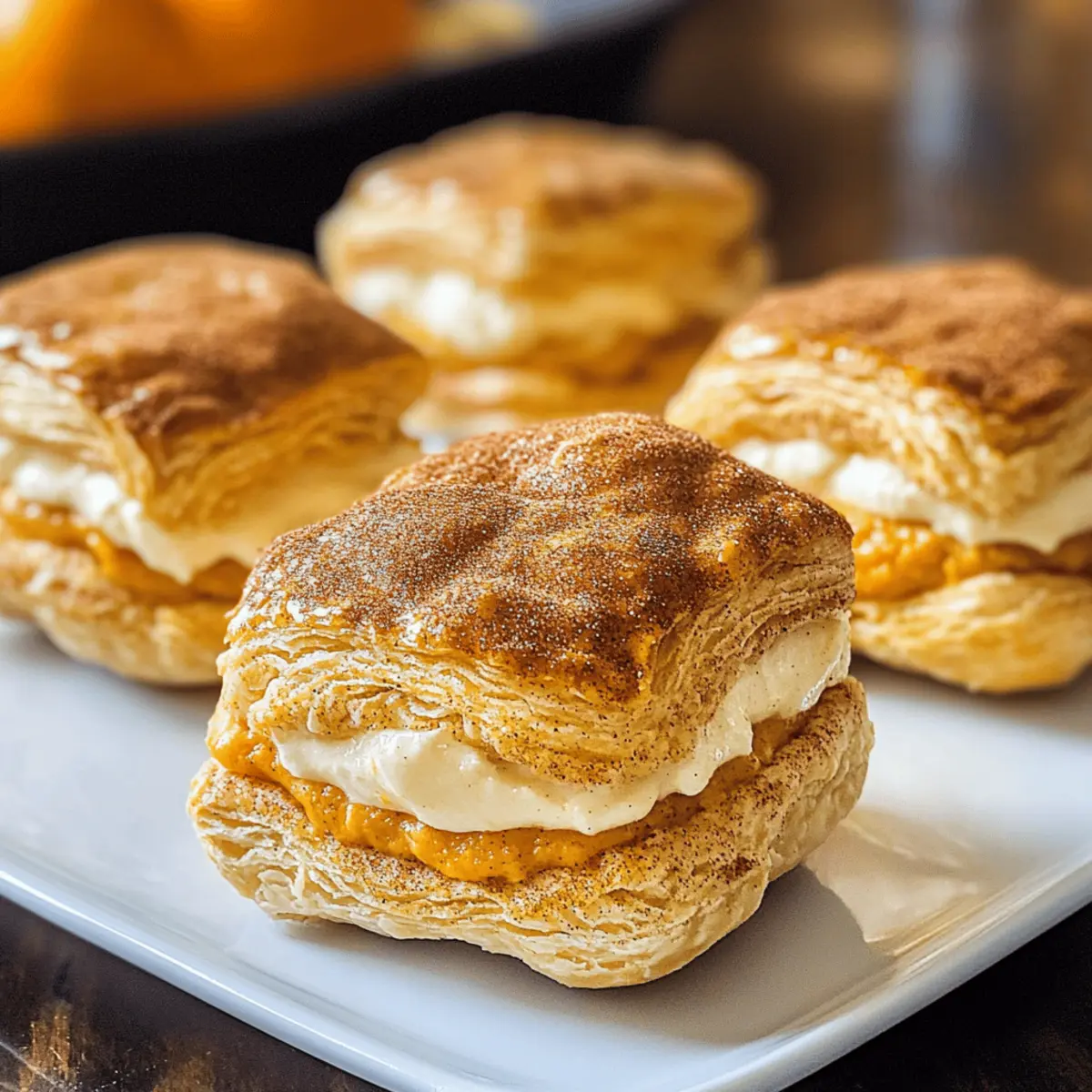Gerade als der Herbst in voller Blüte steht, spüre ich das Bedürfnis nach gemütlichem Komfort und herzhaften Süßigkeiten. Diese Easy Pumpkin Cream Puffs vereinen die Aromen der Saison in einem unwiderstehlichen Dessert. Die zarten, luftigen Gebäckstücke, schnell aus Blätterteig zubereitet, sind die perfekte Wahl für ein entspanntes Thanksgiving oder jedes herzliche Beisammensein im Herbst. Der cremige, mit Zimt verfeinerte Füllung bringt eine heimelige Wärme, die sowohl das Herz als auch den Gaumen erfreut. Und das Beste daran? Sie sind kinderleicht zuzubereiten und kommen ganz ohne aufwendige Choux-Technik aus. Wer kann da schon widerstehen? Ich kann es kaum erwarten, mehr darüber zu teilen, wie ihr diese köstlichen kleinen Kunstwerke selber zaubern könnt! Warum solltest du diese Profiteroles lieben? Einfachheit, Die Zubereitung ist unkompliziert und erfordert keine ausgeklügelten Backkünste. Ideal für Anfänger und erfahrene Bäcker gleichermaßen. Saisonale Aromen, Die Kombination aus Kürbis und Zimt zaubert den perfekten herbstlichen Geschmack auf den Tisch – ein Genuss bei jedem Biss! Vielseitigkeit, Du kannst die Füllung nach Belieben variieren – von süßem Kürbis bis hin zu interessanten Alternativen wie Apfelmus. Perfekte Textur, Die Kombination aus knusprigem Gebäck und cremiger Füllung sorgt für ein einzigartiges Geschmackserlebnis. Beeindruckend einfach, Diese kleinen Leckereien werden deine Gäste begeistern, ohne dass du Stunden in der Küche stecken musst. Wenn du mehr über einfache und köstliche Desserts erfahren möchtest, schau dir auch meine einfachen Dessertrezepte an! Einfache Kürbiscreme-Profiterole-Zutaten Für den Teig Blätterteig – 1 Blatt, aufgetaut, dient als Struktur des Desserts; rolle es leicht aus für eine gleichmäßige Dicke. Für die Füllung Schlagsahne – 2 Tassen, kalt, sorgt für eine reichhaltige, cremige Füllung; kann durch pflanzliches Schlagzeug ersetzt werden für eine leichtere Option. Puderzucker – 1/4 Tasse, sorgt für die perfekte Süße in der Schlagsahnefüllung. Zimt – 1 Teelöffel, verleiht der Mischung eine warme Gewürznote. Kürbispüree – 1 Tasse, der Hauptgeschmacksträger; bietet Feuchtigkeit und einen saisonalen Twist – ideal für diese einfache Kürbiscreme-Profiterole. Ei – 1, hilft dabei, das Gebäck goldbraun zu machen; kann durch ein Flachs-Ei für eine vegane Option ersetzt werden. Milch – 2 Esslöffel, wird für die Eistreiche verwendet, die Farbe hinzufügt. Zimt-Zucker – 2 Esslöffel, auf den Teig gestreut, sorgt für zusätzlichen Geschmack und Süße. Schritt-für-Schritt-Anleitung für Einfache Kürbiscreme-Profiteroles Step 1: Ofen vorheizen Heize den Ofen auf 190°C (375°F) vor und lege ein Backblech mit Backpapier aus. Dies sorgt dafür, dass die Einfache Kürbiscreme-Profiteroles gleichmäßig garen und nicht ankleben. Achte auf ein gut strukturiertes Backblech, um die perfekte Form der Gebäckstücke zu gewährleisten. Step 2: Blätterteig vorbereiten Rolle den aufgetauten Blätterteig leicht aus, um eine gleichmäßige Dicke zu erreichen. Schneide den Teig in 6 gleich große Rechtecke. Diese werden die Basis für deine köstlichen Kürbiscreme-Profiteroles bilden. Achte darauf, dass die Teile nicht zu dick sind, damit sie beim Backen schön aufgehen. Step 3: Eistreiche auftragen Vermenge das Ei und die Milch in einer kleinen Schüssel. Mit einem Pinsel trägst du die Mischung gleichmäßig auf die Oberflächen der Blätterteig-Rechtecke auf. Diese Eistreiche sorgt für eine schöne goldene Farbe und Glanz, wenn die Gebäckstücke gebacken werden. Step 4: Zimt-Zucker bestreuen Bestreue die mit Eistreiche versehenen Teigrechtecke großzügig mit dem Zimt-Zucker. Diese Mischung gibt den Einfache Kürbiscreme-Profiteroles eine köstliche süße Note und einen zusätzlichen Kicks von Zimtgeschmack, der perfekt zur Kürbisfüllung passt. Step 5: Backen Schiebe das Backblech in den vorgeheizten Ofen und backe die Profiteroles für 15–20 Minuten, bis sie aufgebläht und goldbraun sind. Halte während des Backens ein Auge darauf – sie sollten eine schöne, leichte Farbe annehmen und knusprig aussehen. Nimm sie dann aus dem Ofen und lasse sie auf einem Kuchengitter abkühlen. Step 6: Füllung zubereiten Während die Profiteroles abkühlen, schlage die kalte Schlagsahne in einer Küchenmaschine mit dem Puderzucker und Zimt, bis steife Spitzen entstehen. Diese schöne, luftige Konsistenz wird die Füllung für deine Einfache Kürbiscreme-Profiteroles sein. Step 7: Kürbispüree einarbeiten Falte vorsichtig das Kürbispüree in die geschlagene Sahne. Achte darauf, nicht zu stark zu rühren, damit die Luftigkeit erhalten bleibt. Diese Mischung wird die cremige Füllung für die Profiteroles und bringt den herbstlichen Geschmack perfekt zur Geltung. Step 8: Profiteroles füllen Schneide die abgekühlten Blätterteigstücke vorsichtig in der Mitte auf. Fülle mit Hilfe eines Spritzbeutels die untere Hälfte großzügig mit der Kürbiscreme-Füllung. Setze die obere Hälfte wieder auf die gefüllten Hälften. Dies gibt jedem Bissen eine perfekte Kombination aus Gebäck und cremiger Füllung. Step 9: Kühlen und Servieren Stelle die gefüllten Einfache Kürbiscreme-Profiteroles für ein wenig Zeit in den Kühlschrank, damit sie fest werden. Dies verbessert die Textur und macht sie beim Servieren noch köstlicher. Nach dem Kühlen sind sie bereit, deine Gäste zu begeistern! Expert Tips für Einfache Kürbiscreme-Profiteroles Frische Zutaten: Achte darauf, dass die Schlagsahne und das Kürbispüree frisch sind; dies verbessert den Geschmack deiner Profiteroles erheblich. Eistreiche gleichmäßig auftragen: Um eine schöne, goldene Farbe zu erhalten, trage die Eistreiche gleichmäßig auf die Oberflächen auf. Optimale Kühlung: Kühle die gefüllten Profiteroles mindestens 30 Minuten, damit die Füllung festigt und die Textur perfekt wird. Variation der Aromen: Probiere aus, a