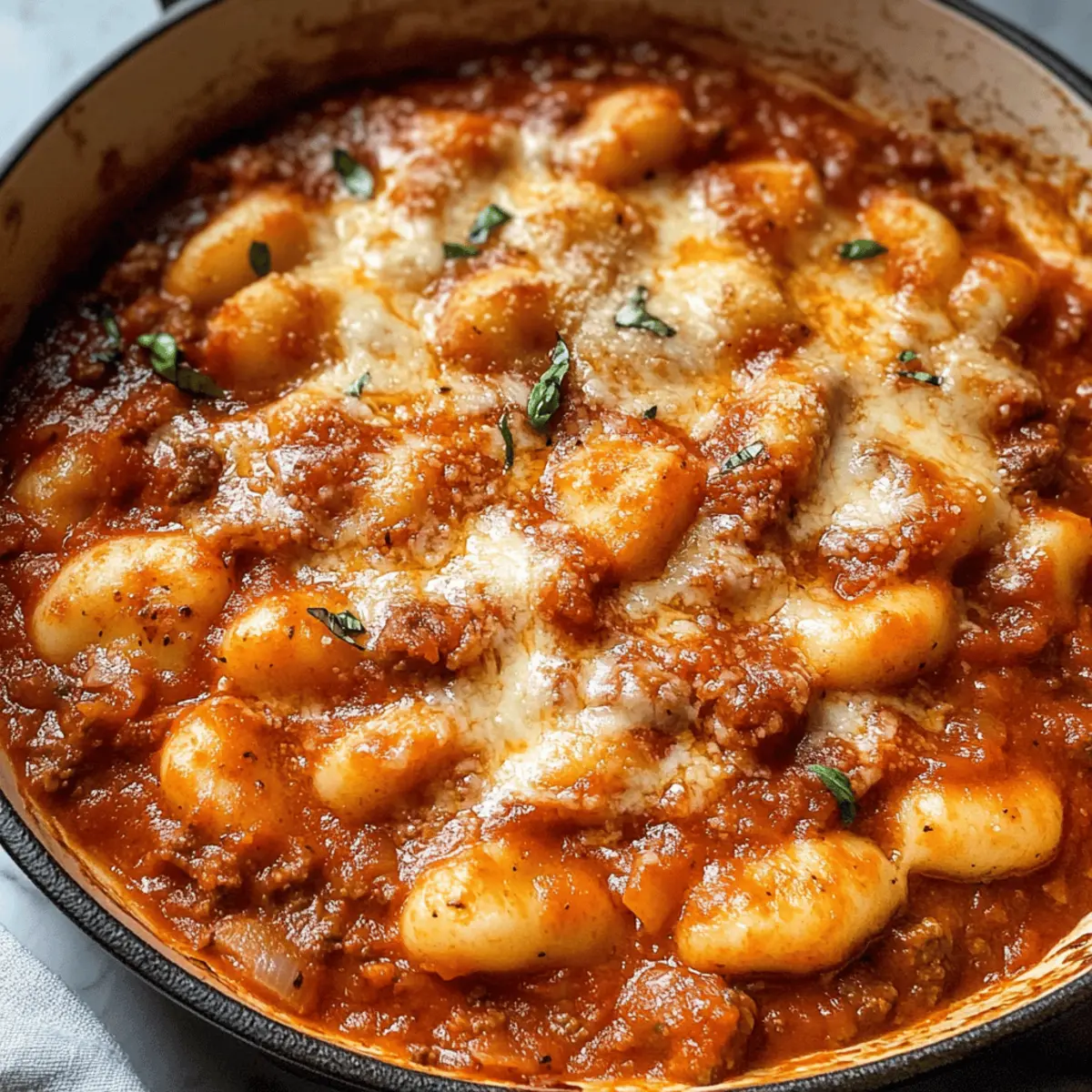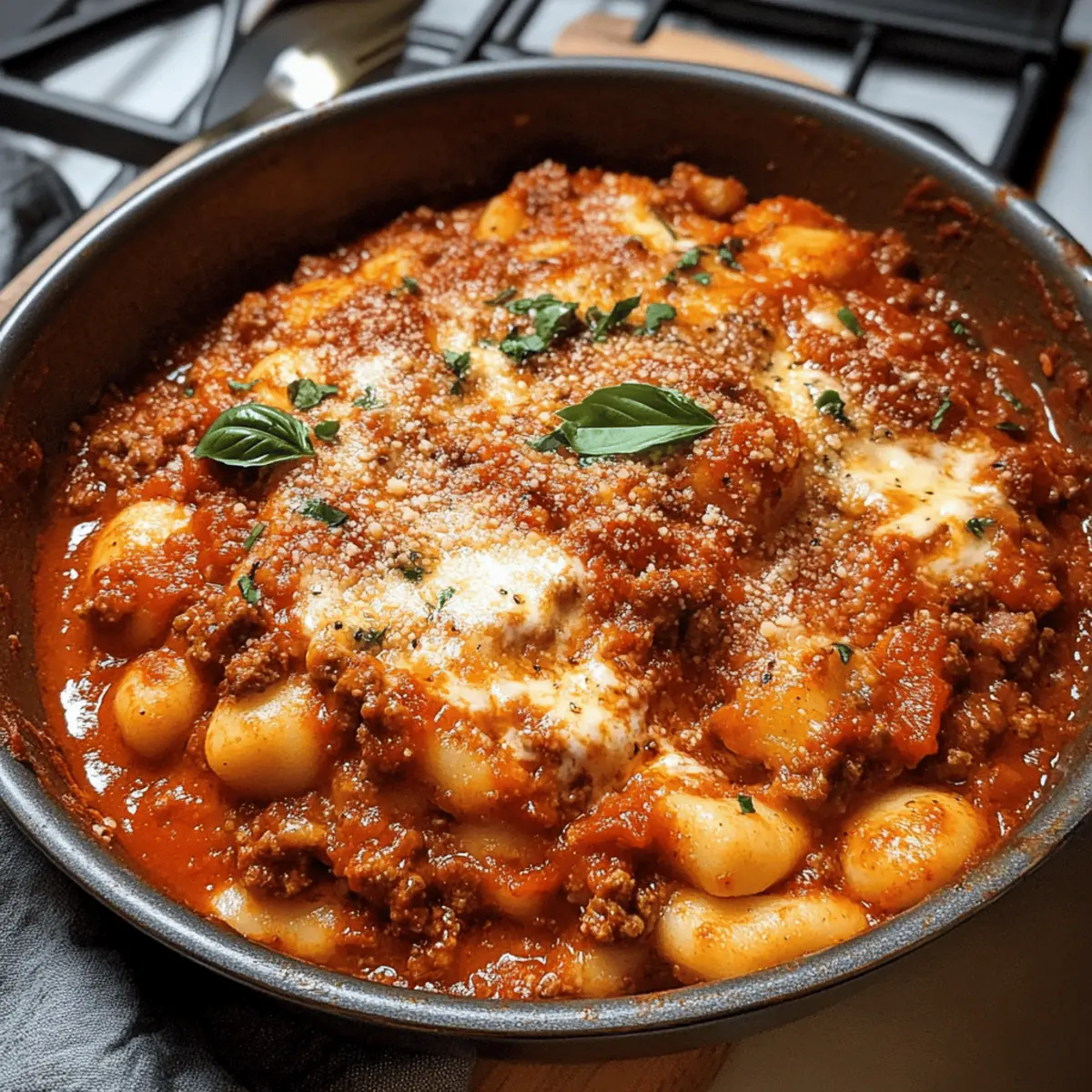 Schnell einen kulinarischen Urlaub nach Italien zaubern? Mit meiner Easy Stovetop Gnocchi Lasagna gelingt das im Handumdrehen! Diese unkomplizierte, aber großzügige One-Pan-Mahlzeit kombiniert zarte Kartoffelgnocchi mit herzhaftem Rinderhack, würziger Marinara-Sauce und schmelzendem Mozzarella – ein echter Genuss für die ganze Familie. In weniger als einer Stunde zaubert ihr ein köstliches Abendessen, das nicht nur die Geschmacksnerven erfreut, sondern auch die Küche angenehm sauber hält. Gerade an stressigen Wochentagen ist dieses Gericht ein wahres Lebensretter. Seid ihr bereit für ein Rezept, das den Feierabend noch schöner macht?